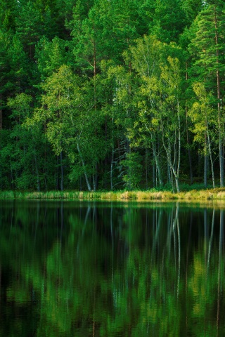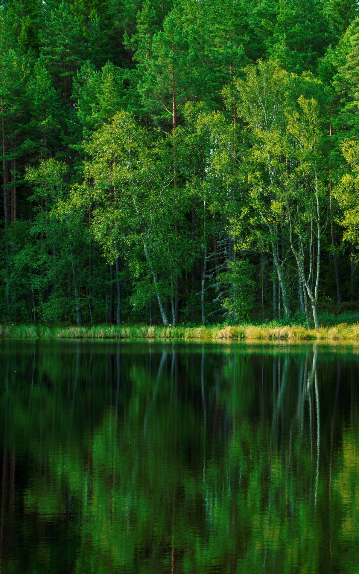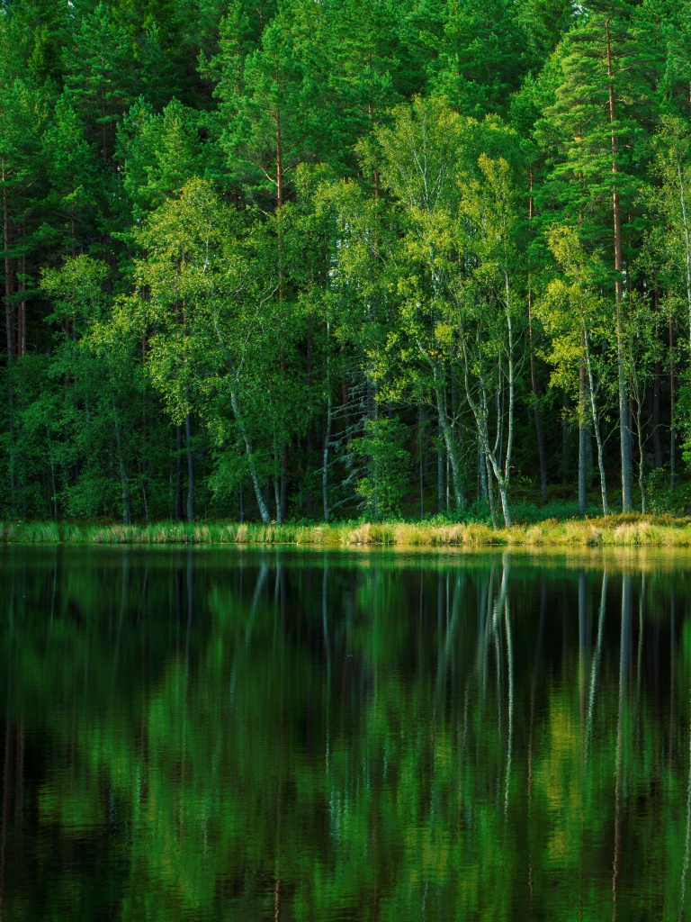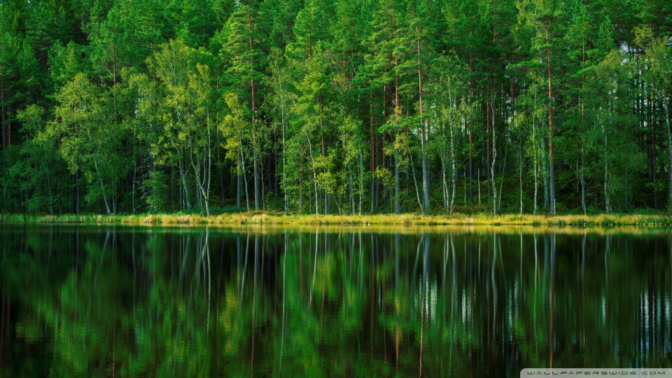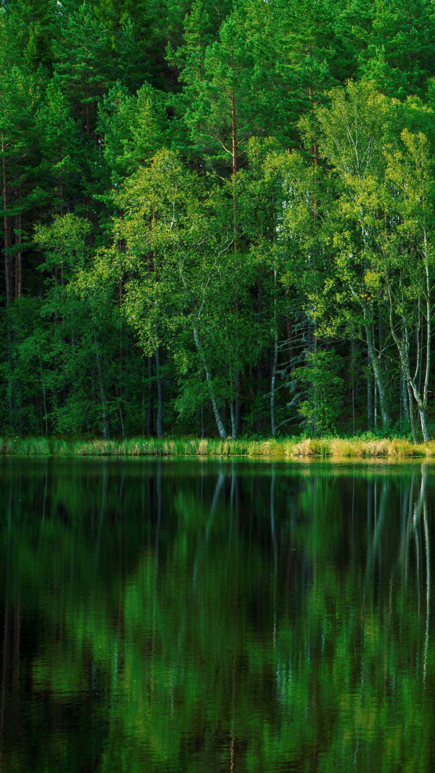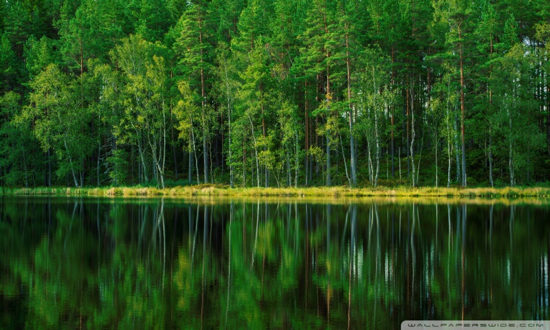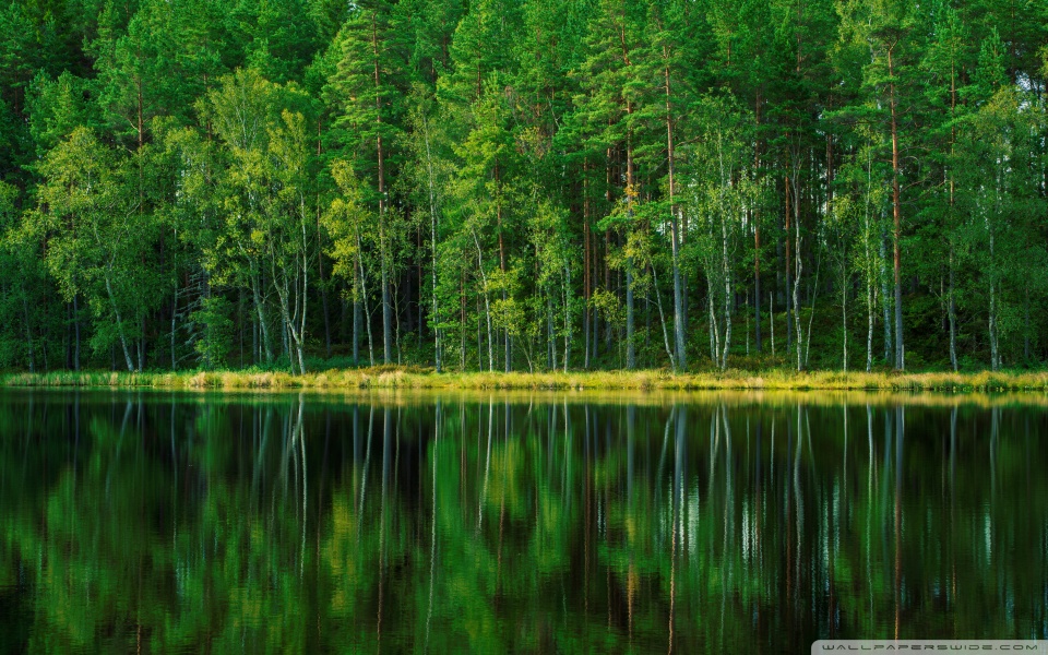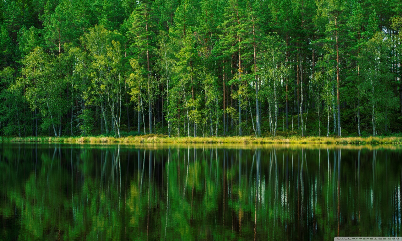 Download Pine and Birch Forest, Lake, Sweden 4K UHD Wallpaper