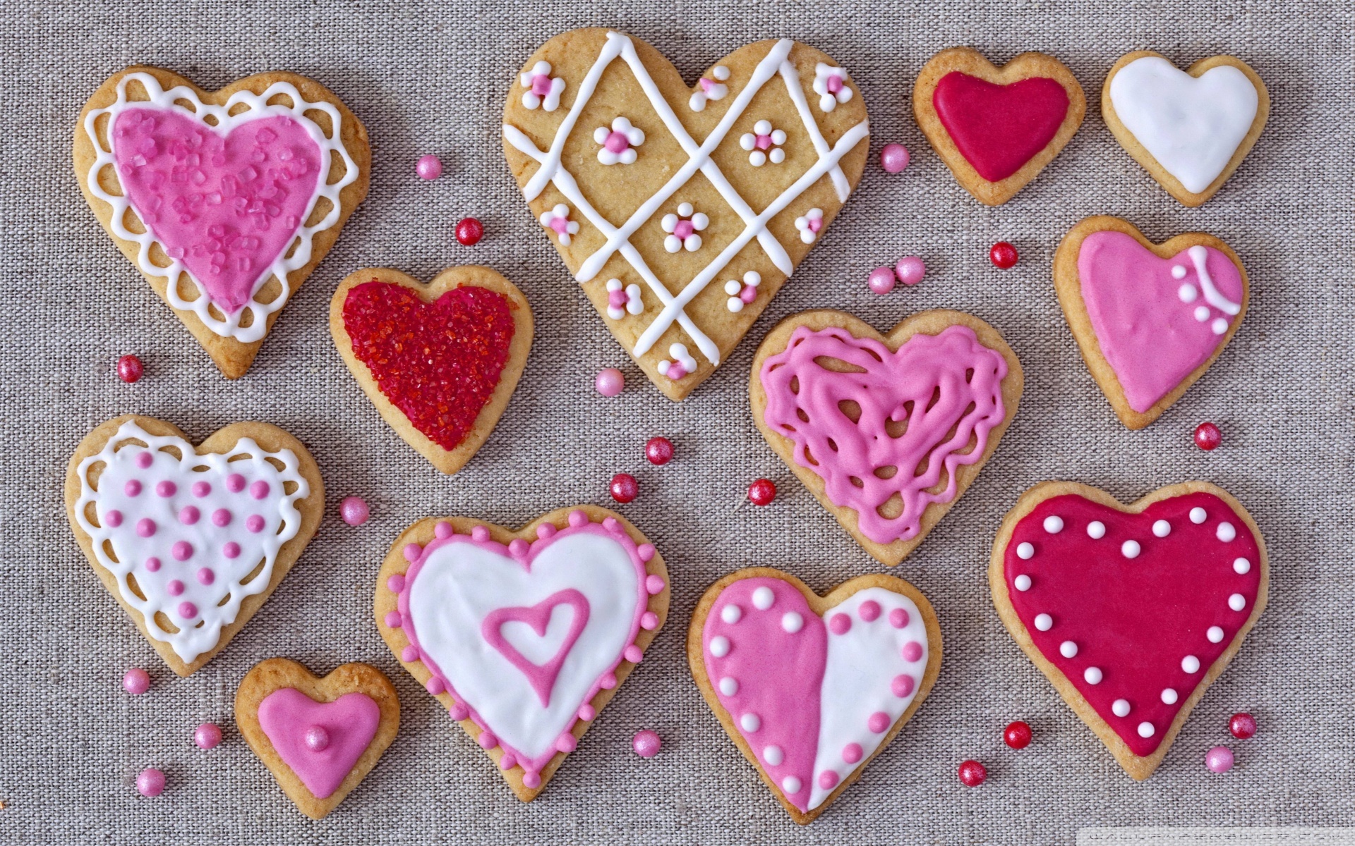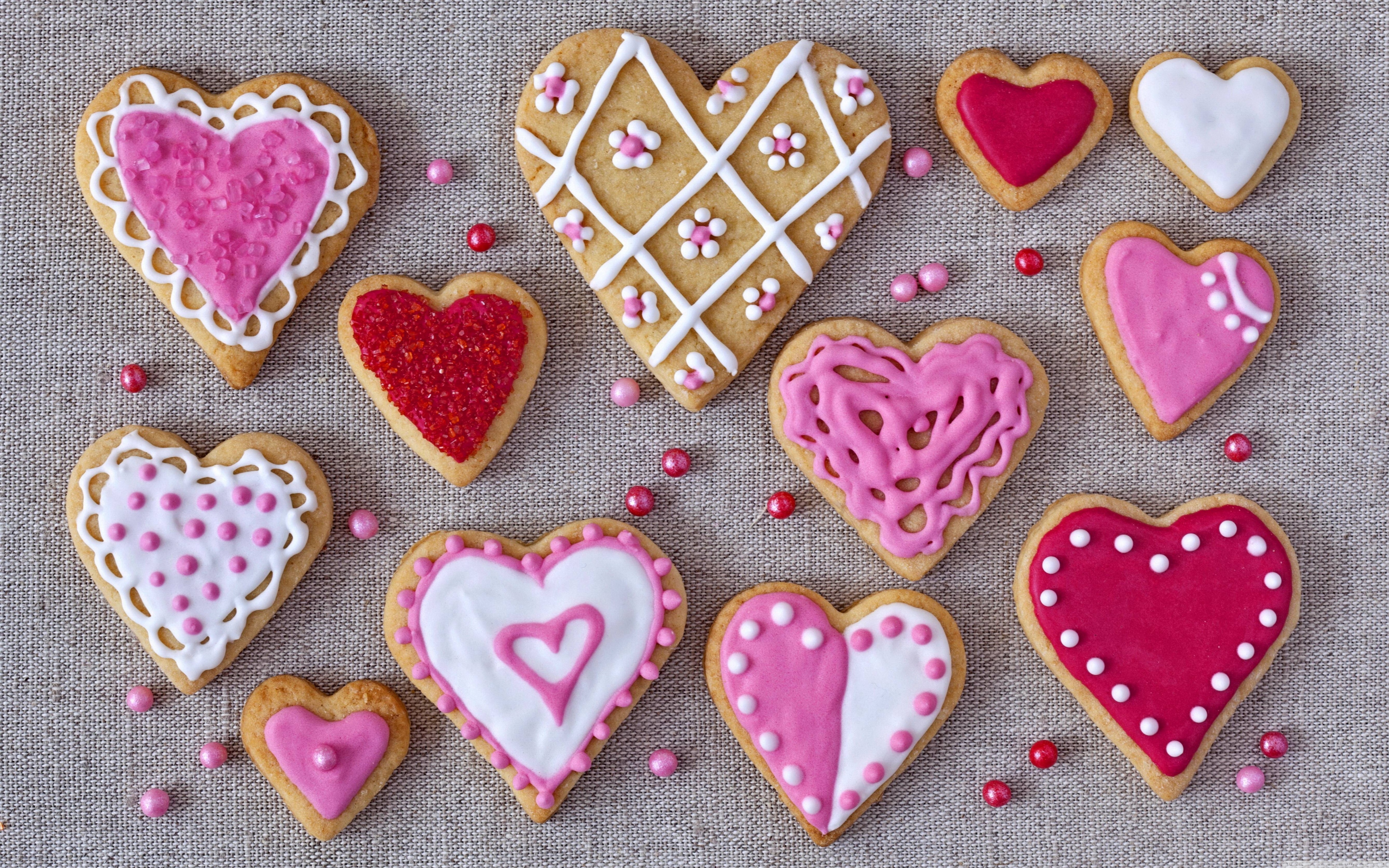 Download Pink Color Heart Shaped Cookies 4K UHD Wallpaper