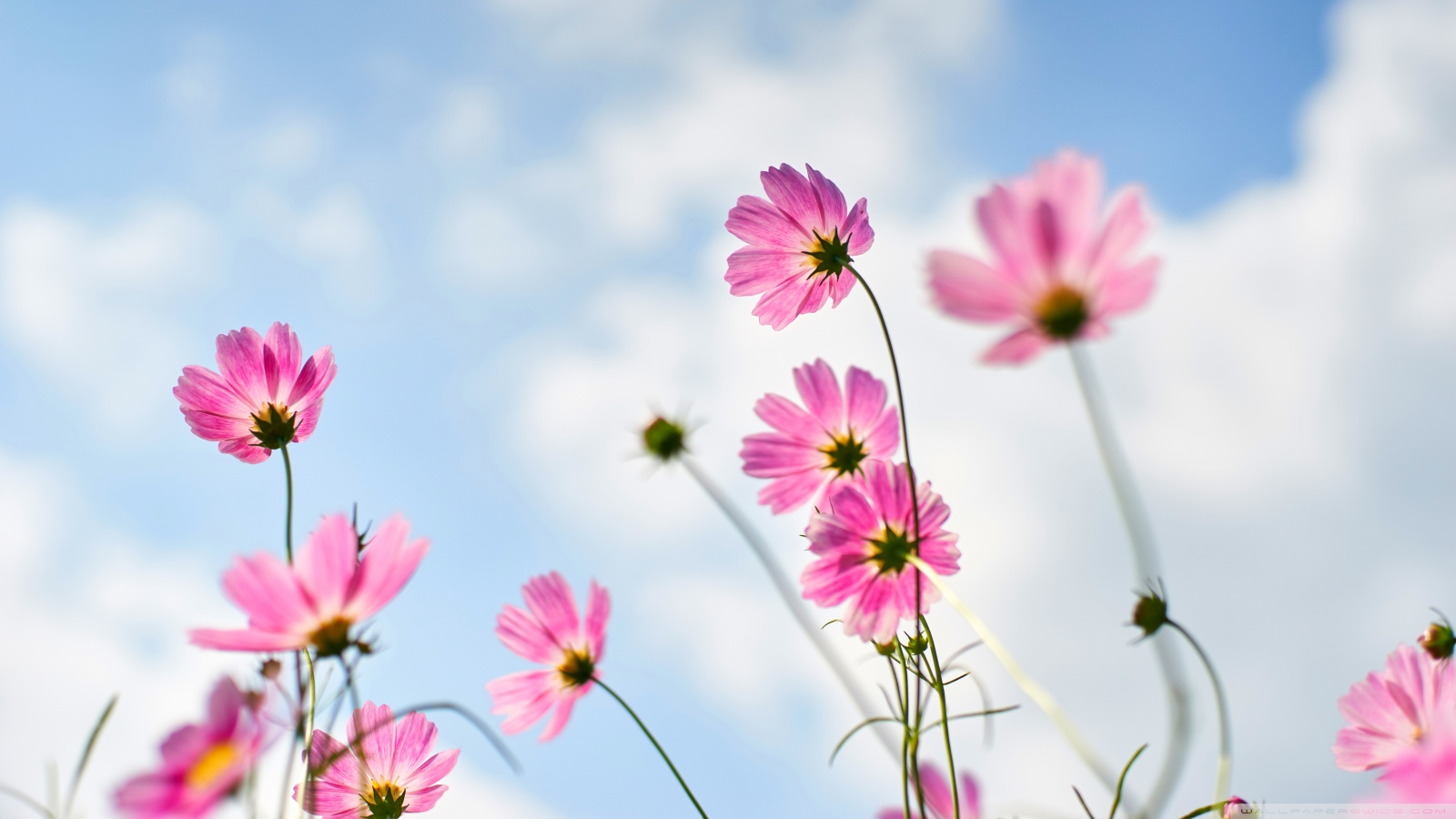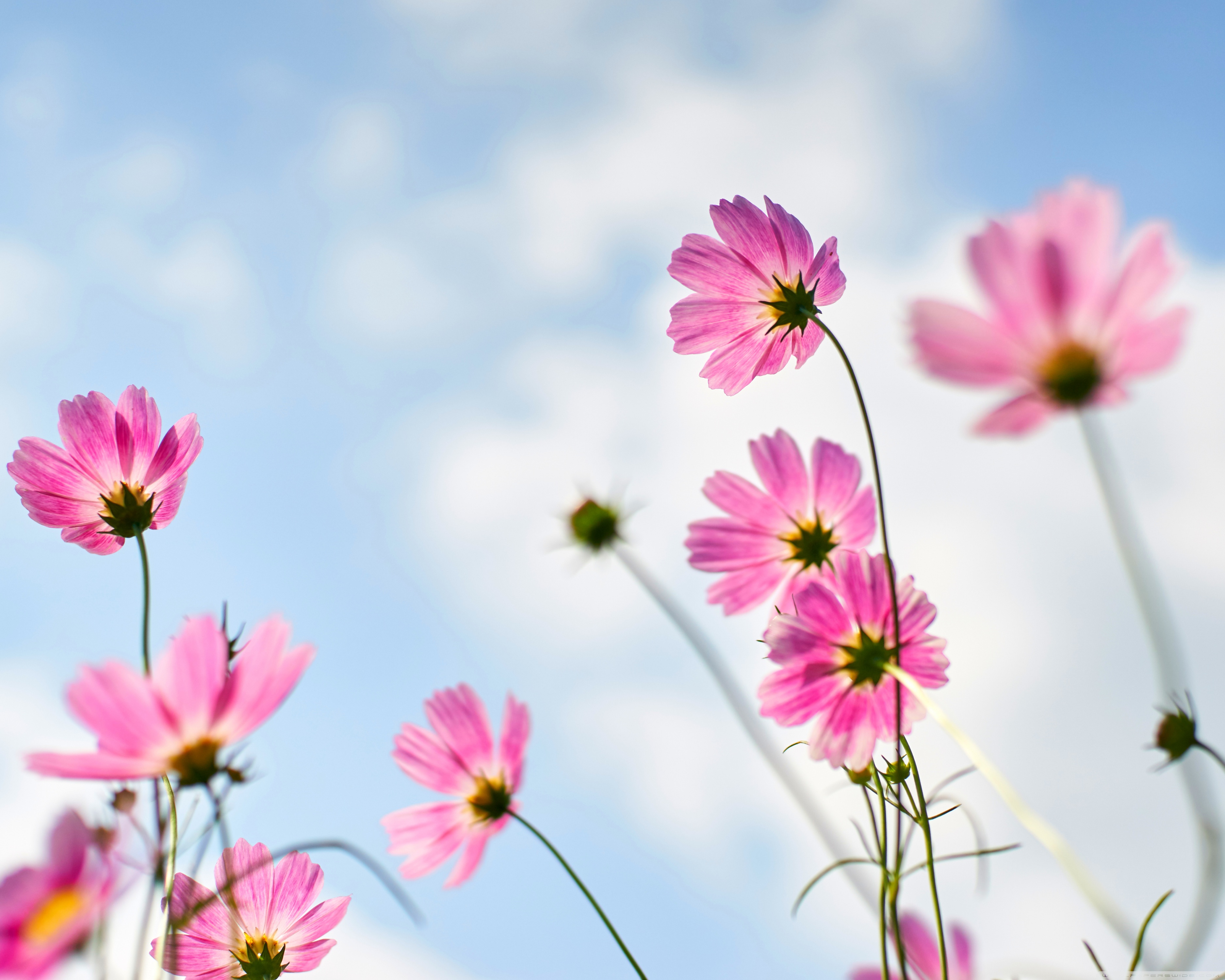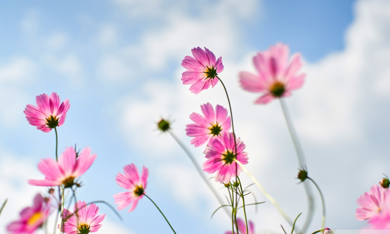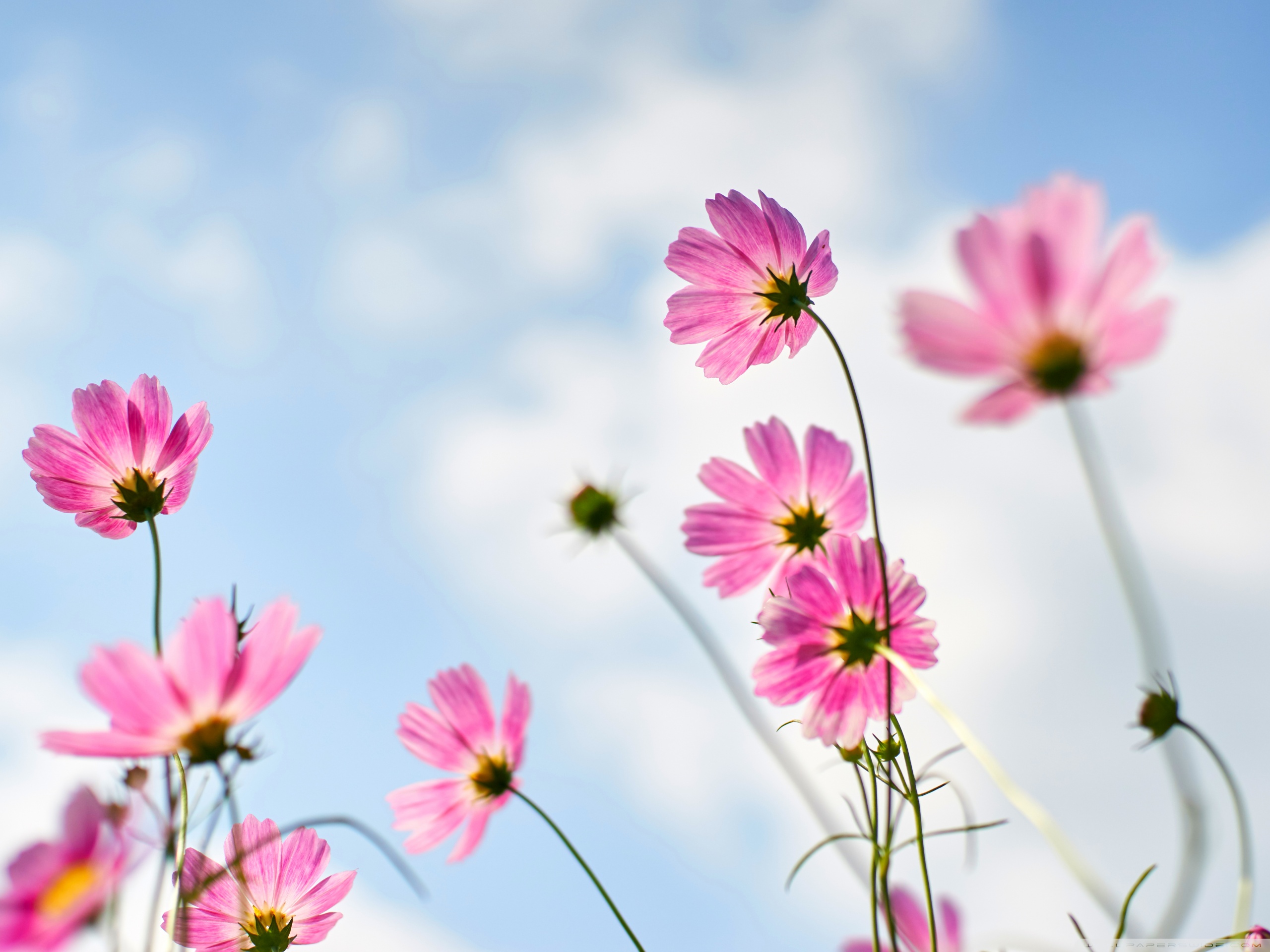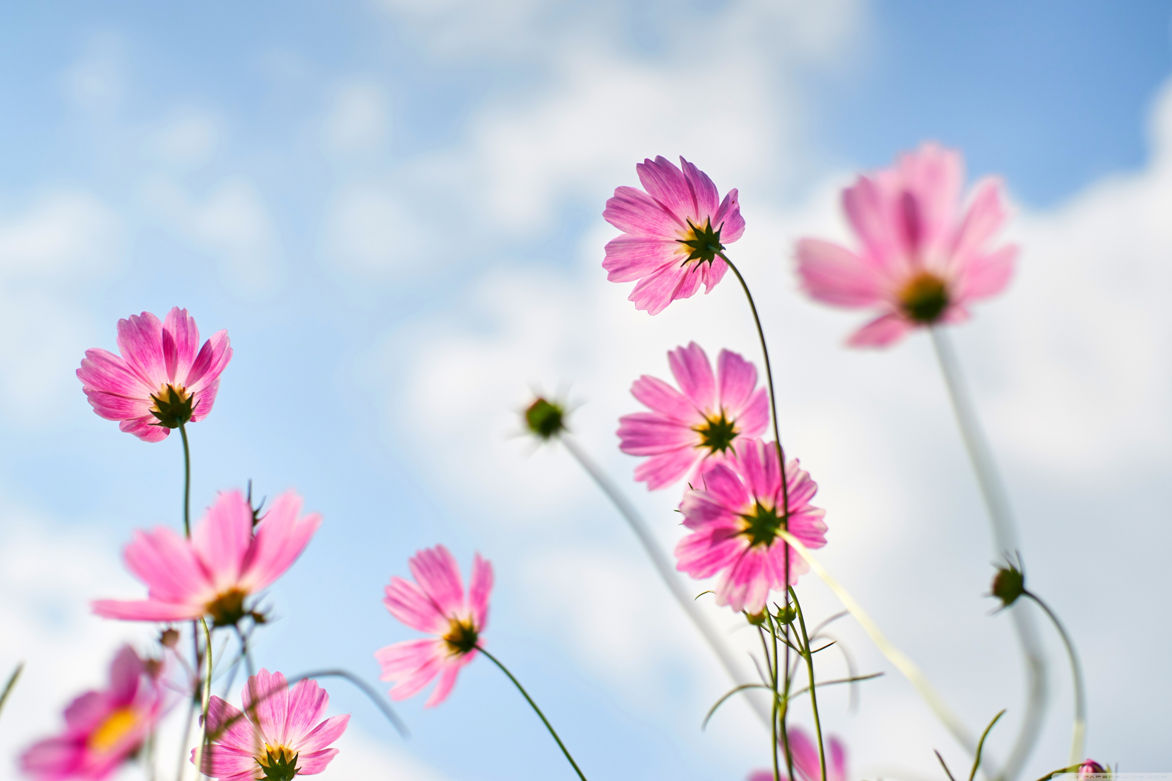 Download Pink Cosmos Flowers, Sky, Summer 4K UHD Wallpaper