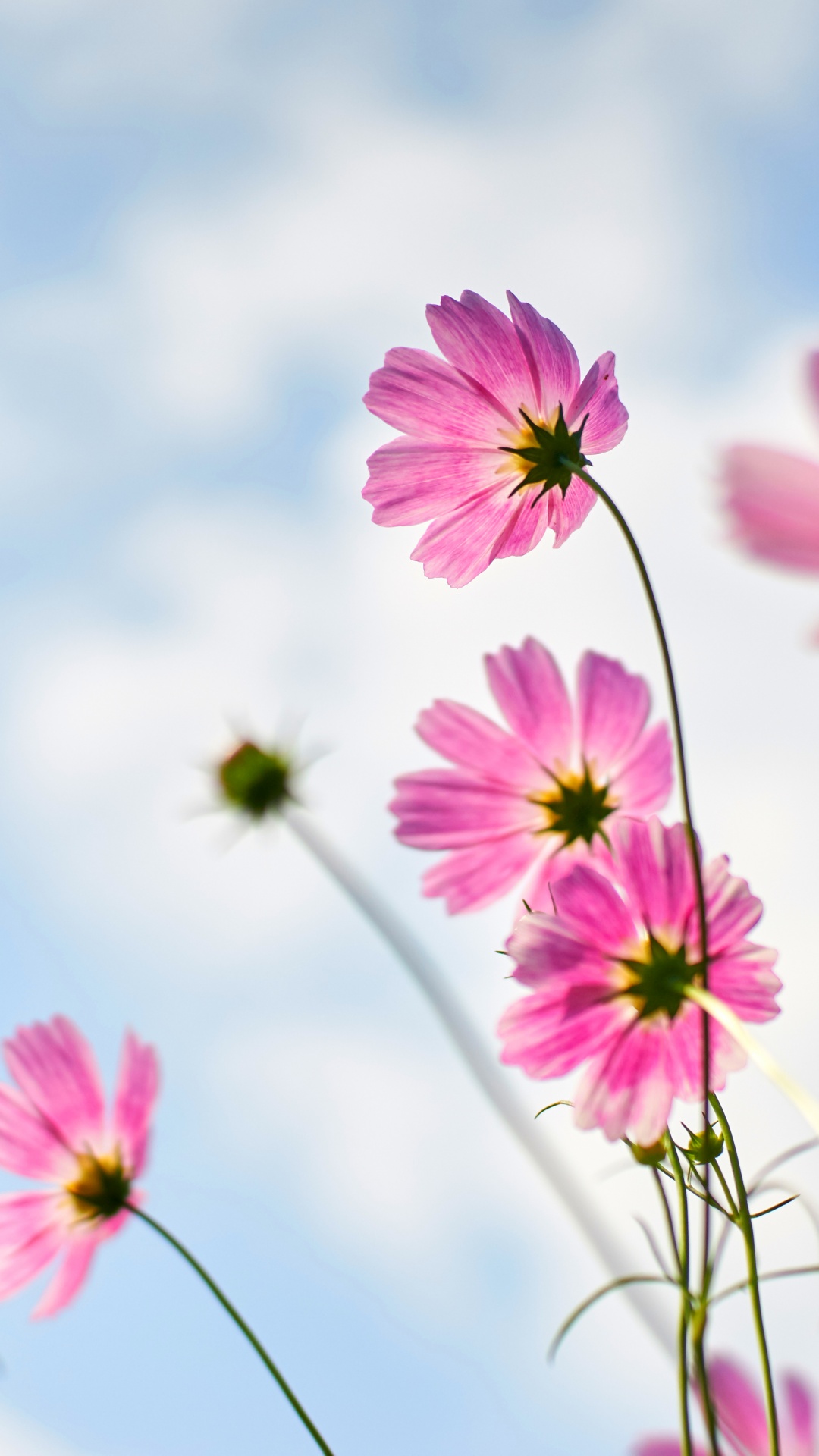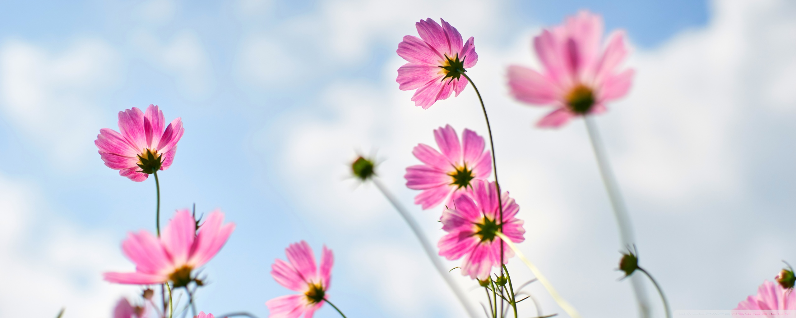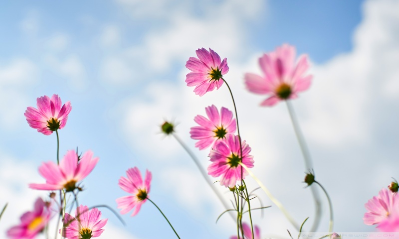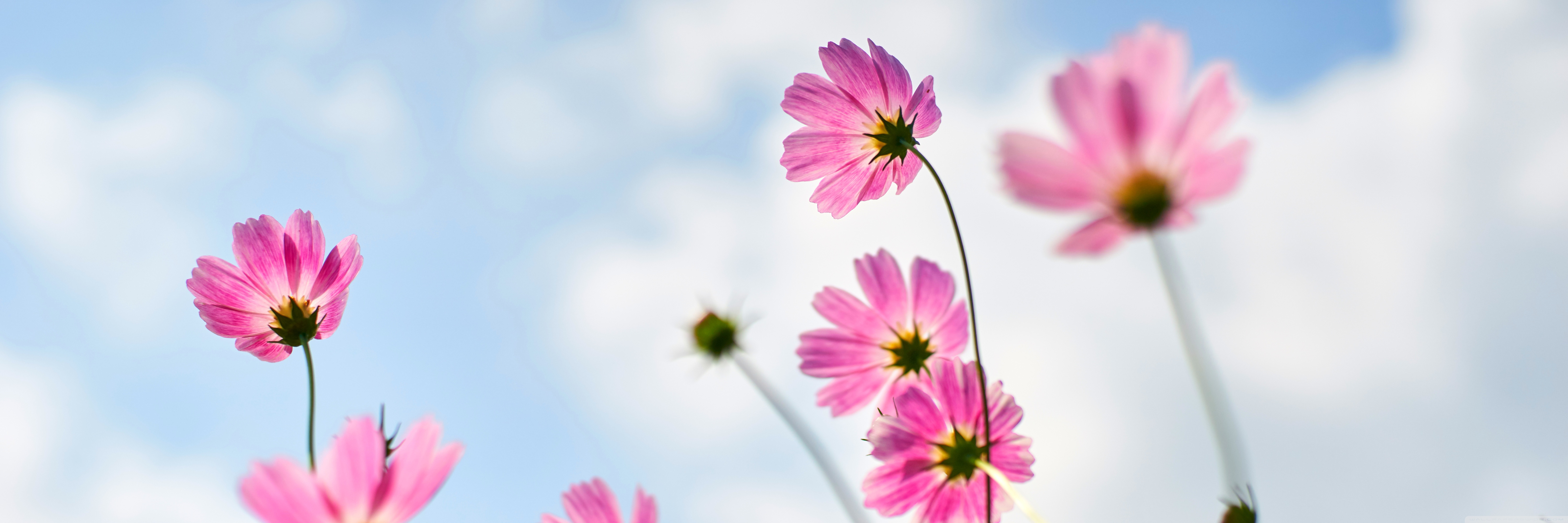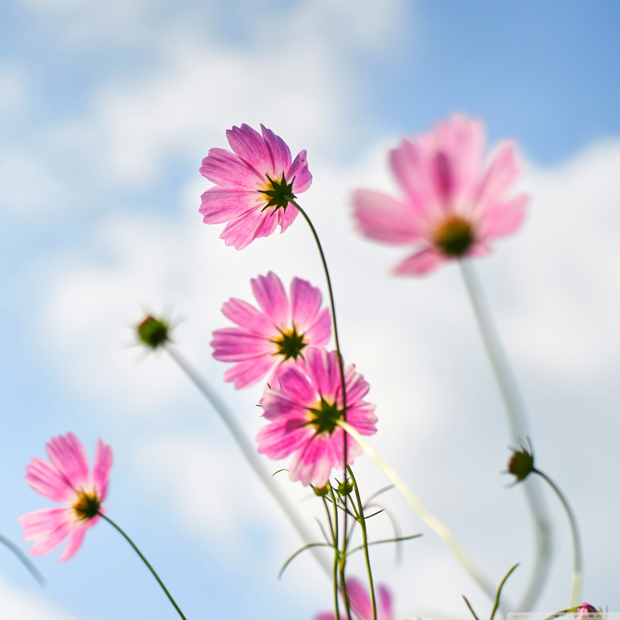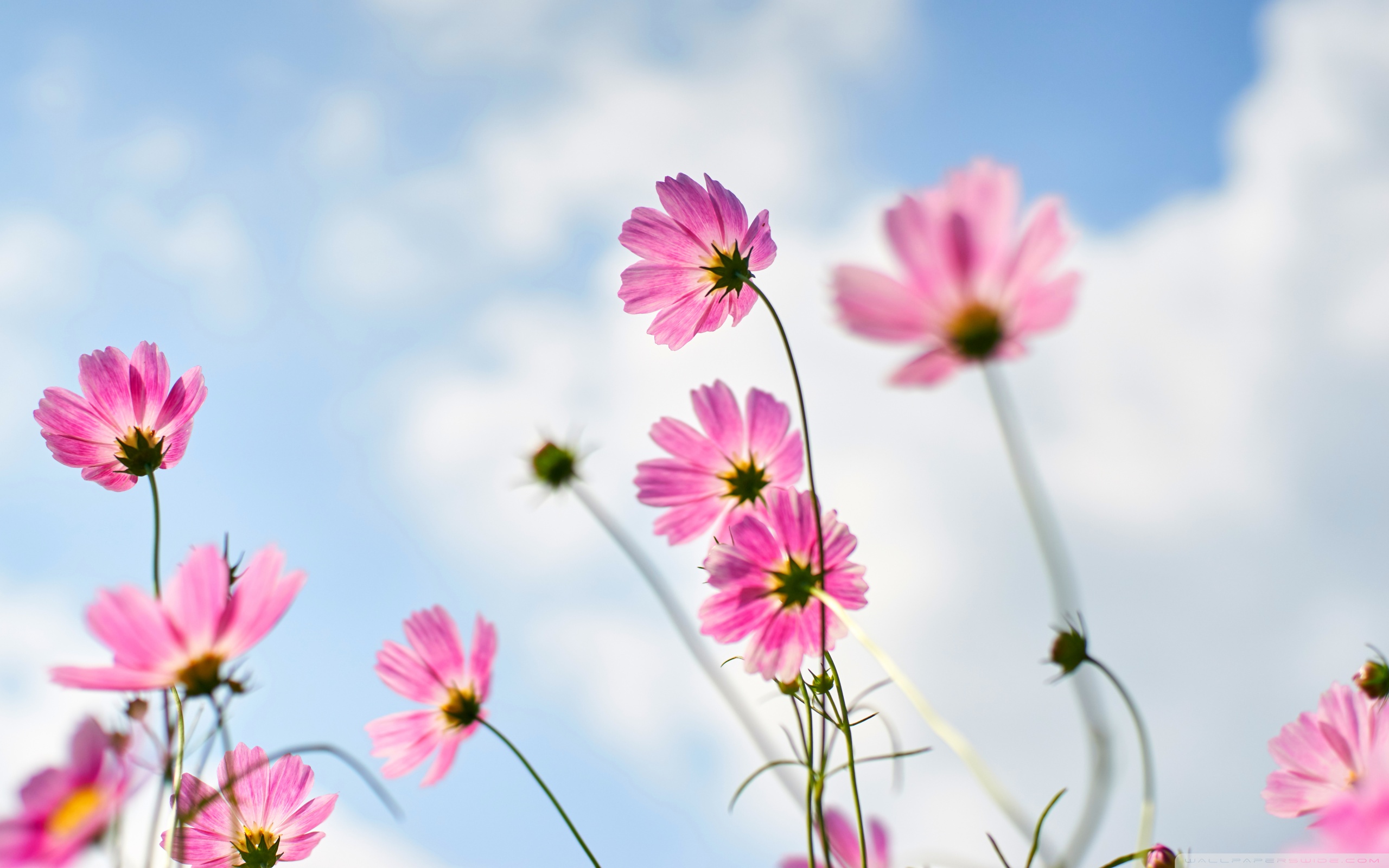 Download Pink Cosmos Flowers, Sky, Summer 4K UHD Wallpaper
