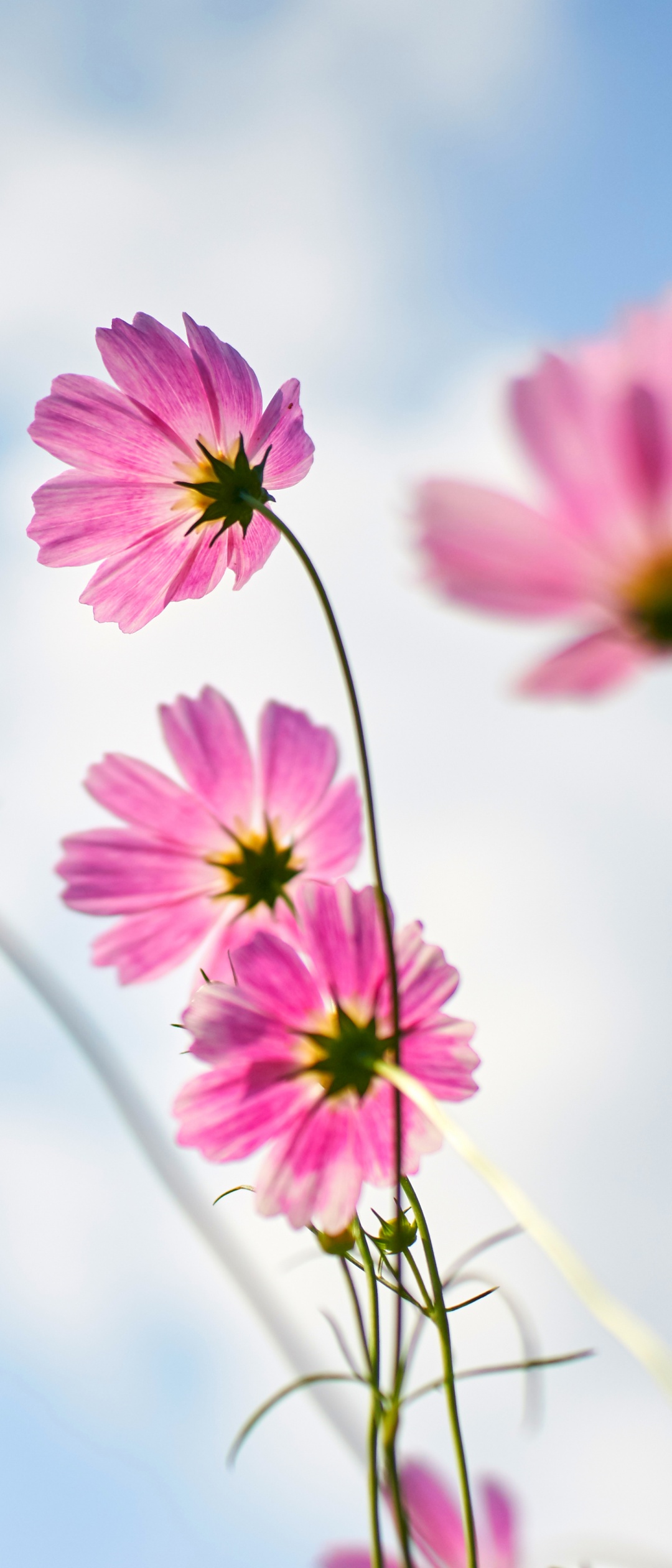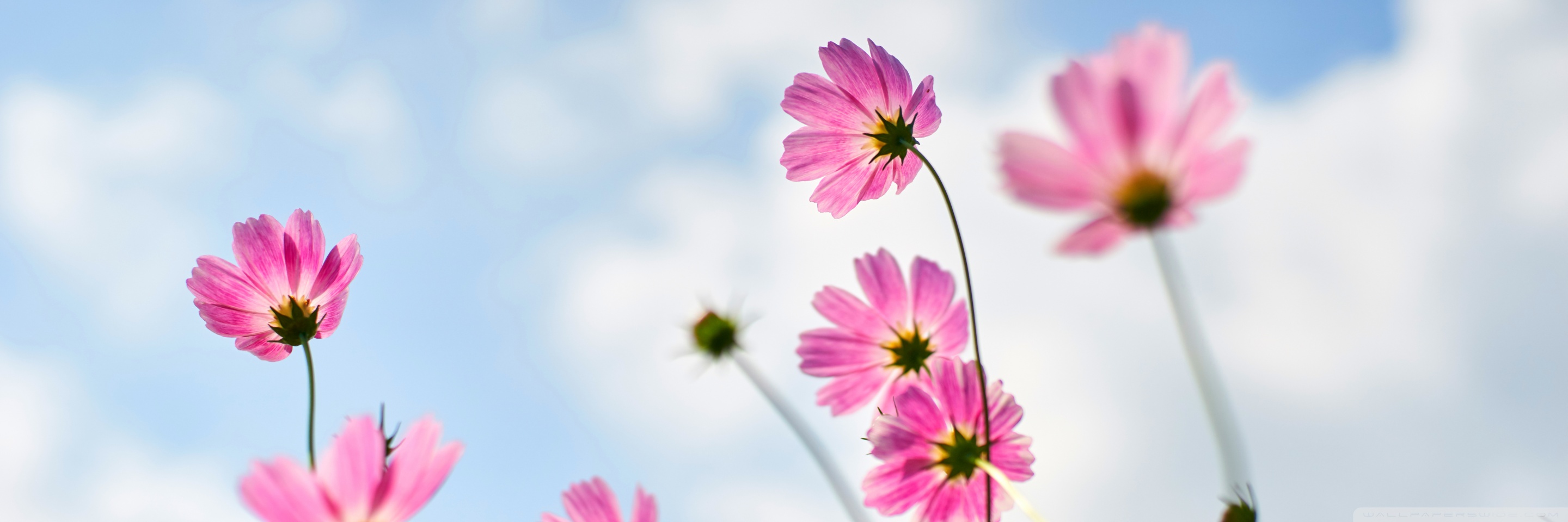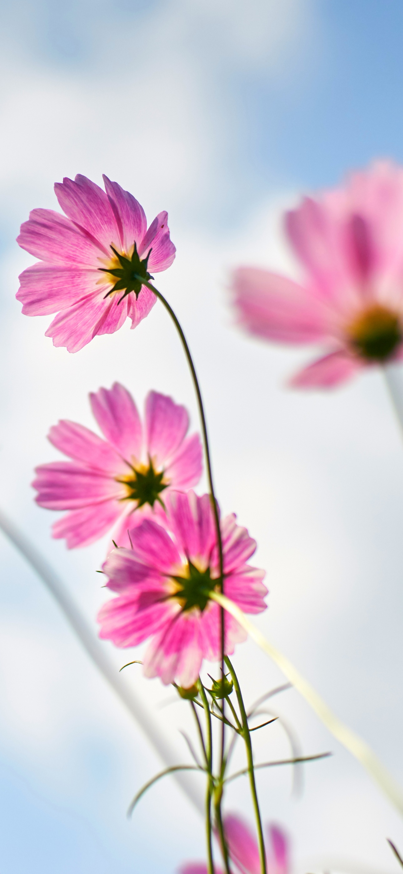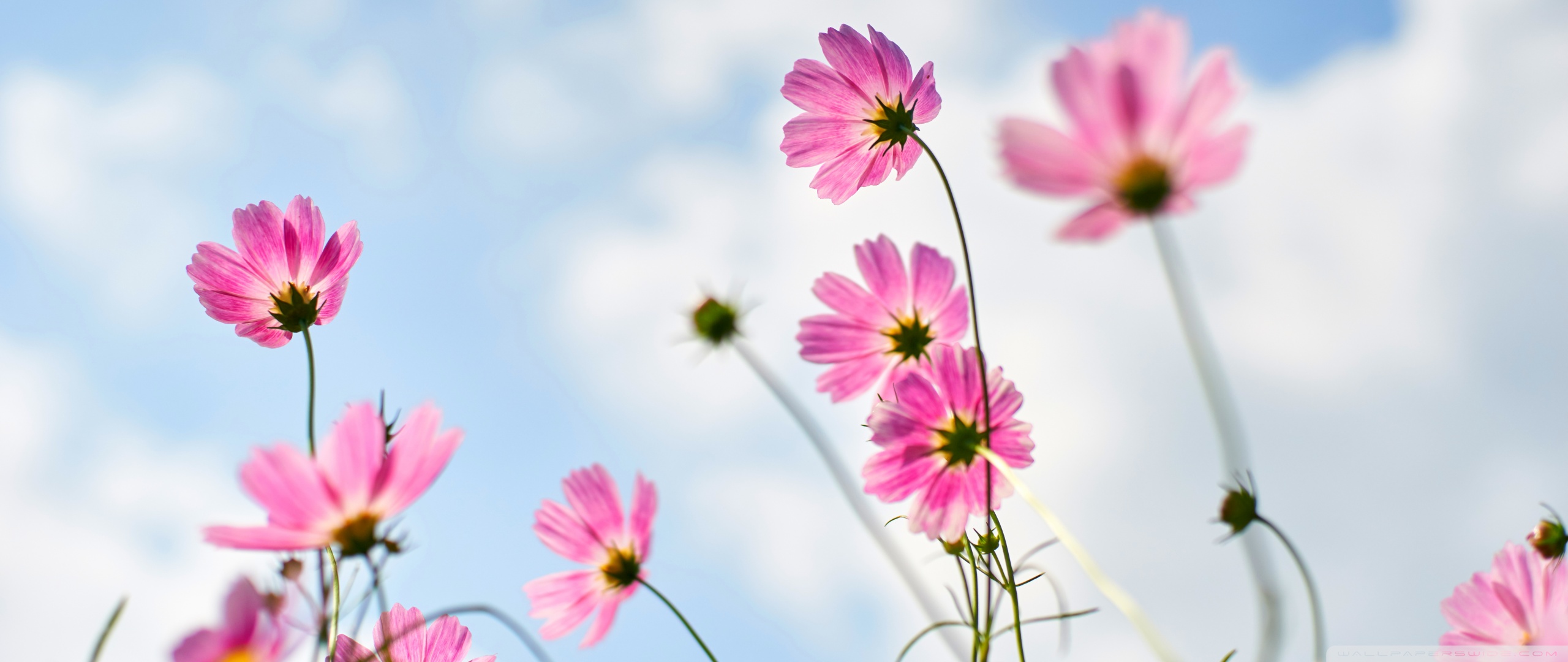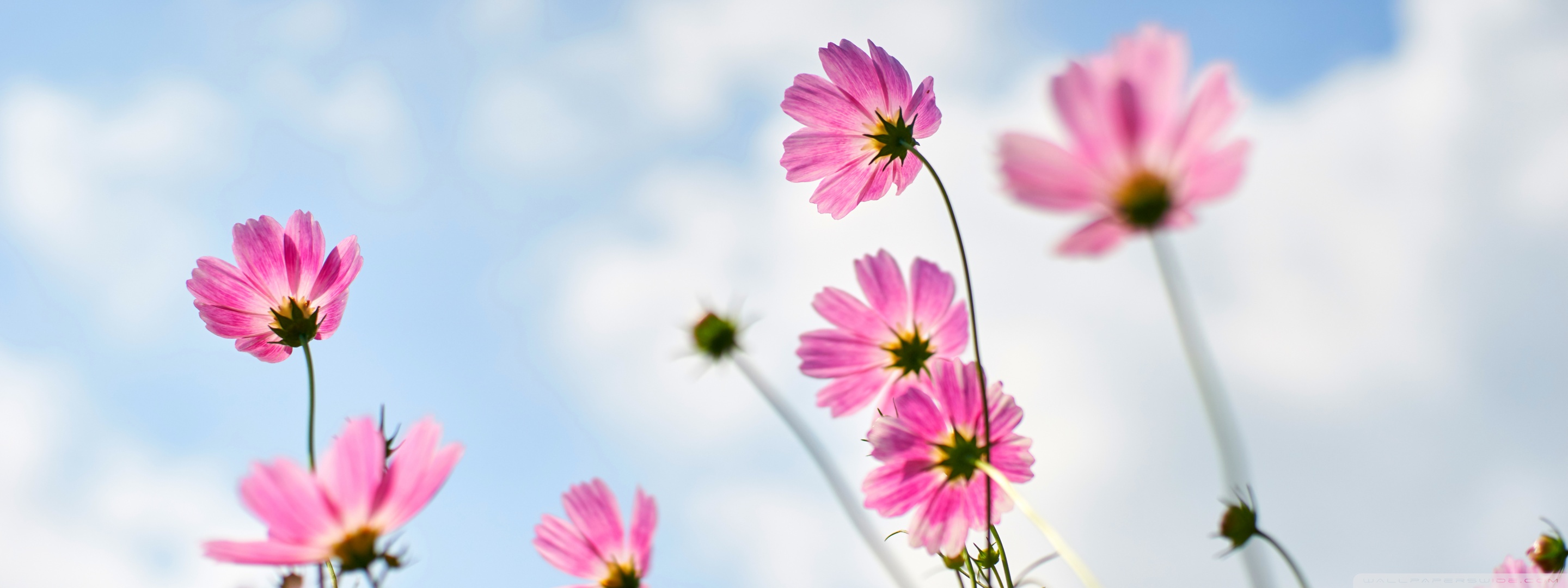 Download Pink Cosmos Flowers, Sky, Summer 4K UHD Wallpaper