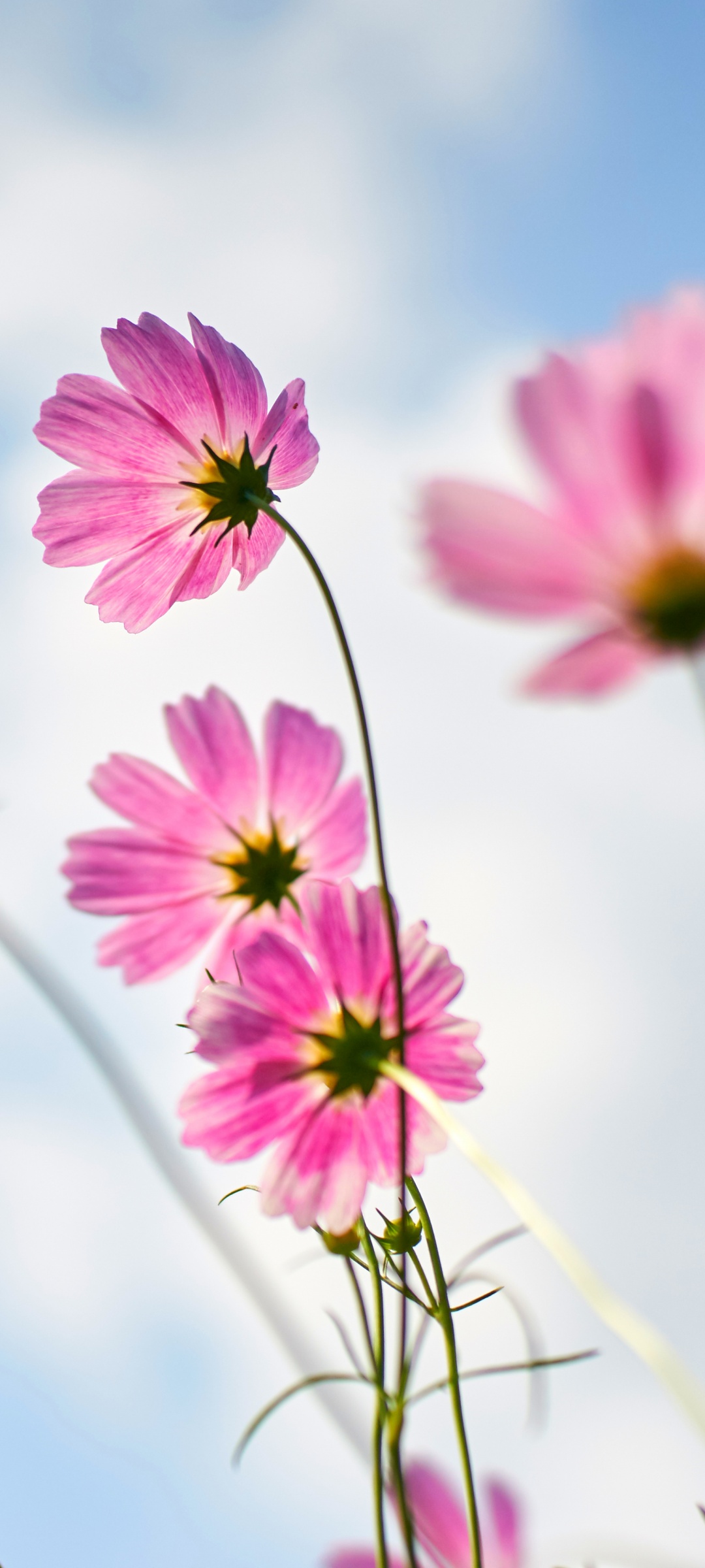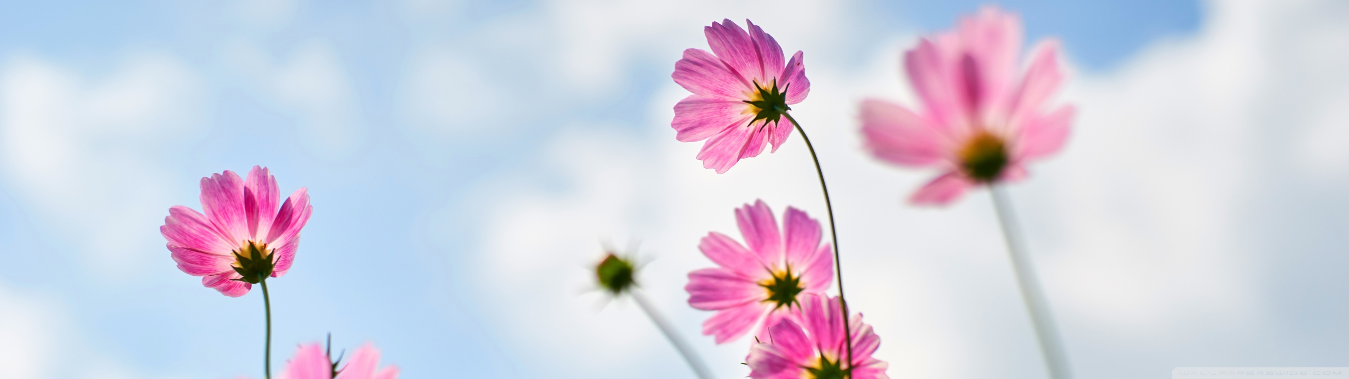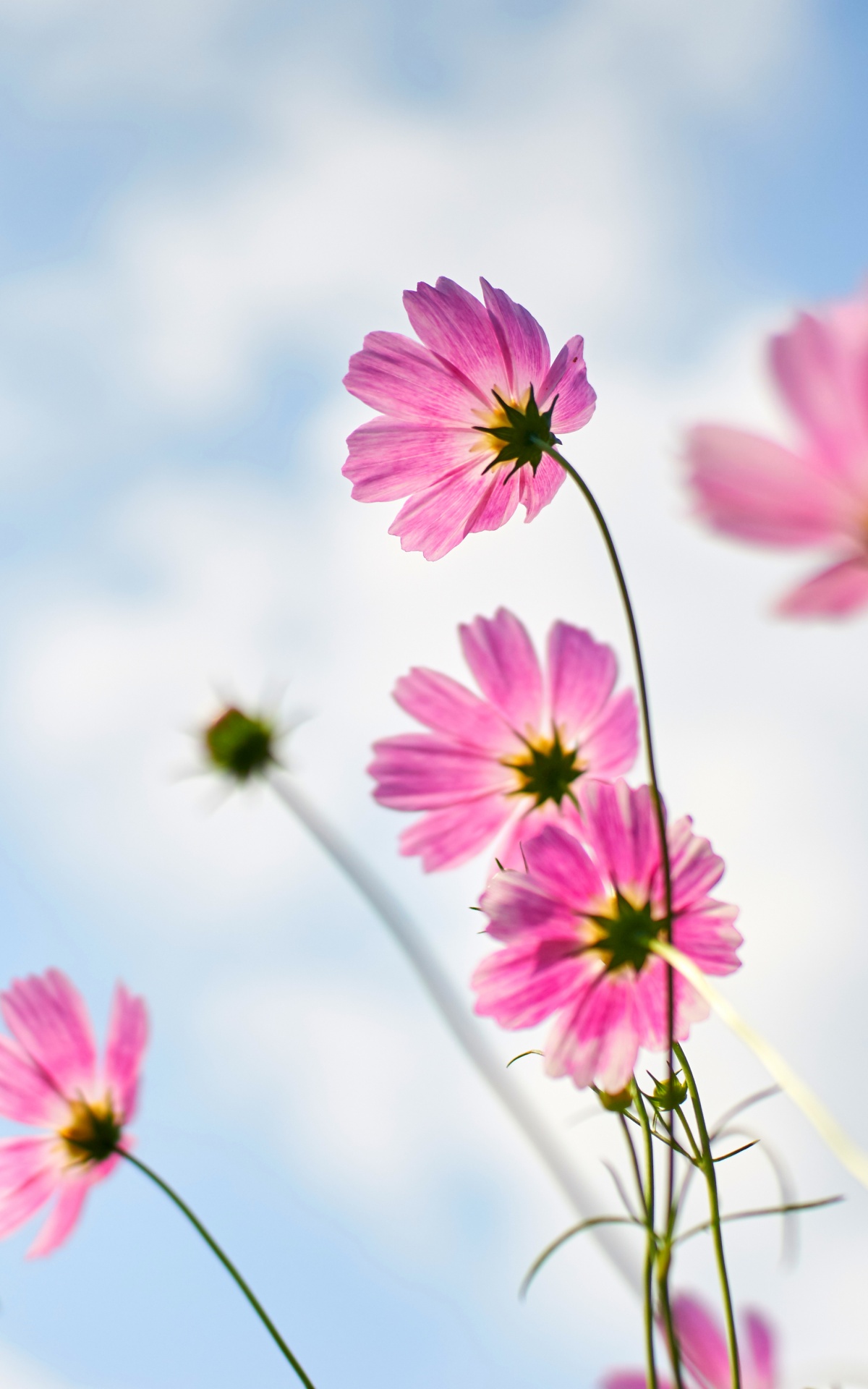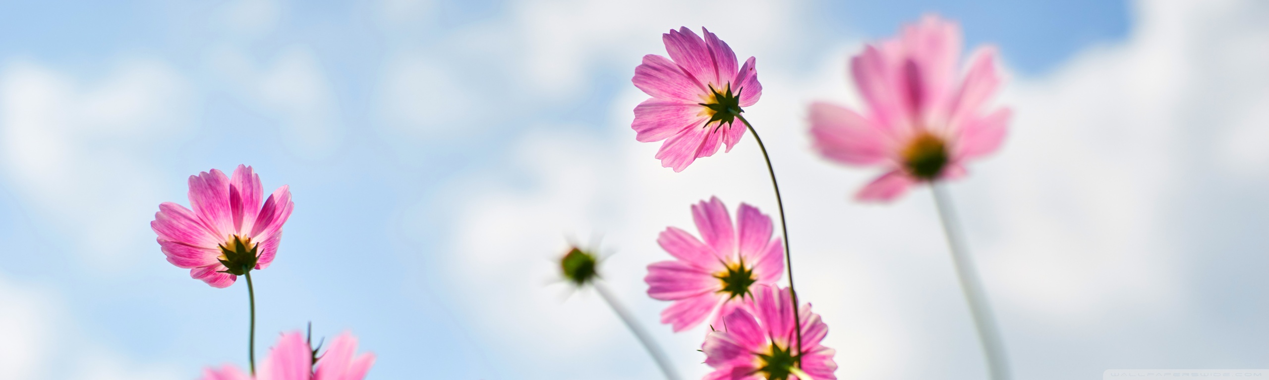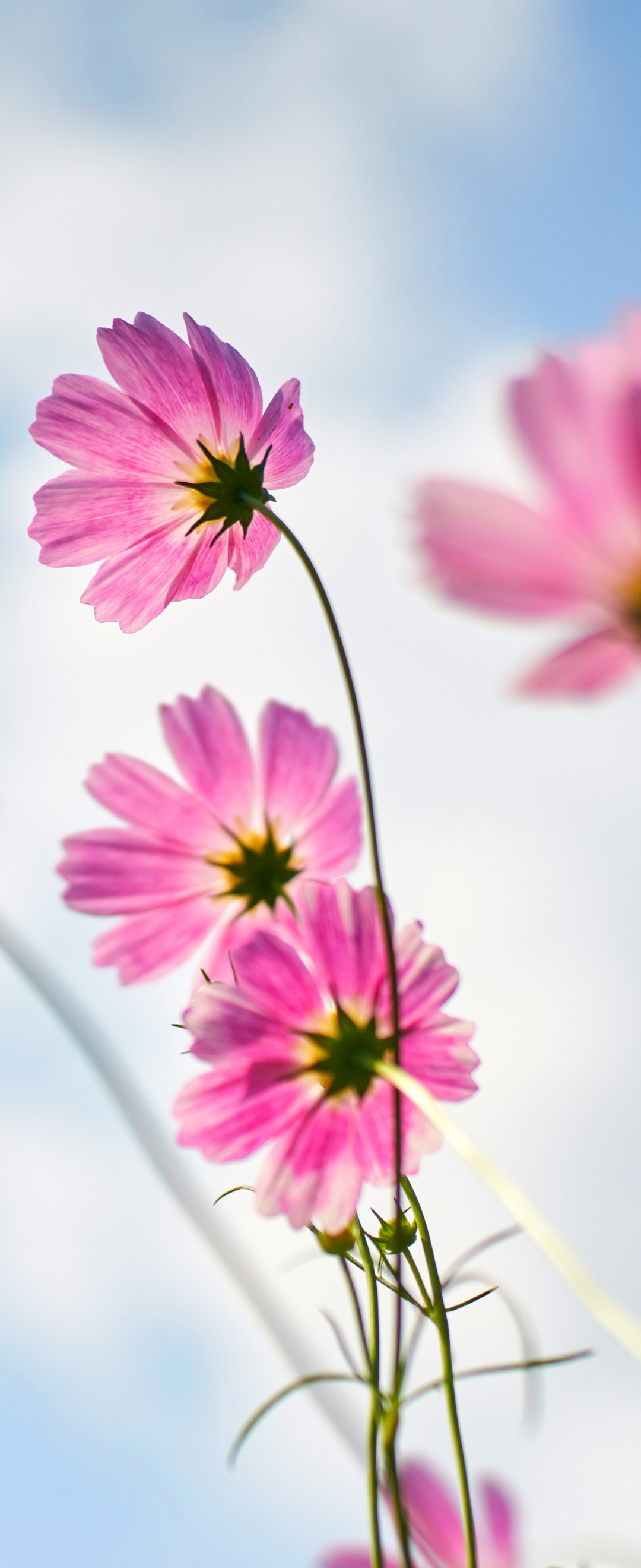 Download Pink Cosmos Flowers, Sky, Summer 4K UHD Wallpaper