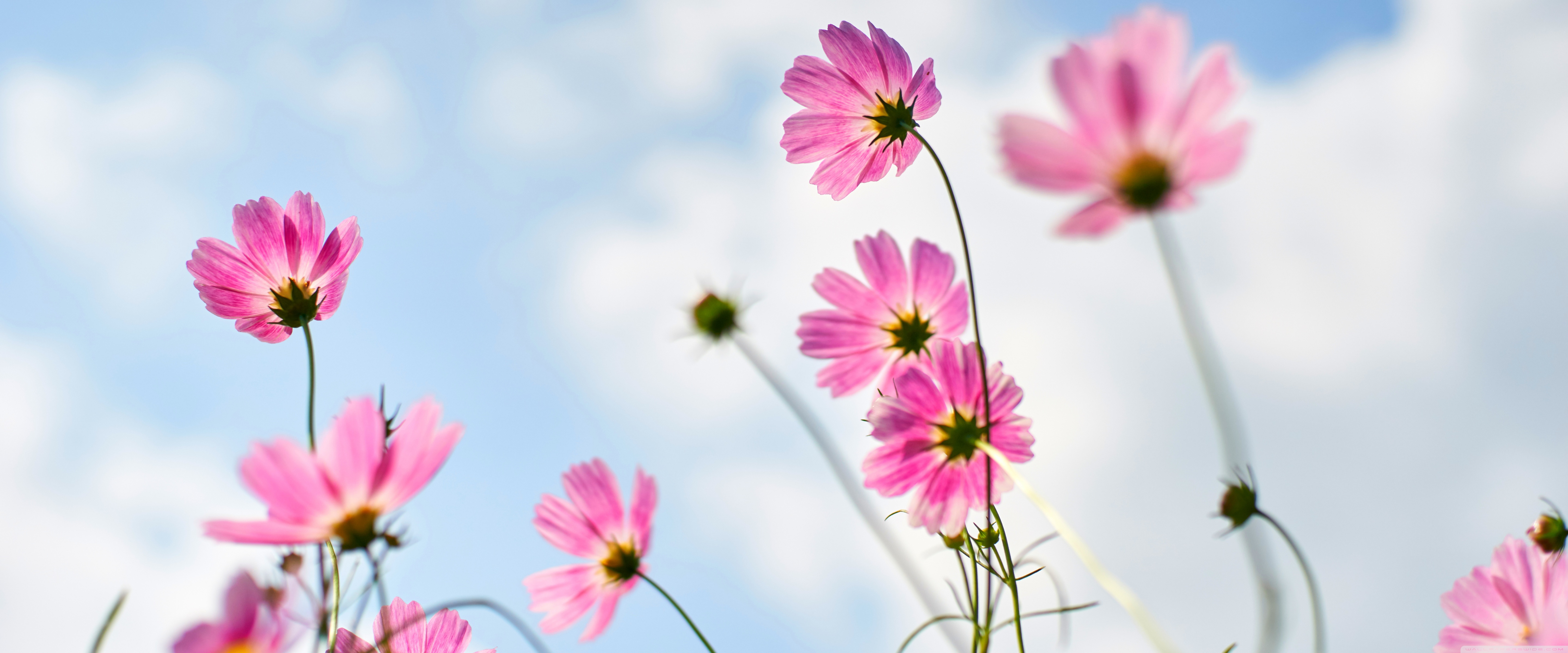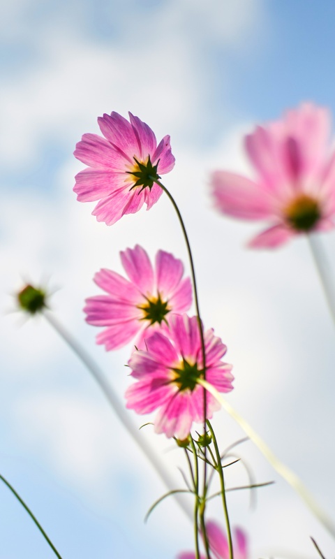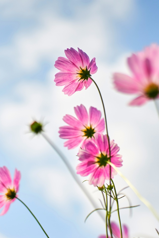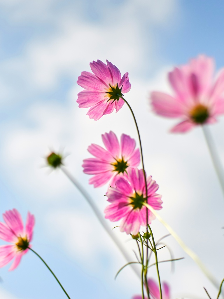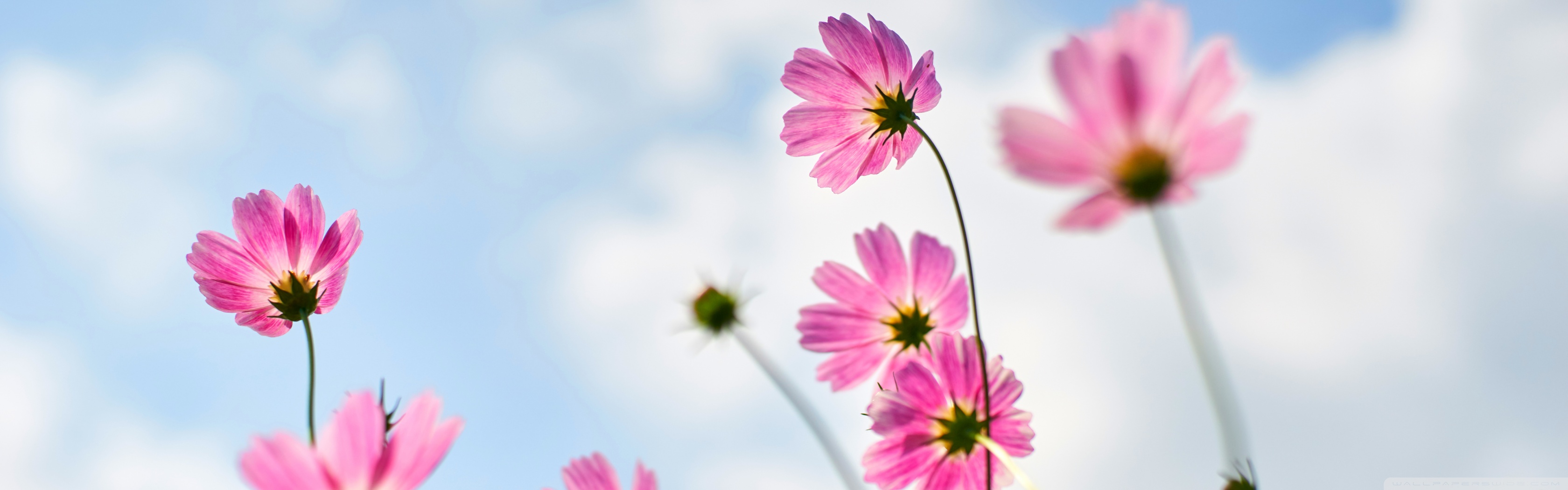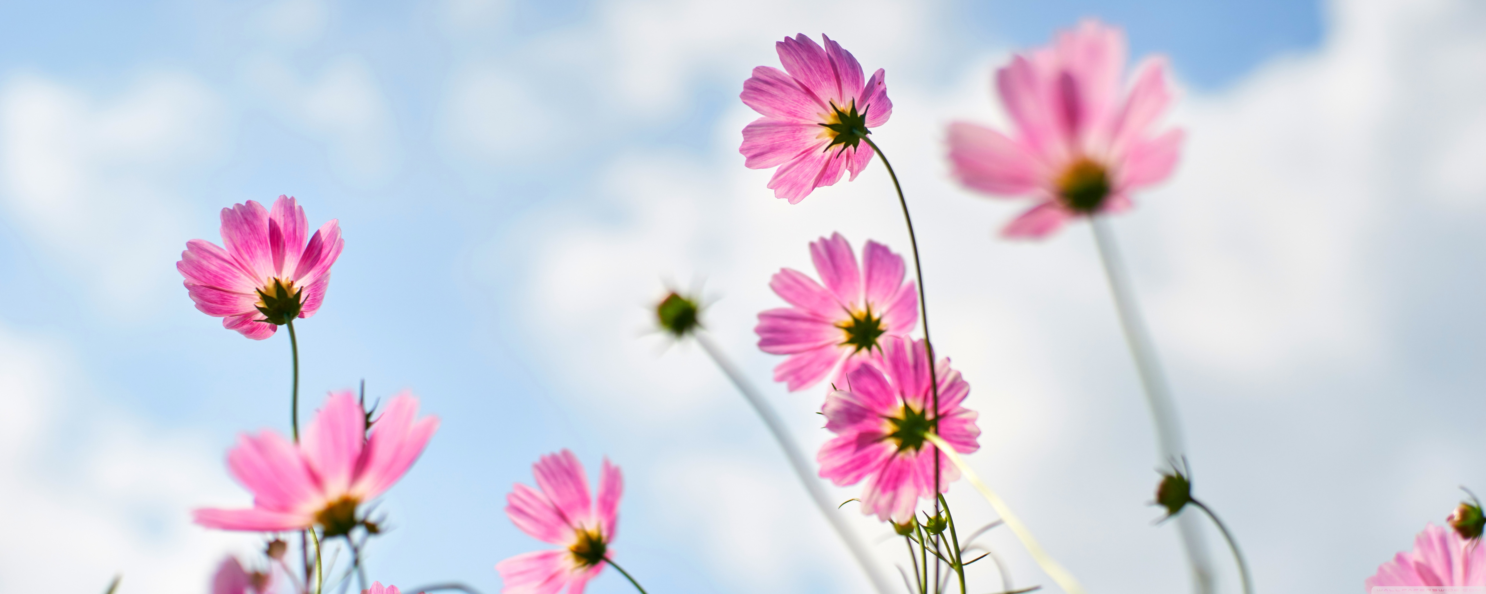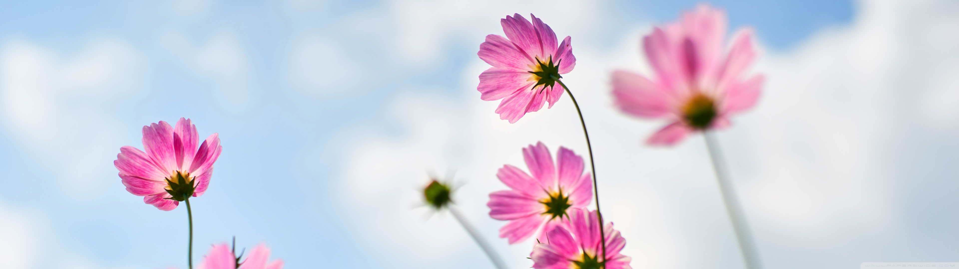Download Pink Cosmos Flowers, Sky, Summer 4K UHD Wallpaper