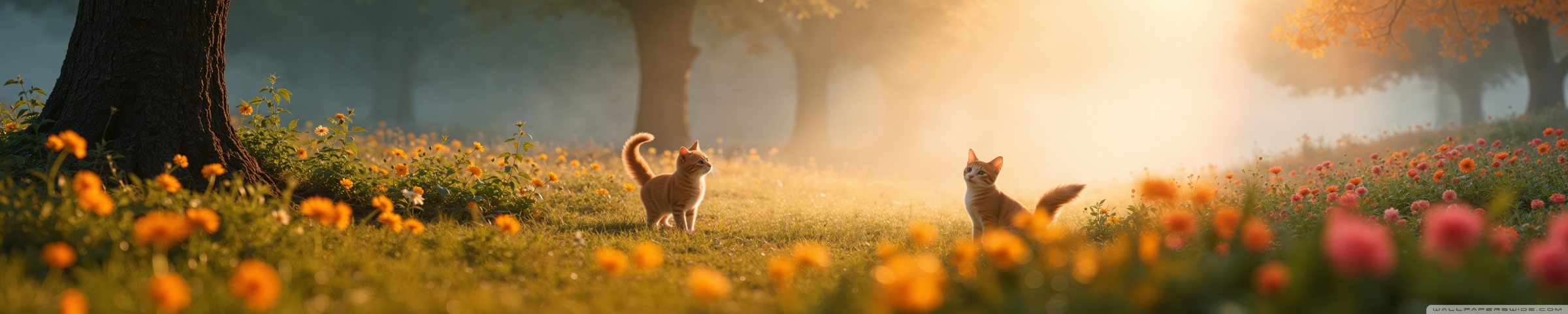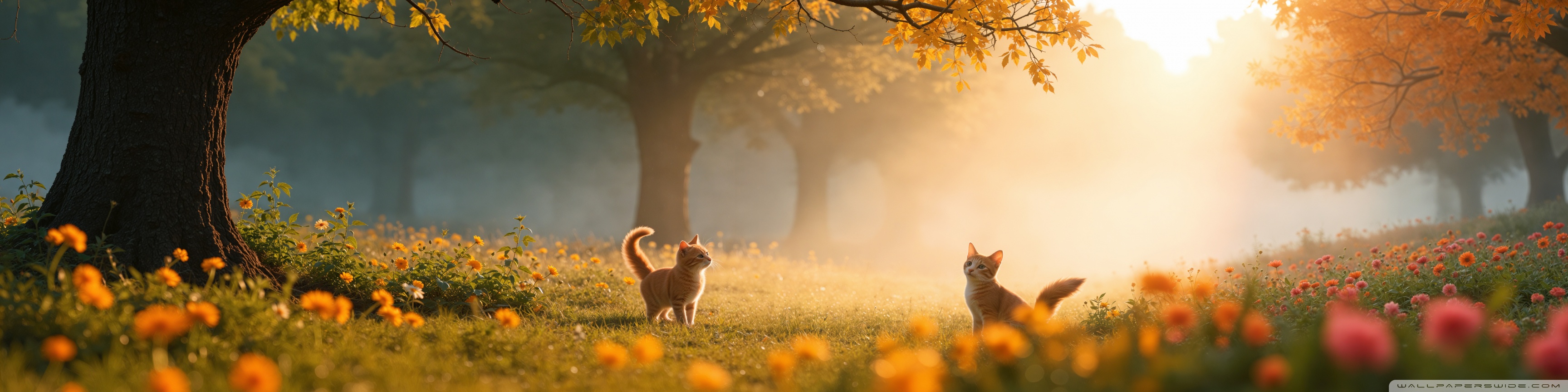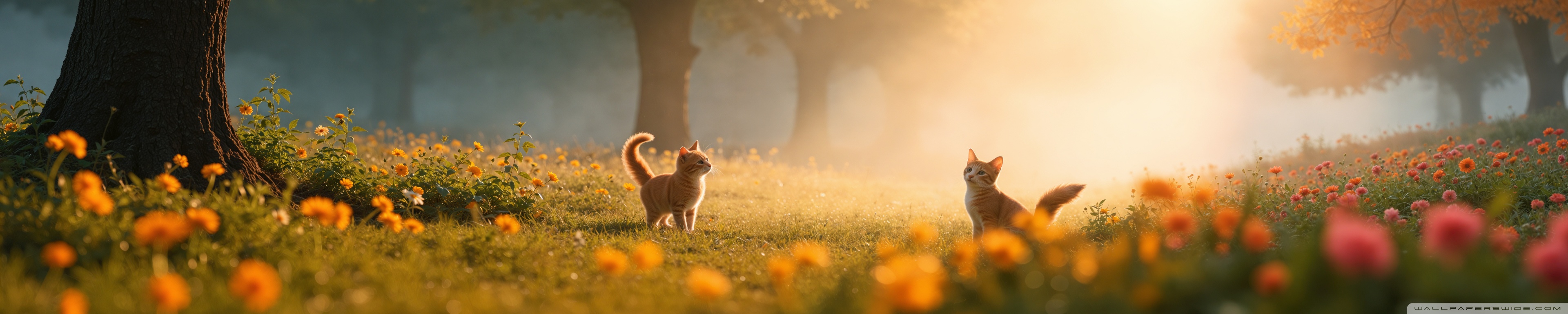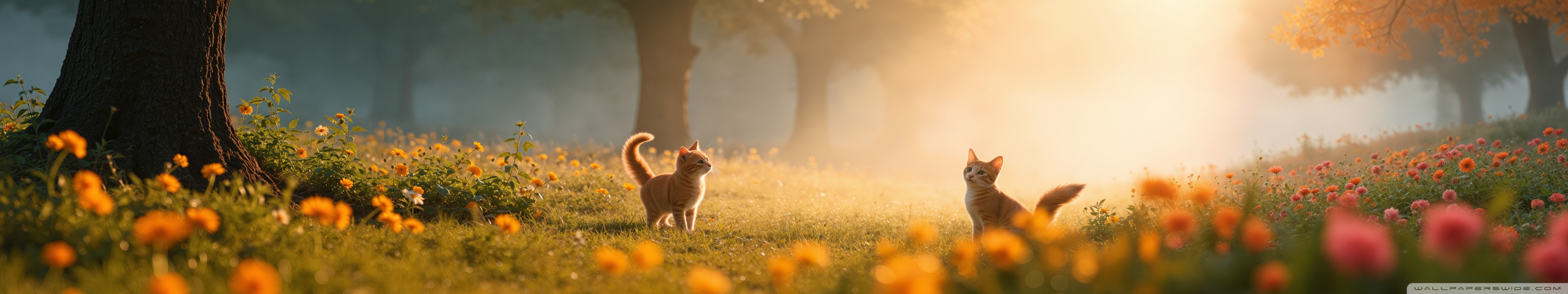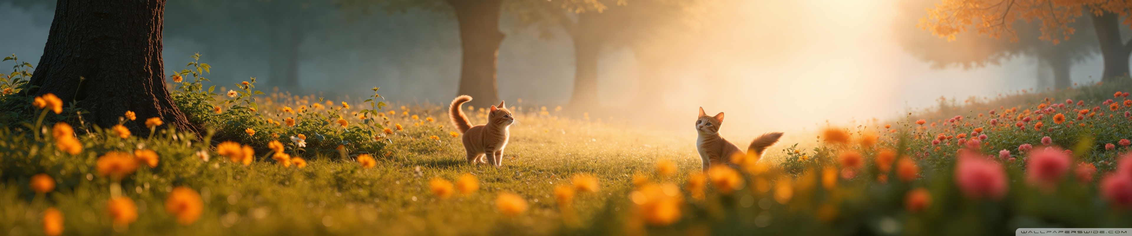 Download Playful Cats in a Flower Filled Forest Clearing 4K UHD Wallpaper