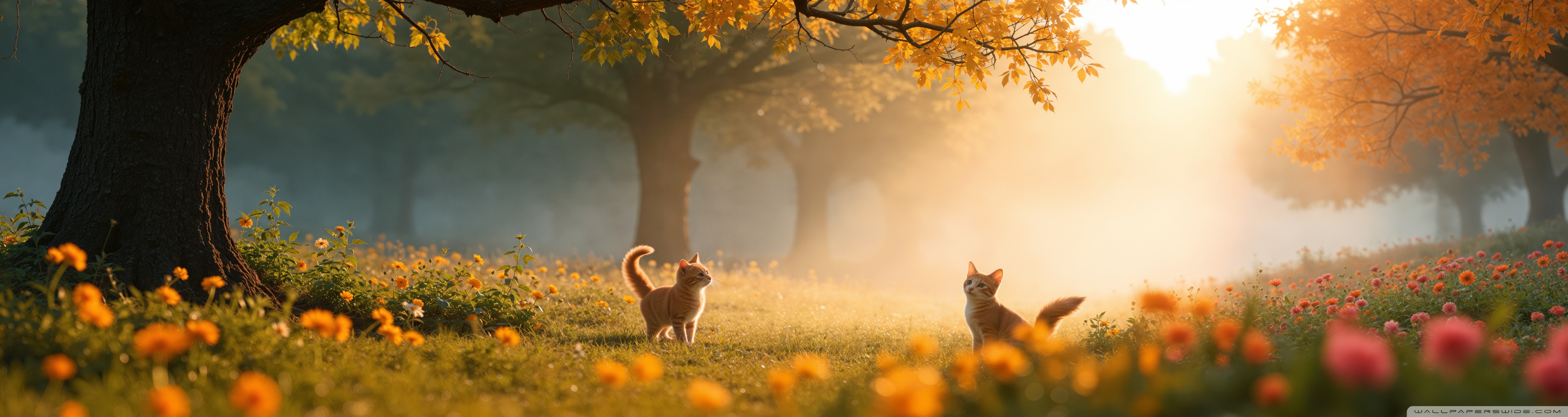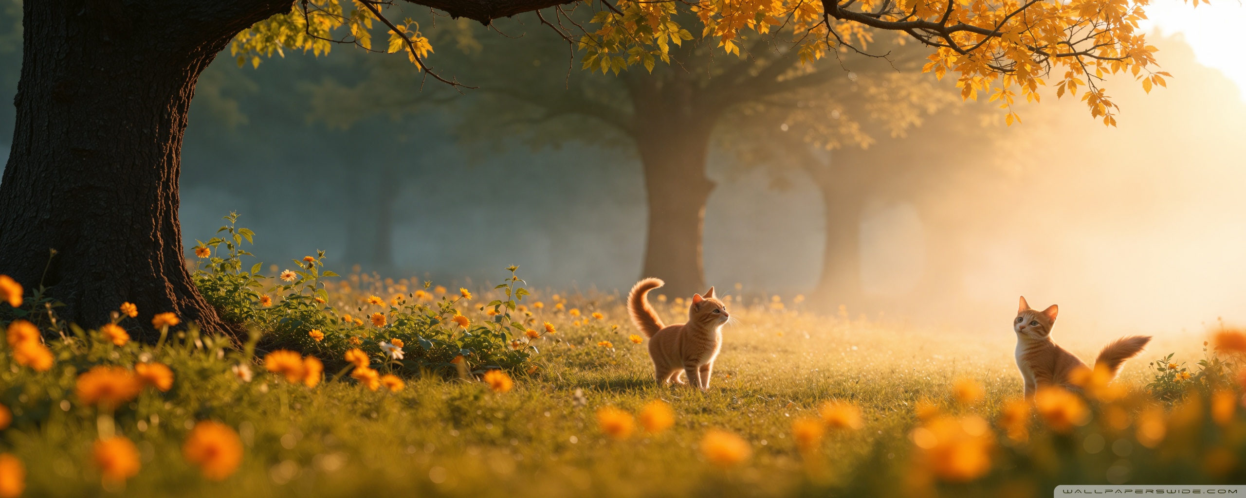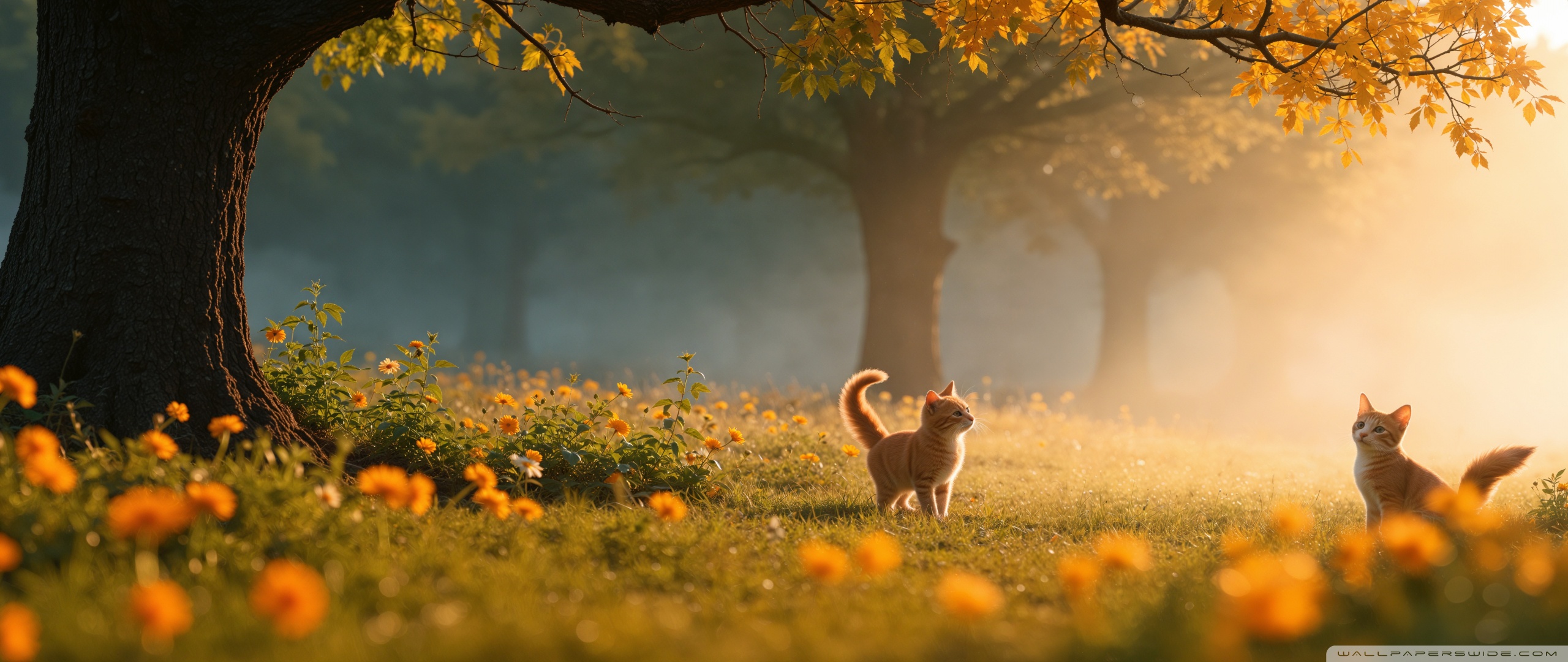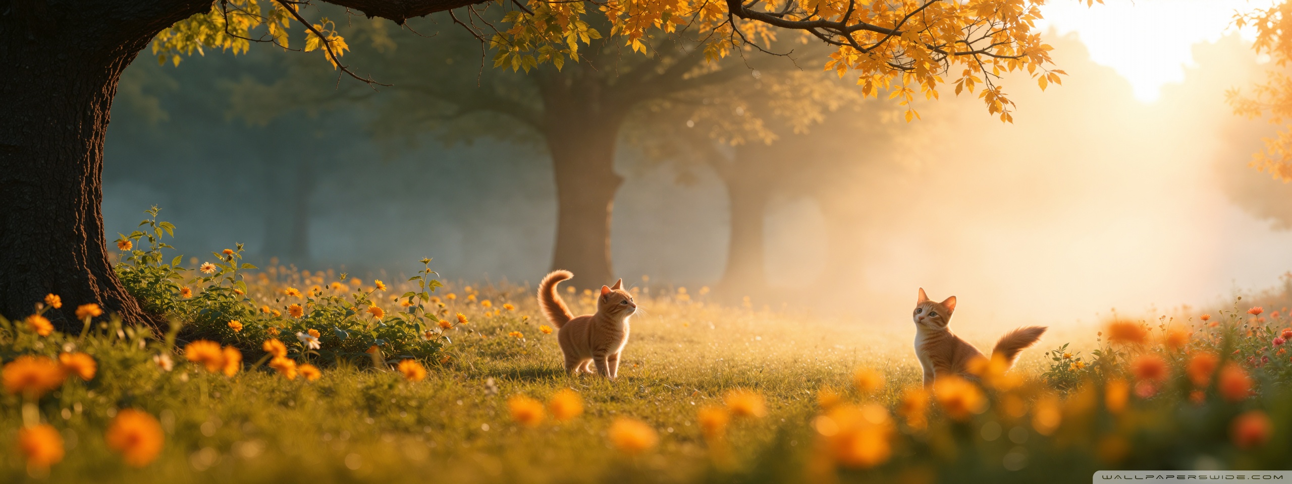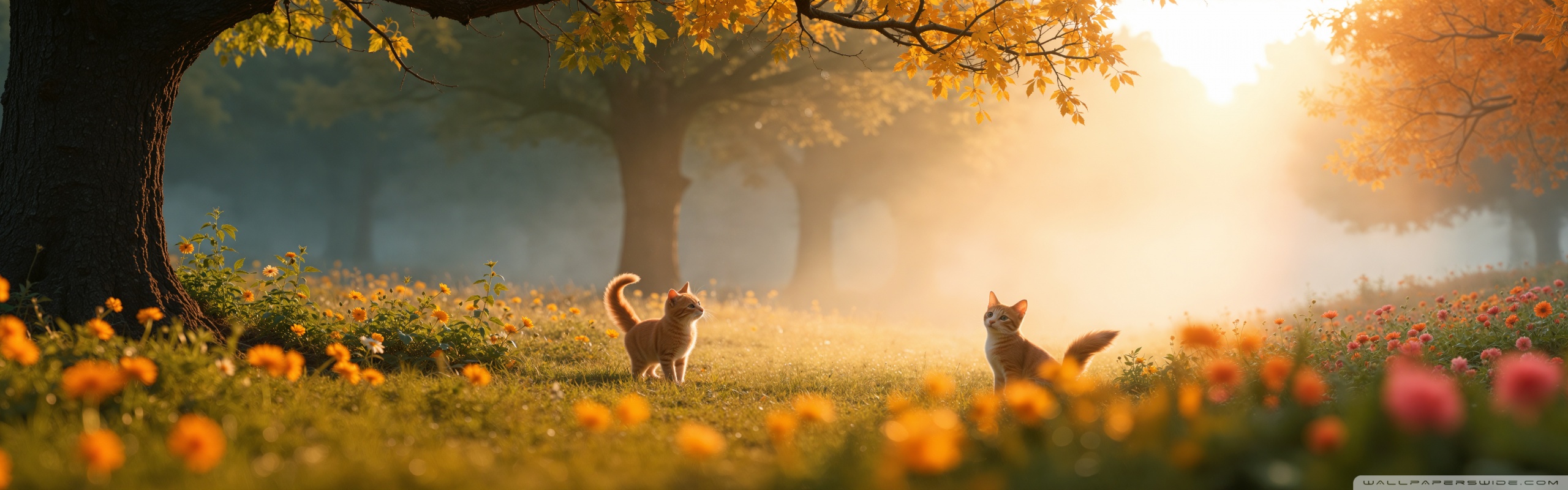 Download Playful Cats in a Flower Filled Forest Clearing 4K UHD Wallpaper