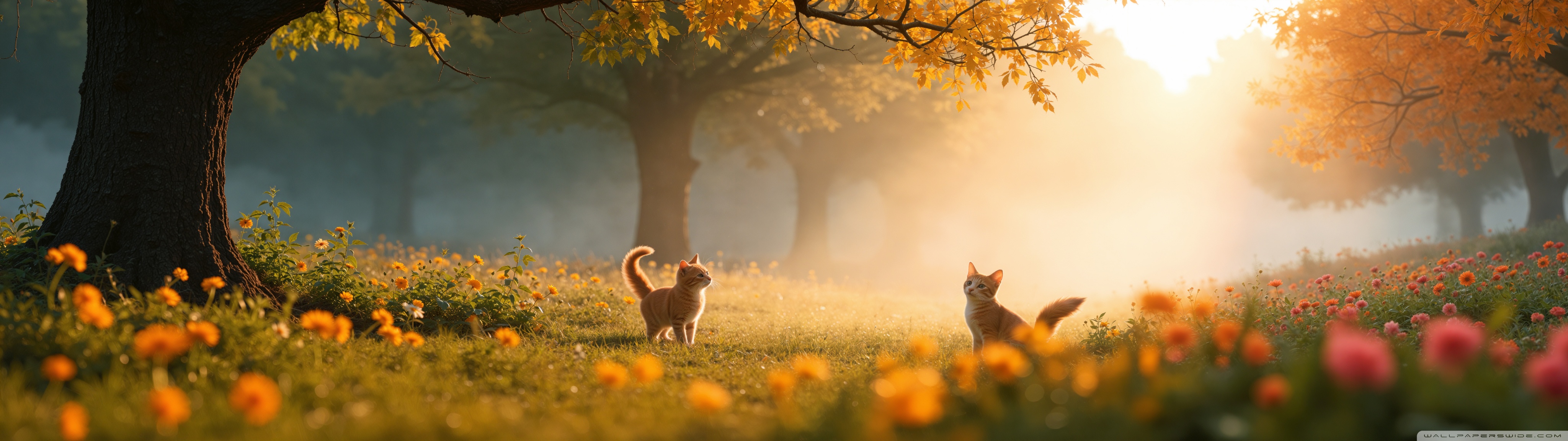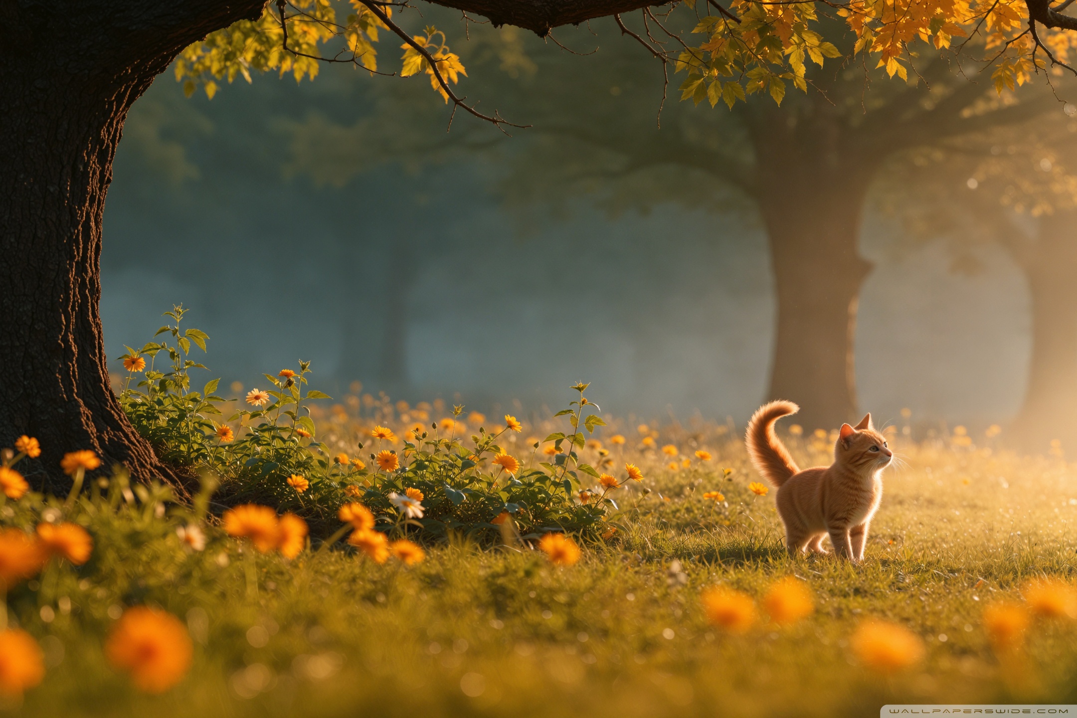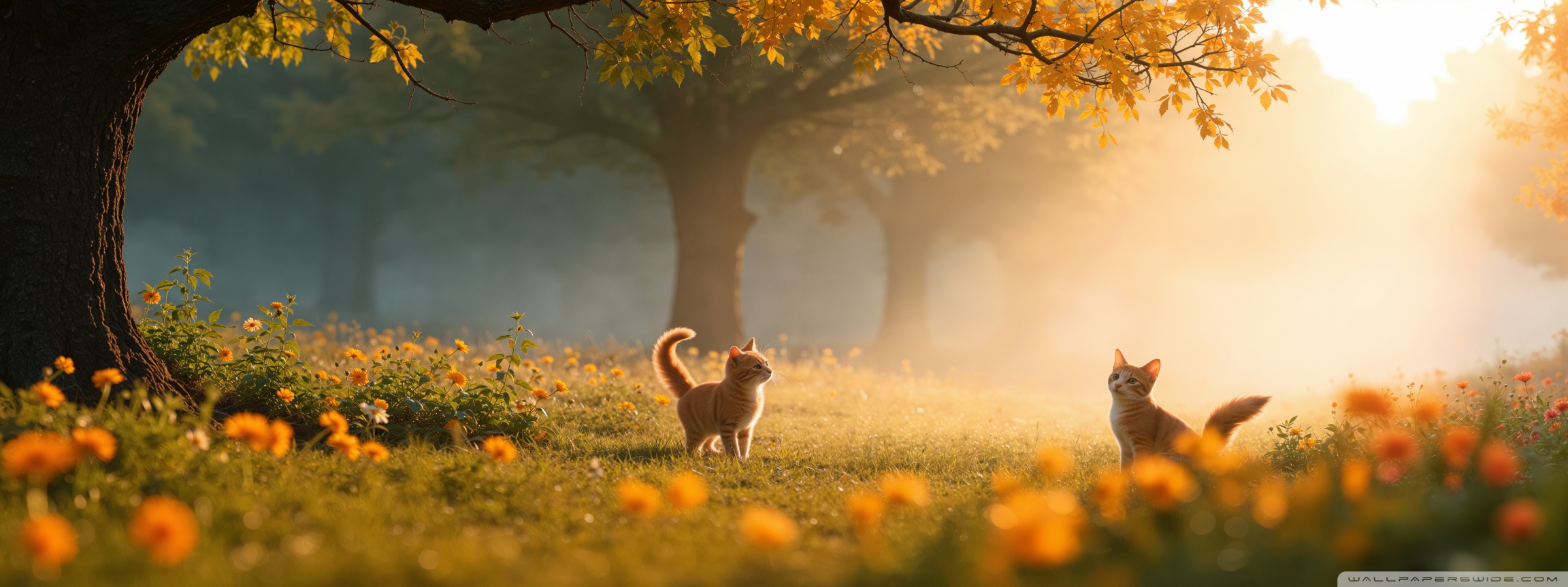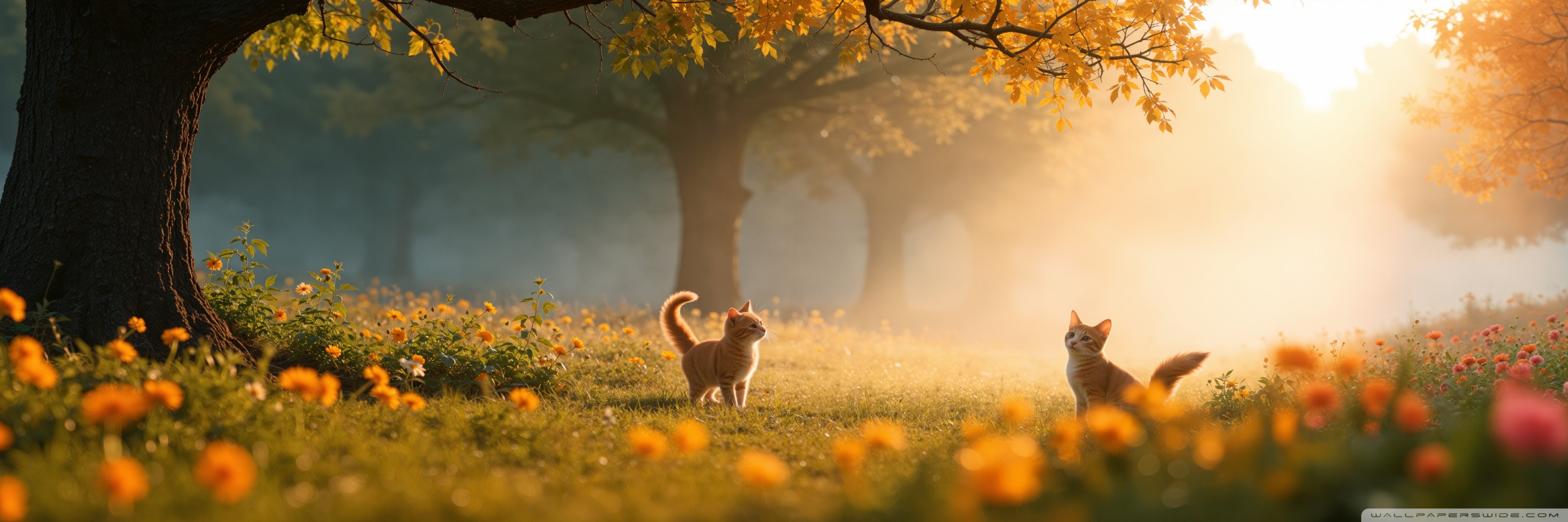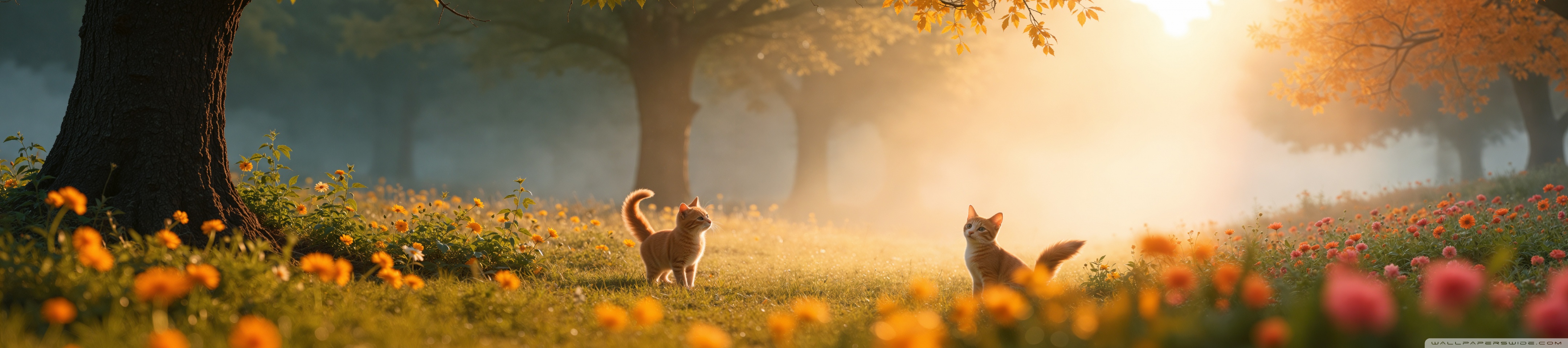 Download Playful Cats in a Flower Filled Forest Clearing 4K UHD Wallpaper