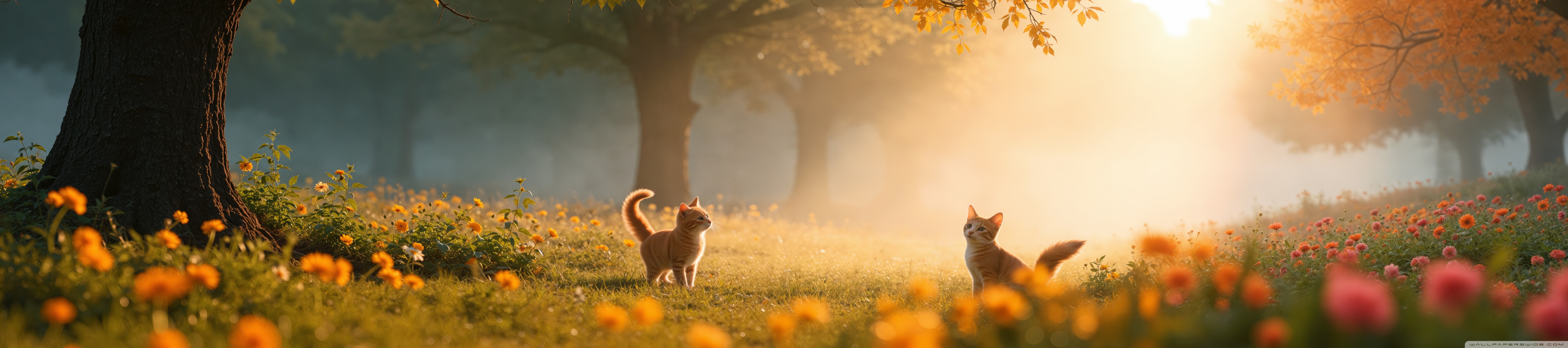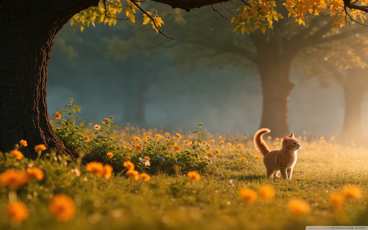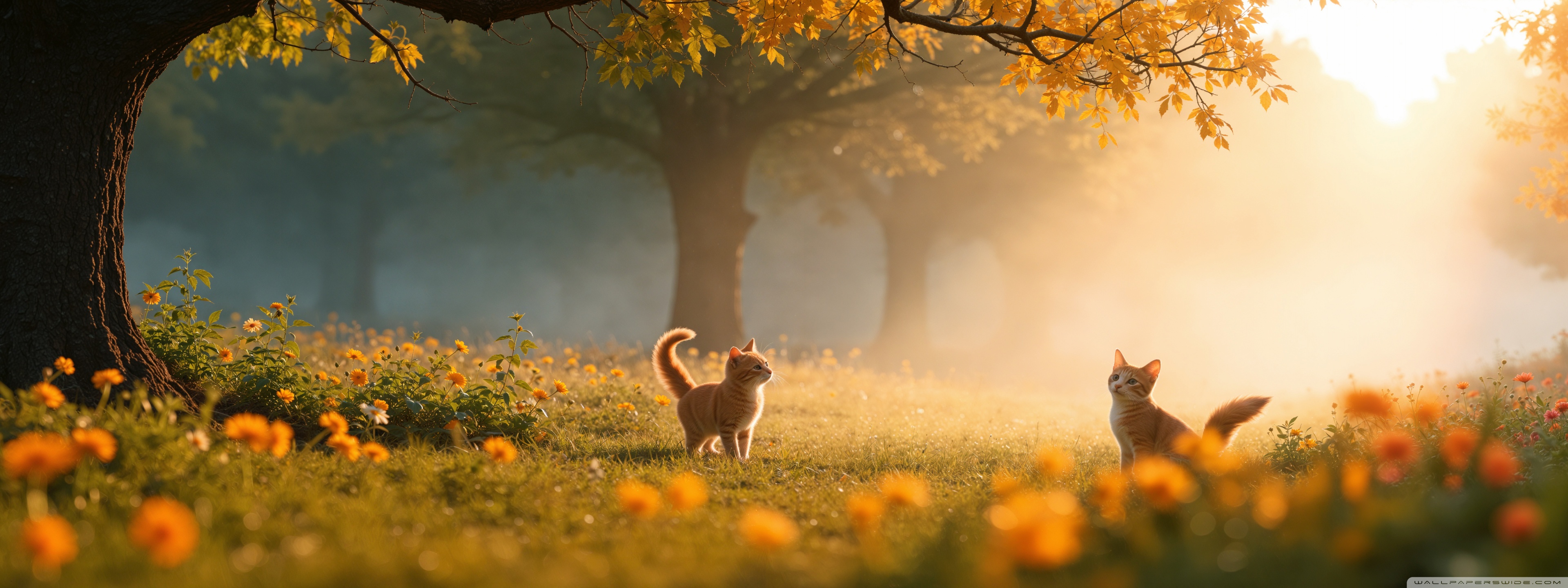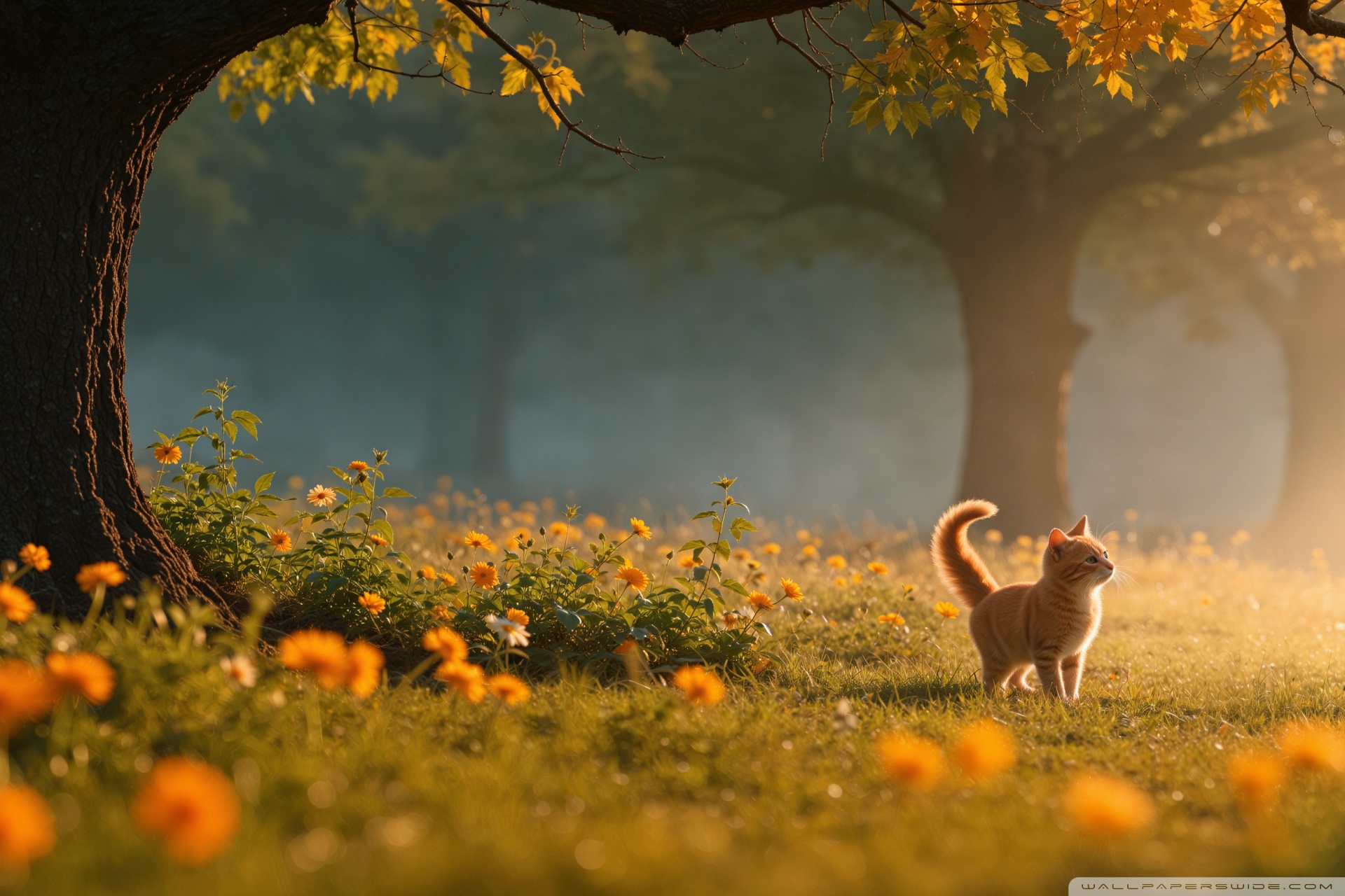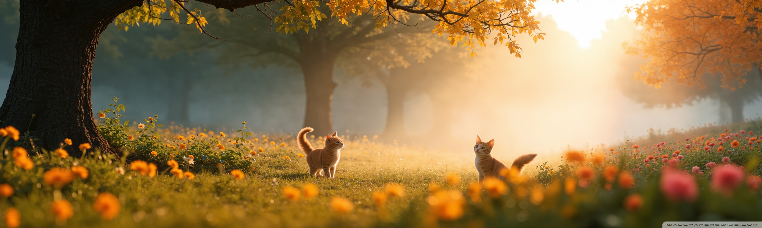 Download Playful Cats in a Flower Filled Forest Clearing 4K UHD Wallpaper