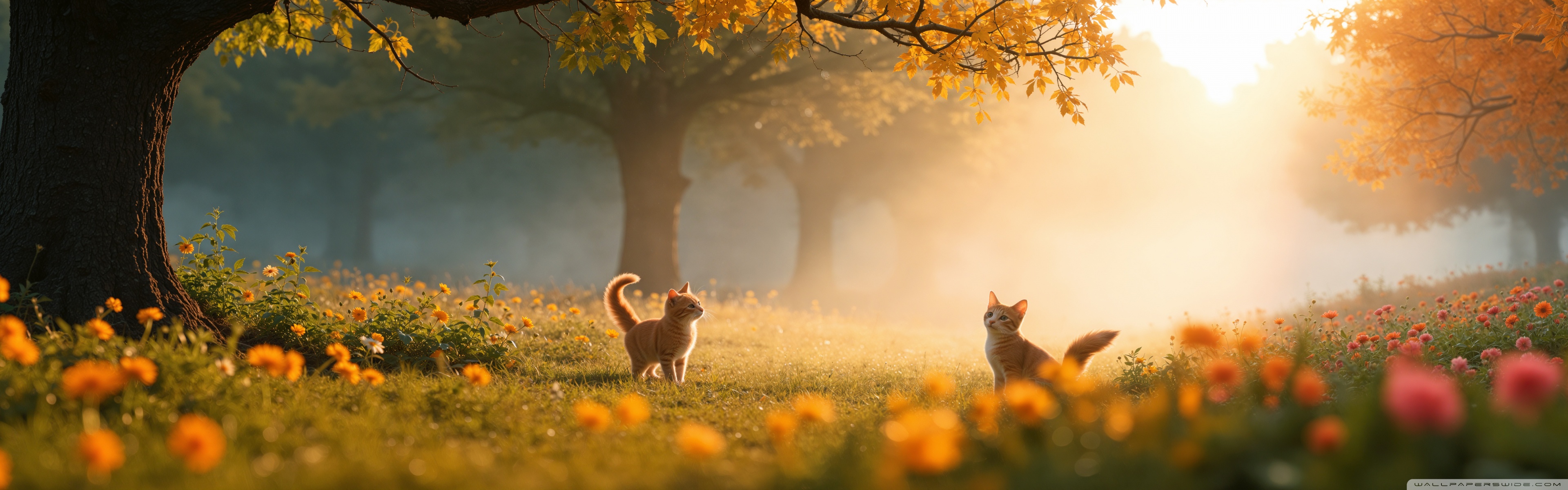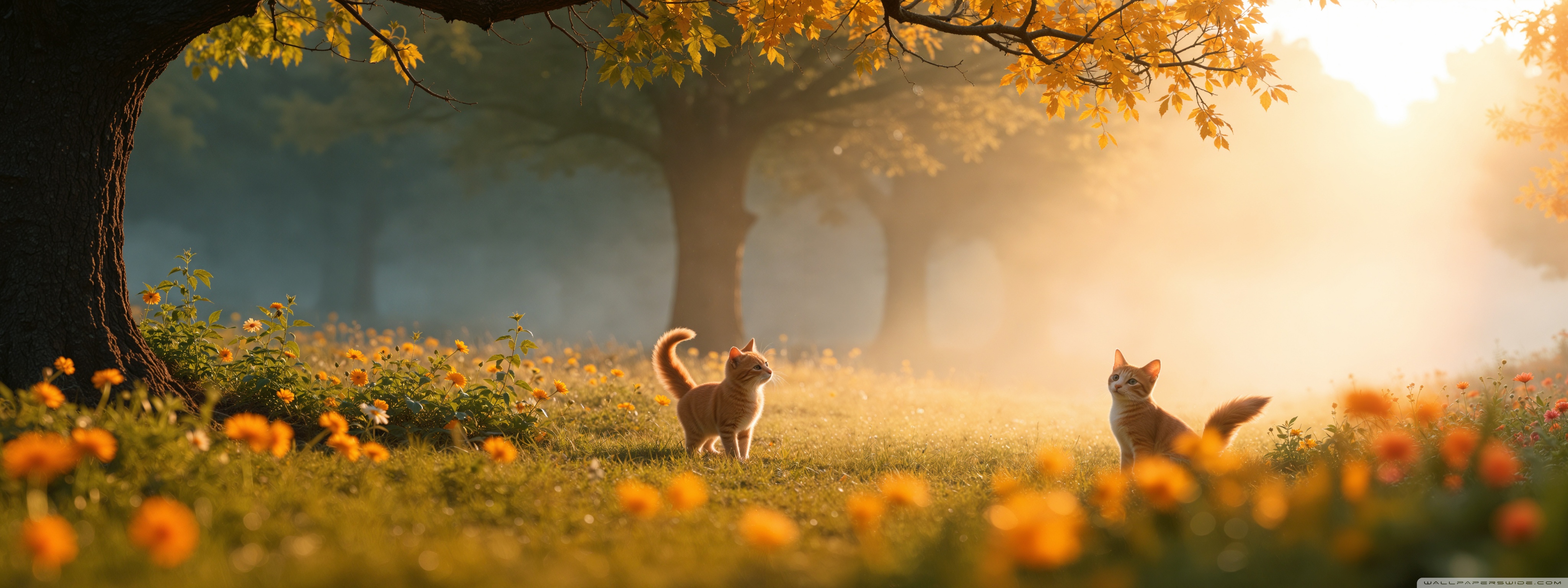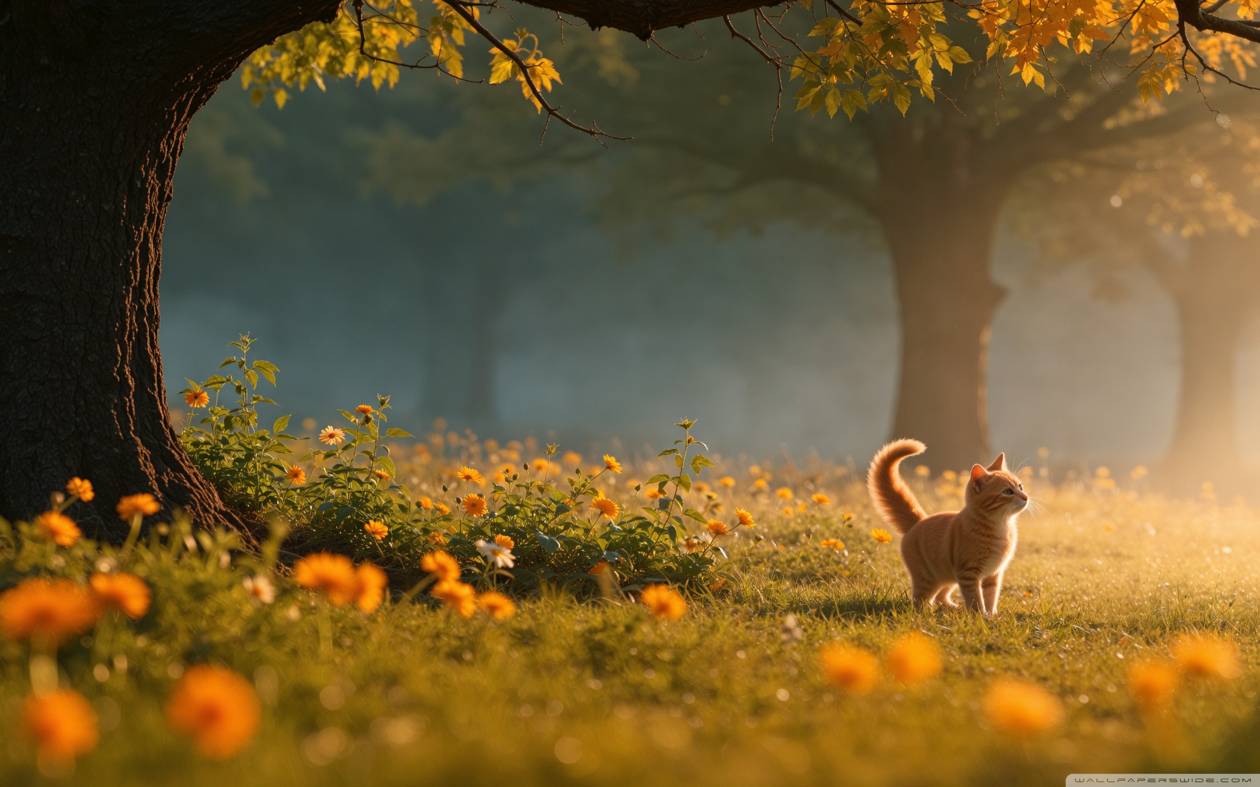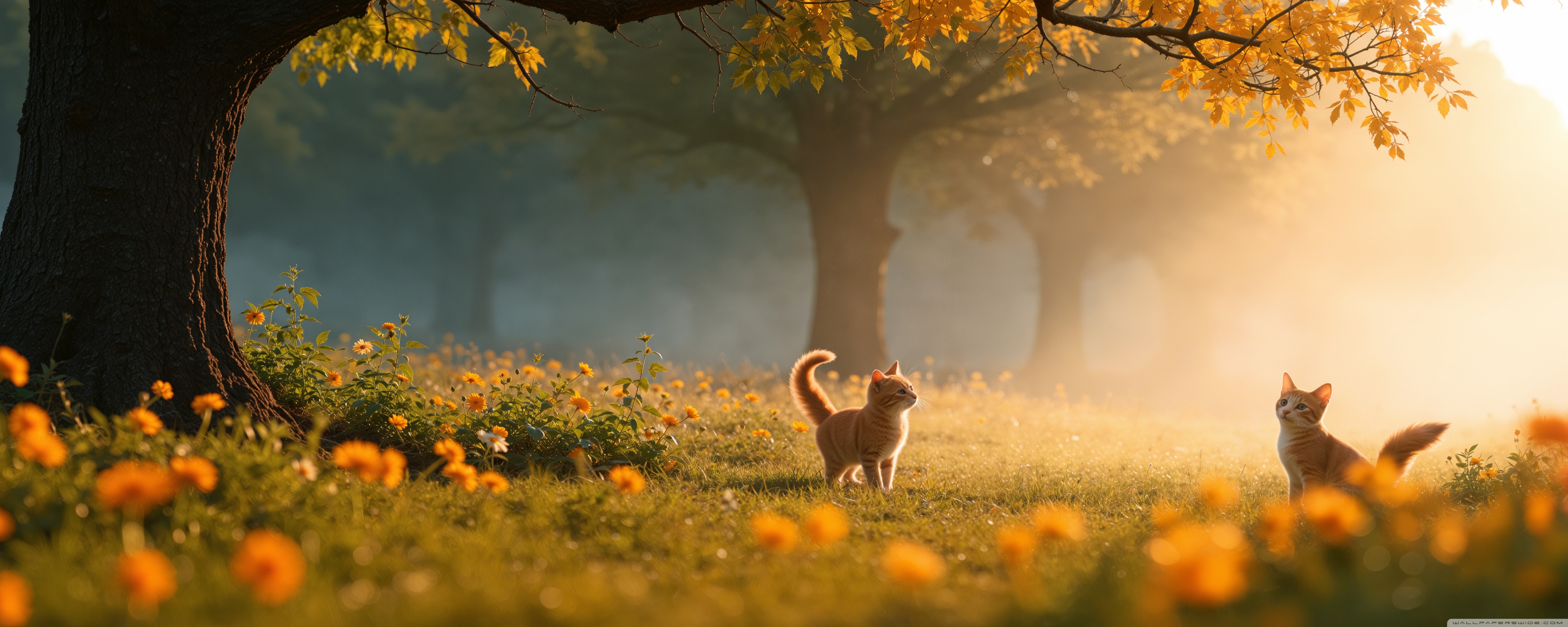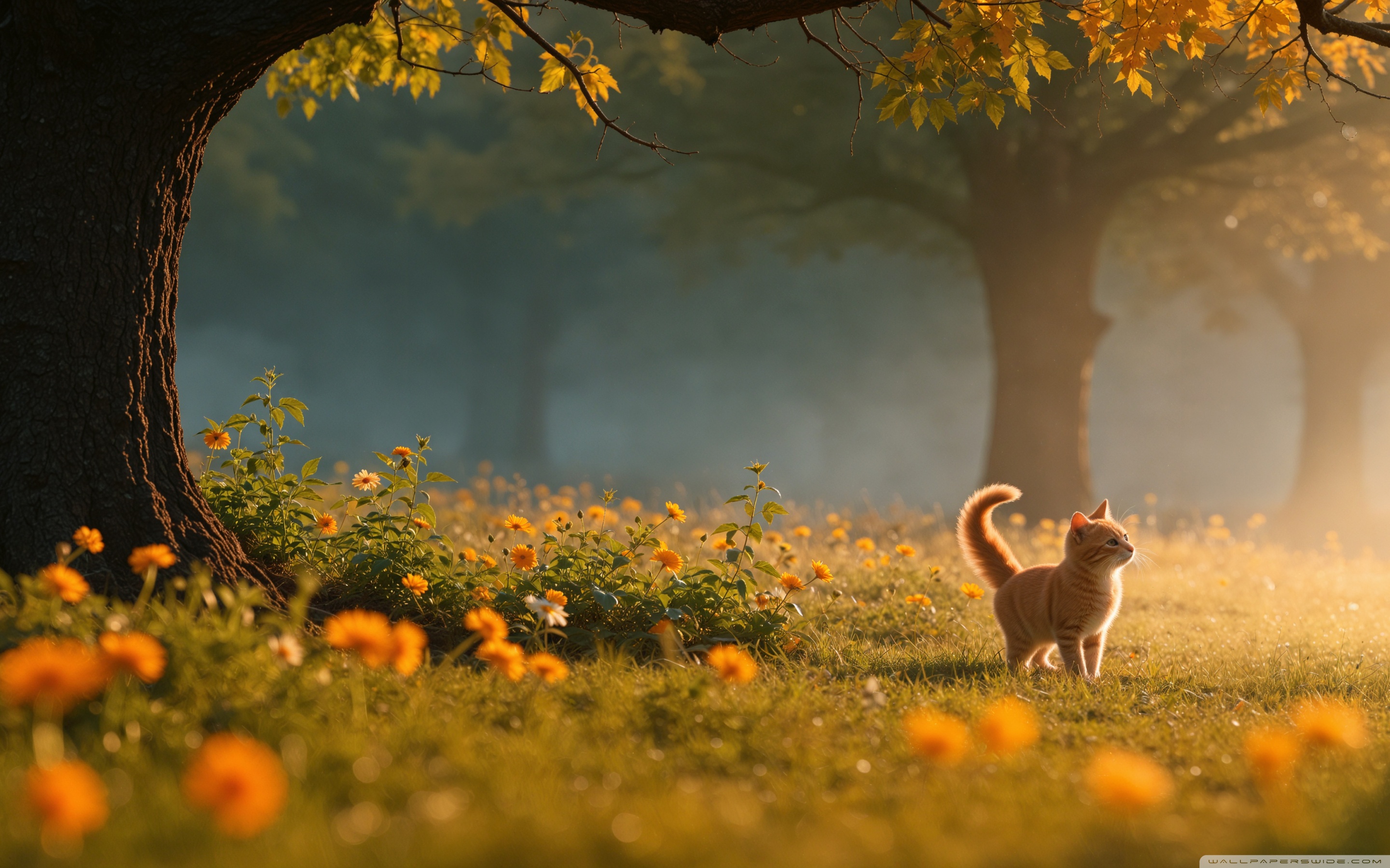 Download Playful Cats in a Flower Filled Forest Clearing 4K UHD Wallpaper