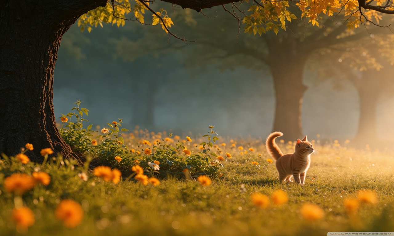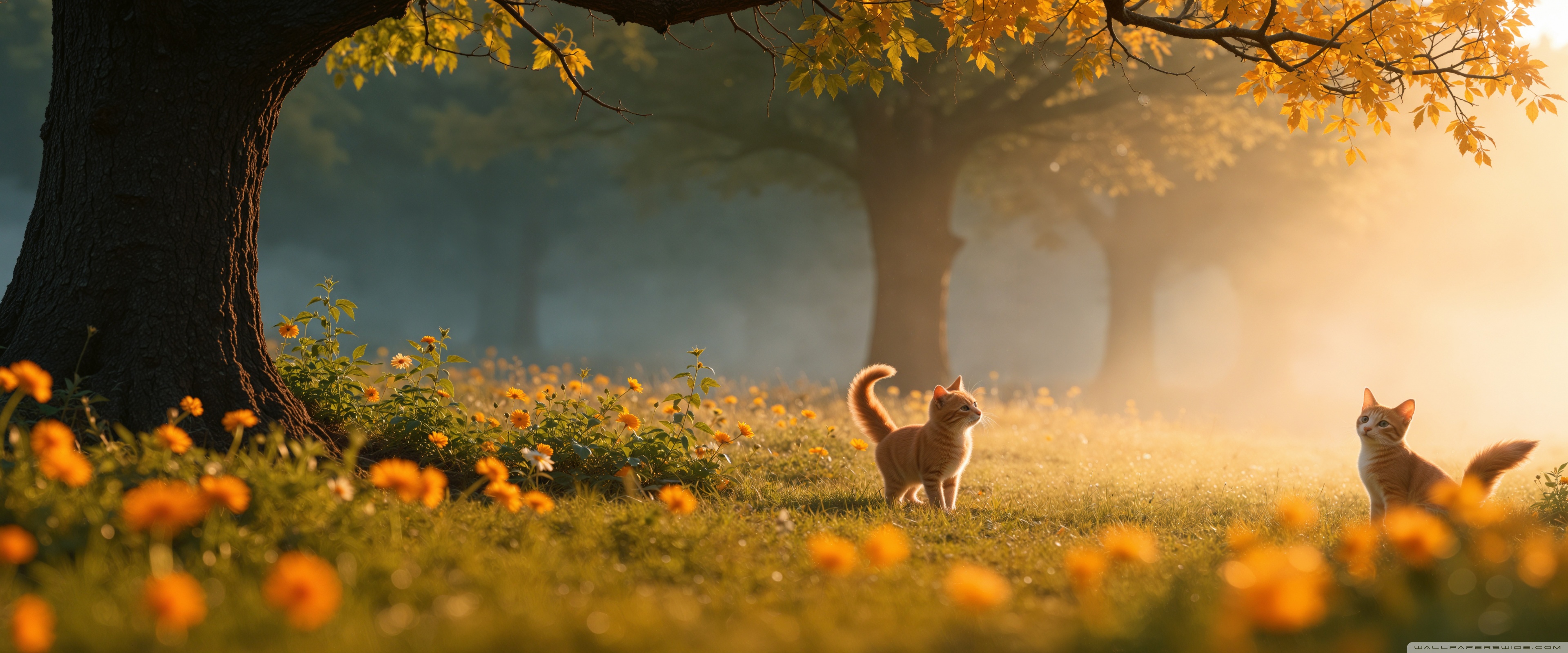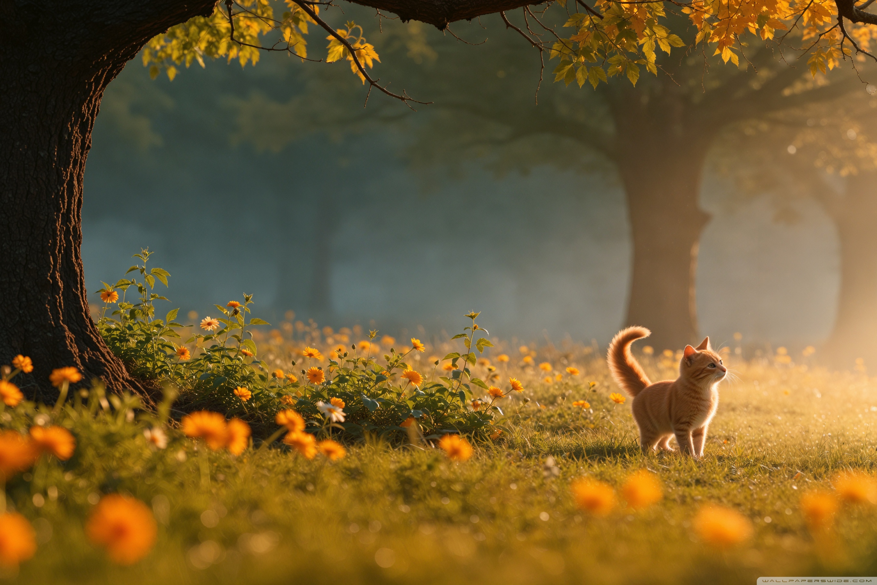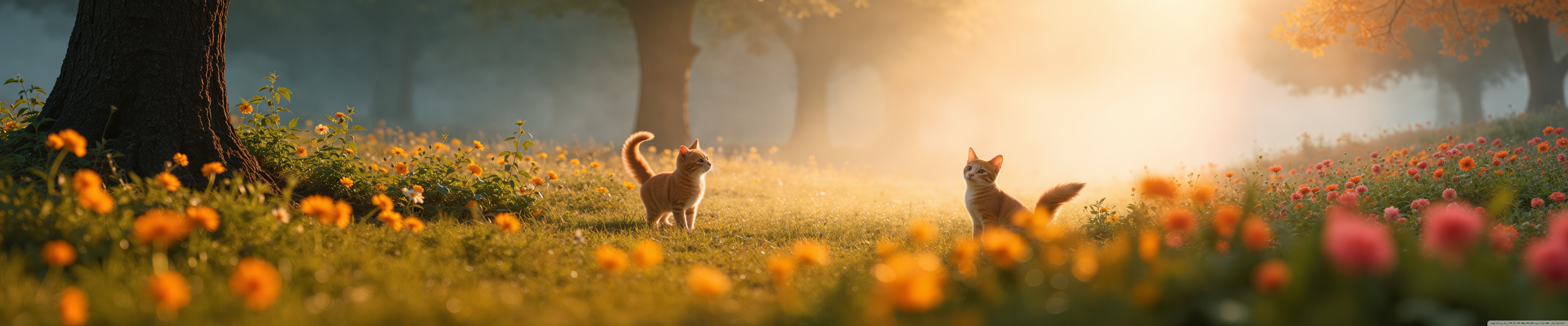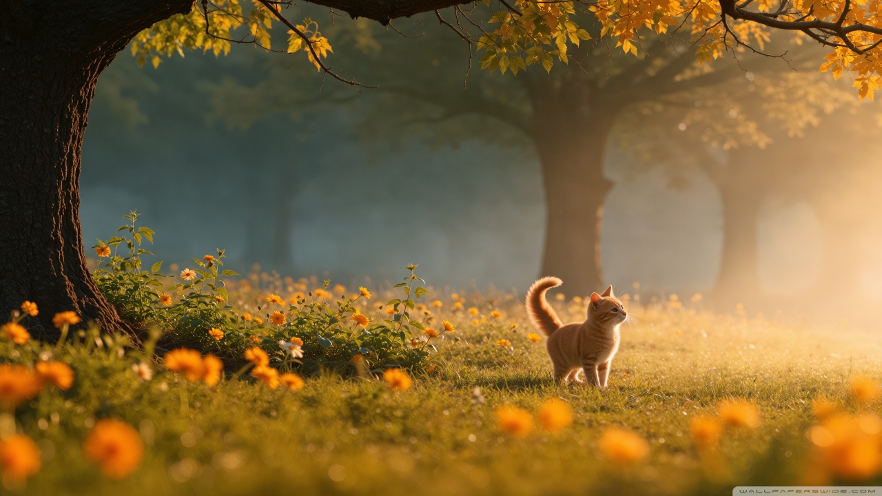 Download Playful Cats in a Flower Filled Forest Clearing 4K UHD Wallpaper