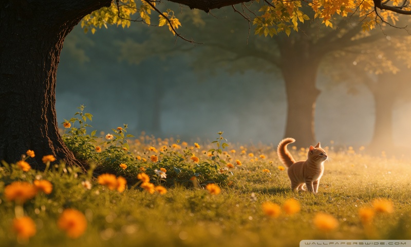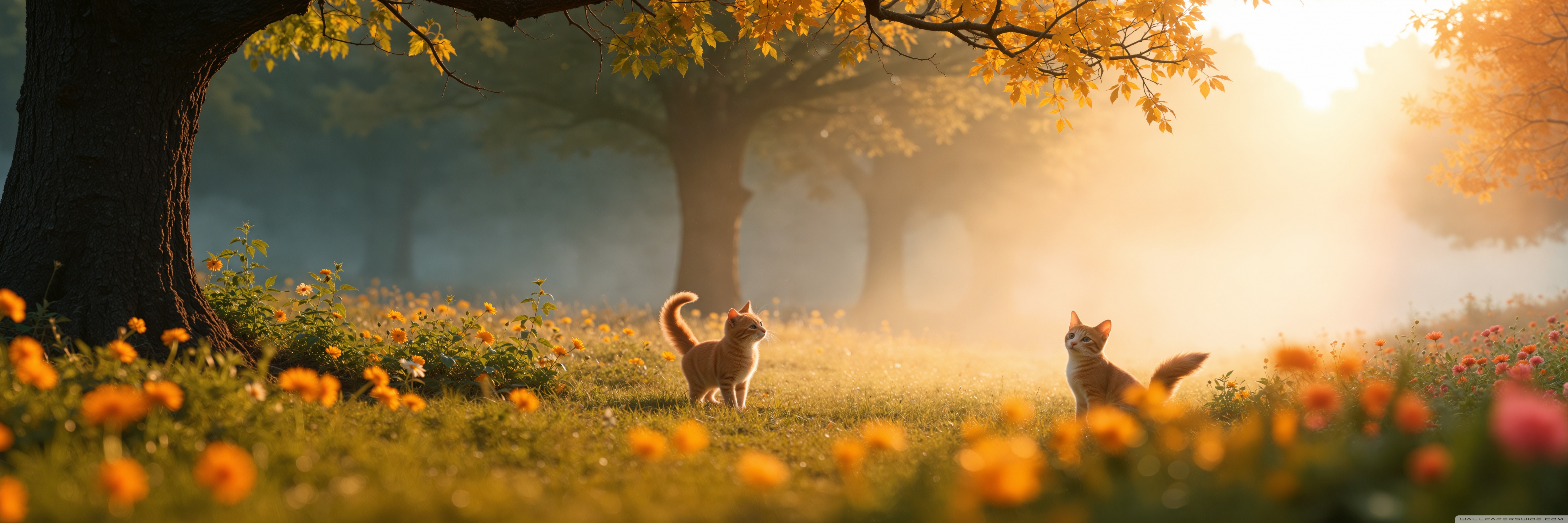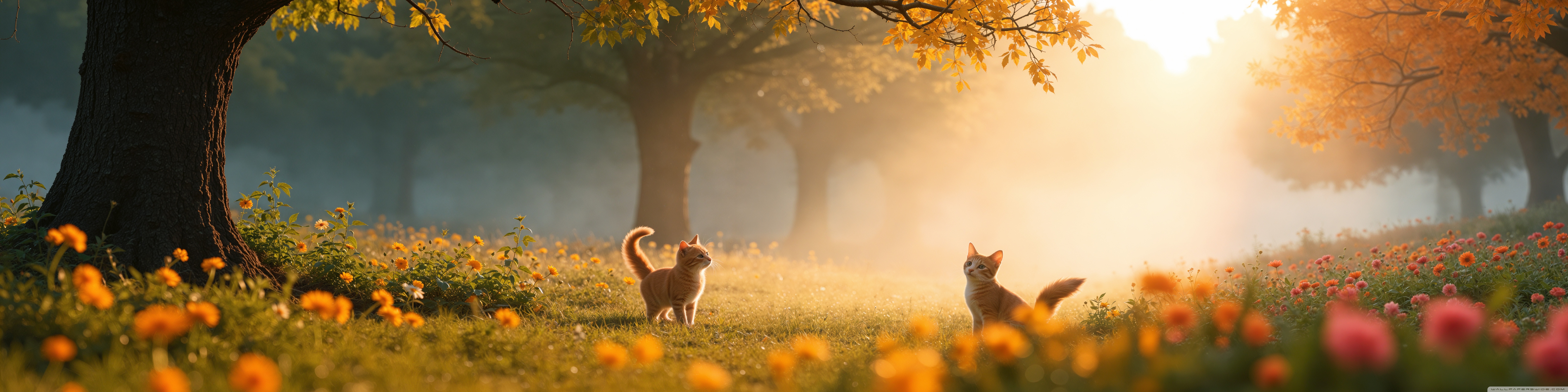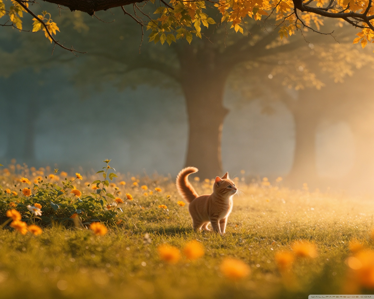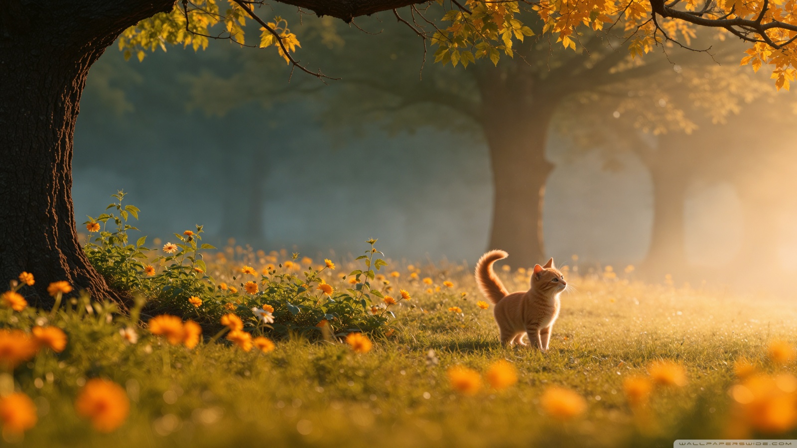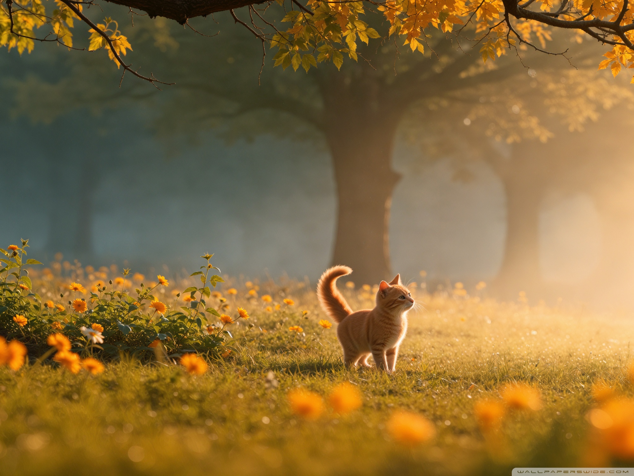 Download Playful Cats in a Flower Filled Forest Clearing 4K UHD Wallpaper