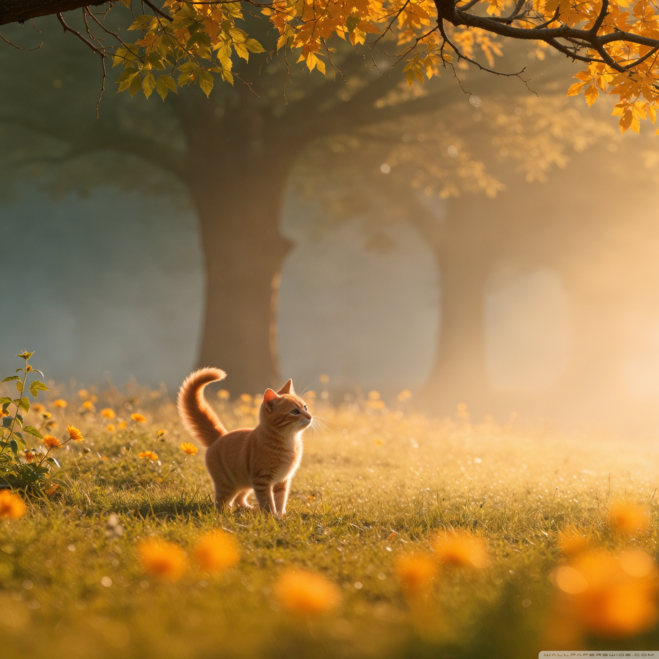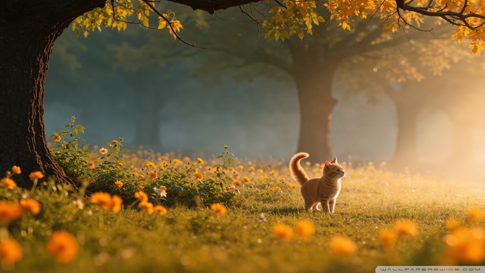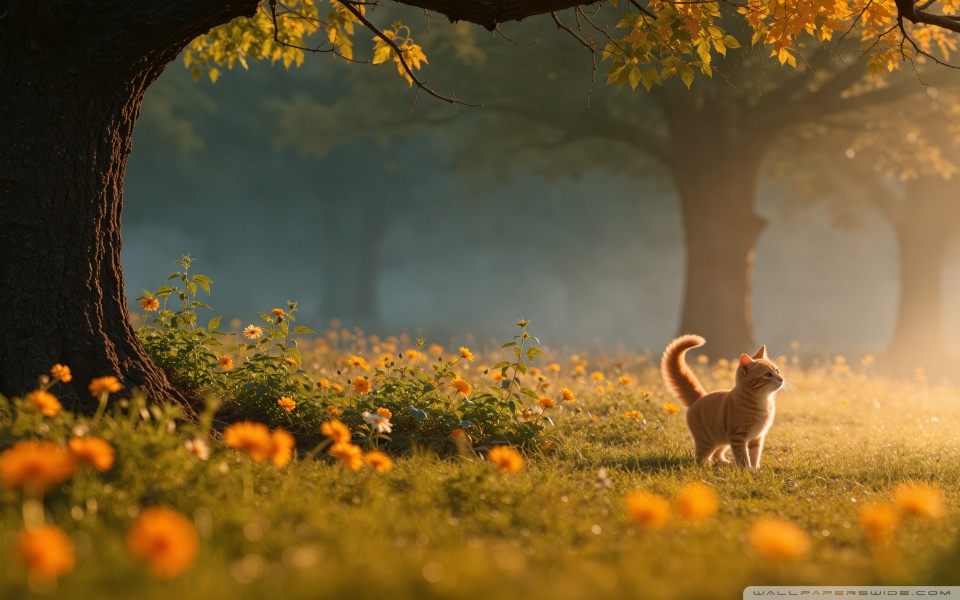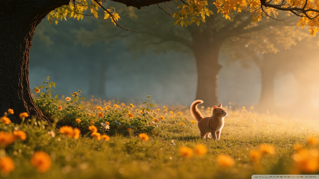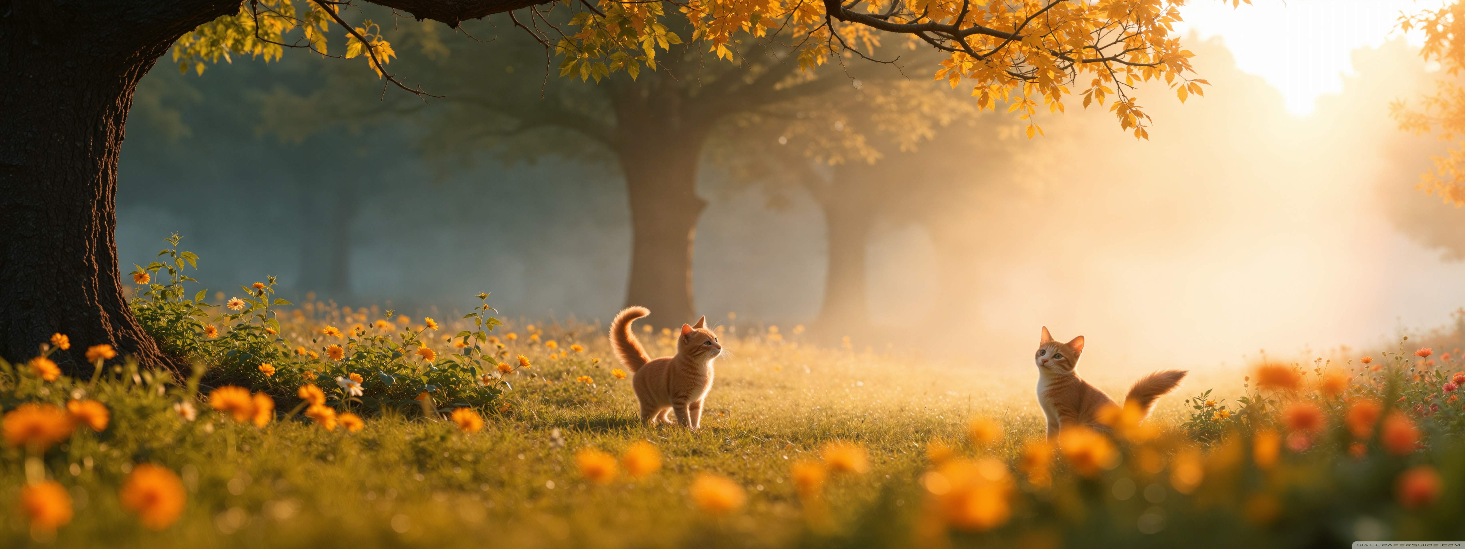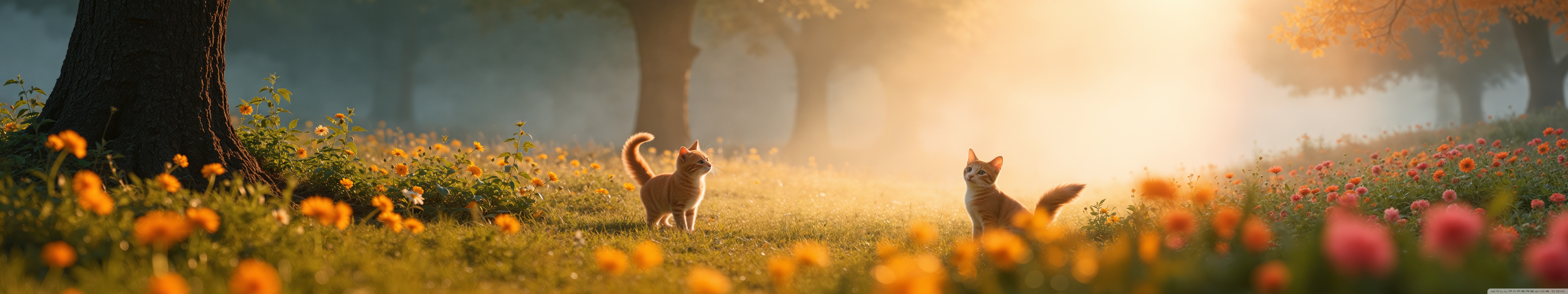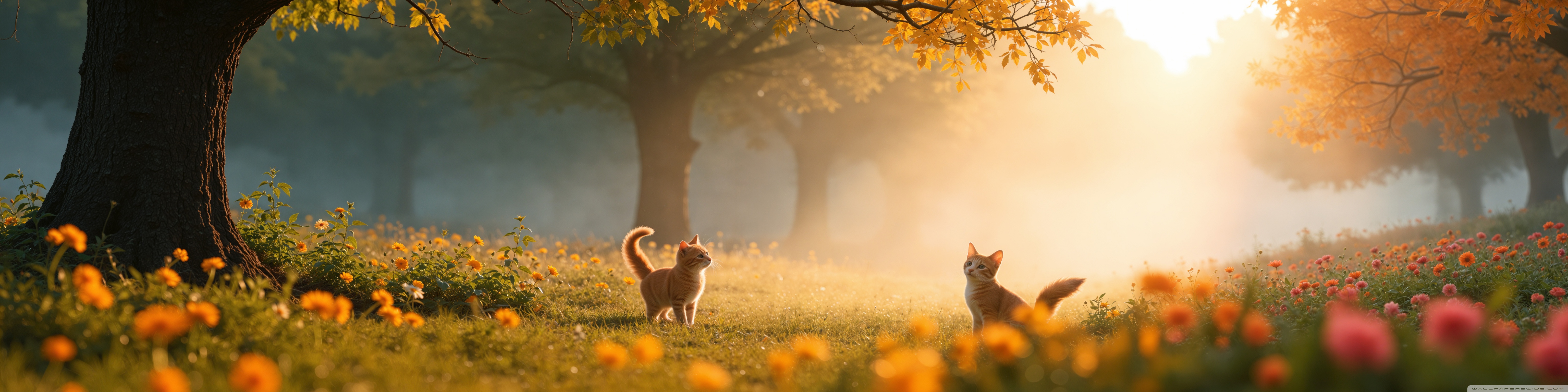 Download Playful Cats in a Flower Filled Forest Clearing 4K UHD Wallpaper