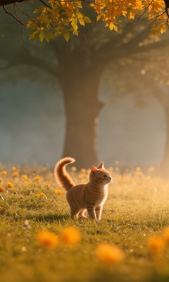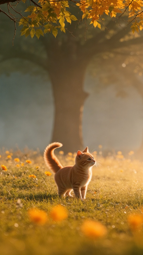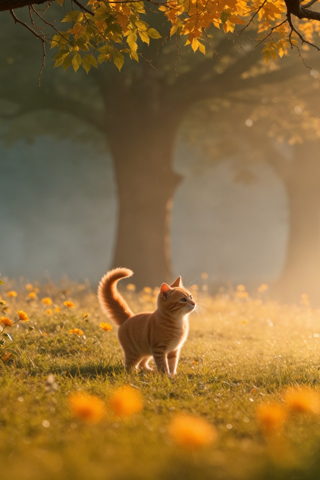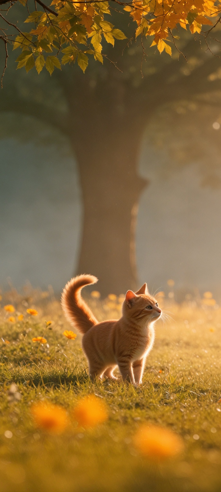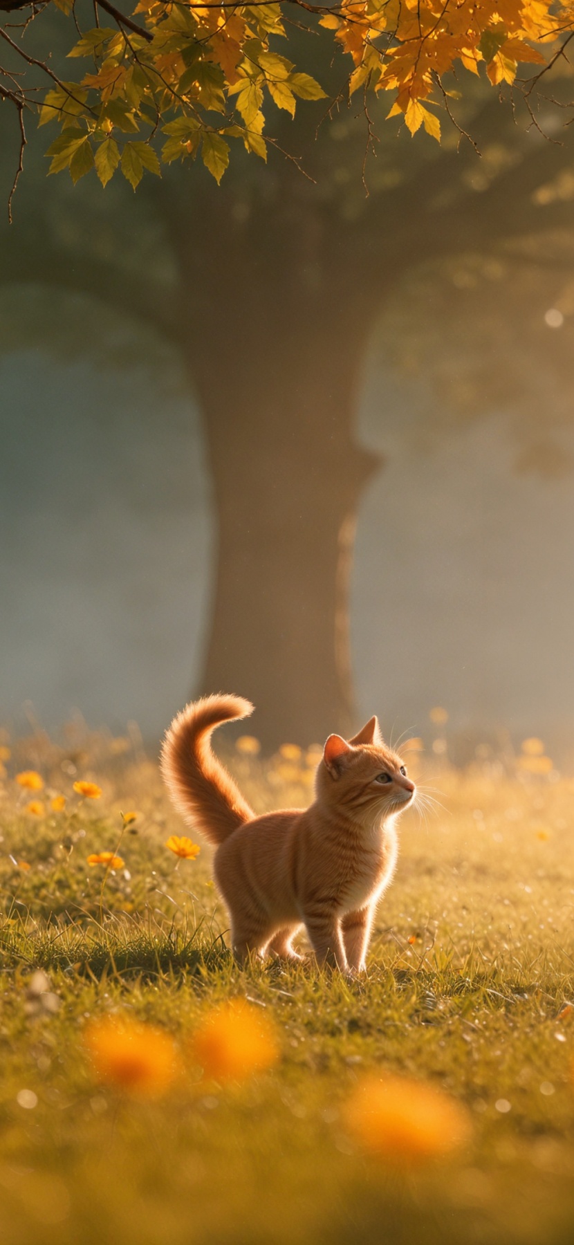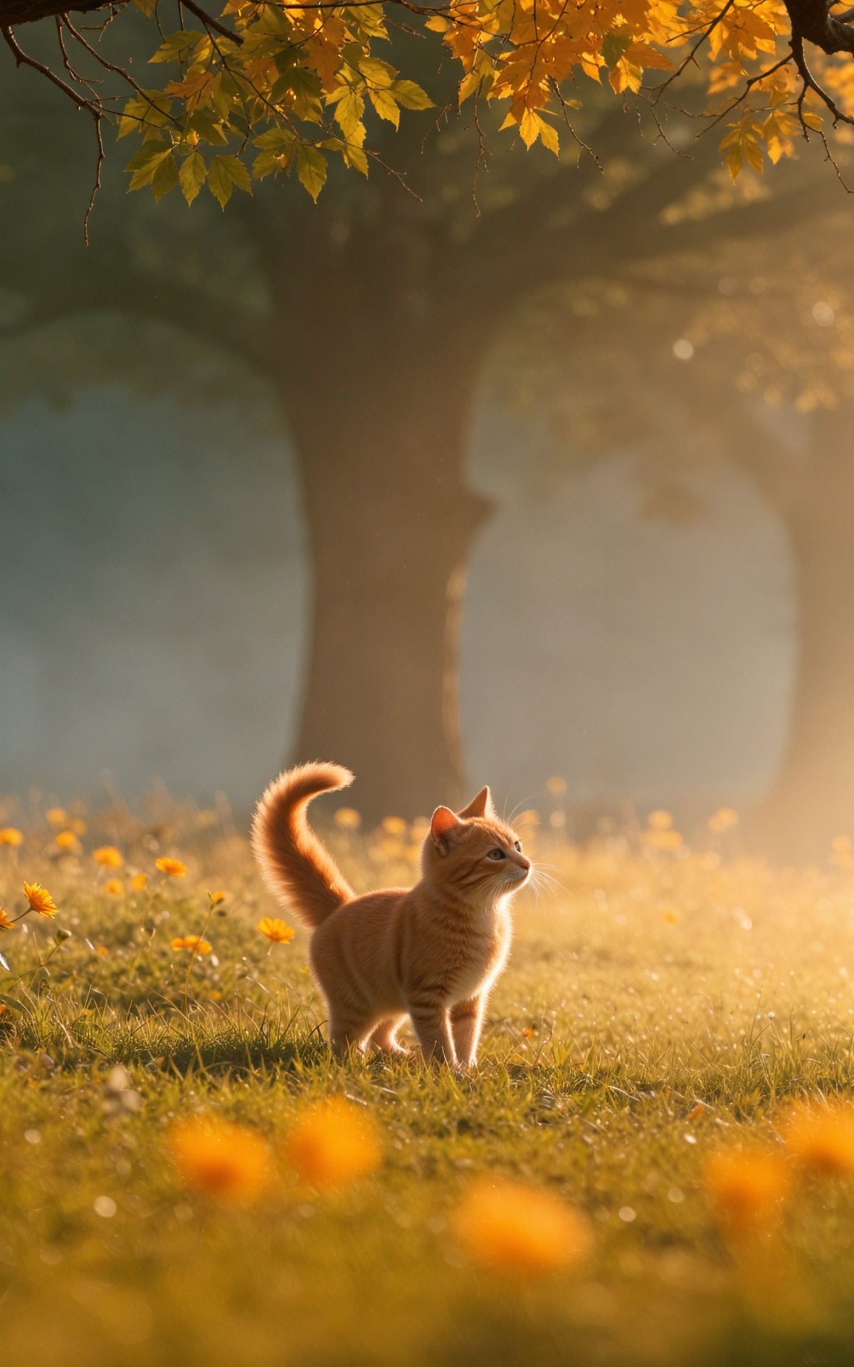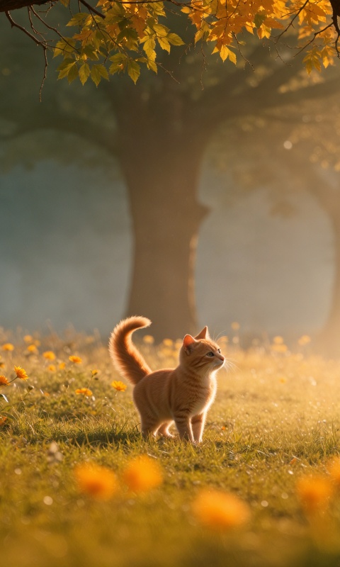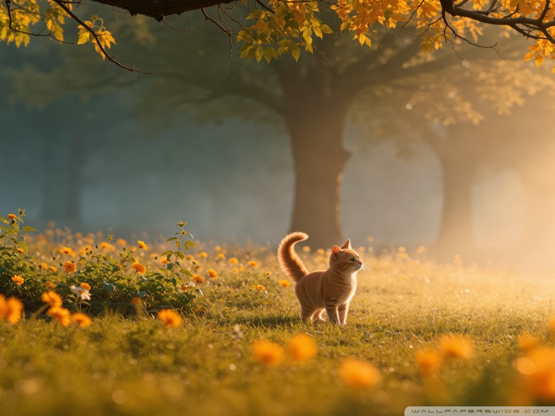 Download Playful Cats in a Flower Filled Forest Clearing 4K UHD Wallpaper