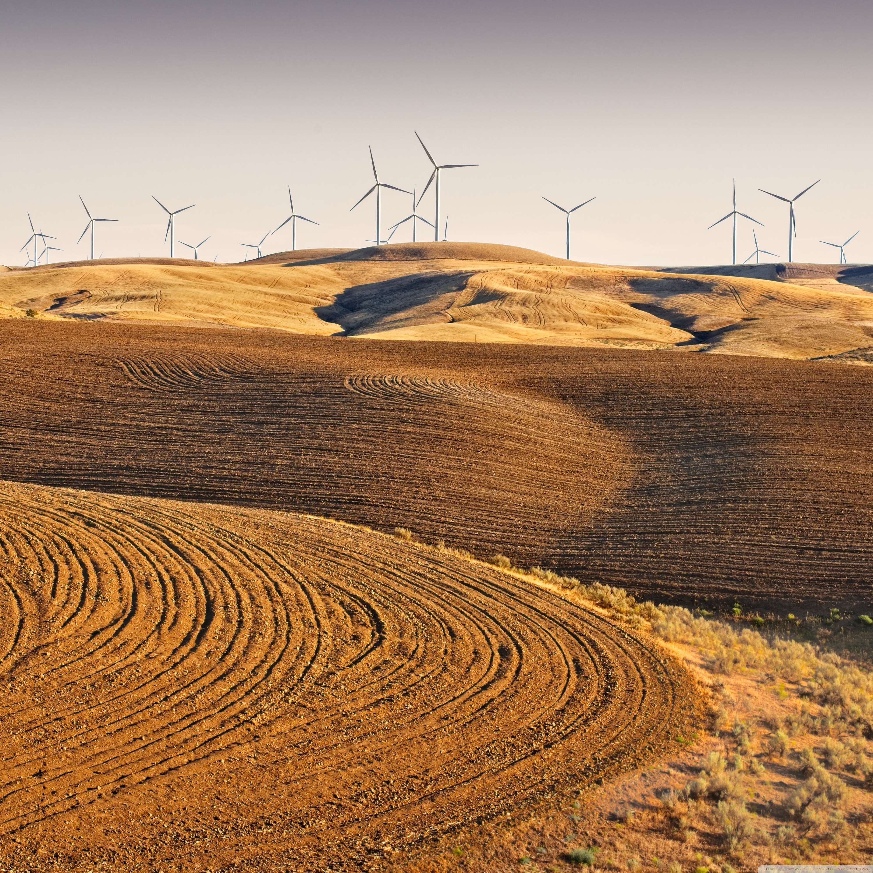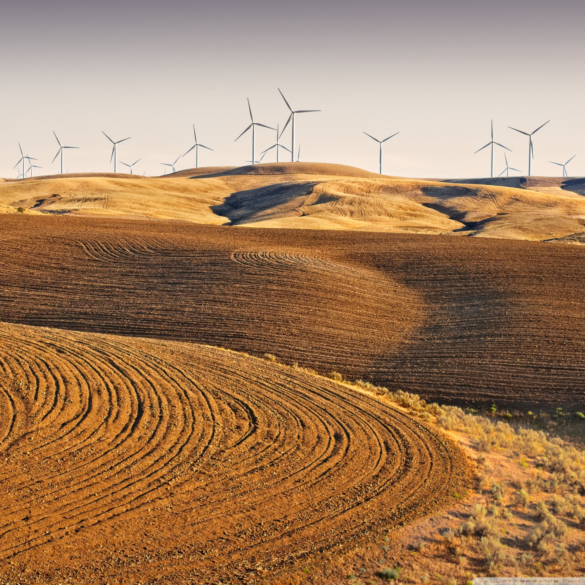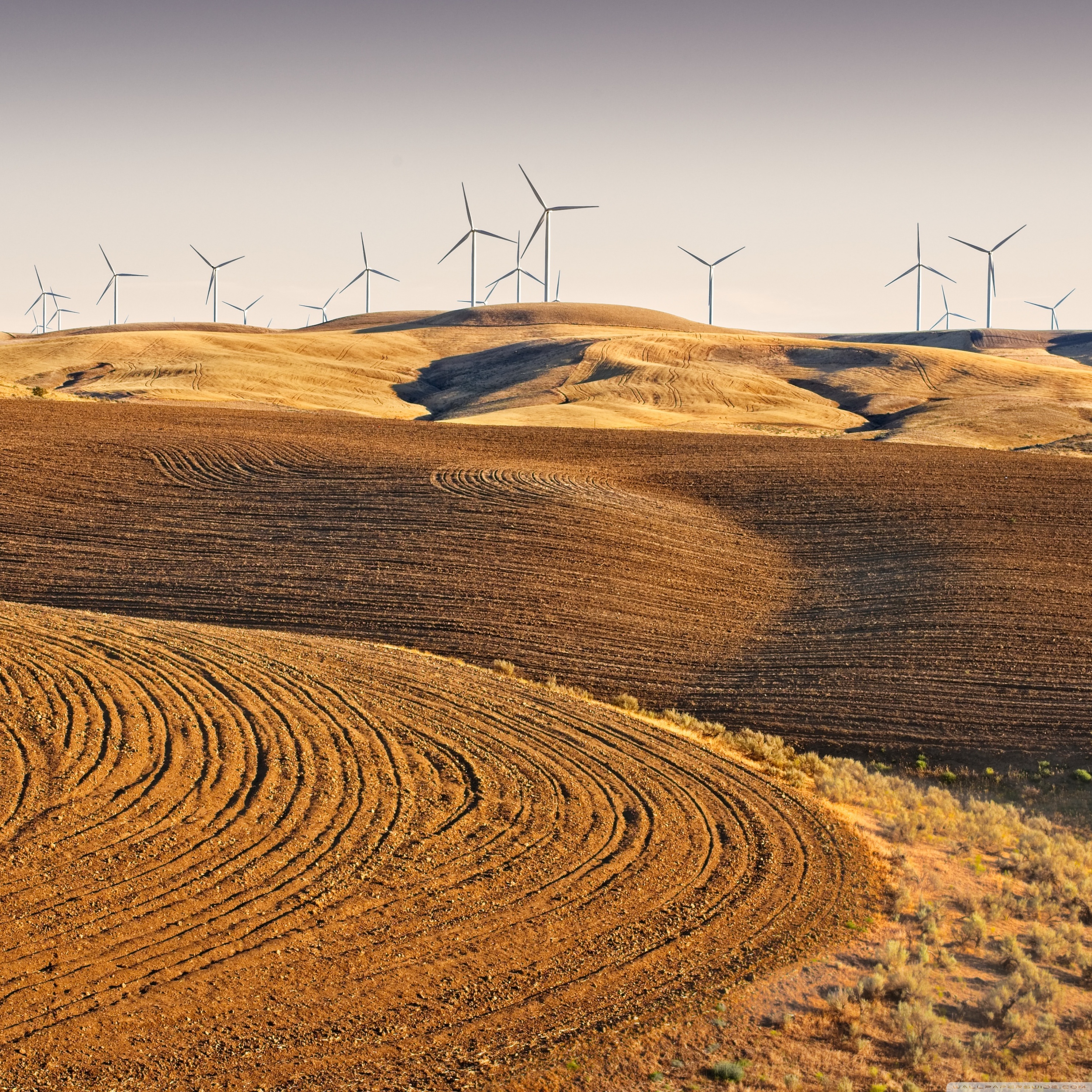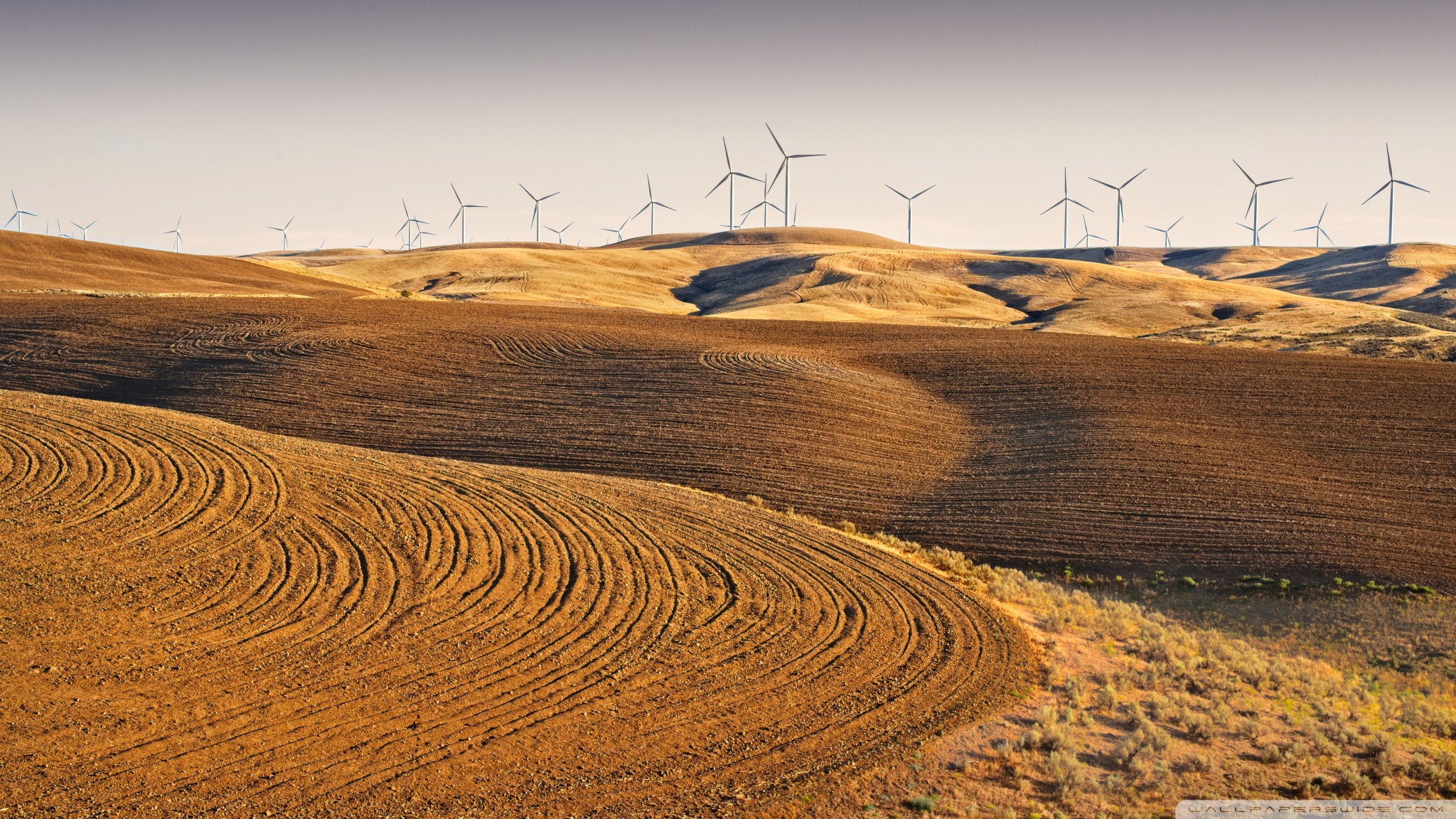 Download Plowed Fields and Wind Turbines 4K UHD Wallpaper