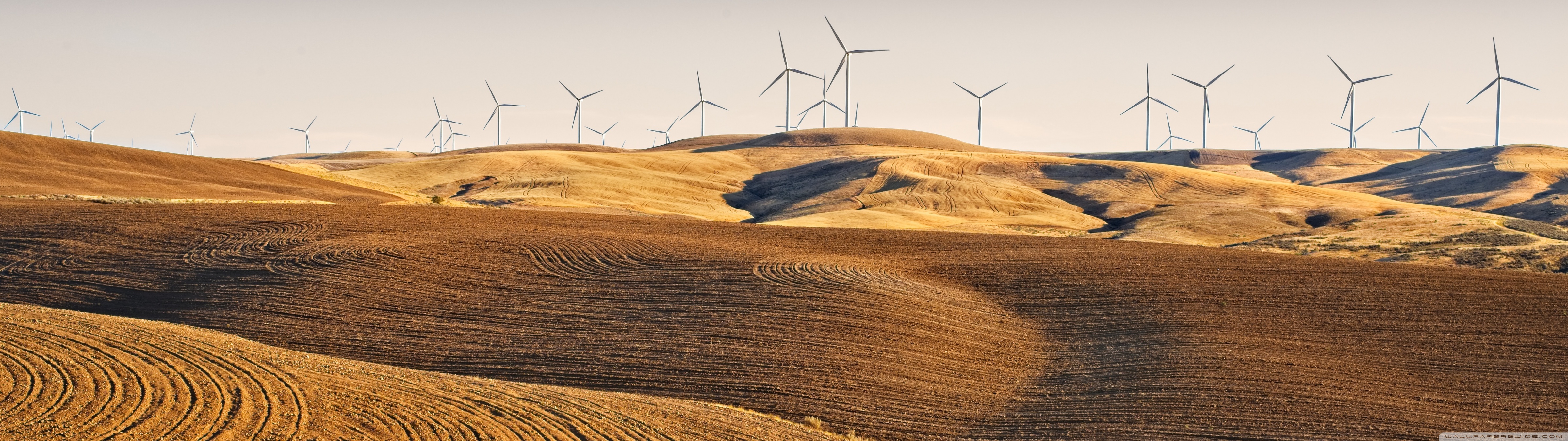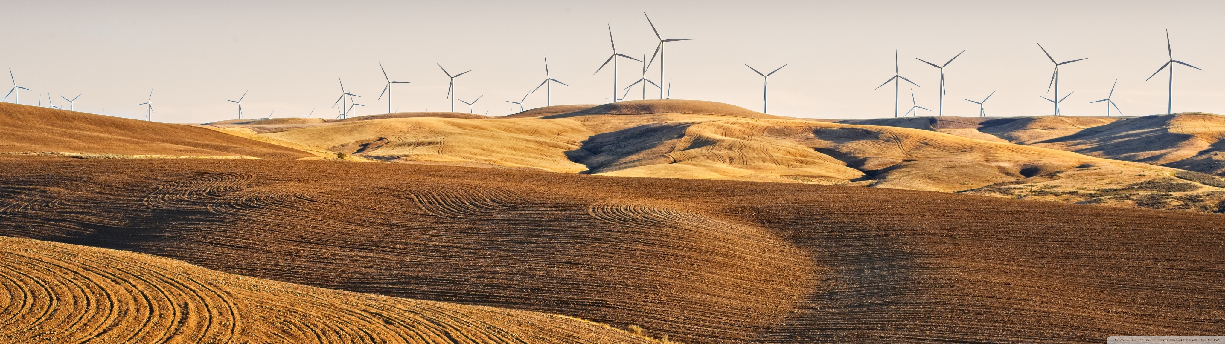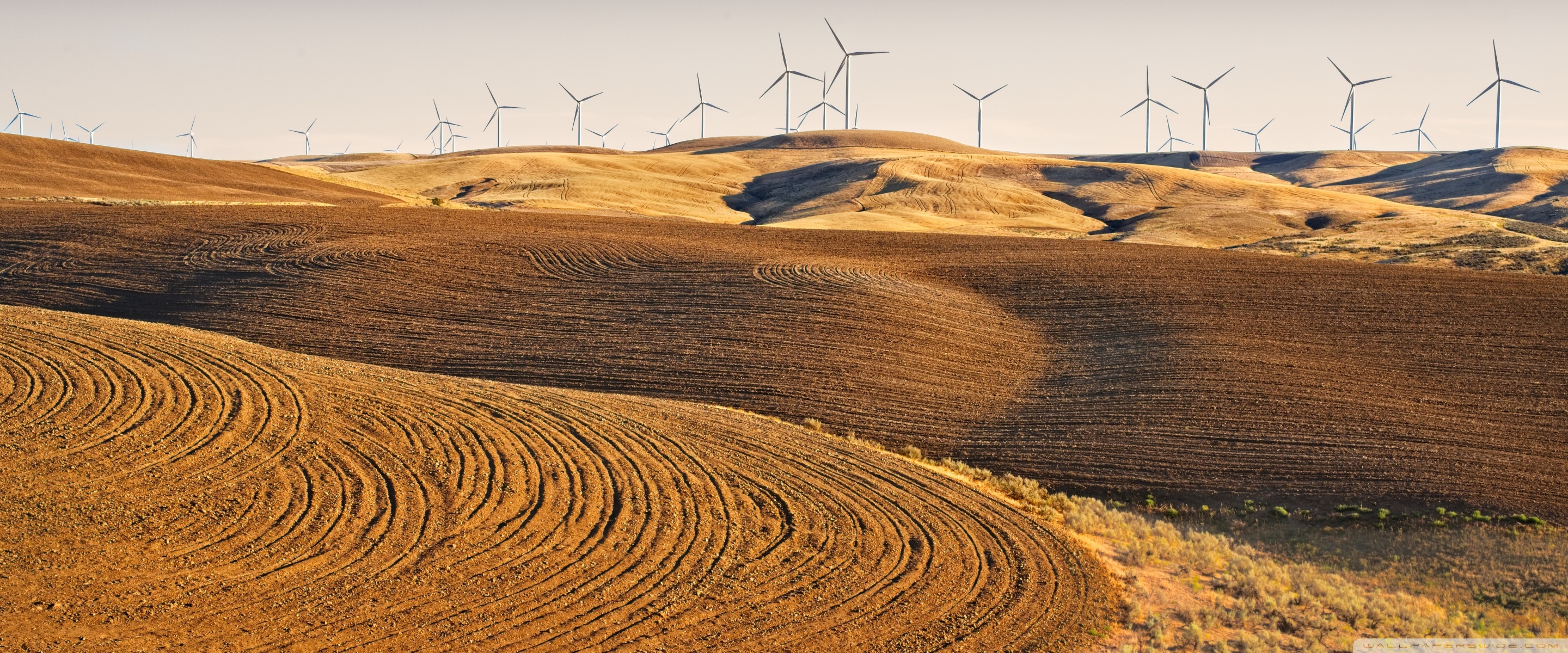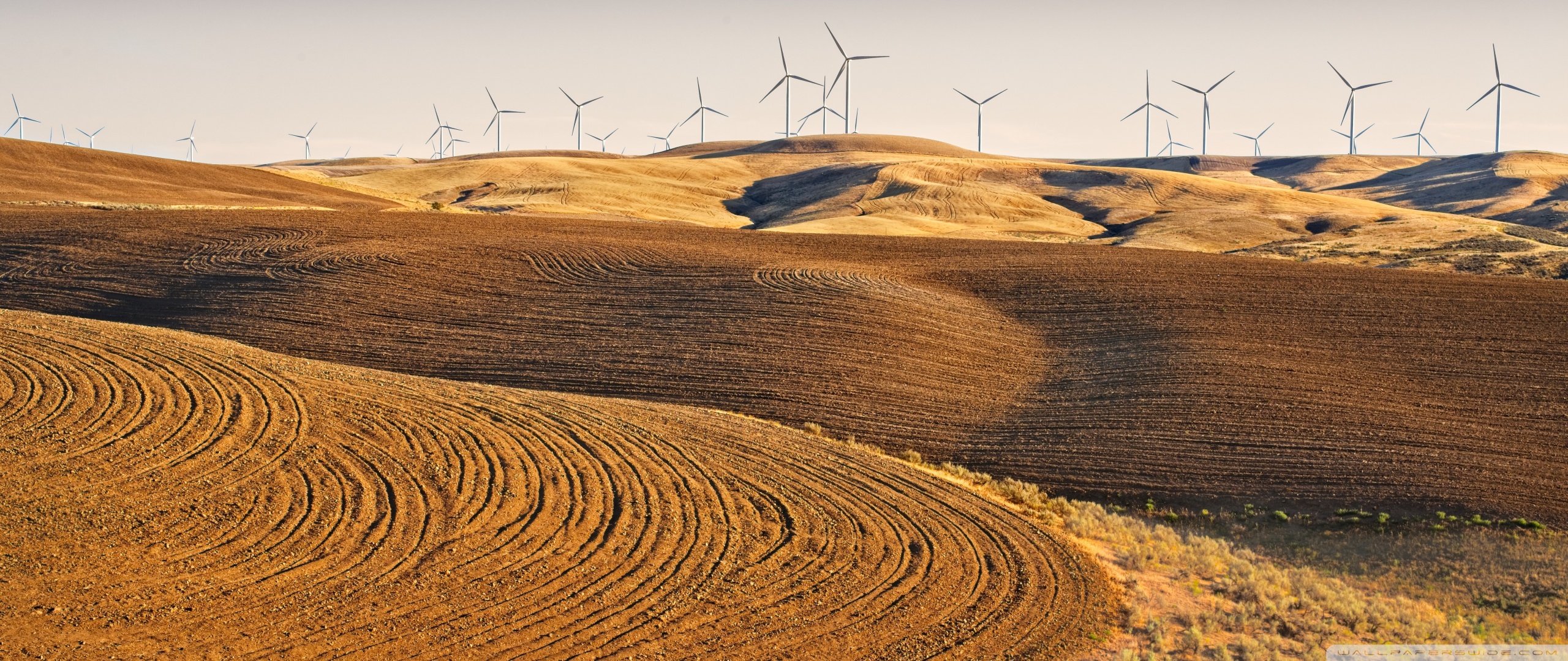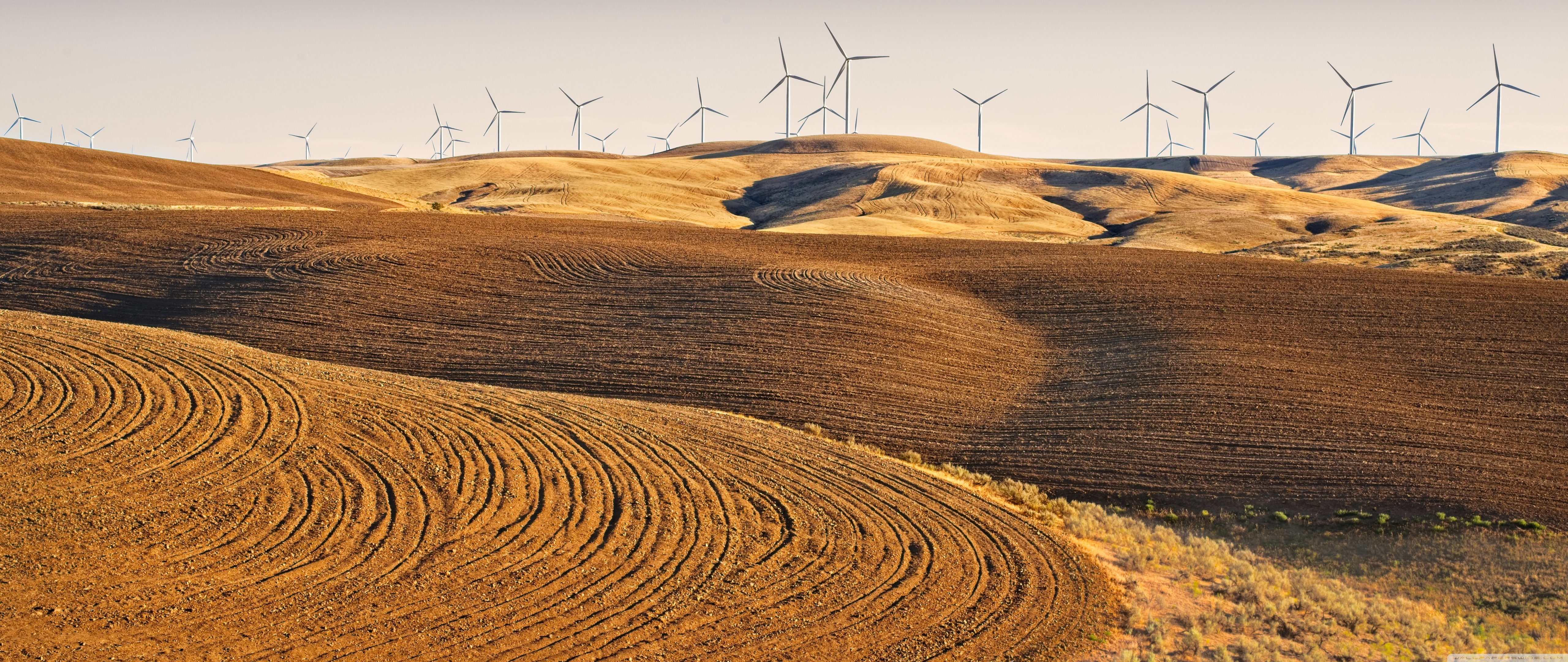 Download Plowed Fields and Wind Turbines 4K UHD Wallpaper