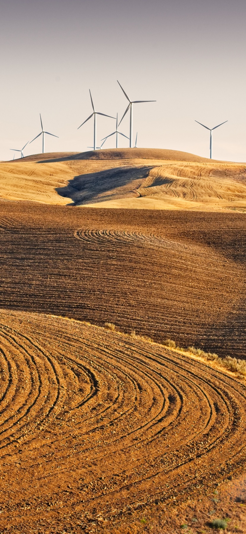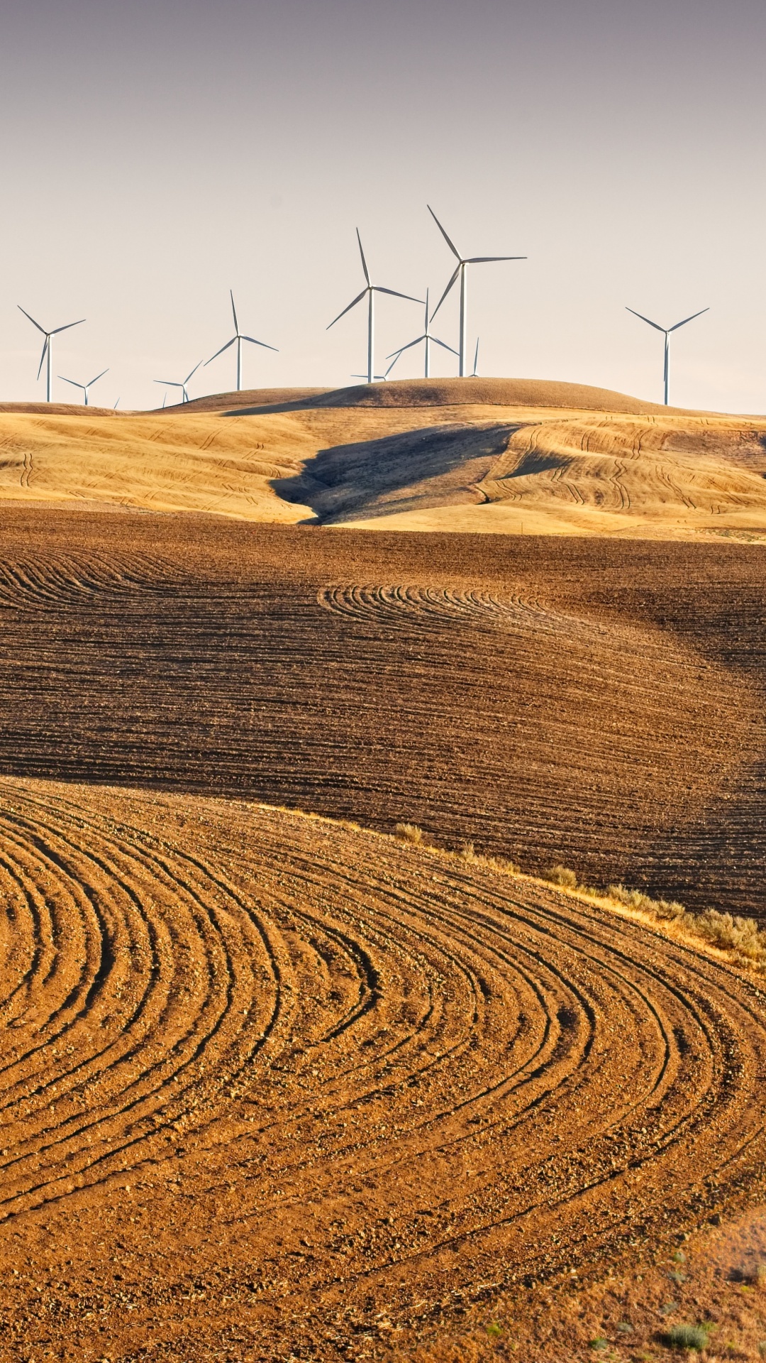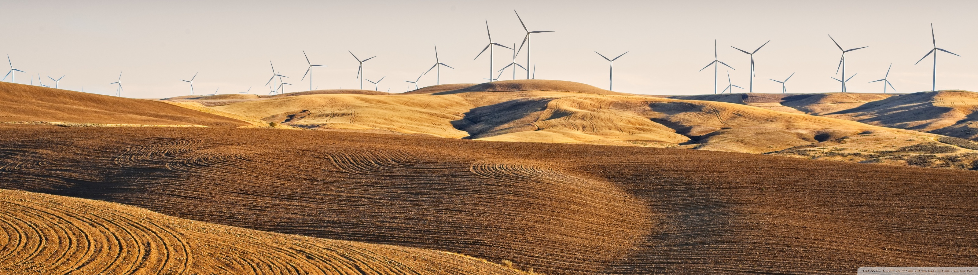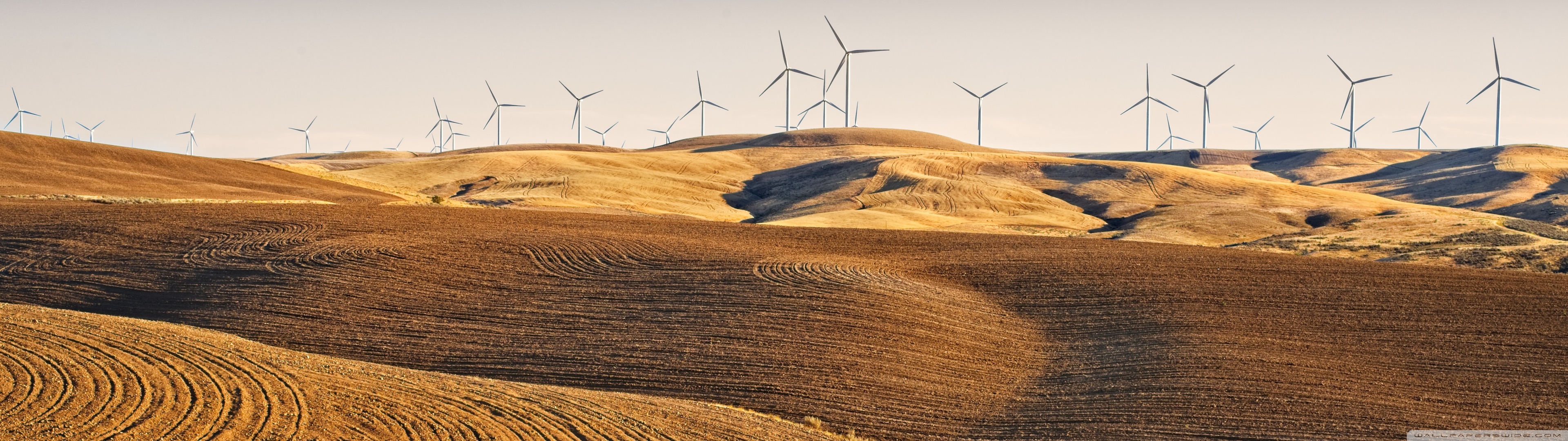 Download Plowed Fields and Wind Turbines 4K UHD Wallpaper