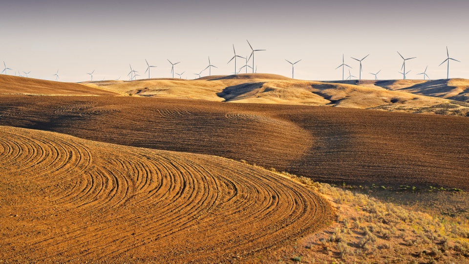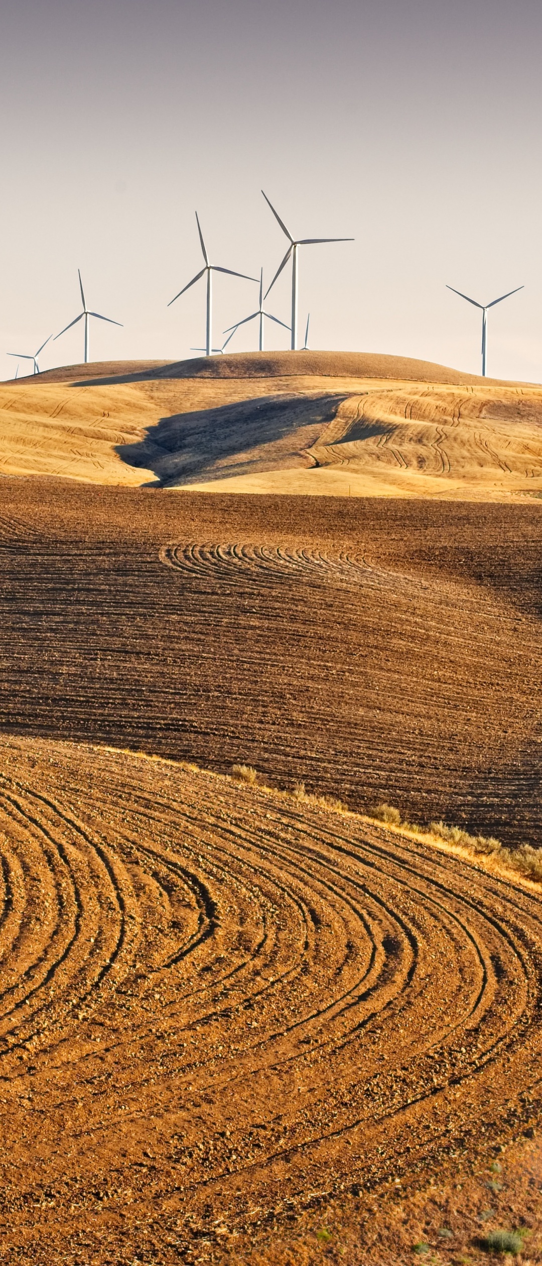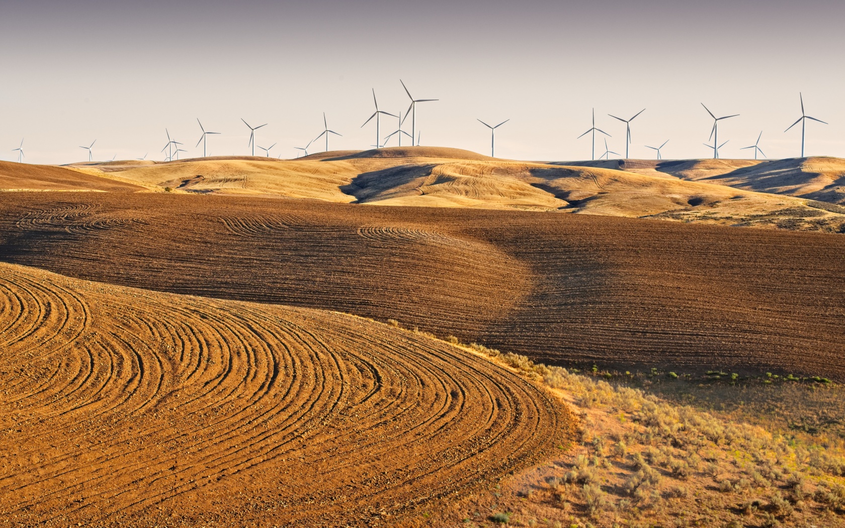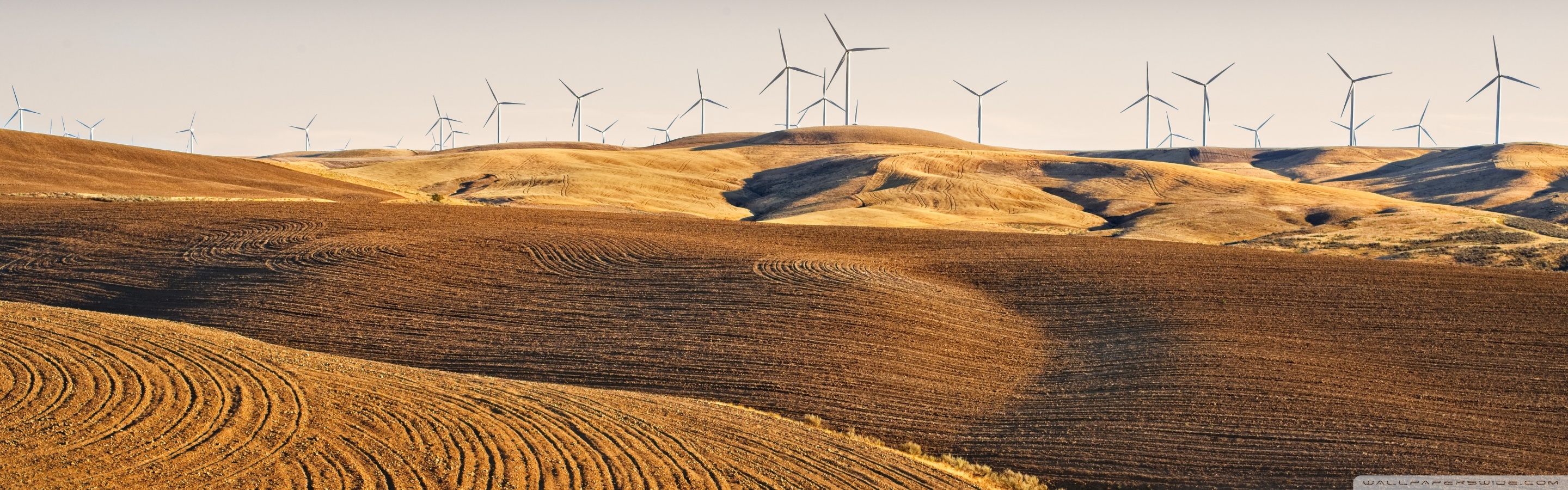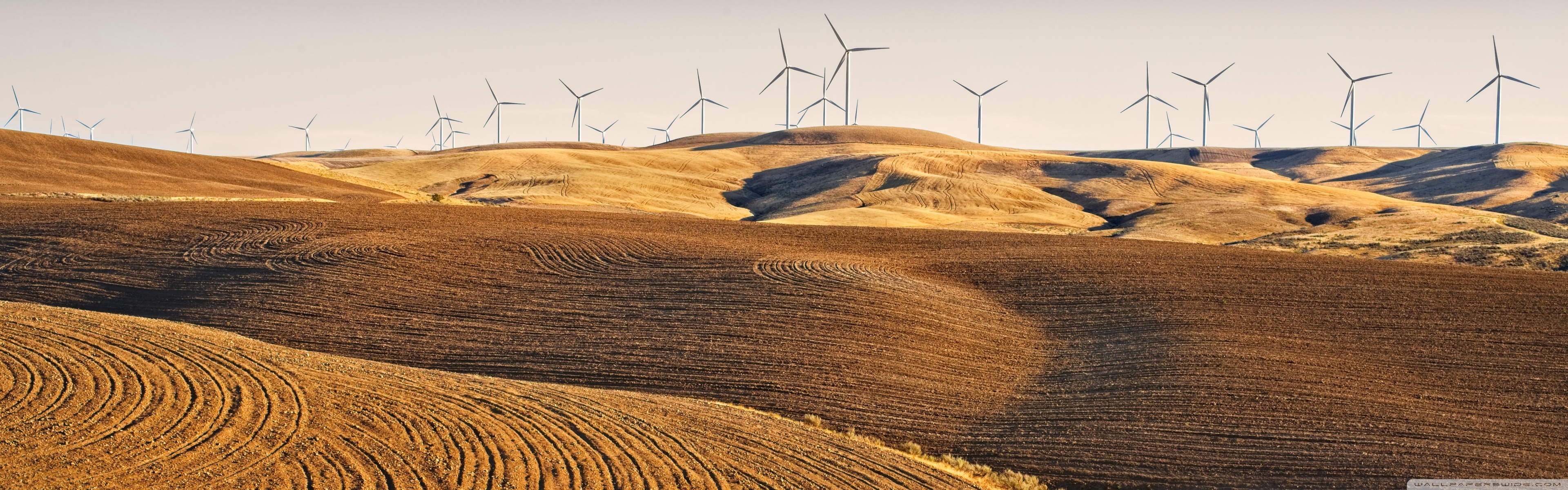 Download Plowed Fields and Wind Turbines 4K UHD Wallpaper