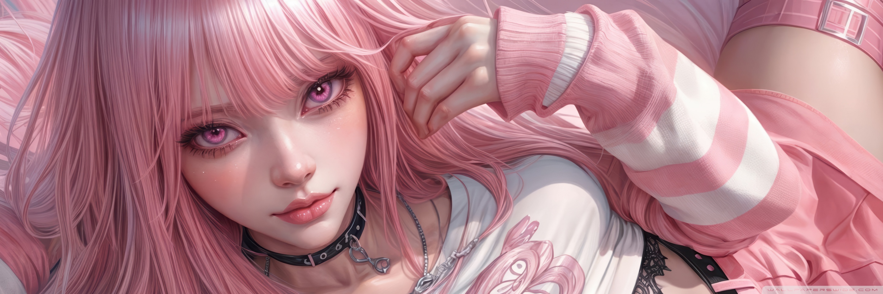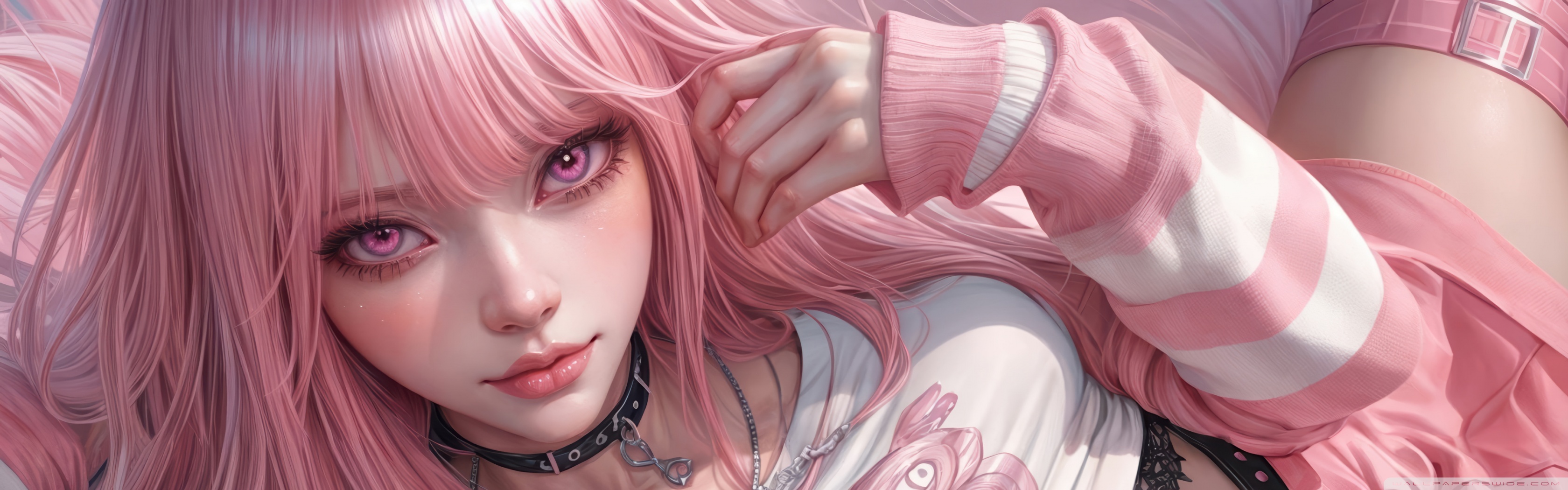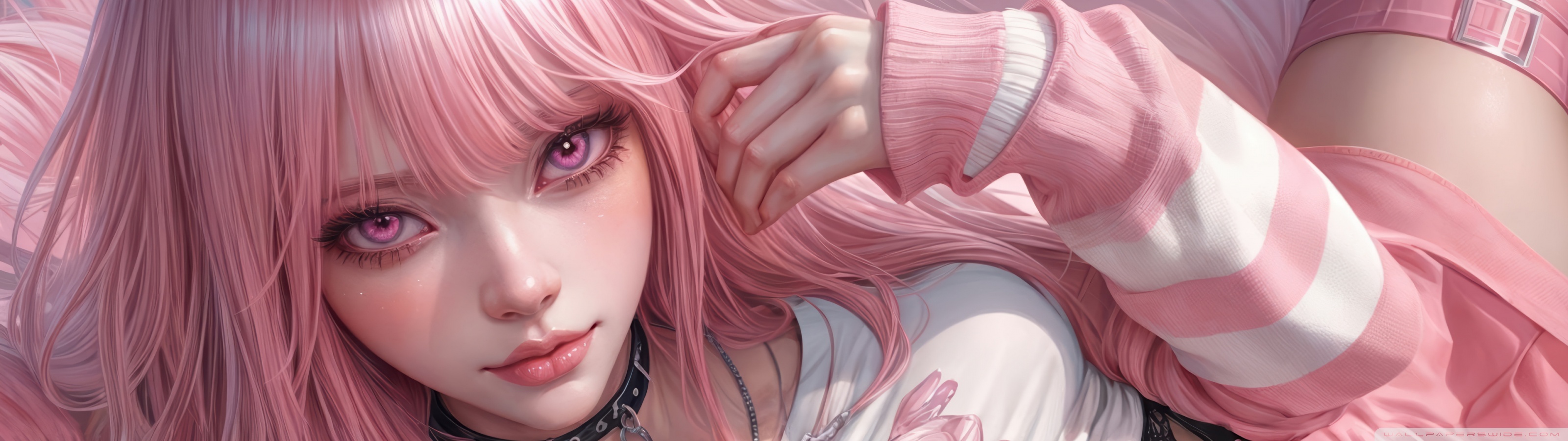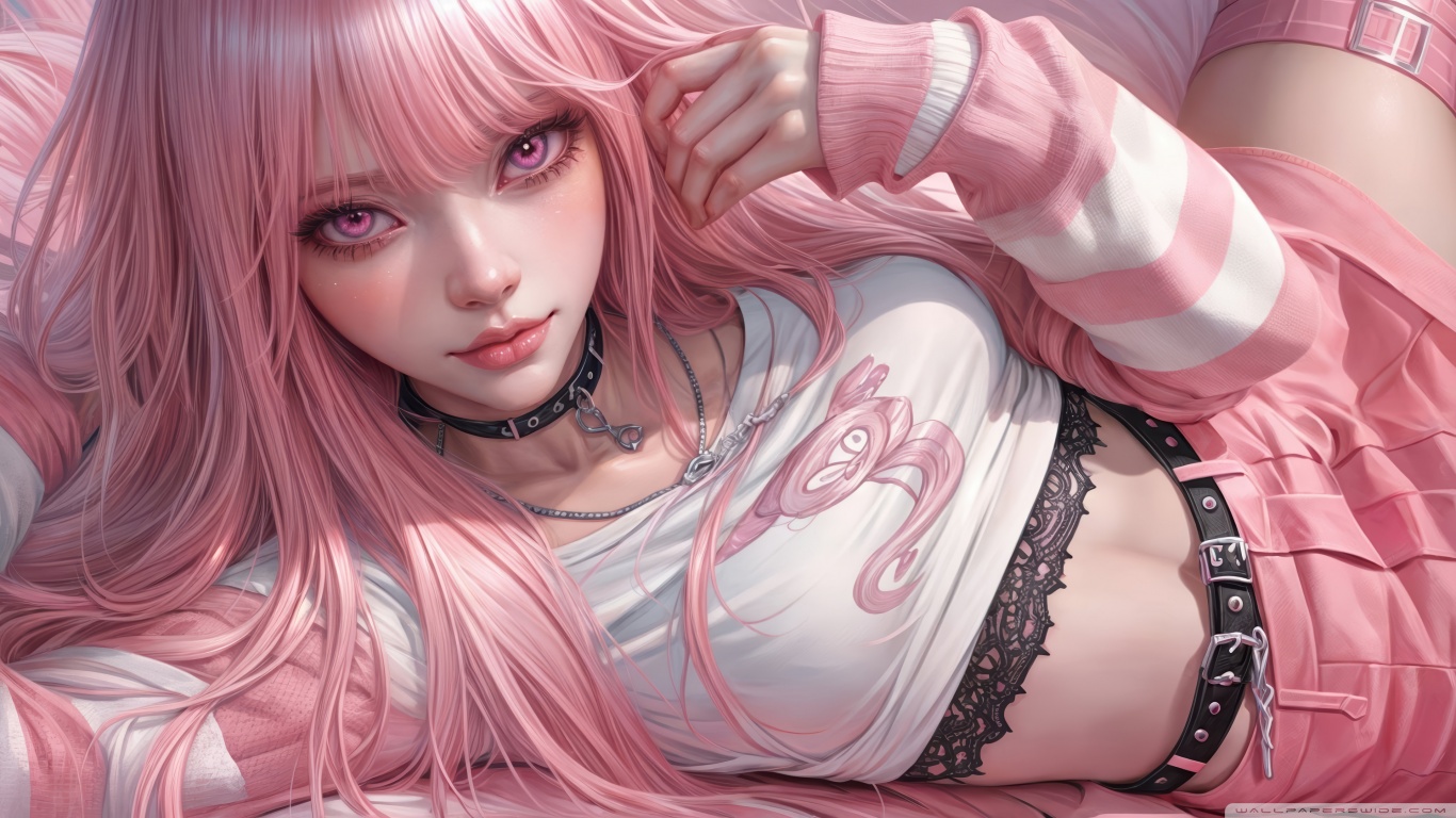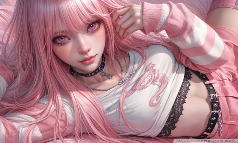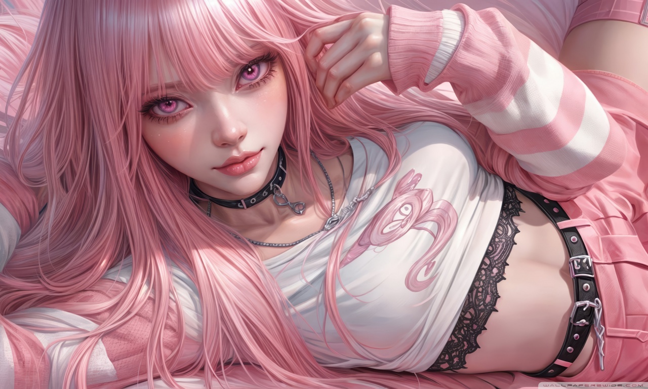 Download Pretty Anime Girl with Pink Long Hair 4K UHD Wallpaper