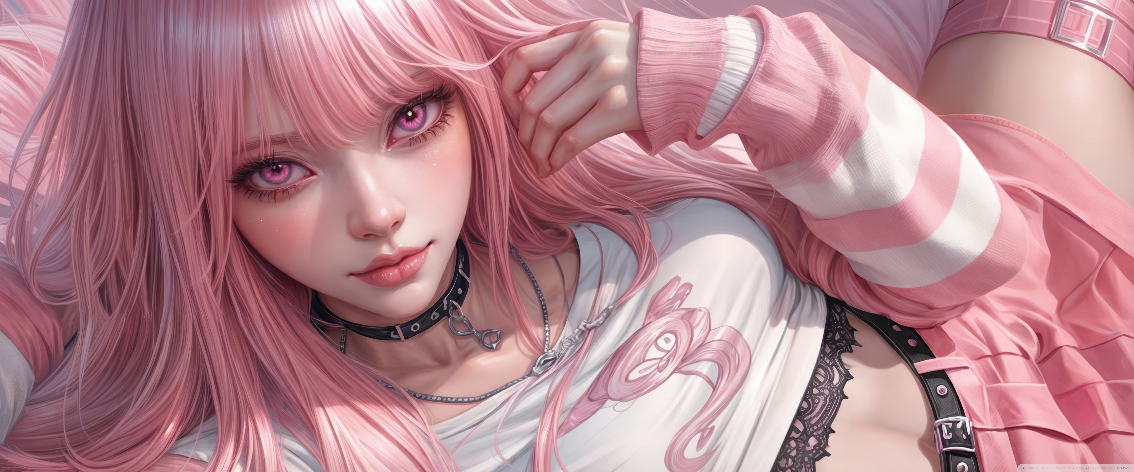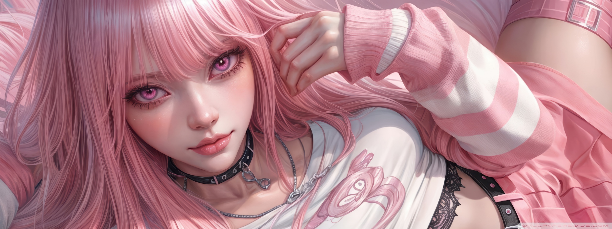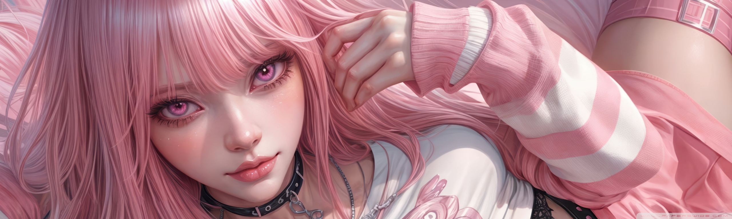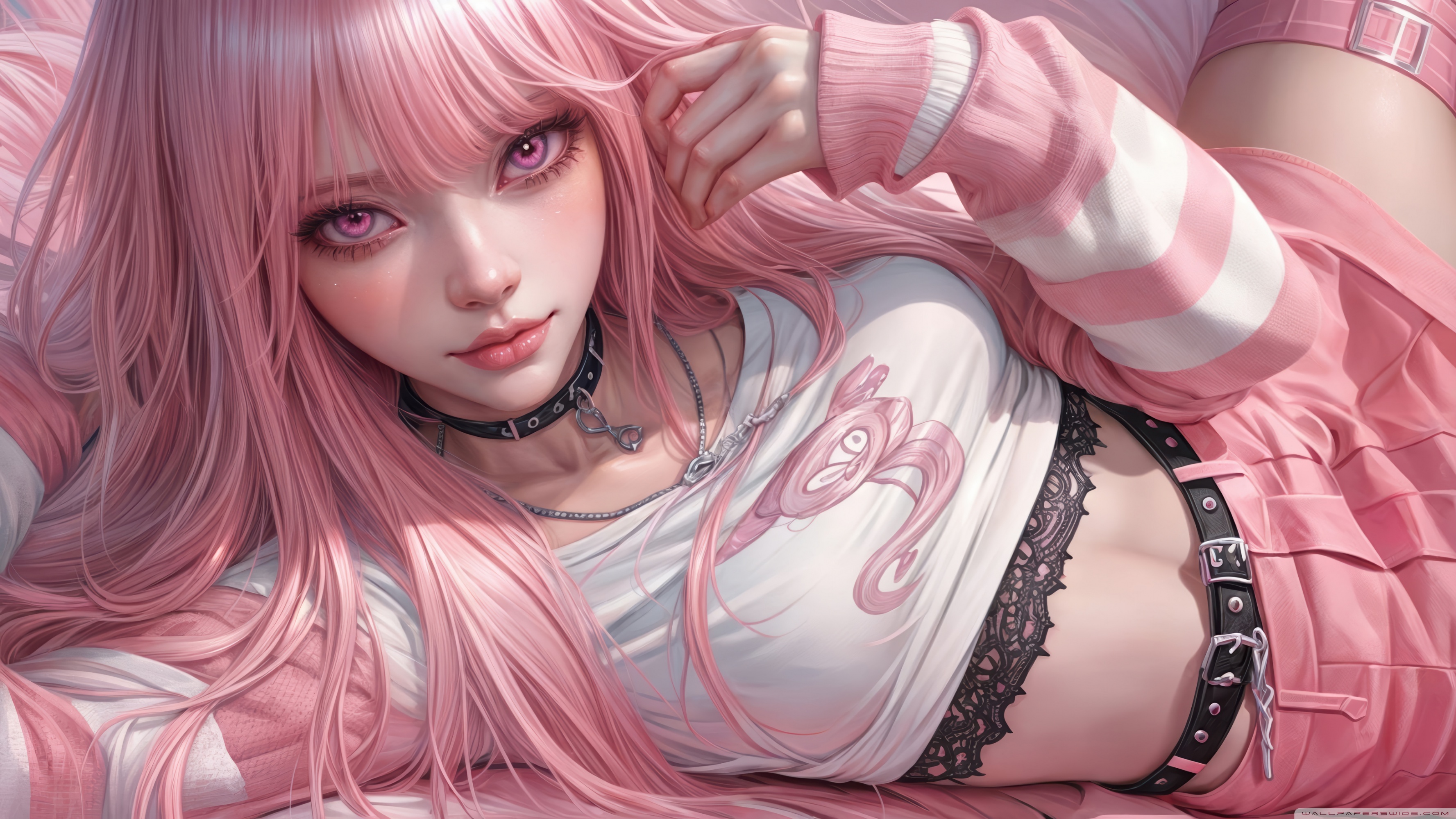 Download Pretty Anime Girl with Pink Long Hair 4K UHD Wallpaper