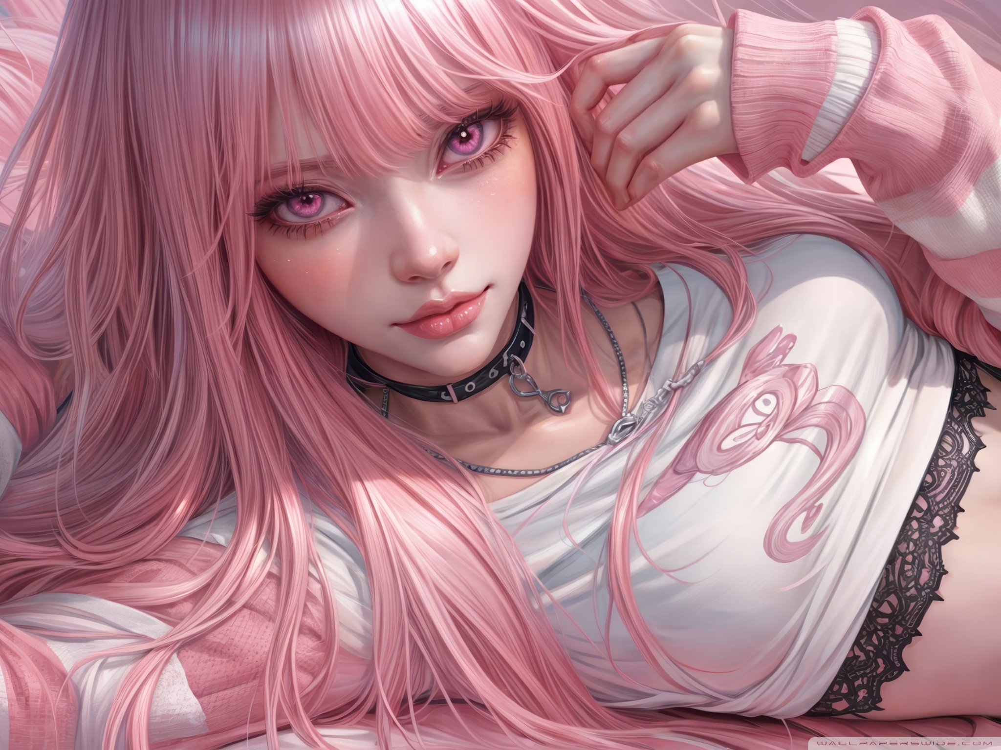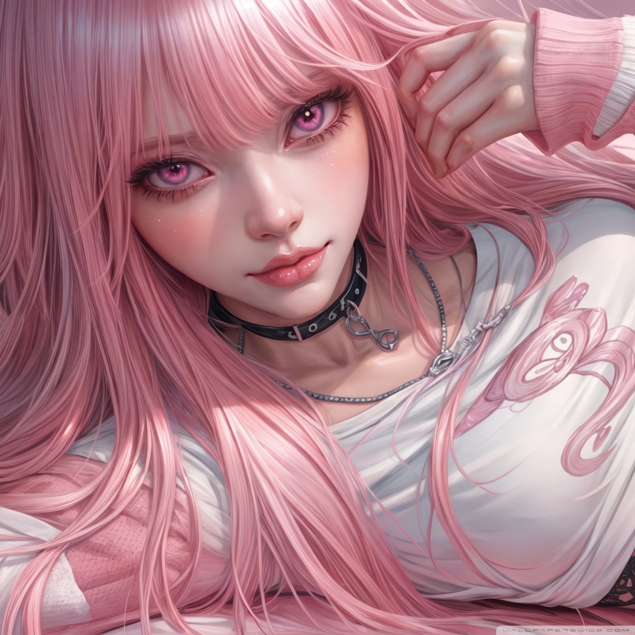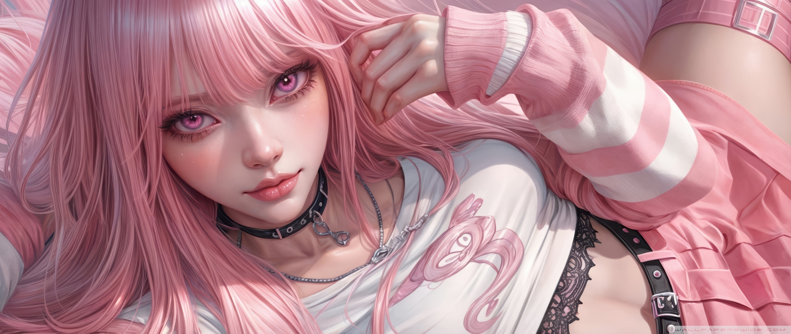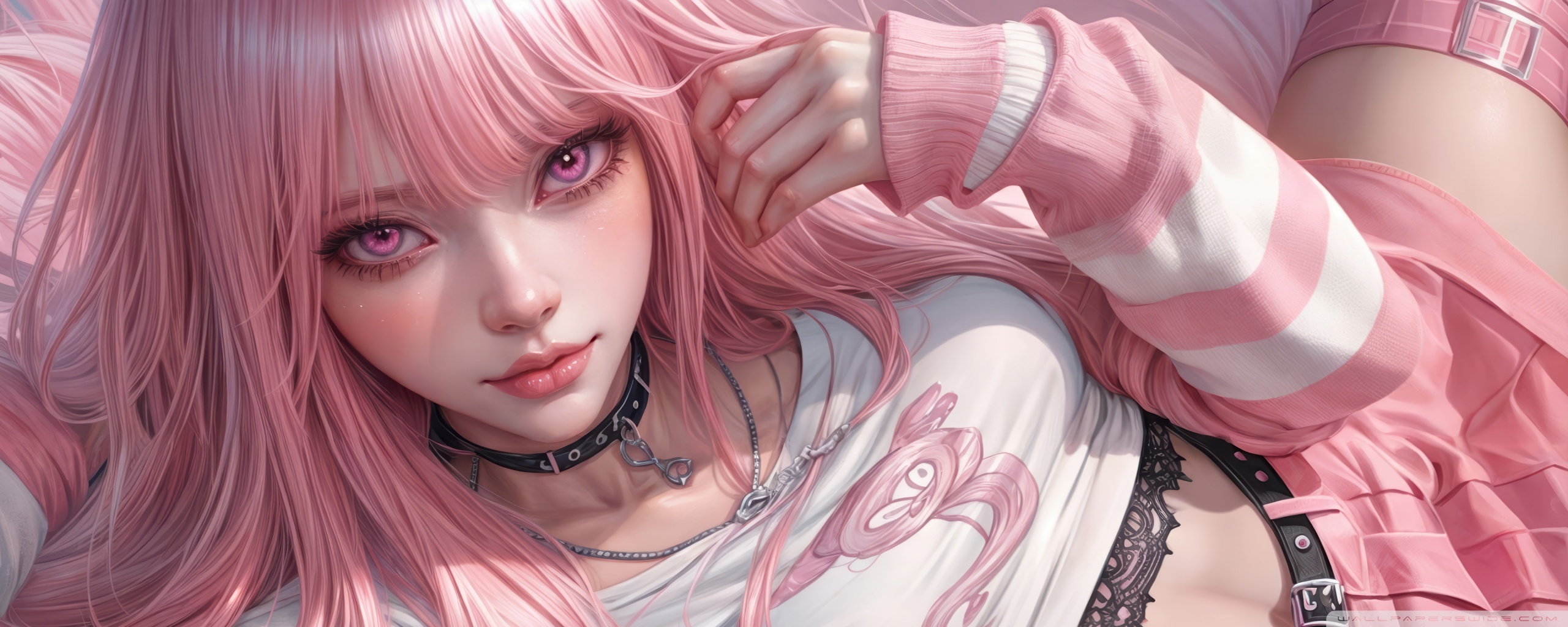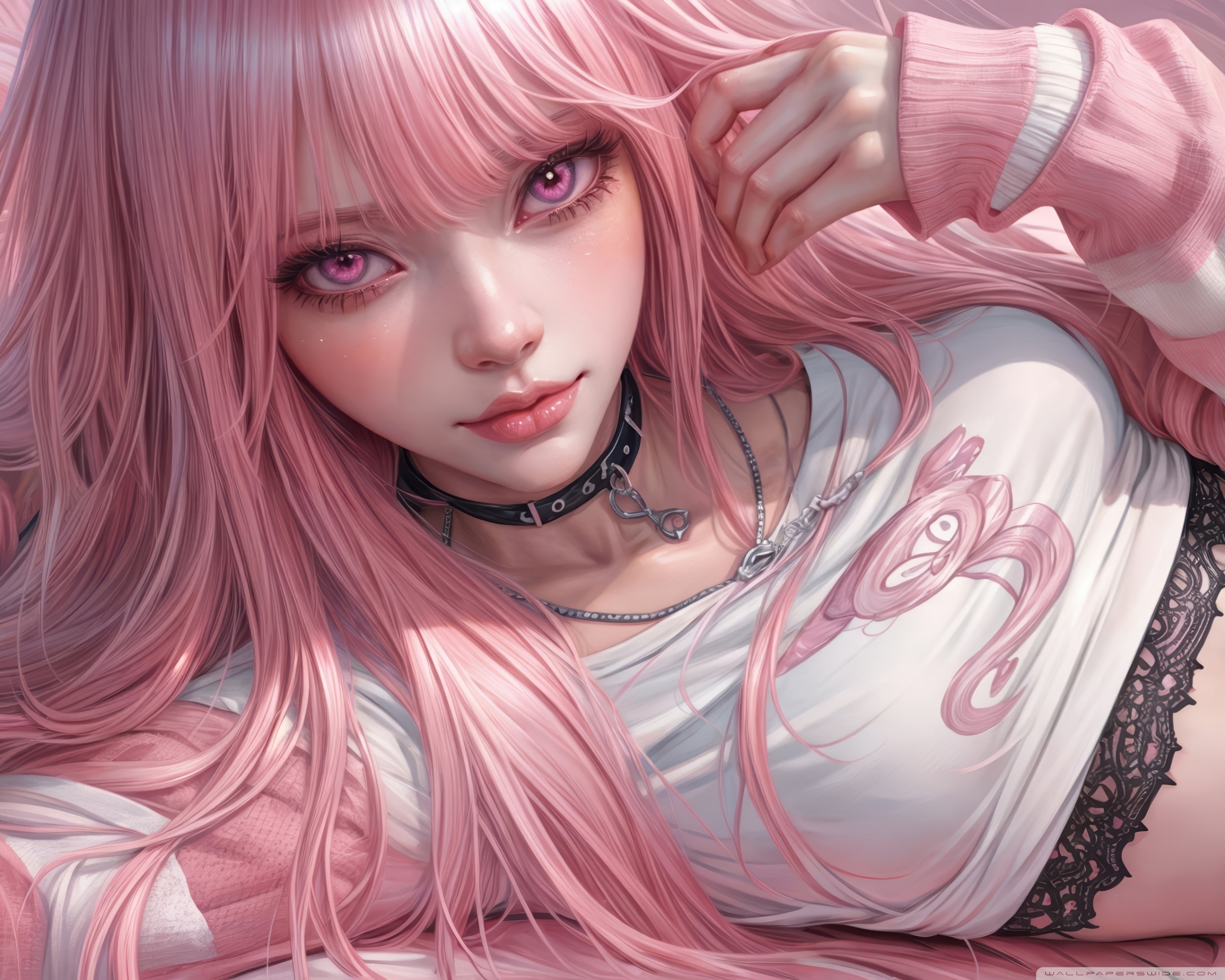 Download Pretty Anime Girl with Pink Long Hair 4K UHD Wallpaper
