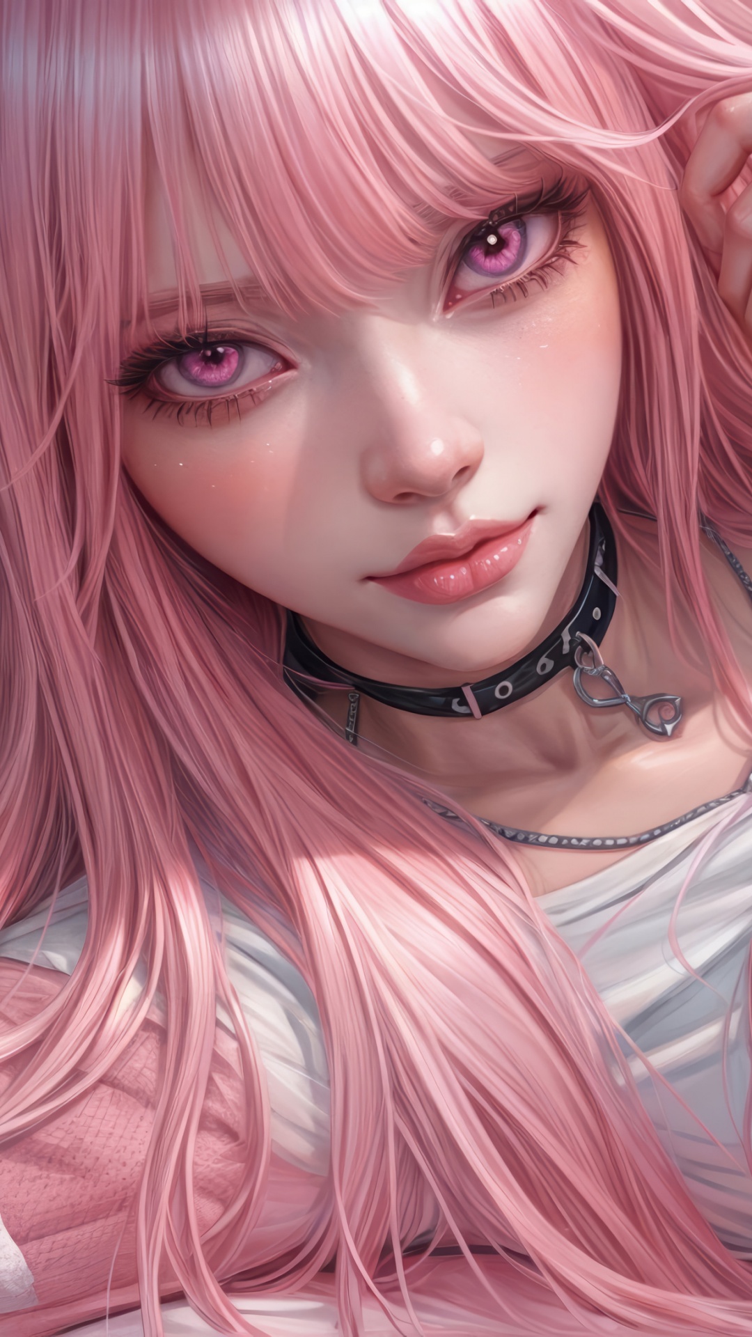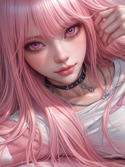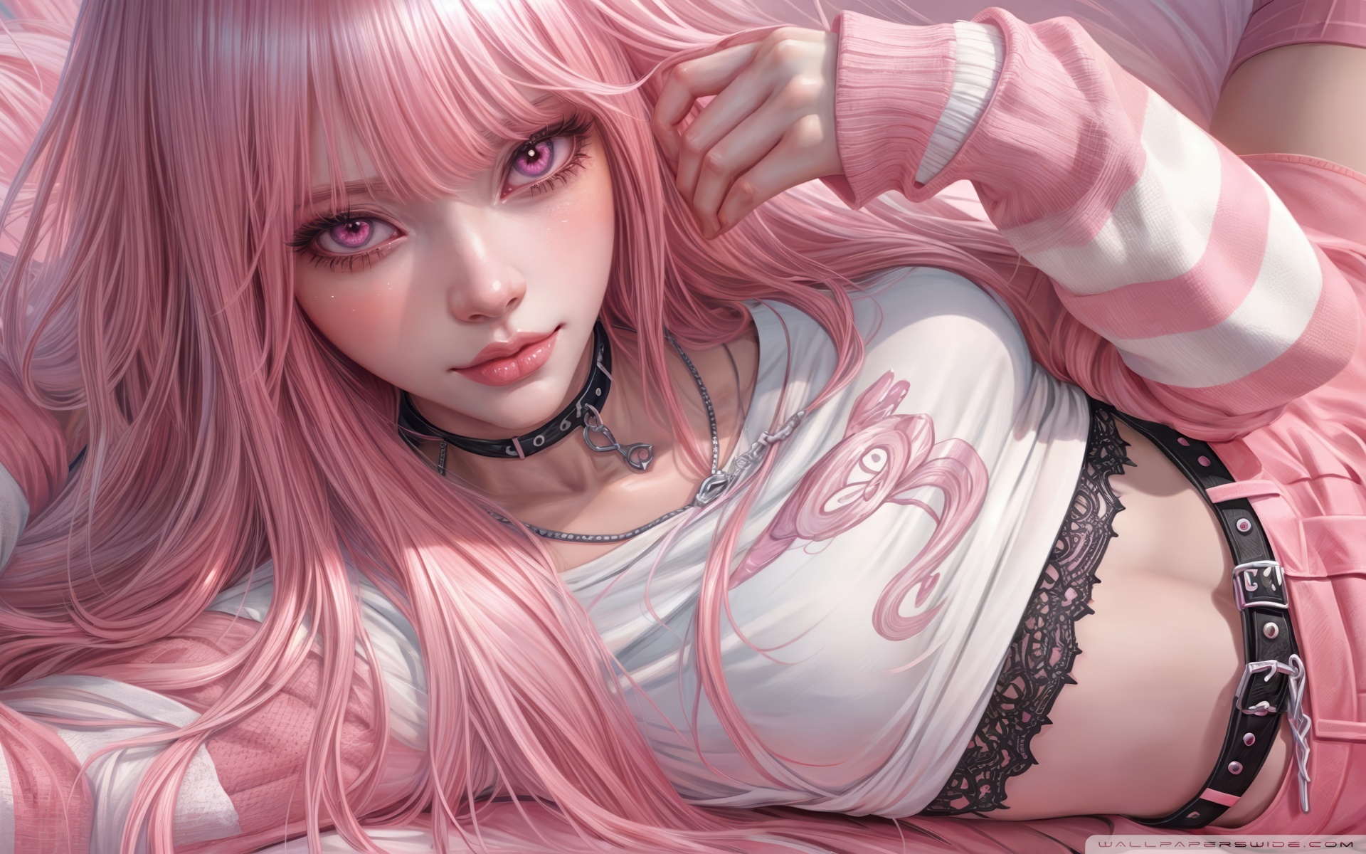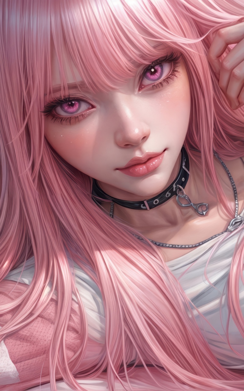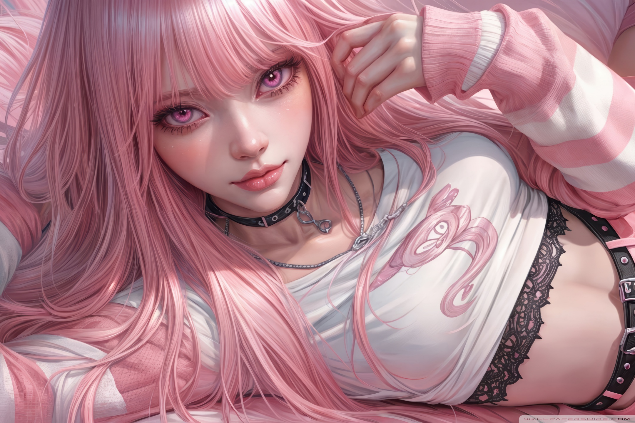 Download Pretty Anime Girl with Pink Long Hair 4K UHD Wallpaper