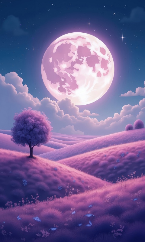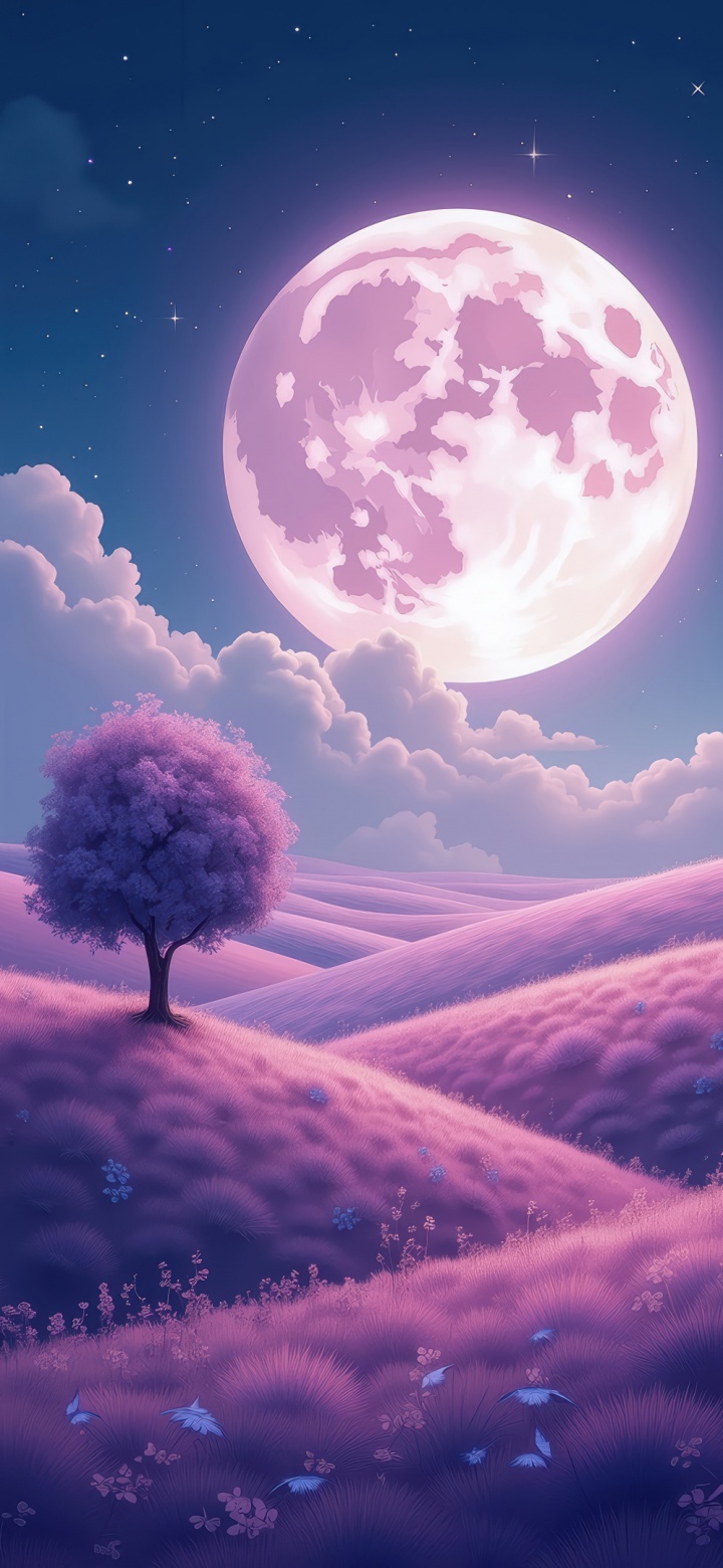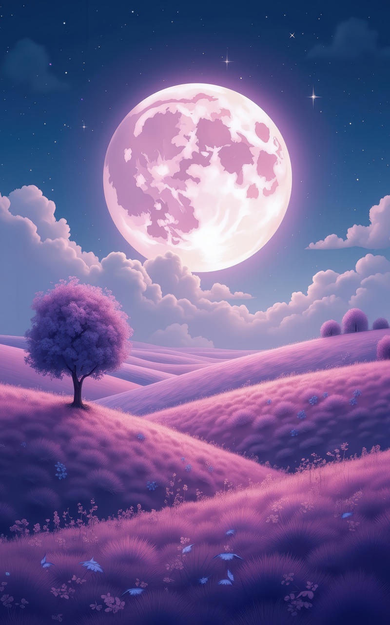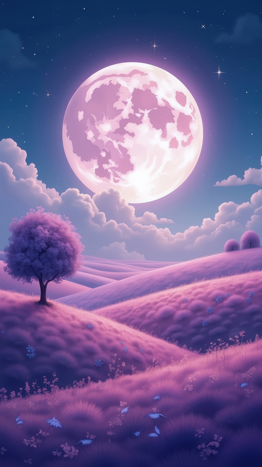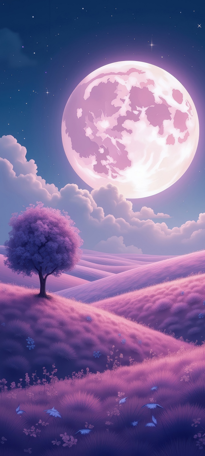 Download Purple Hills, Full Moon, Night, Landscape 4K UHD Wallpaper