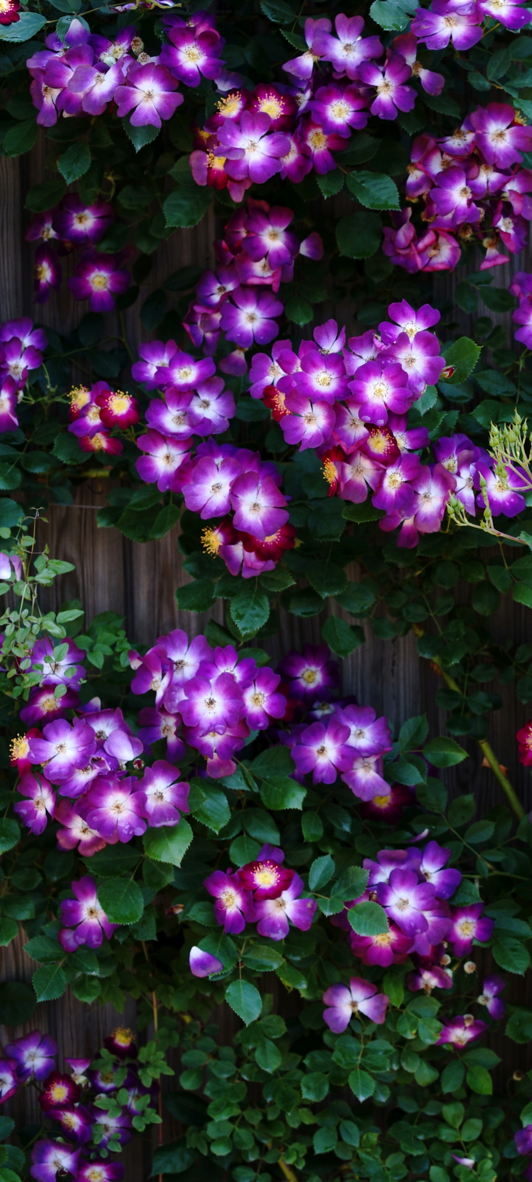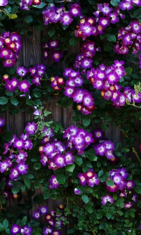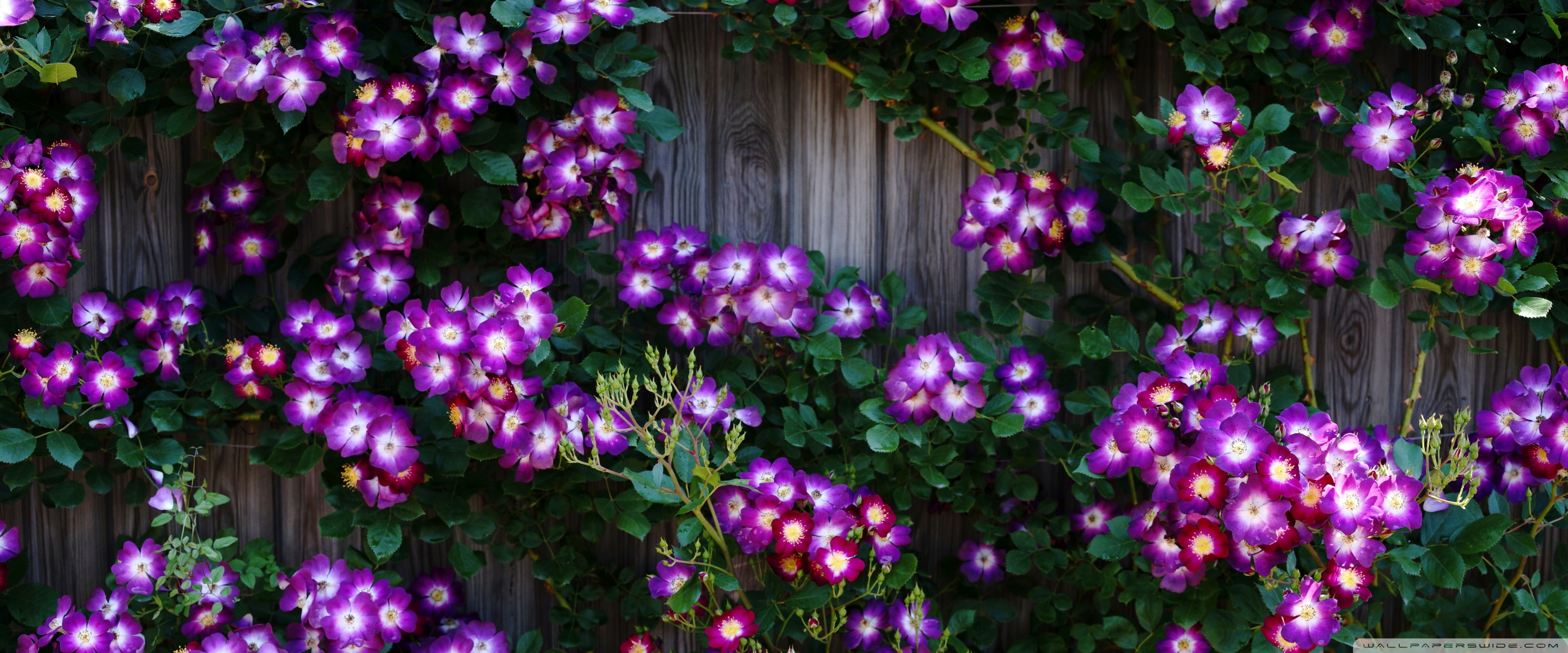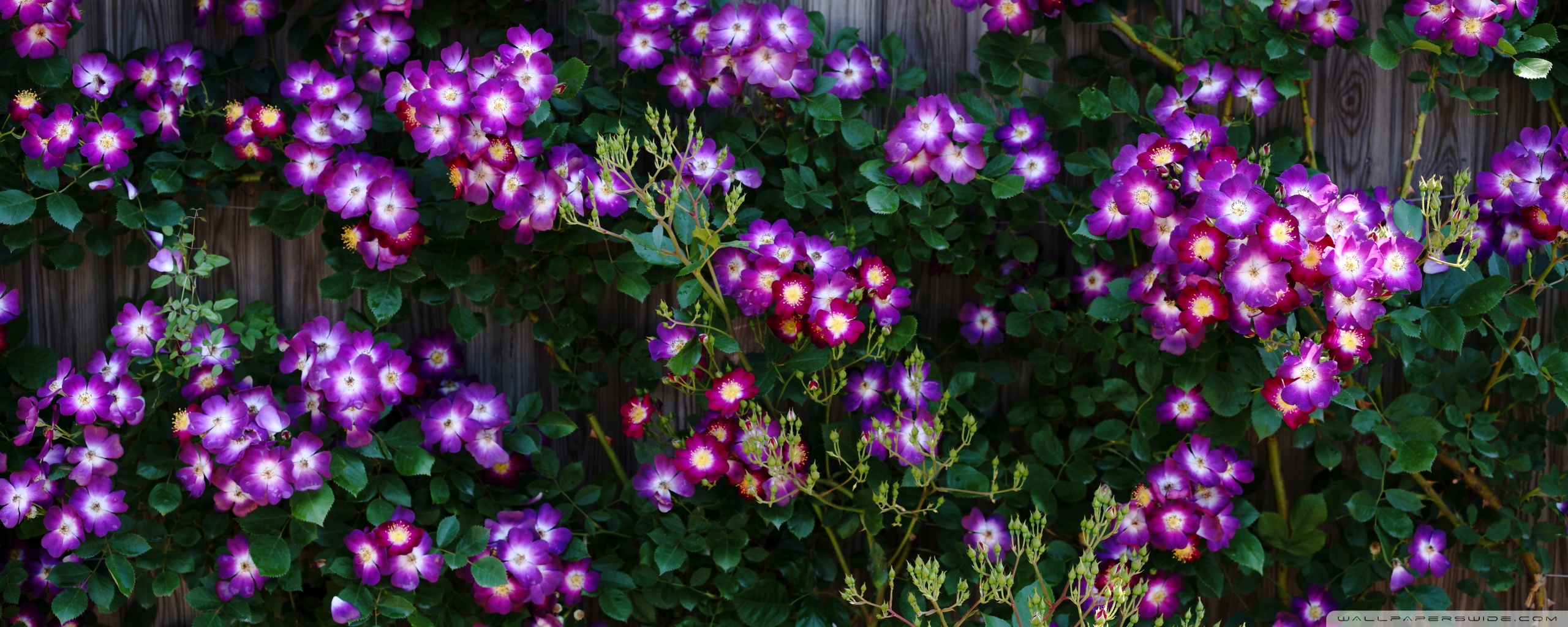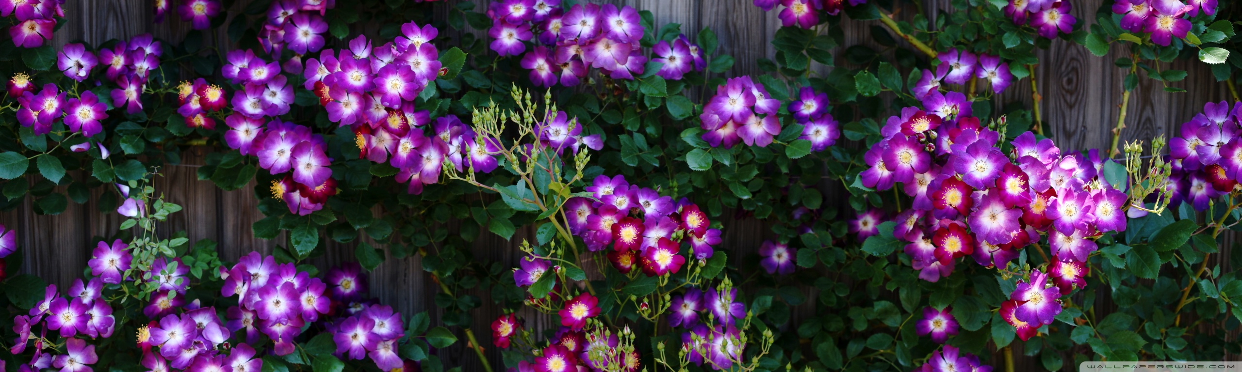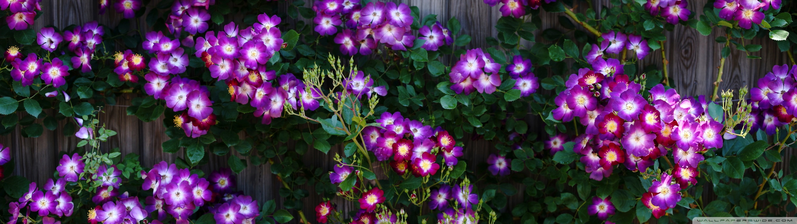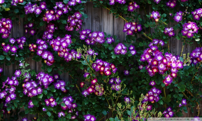 Download Purple Wild Rose Cluster Against Wooden Fence 4K UHD Wallpaper