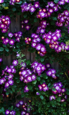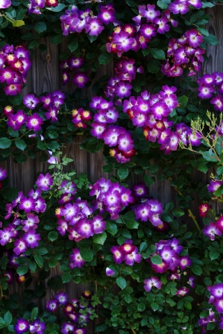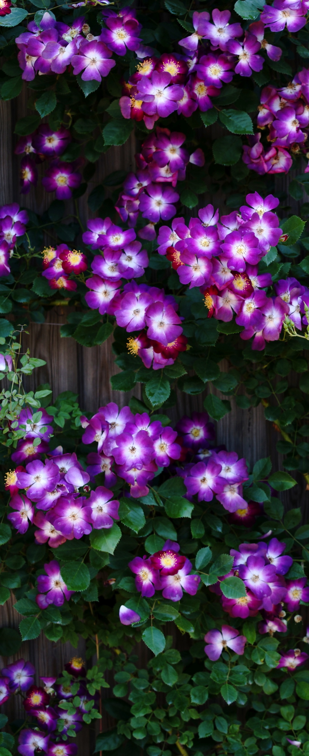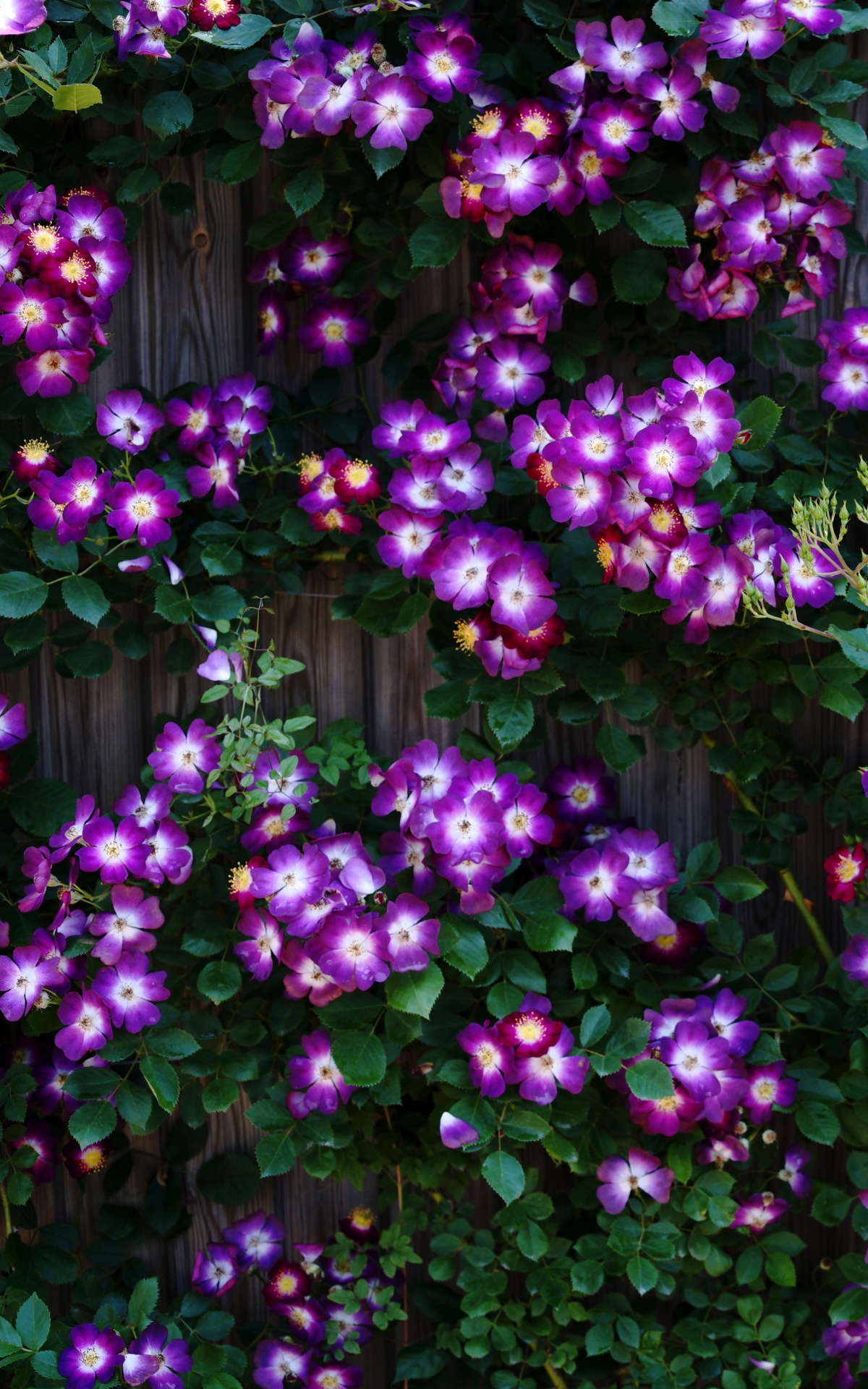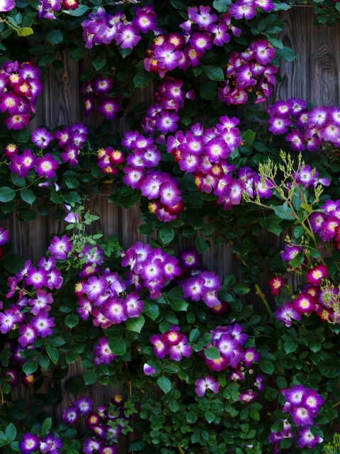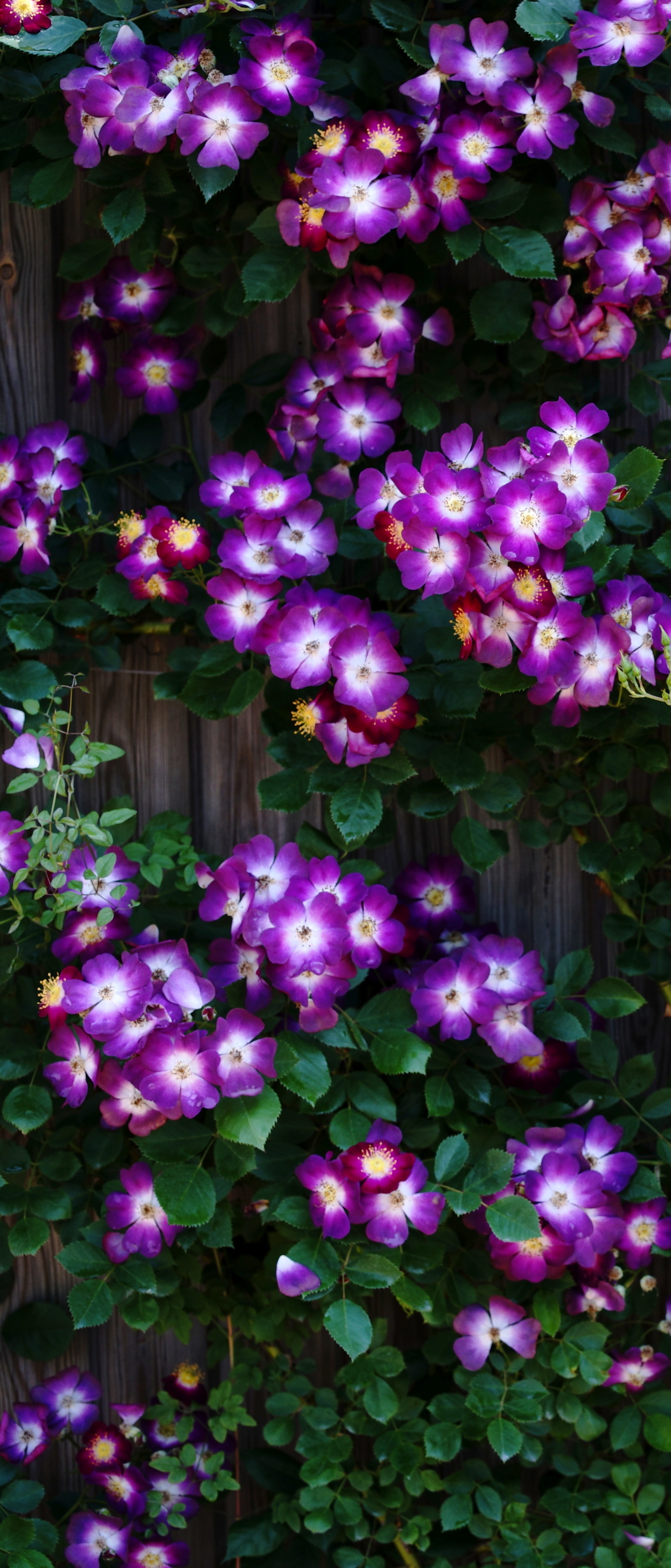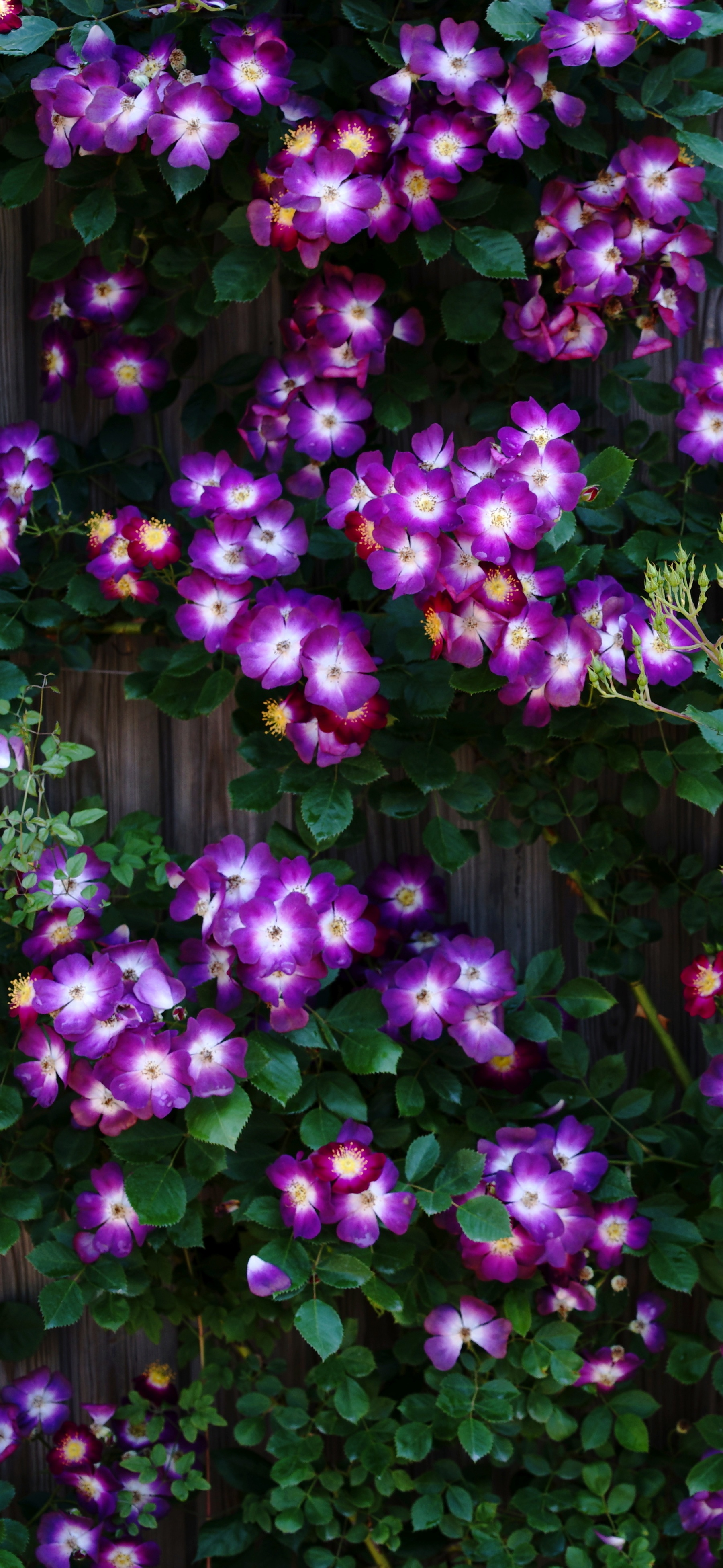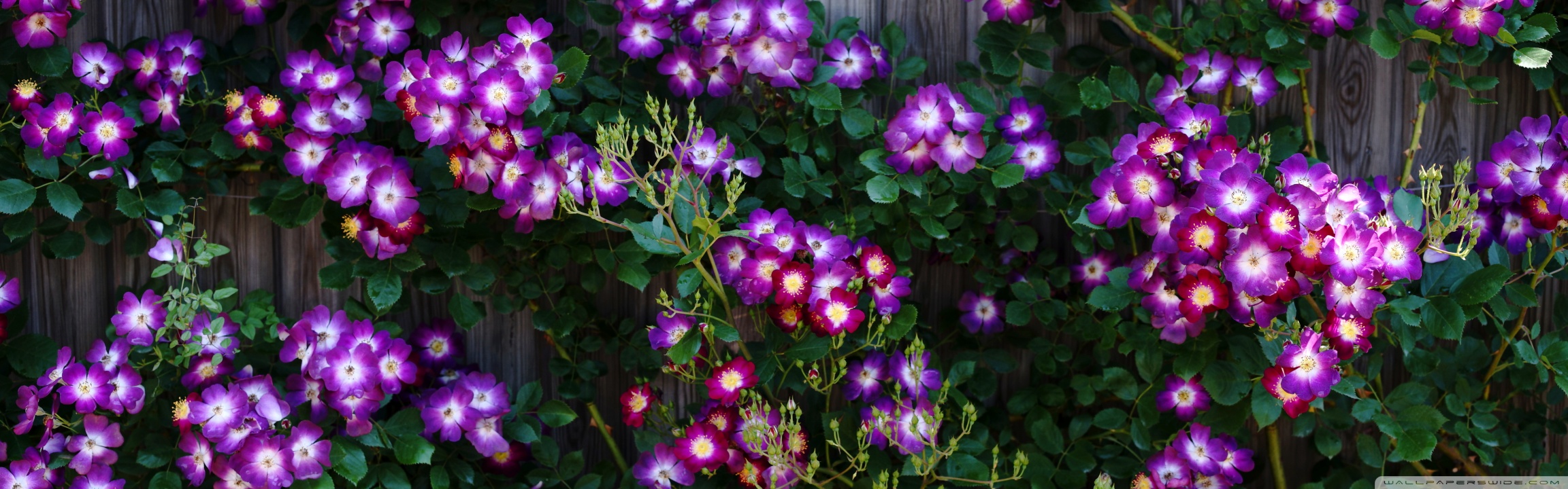 Download Purple Wild Rose Cluster Against Wooden Fence 4K UHD Wallpaper