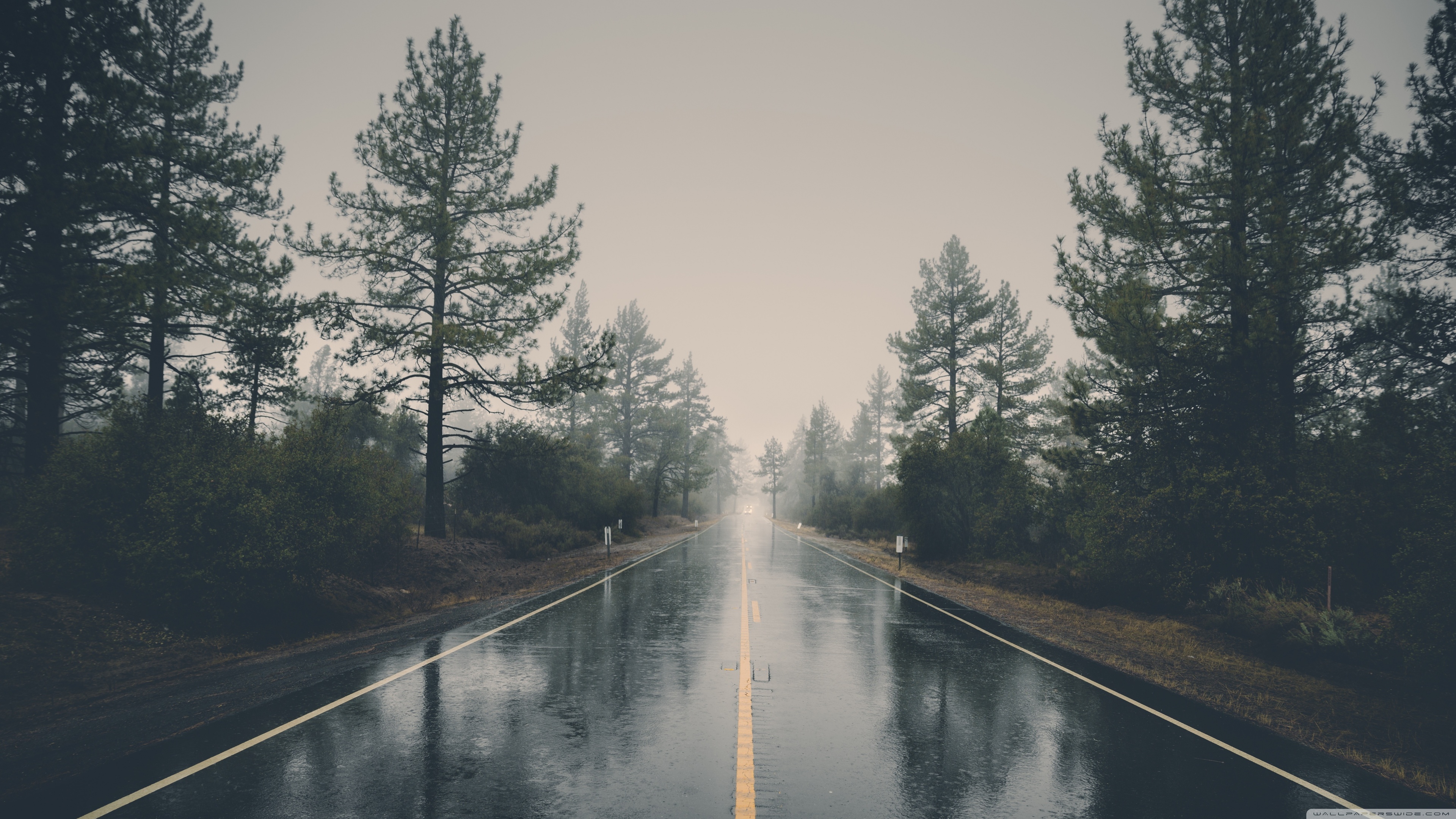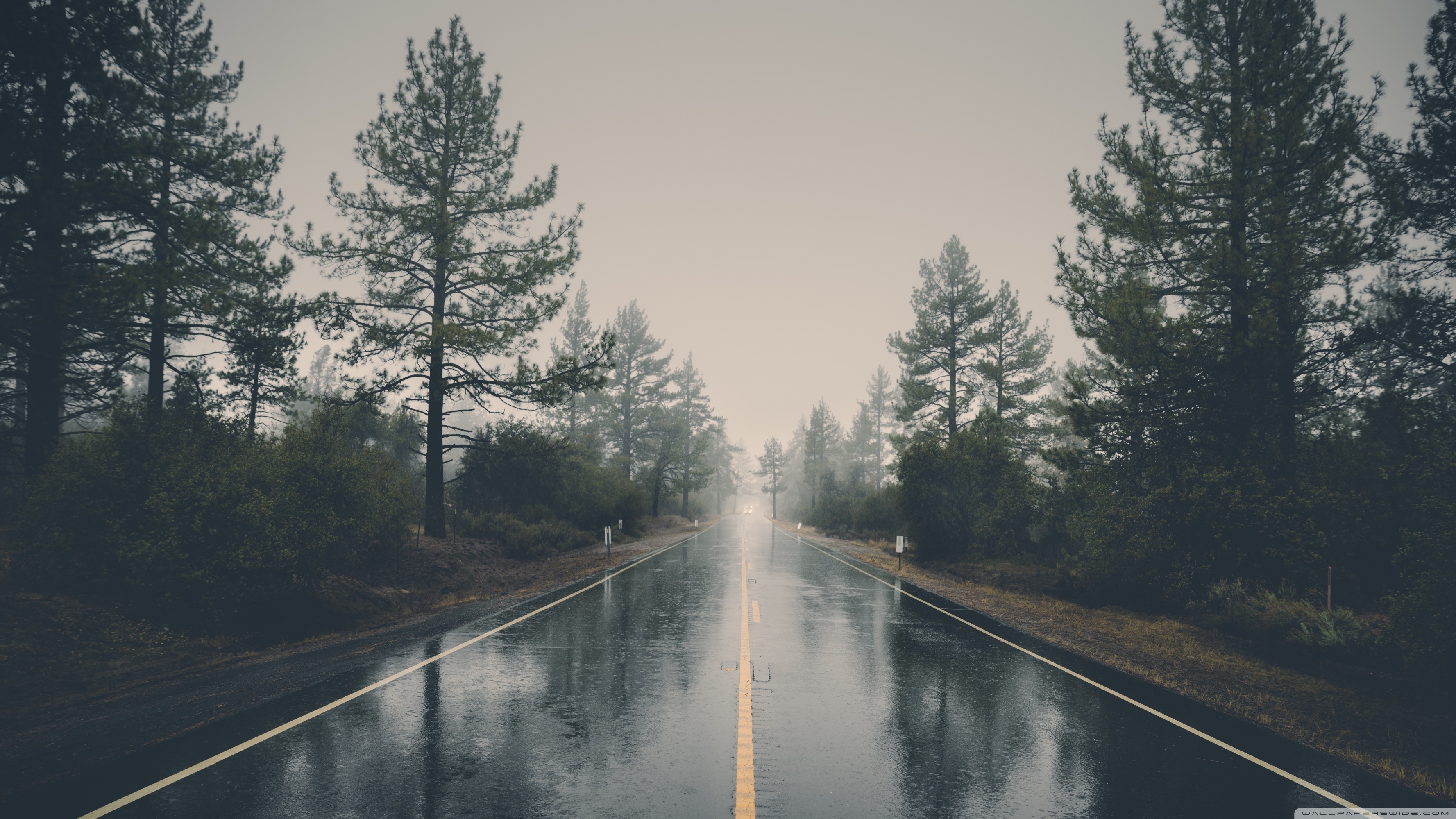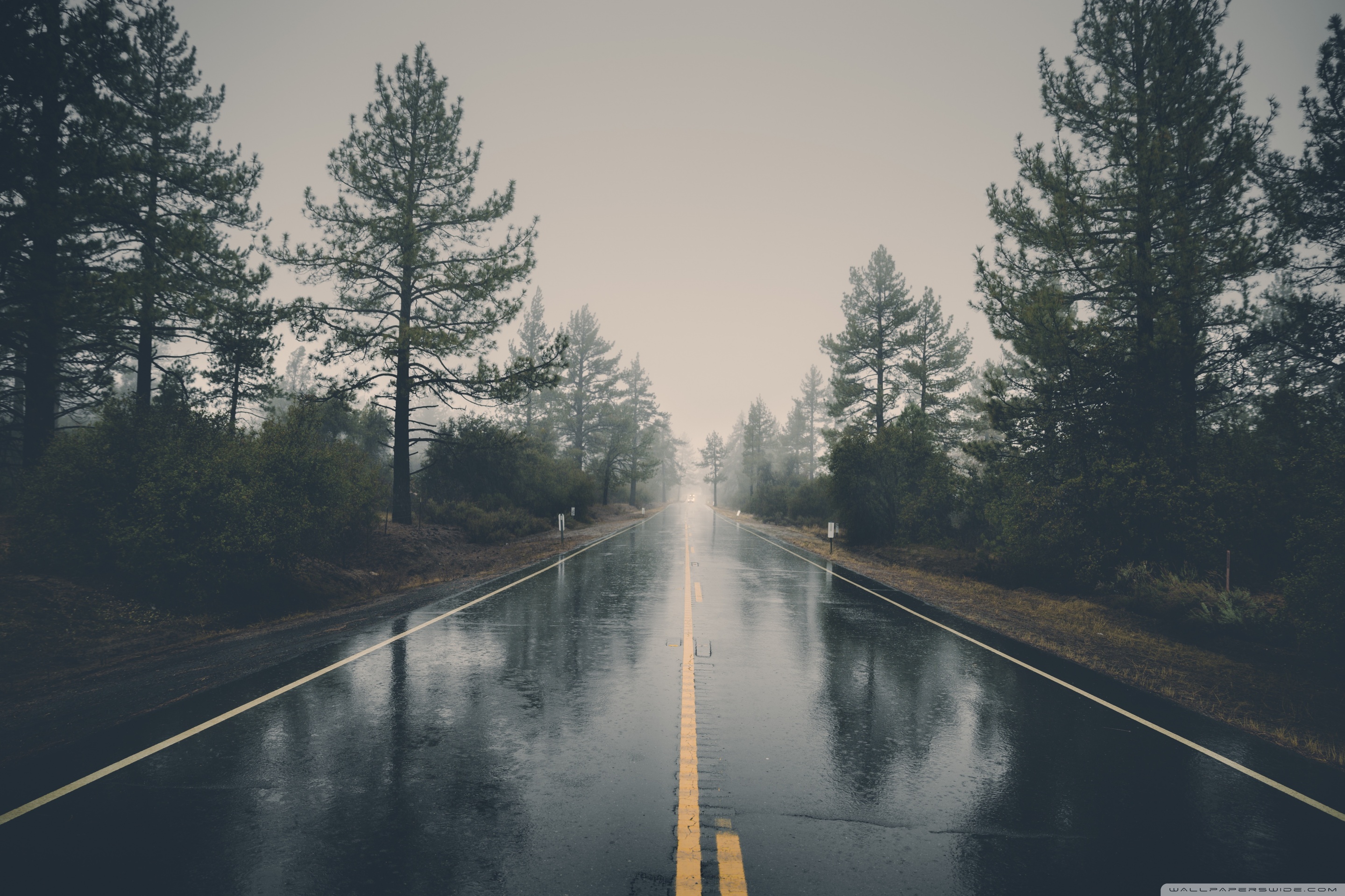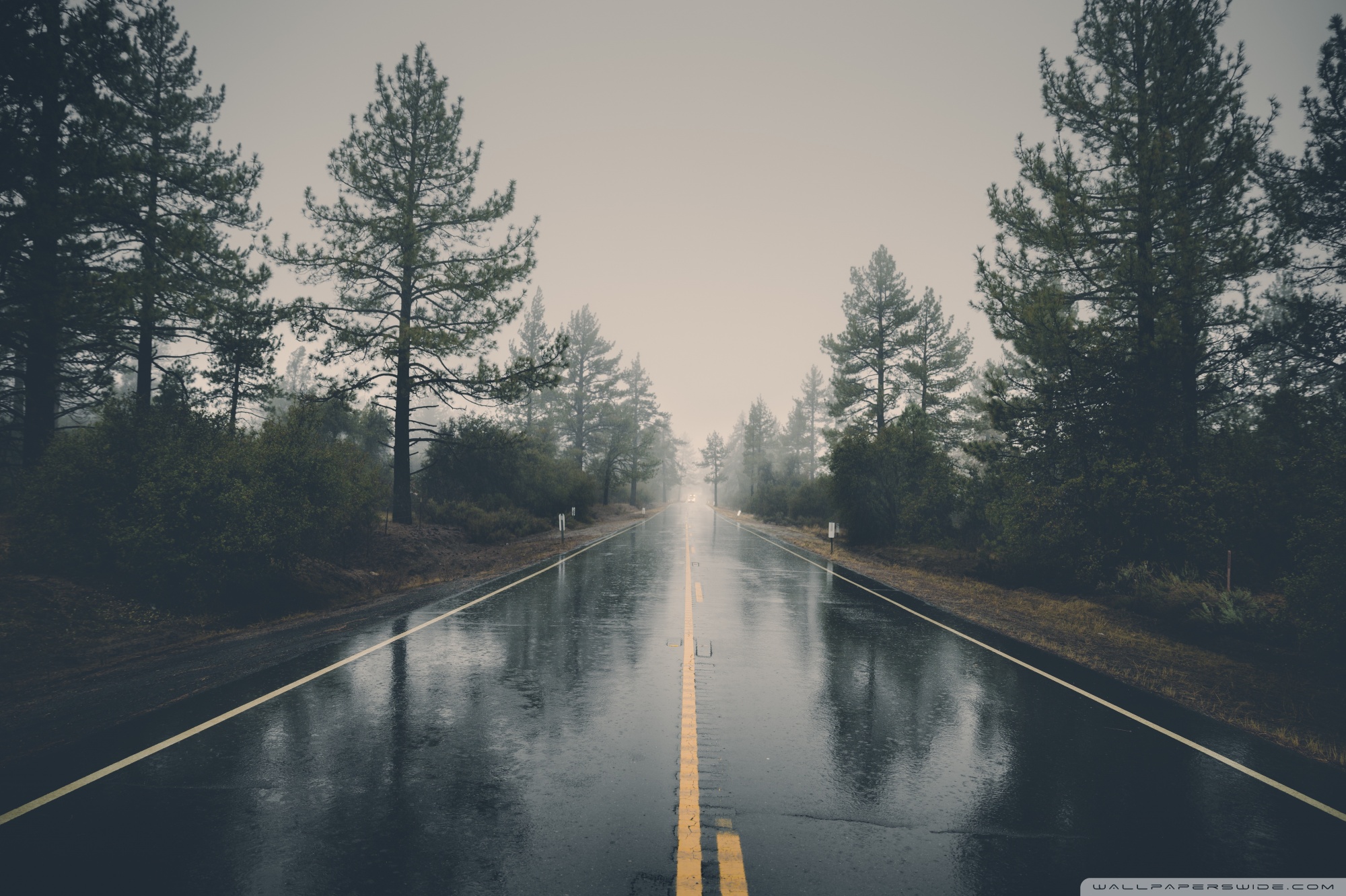 Download Rain, Road, Gloomy Weather 4K UHD Wallpaper