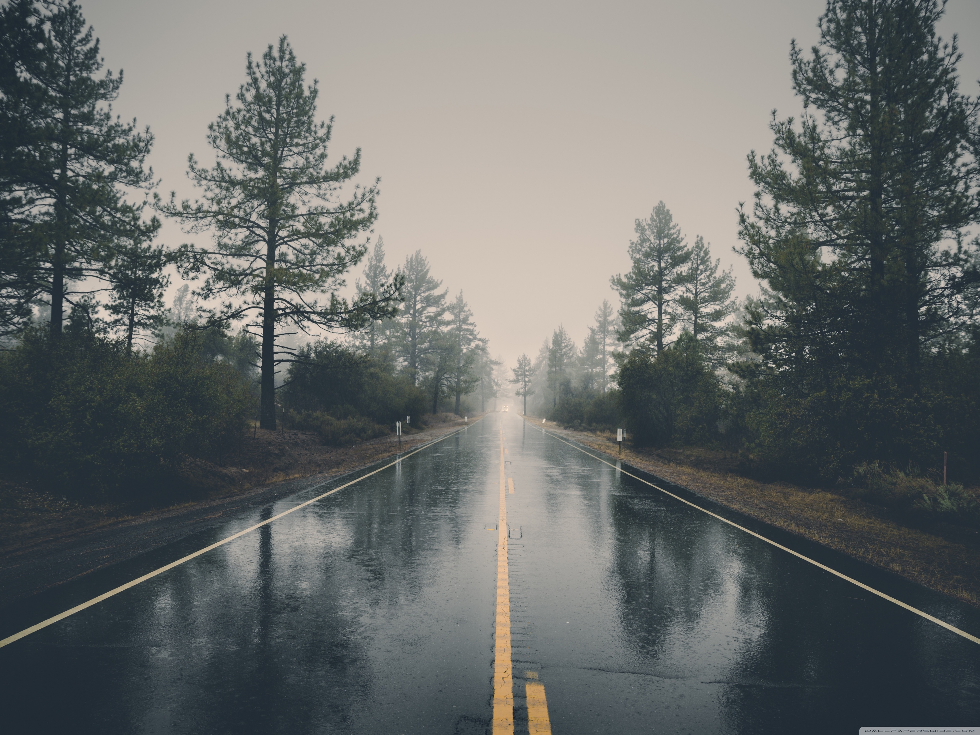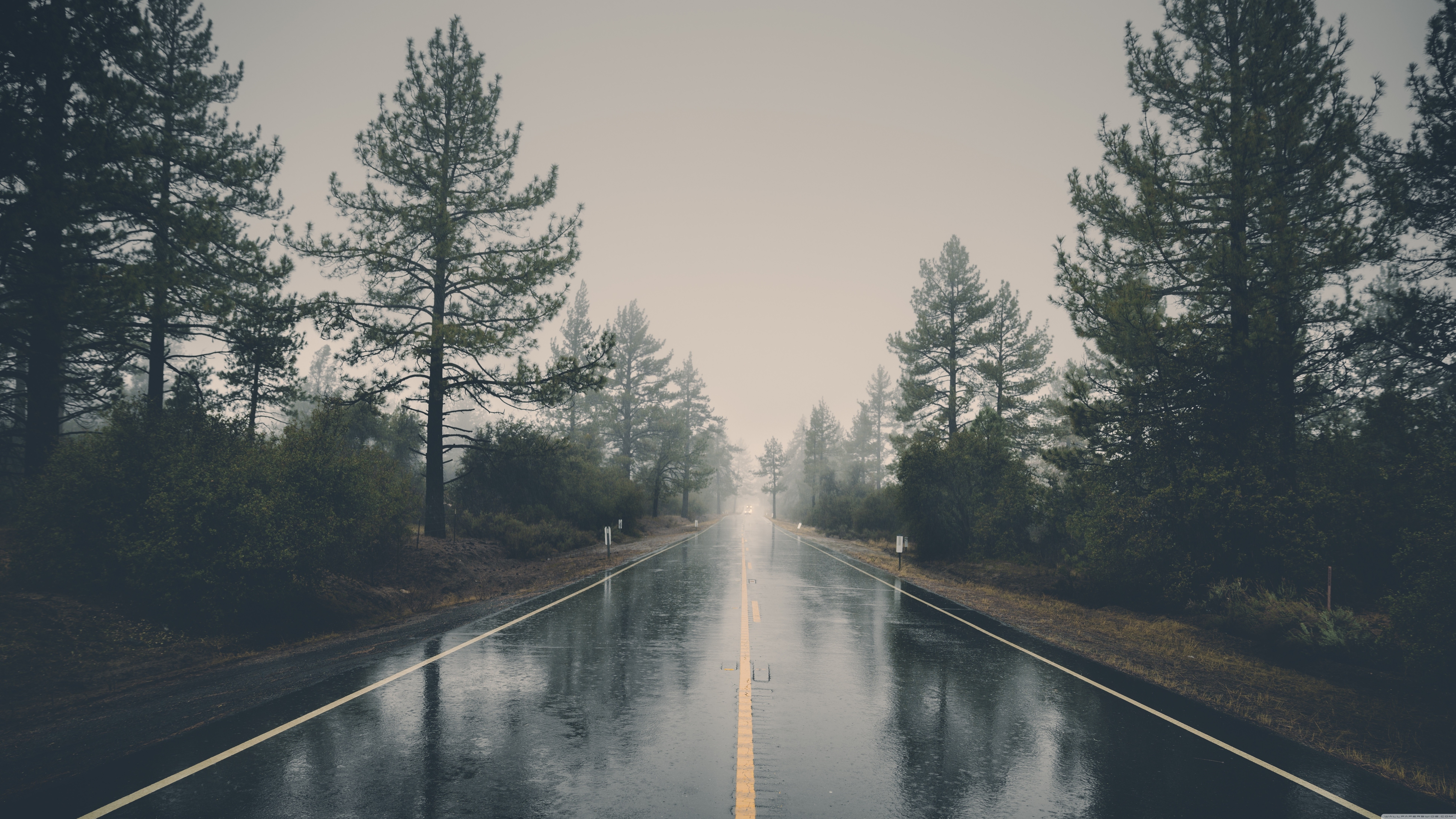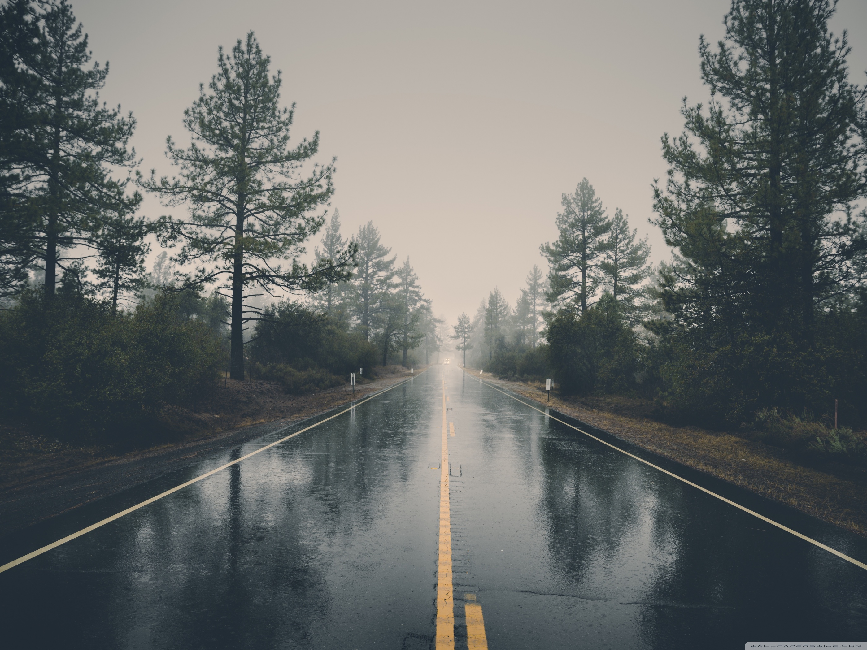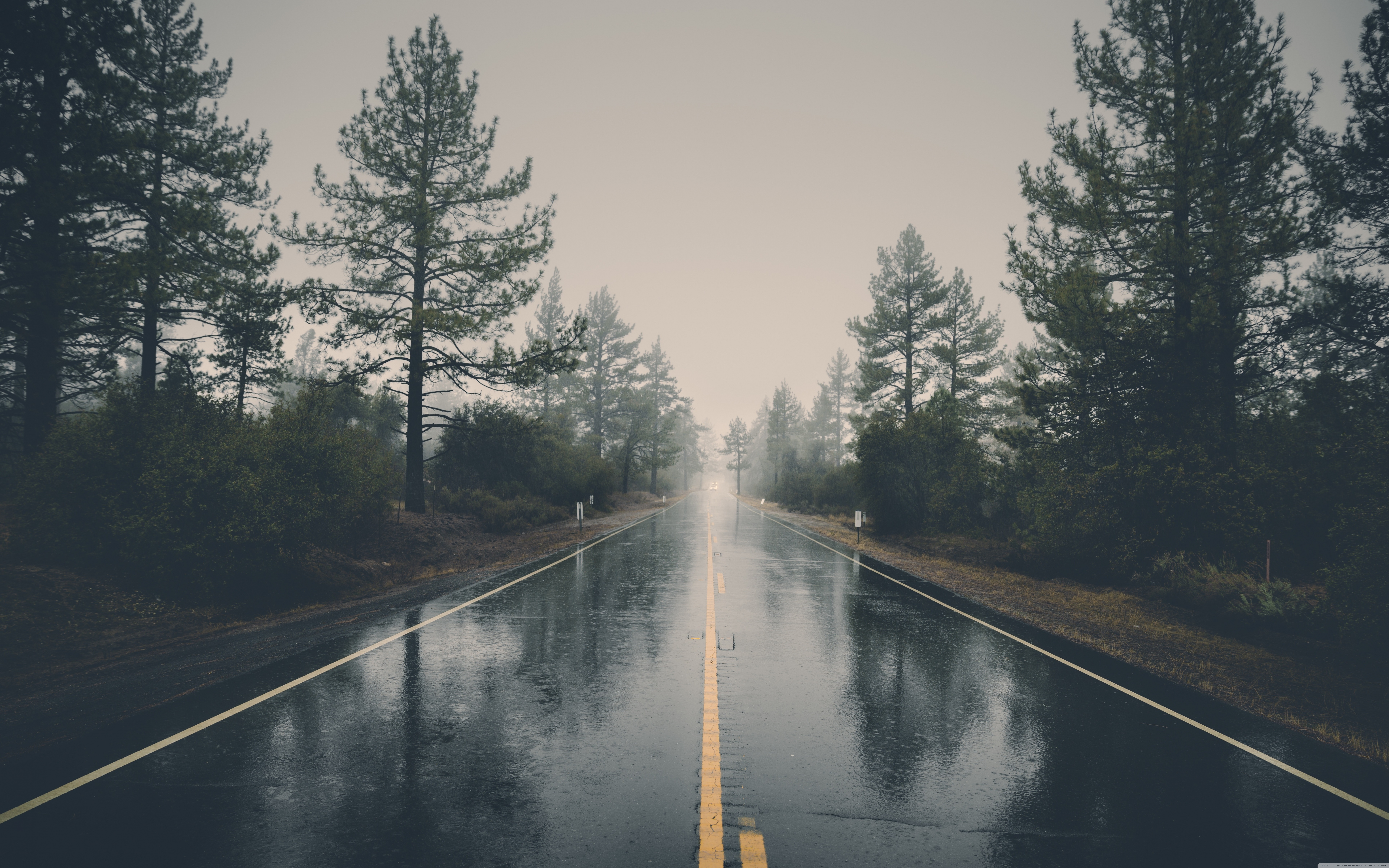 Download Rain, Road, Gloomy Weather 4K UHD Wallpaper