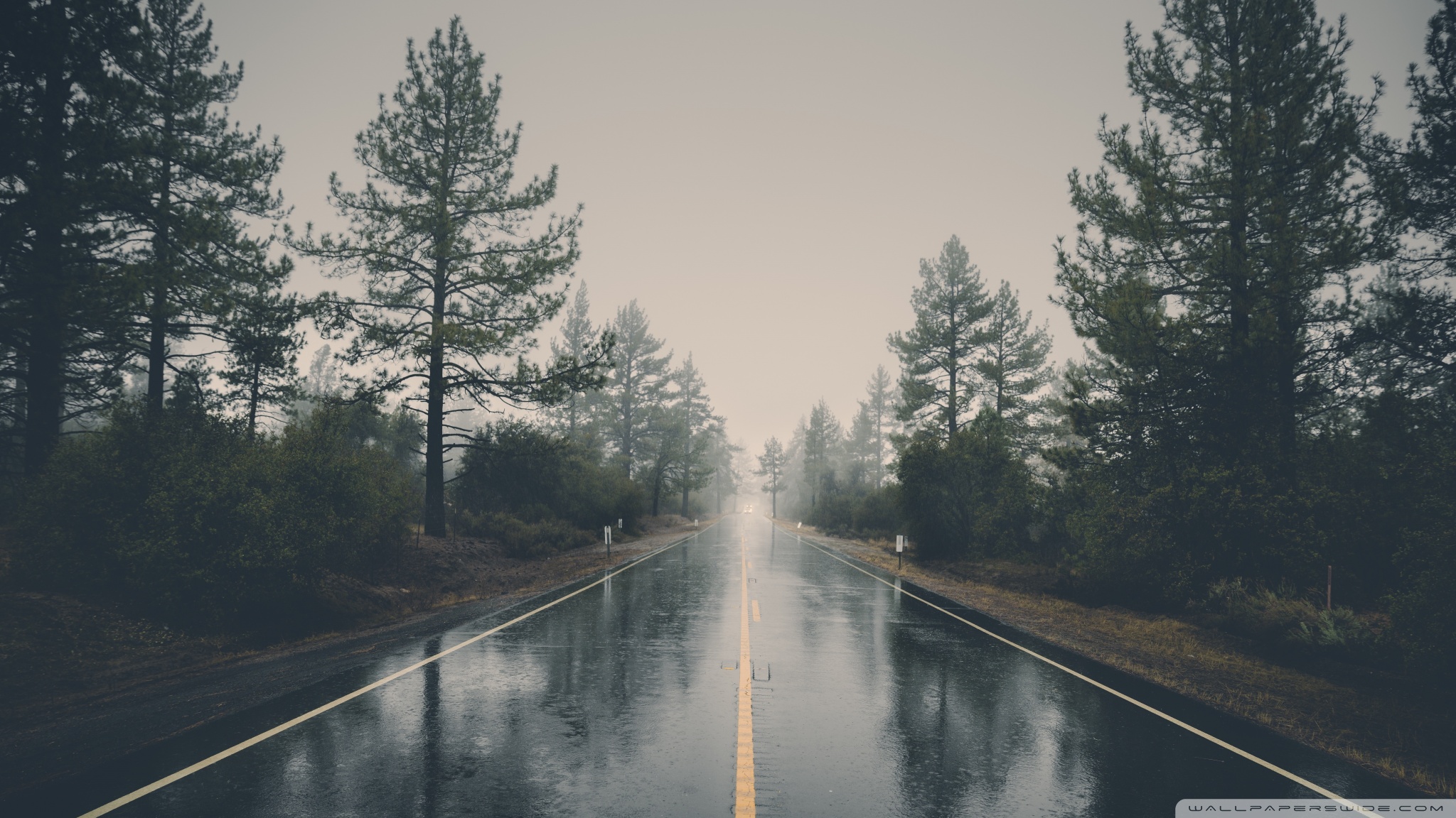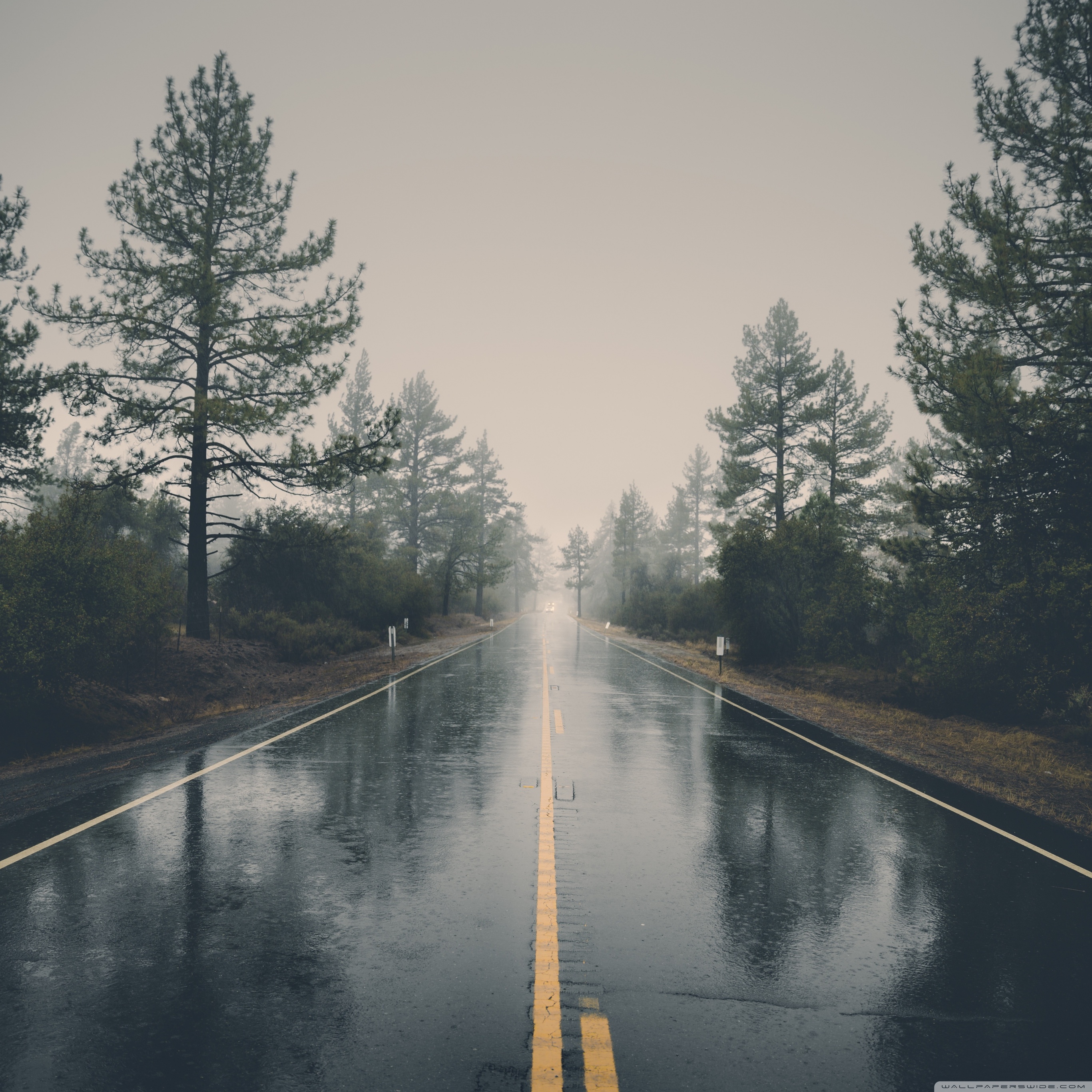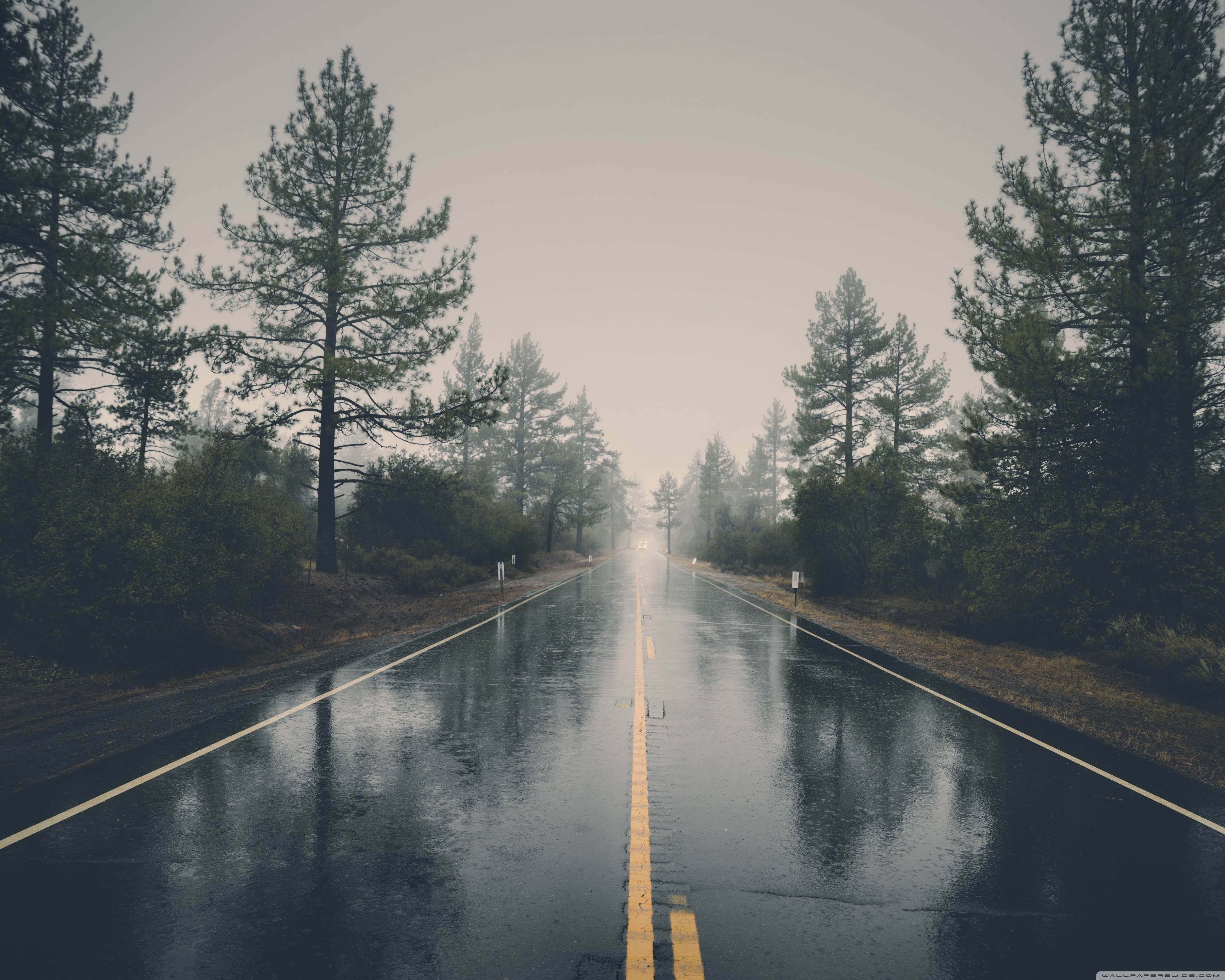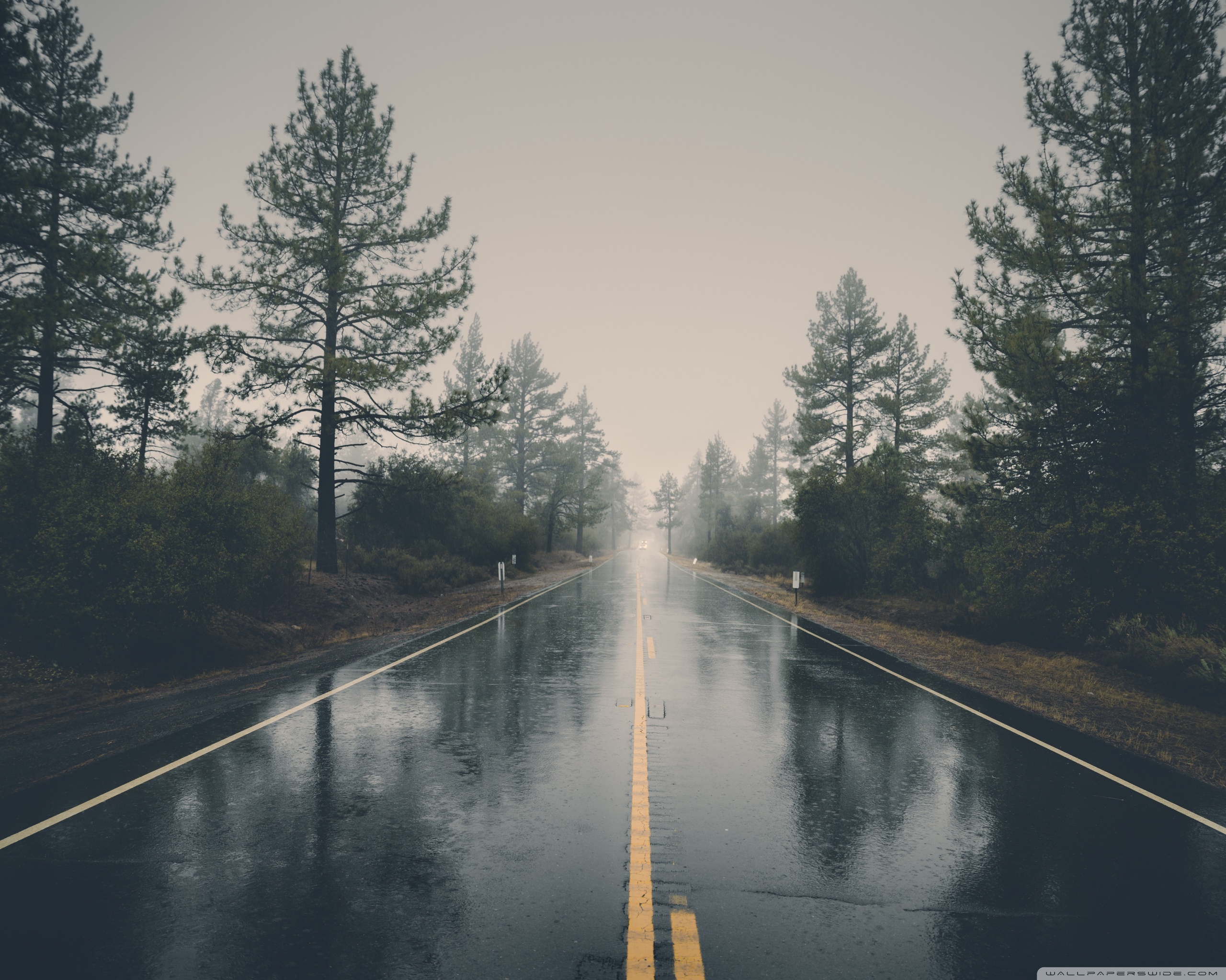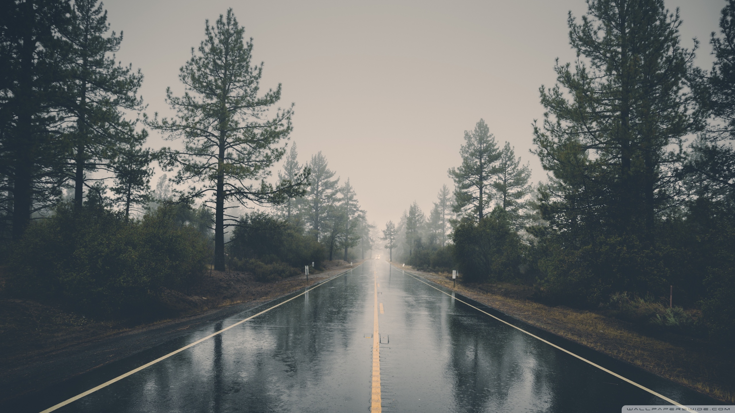 Download Rain, Road, Gloomy Weather 4K UHD Wallpaper