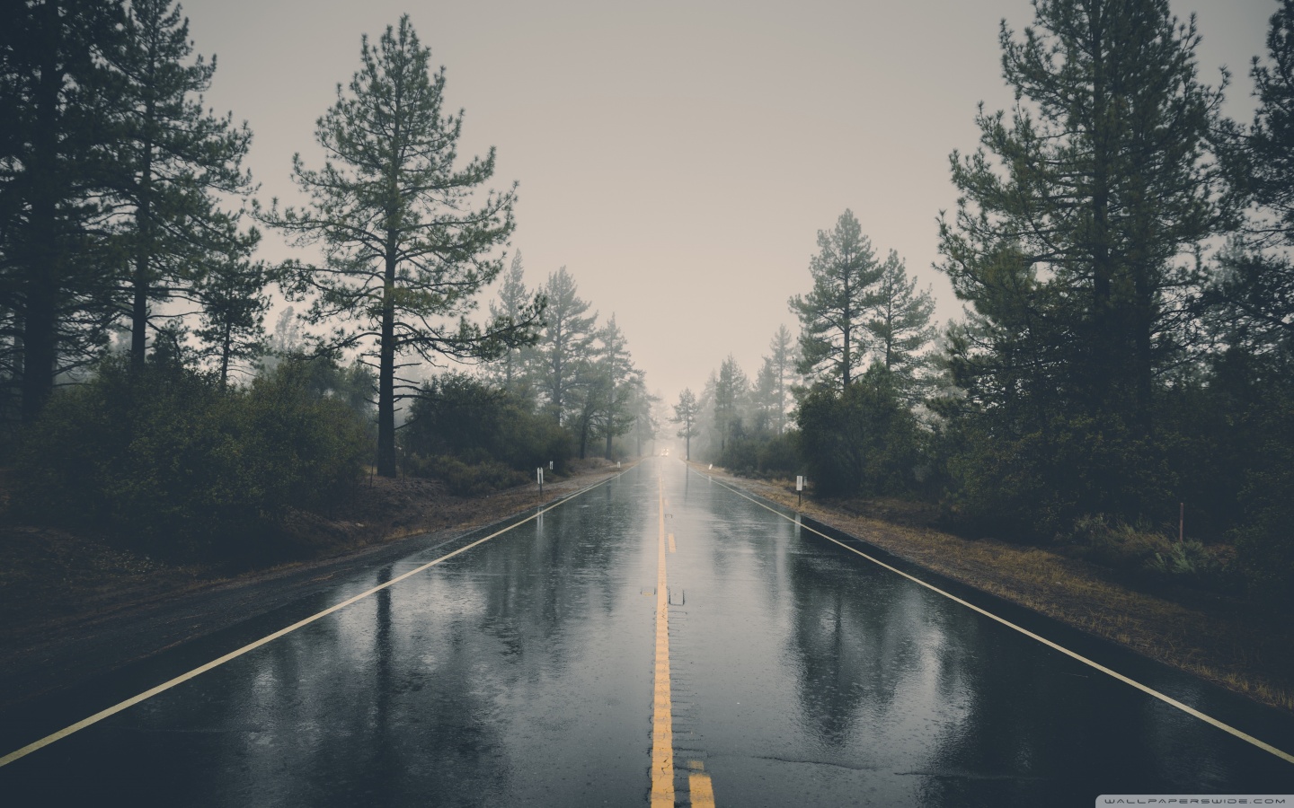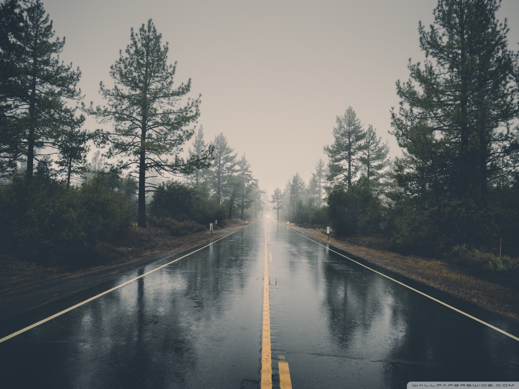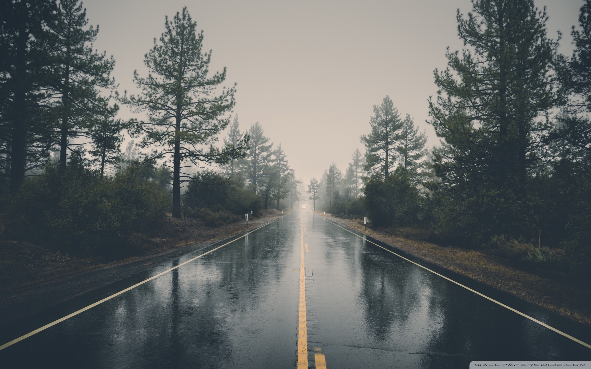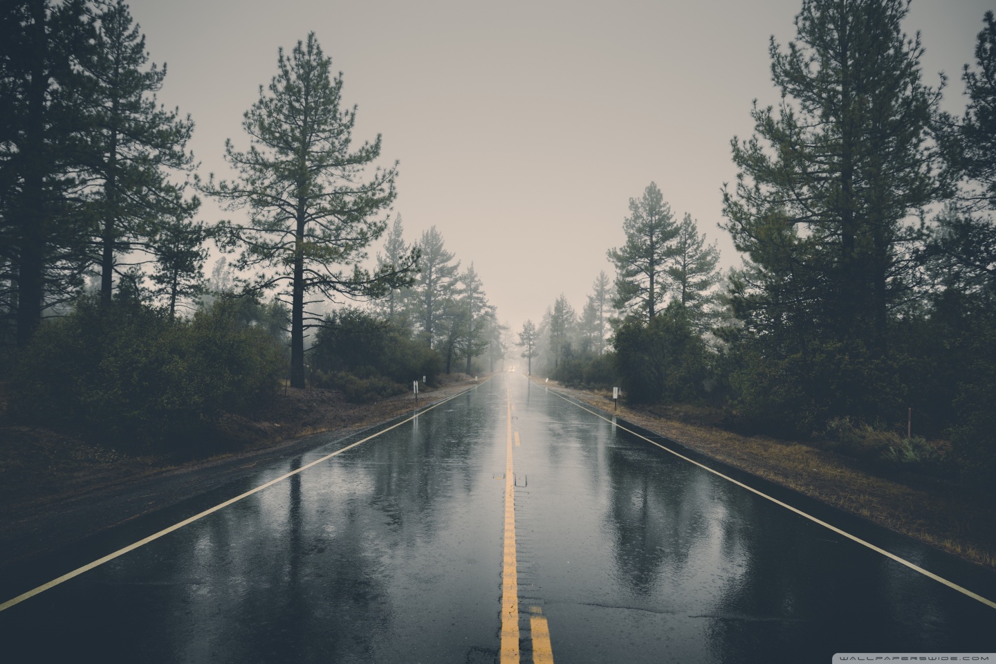 Download Rain, Road, Gloomy Weather 4K UHD Wallpaper