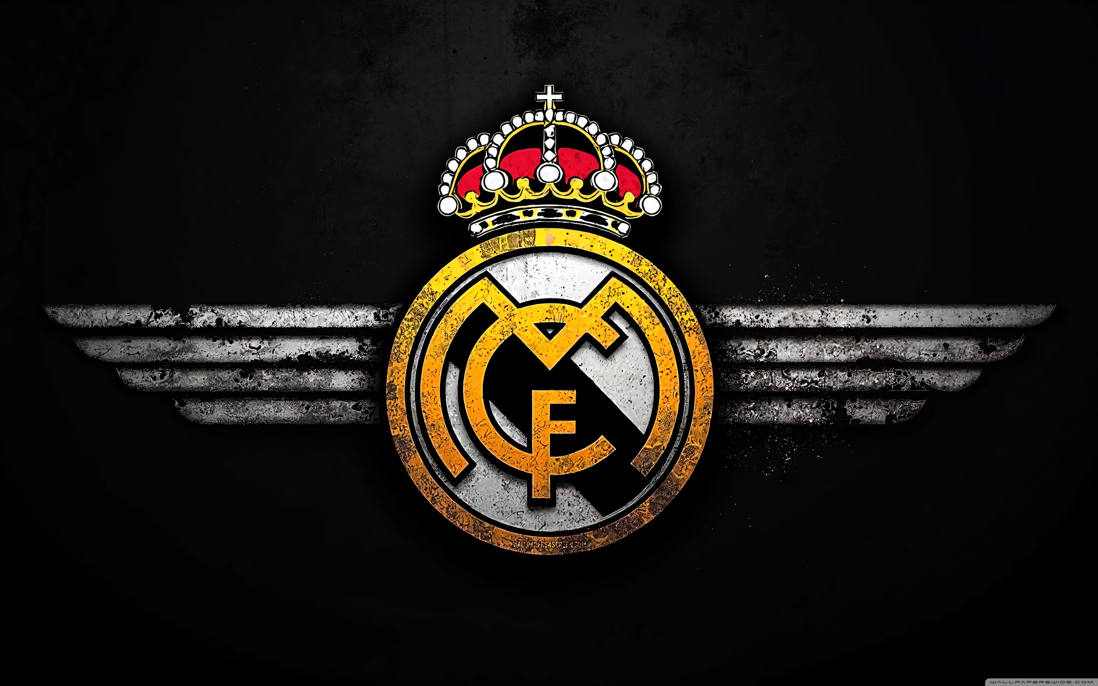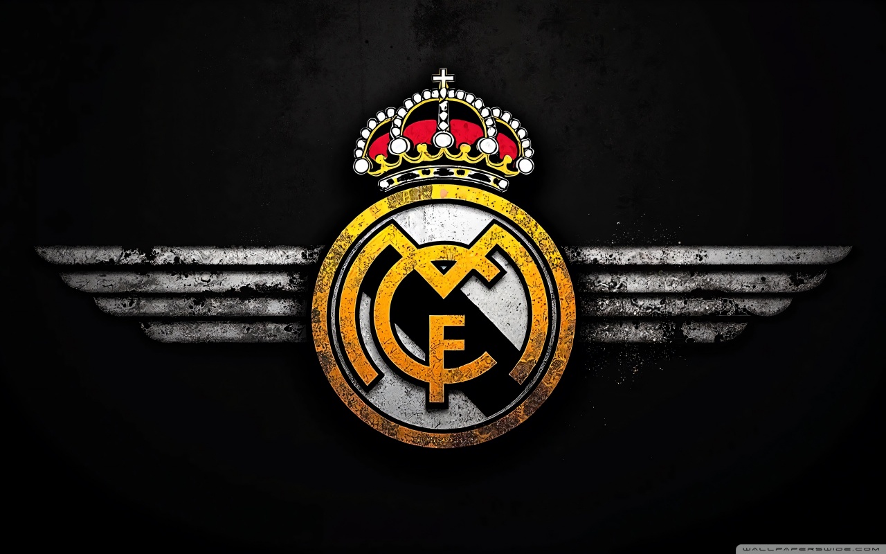Download Real Madrid Logo Black Grunge Background 4K UHD Wallpaper