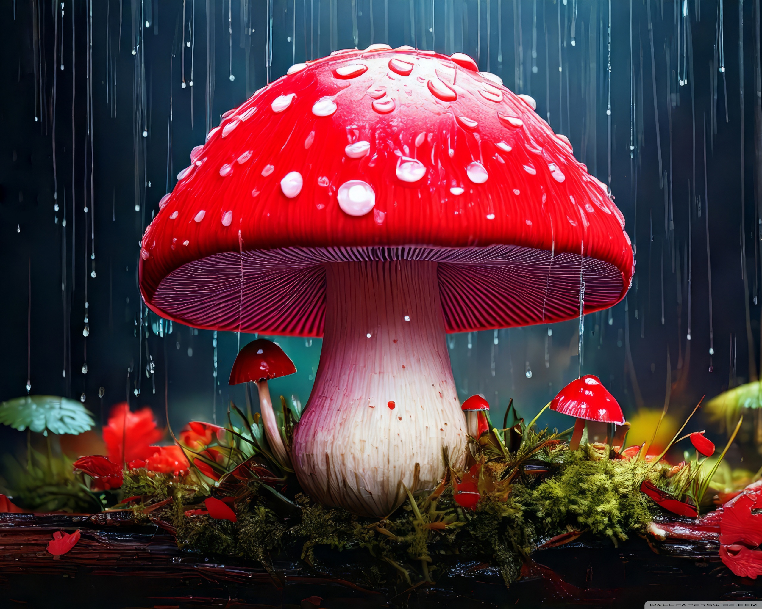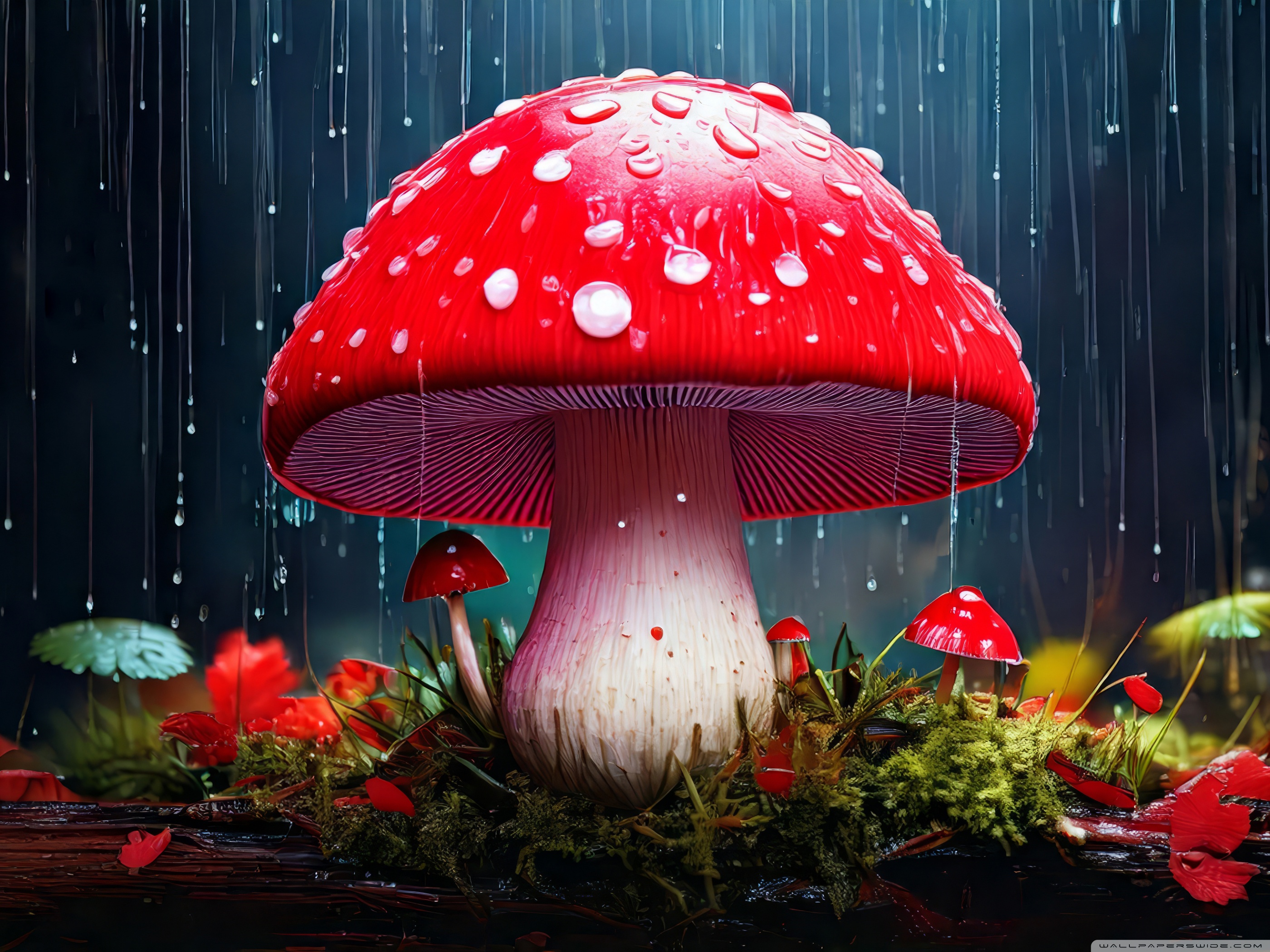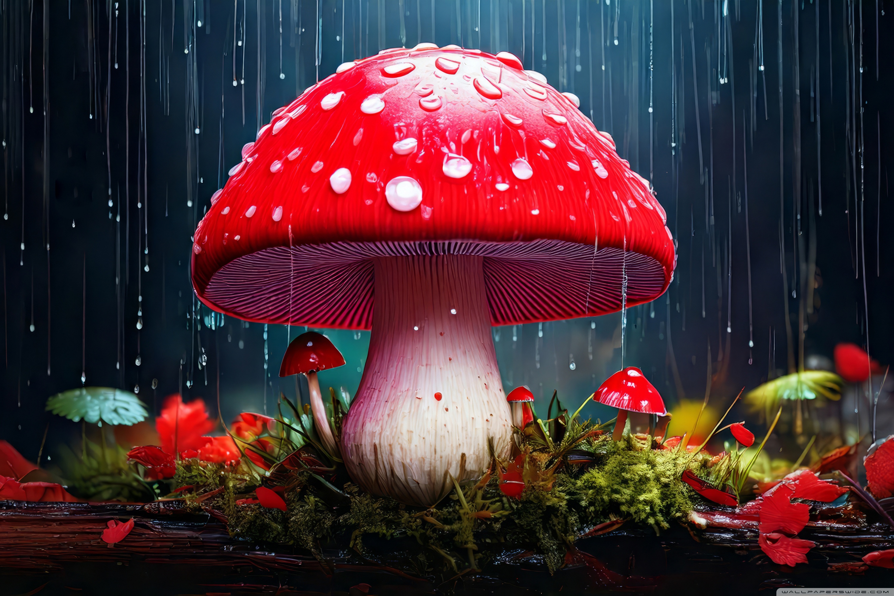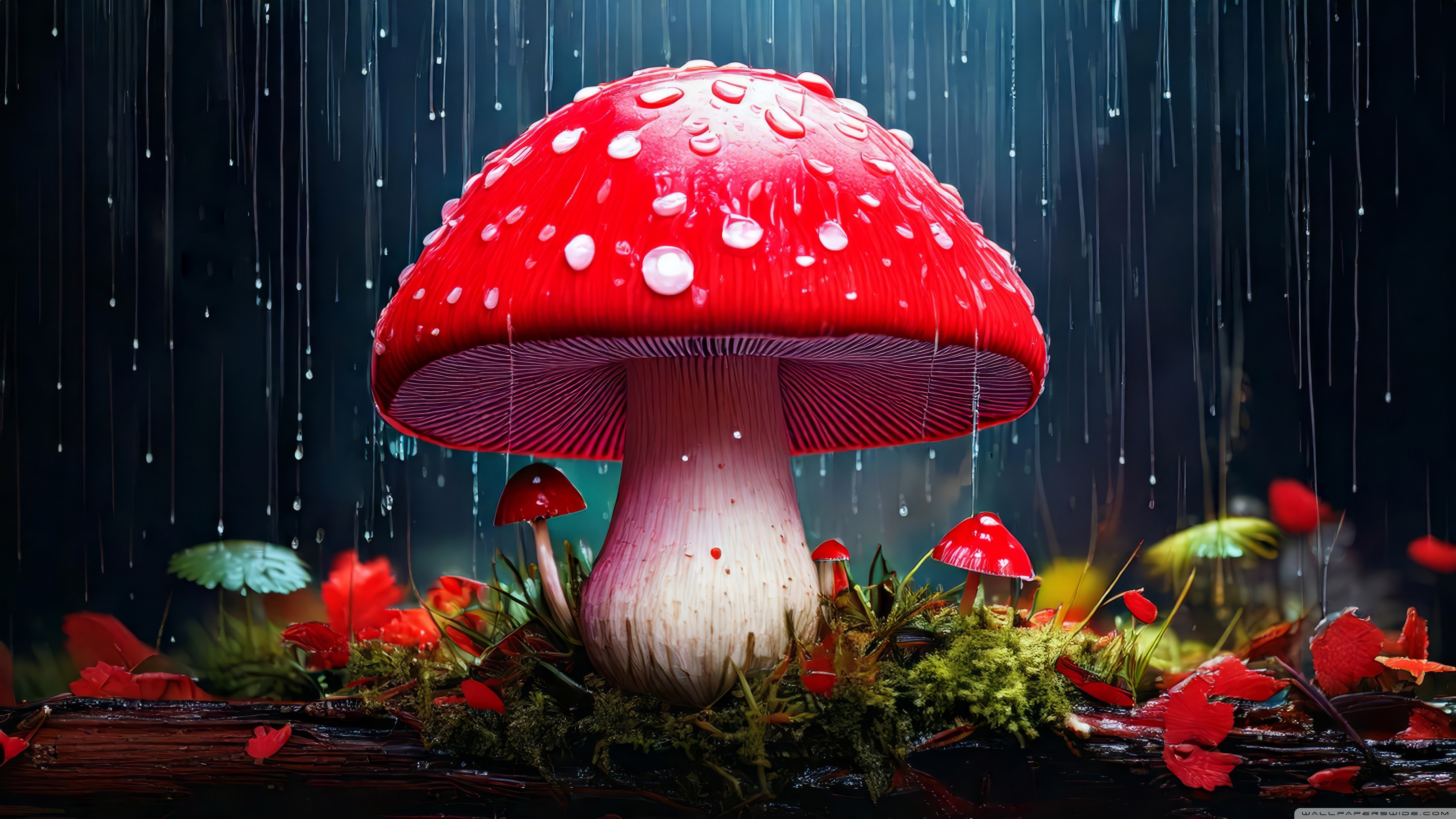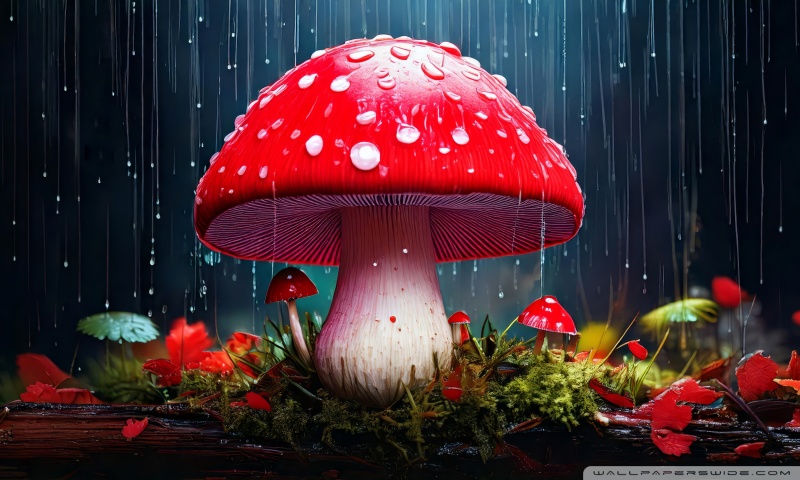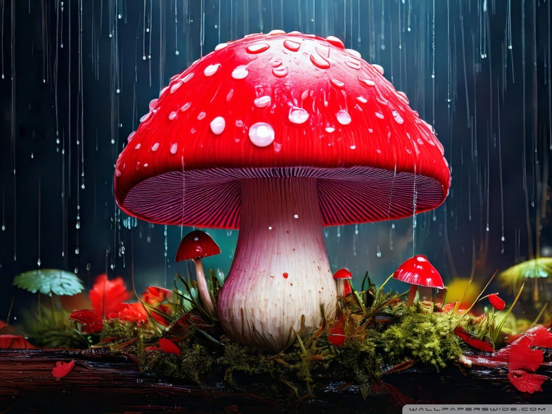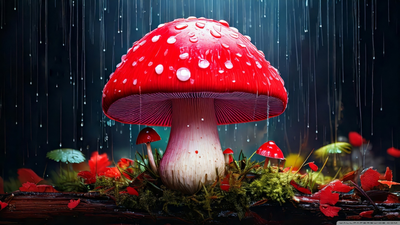 Download Red Mushroom in the Rain Art 4K UHD Wallpaper