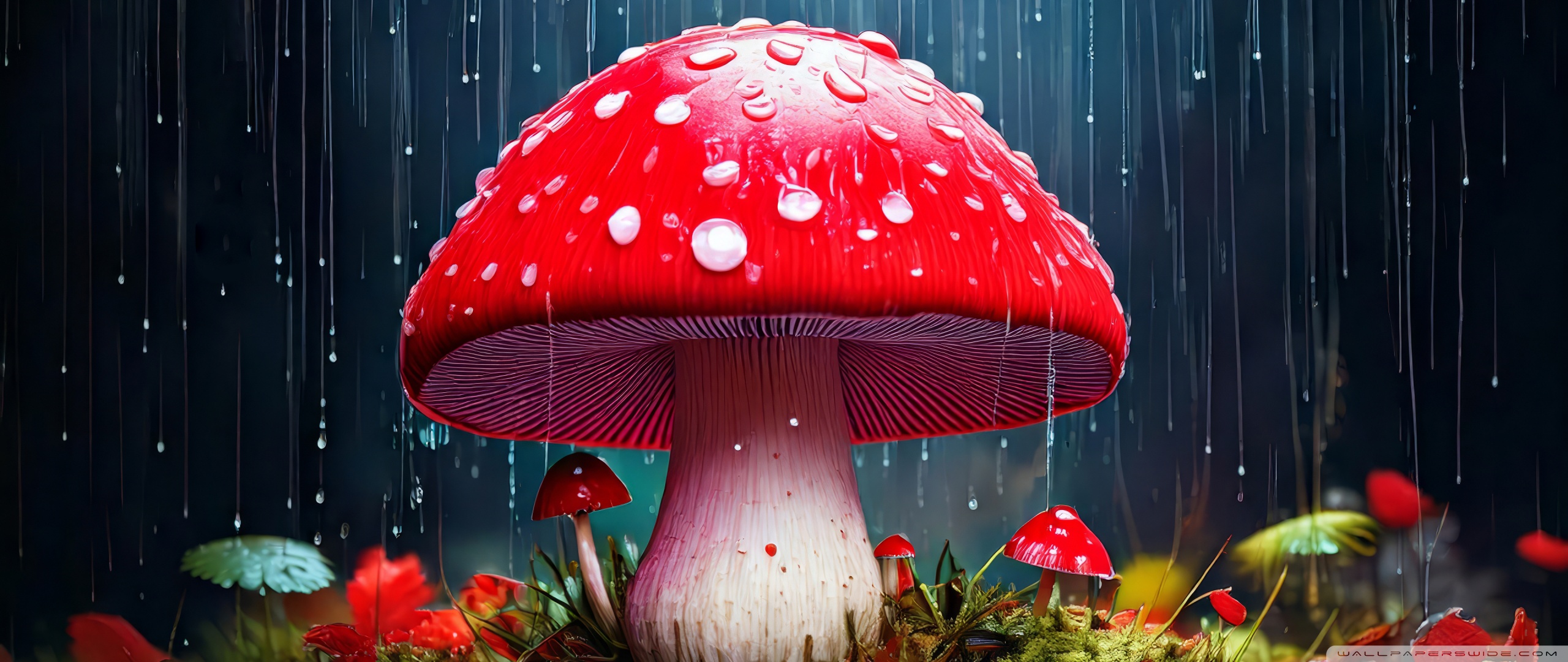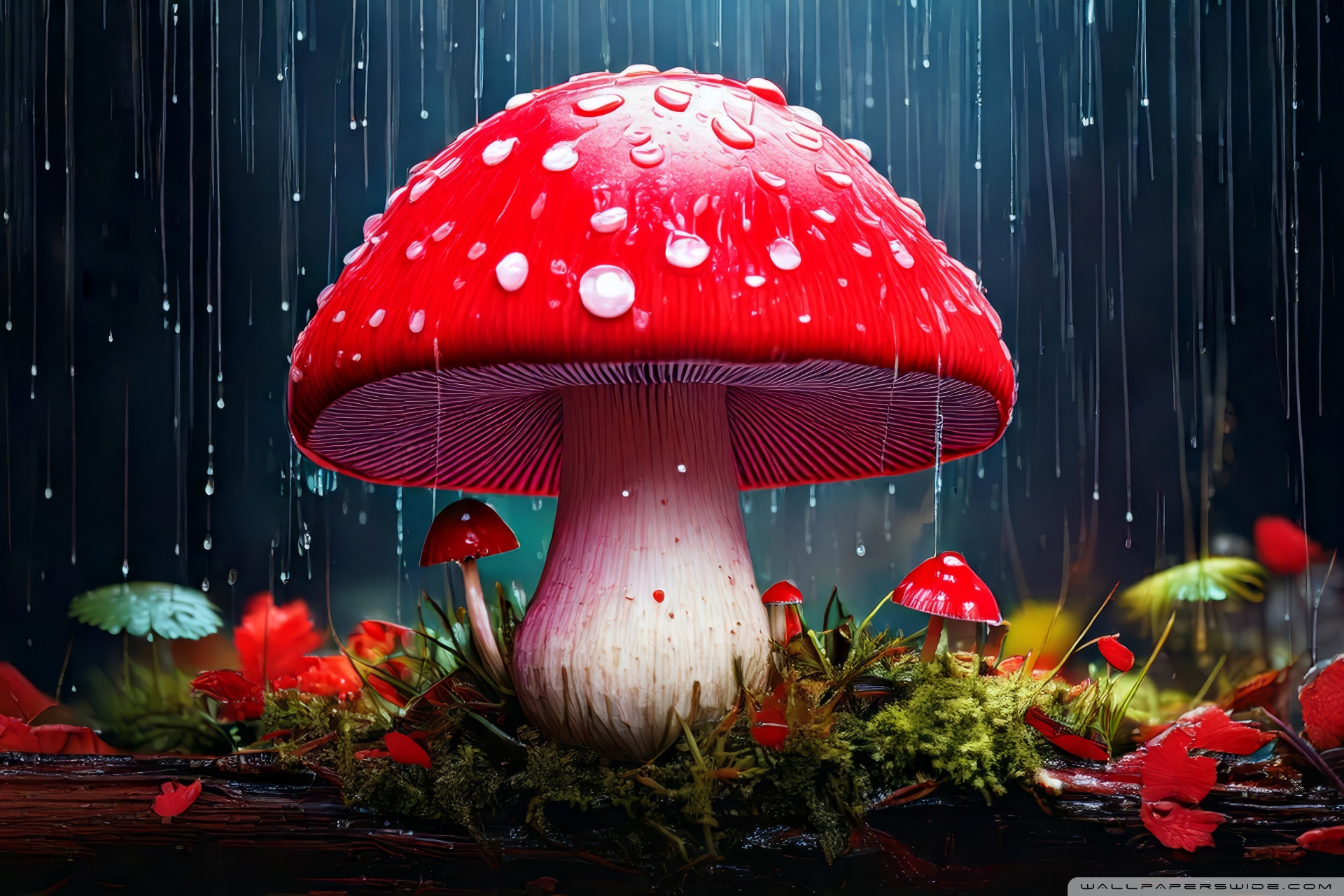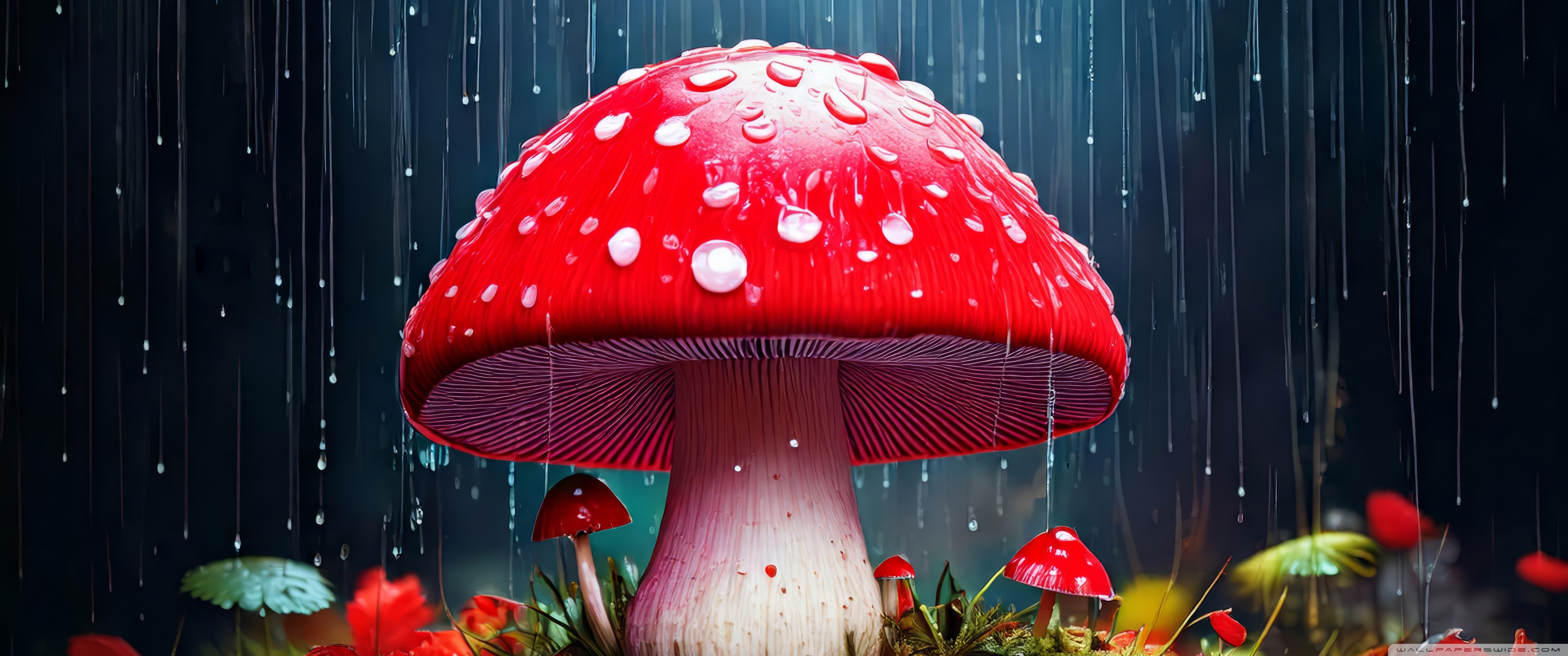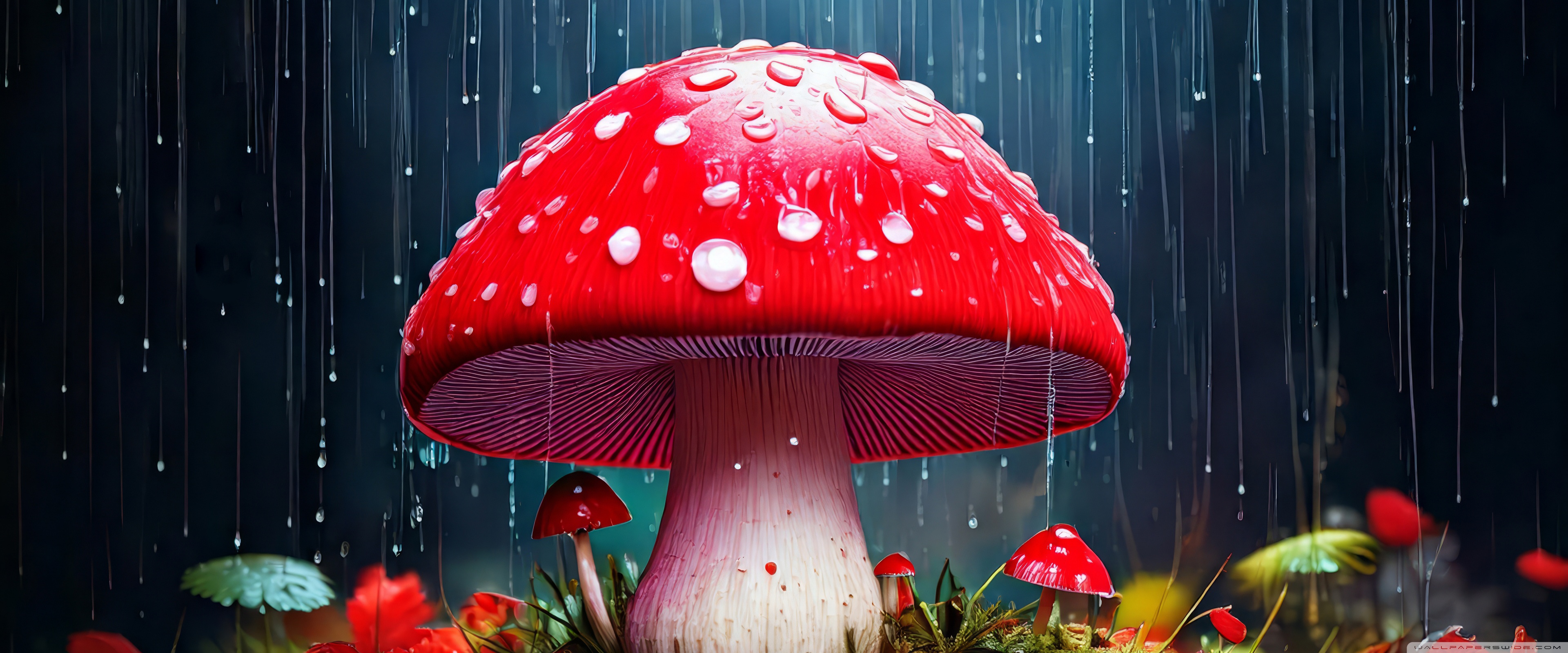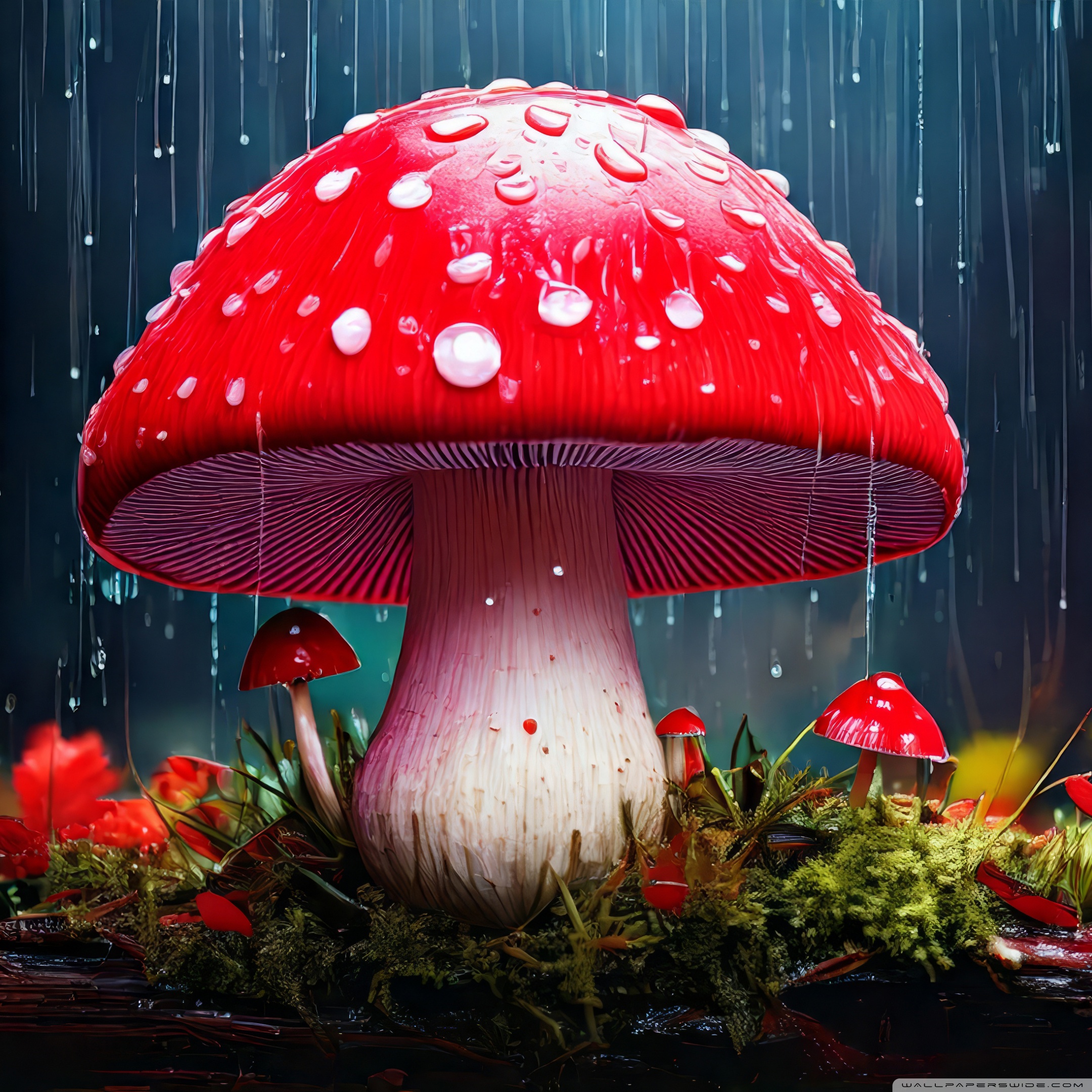 Download Red Mushroom in the Rain Art 4K UHD Wallpaper