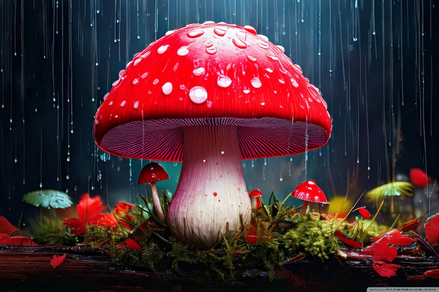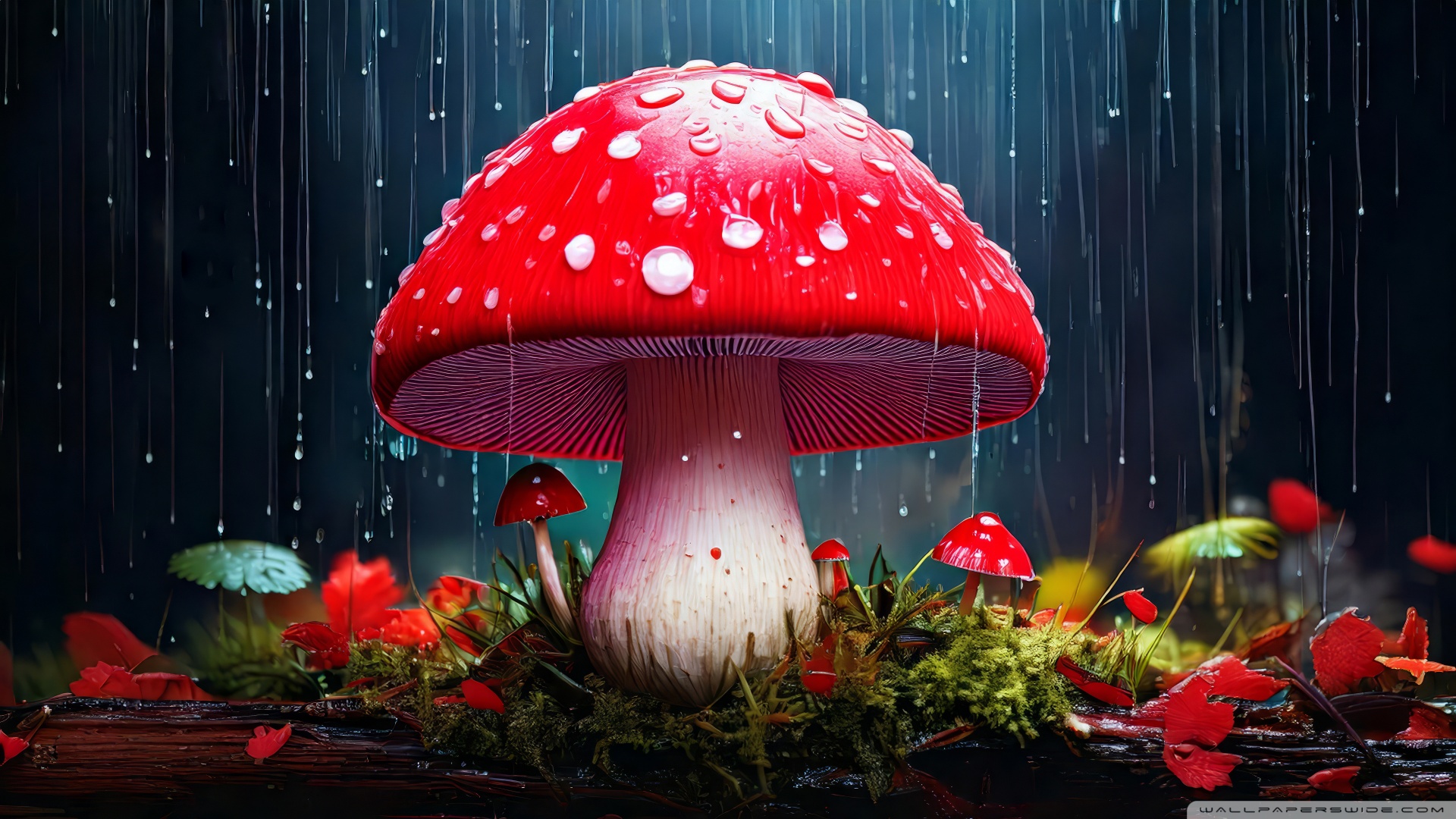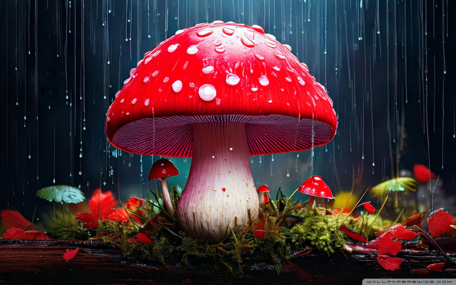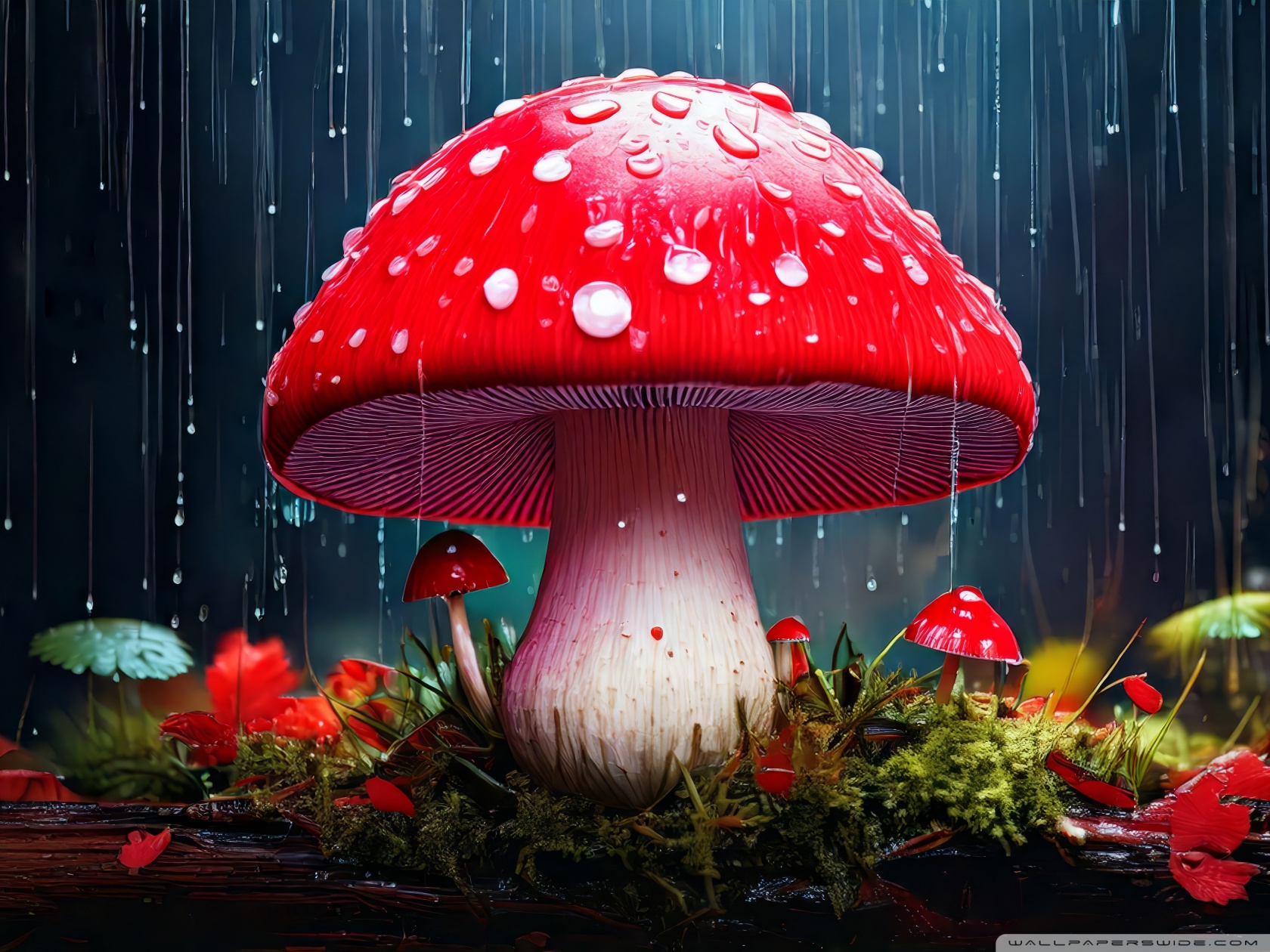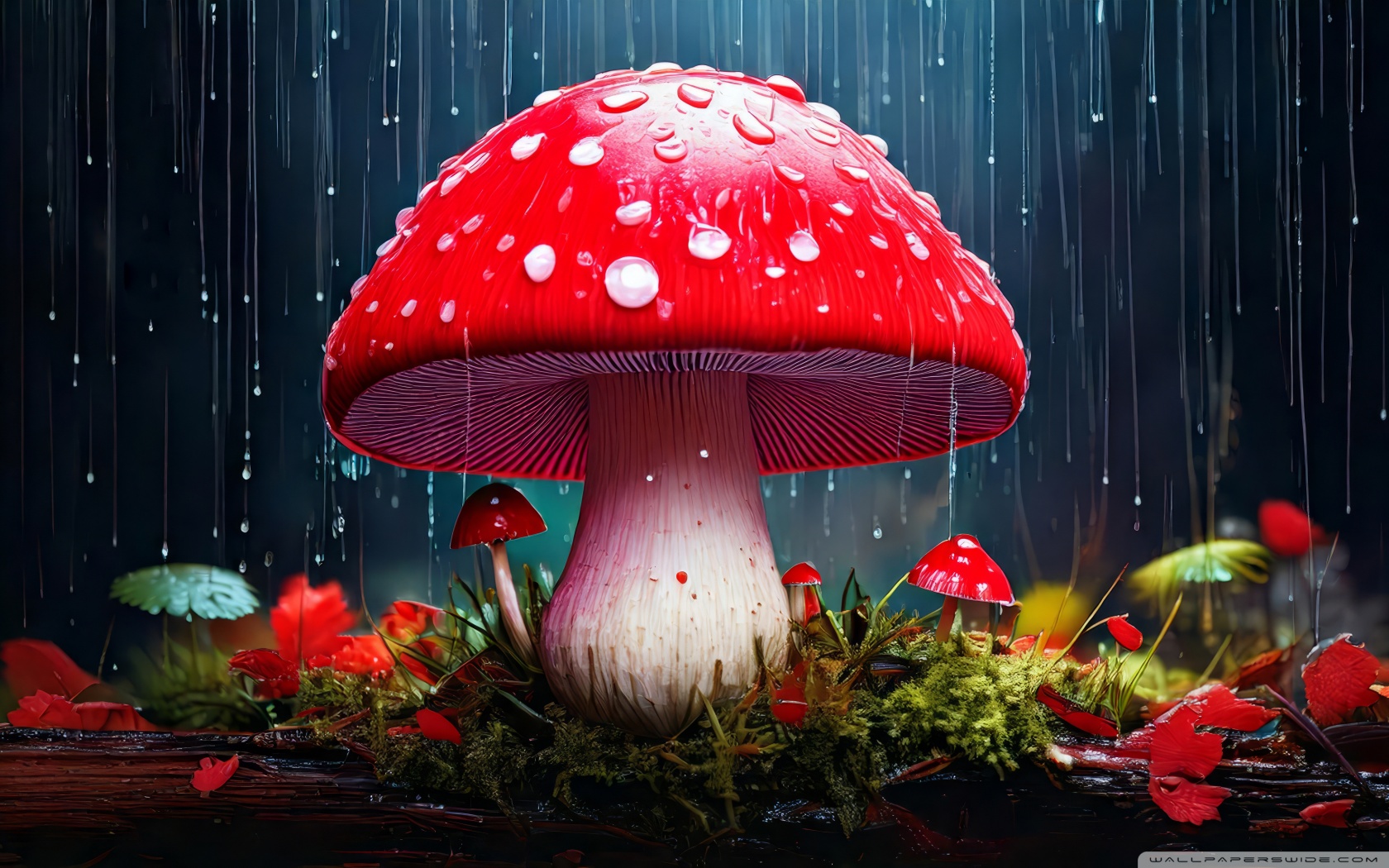 Download Red Mushroom in the Rain Art 4K UHD Wallpaper