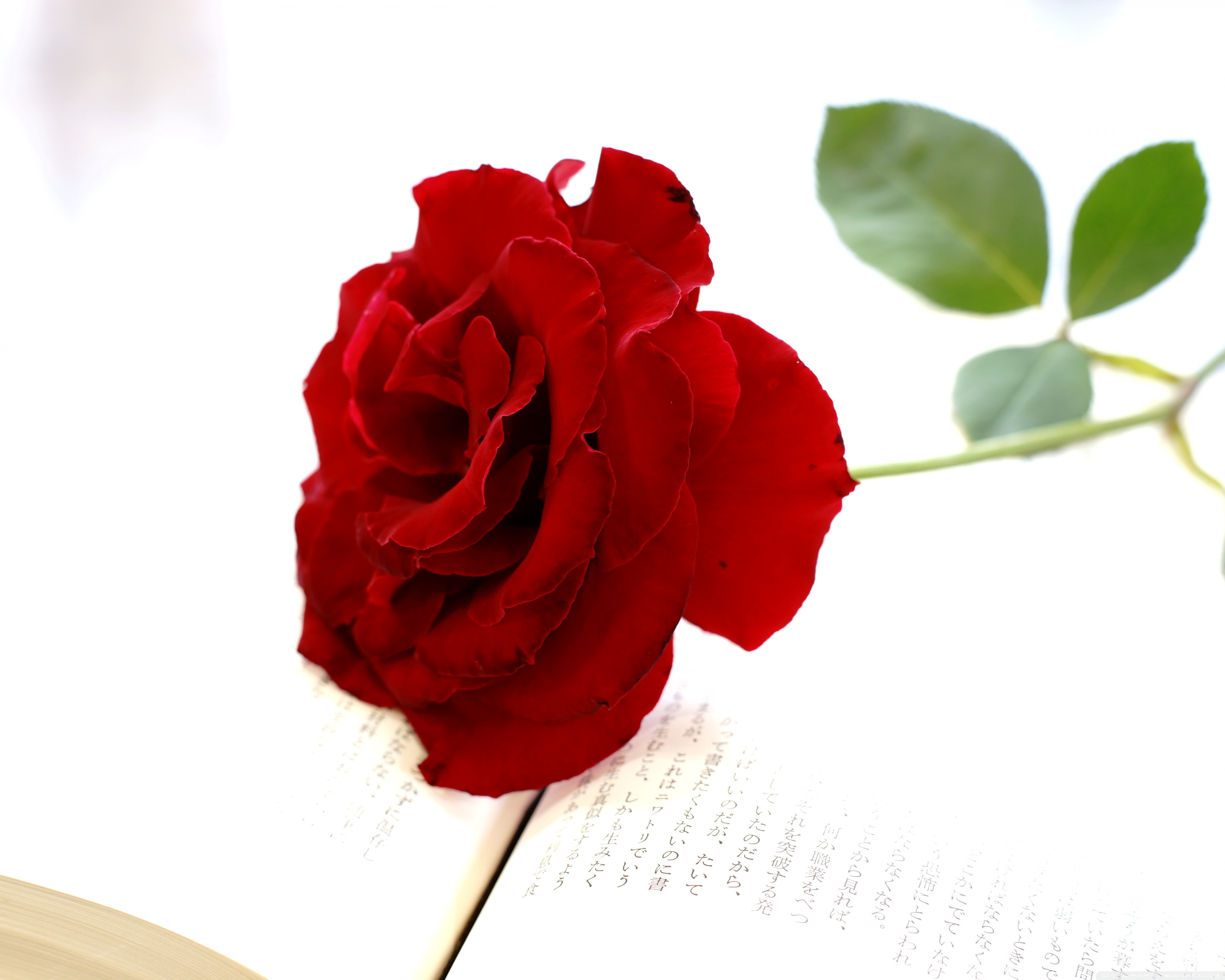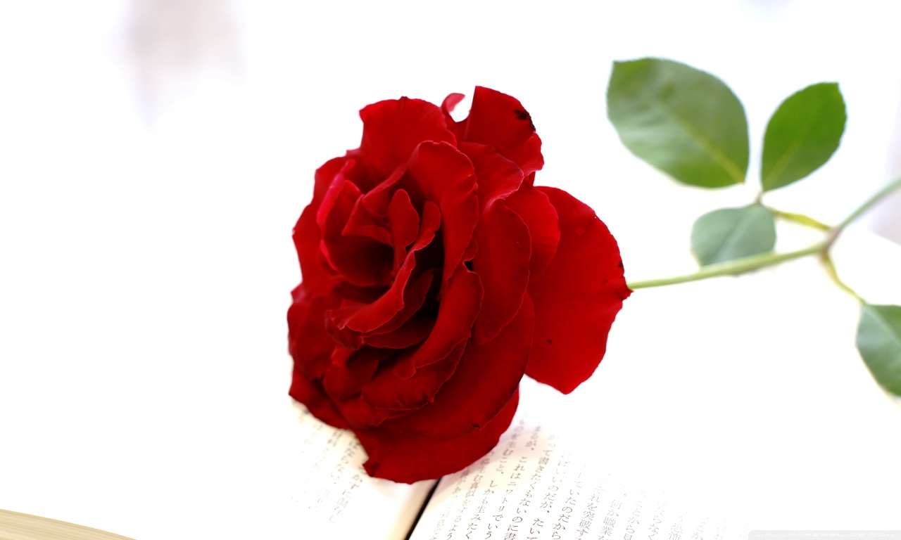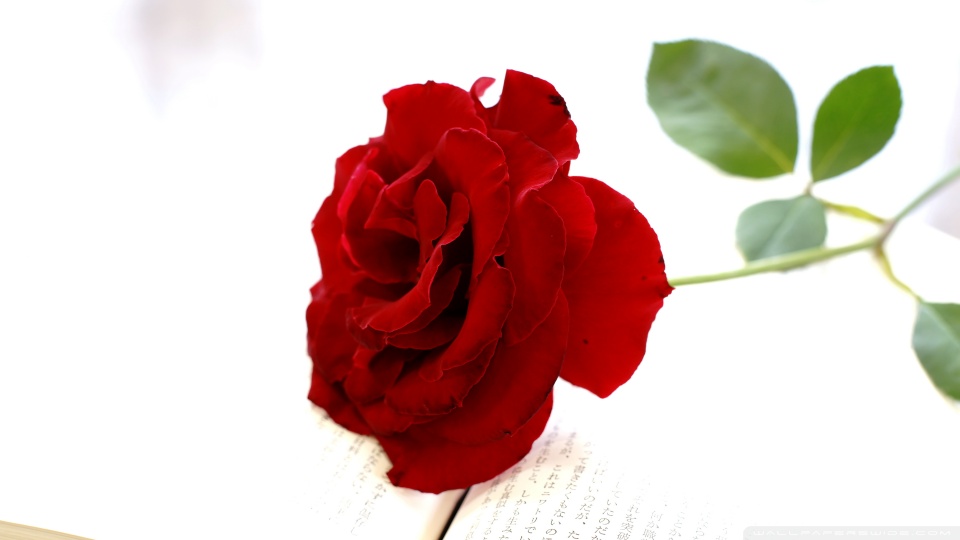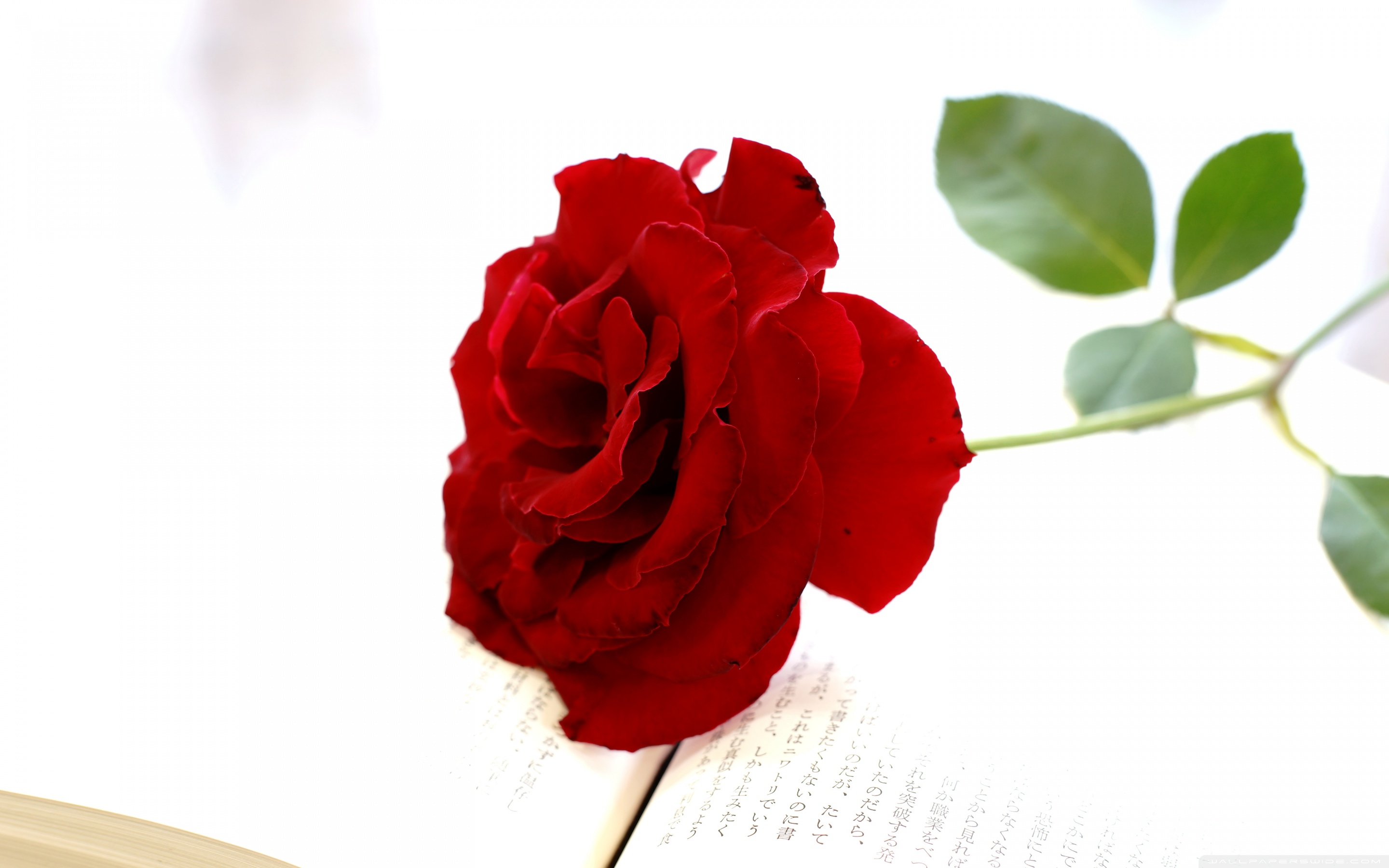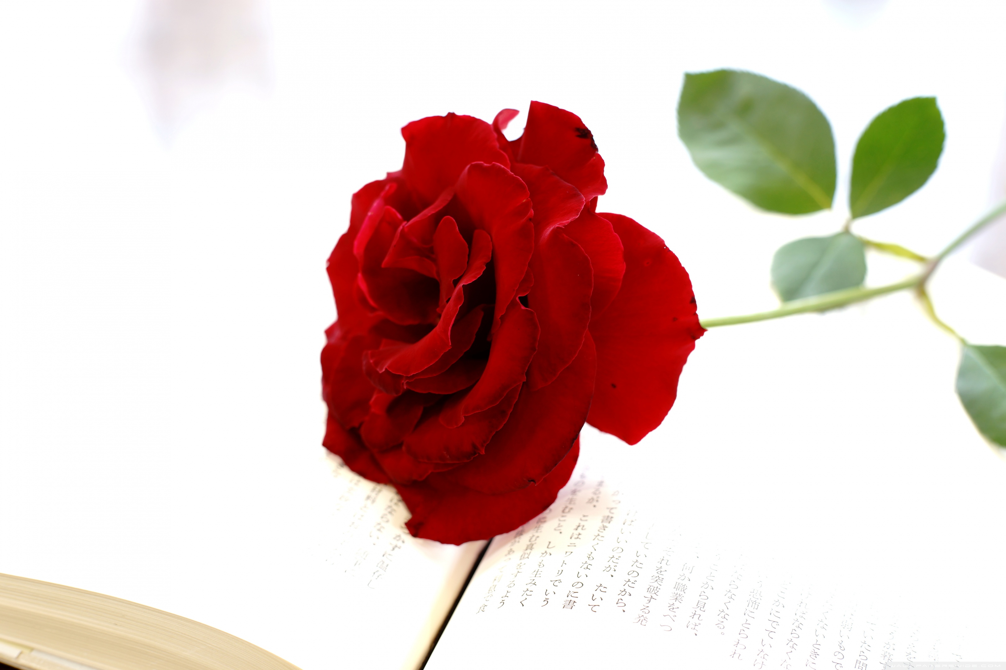 Download Red Rose Placed on Open Book 4K UHD Wallpaper