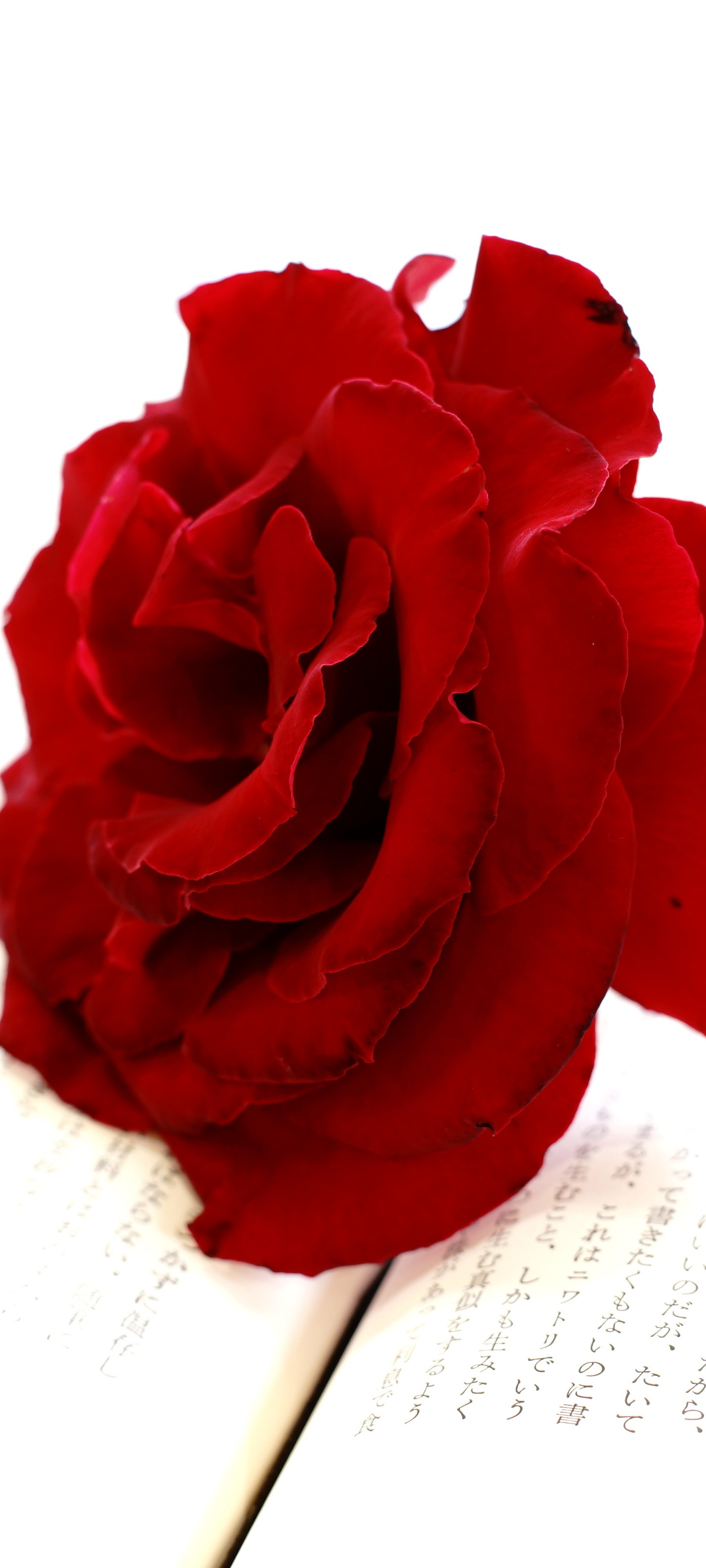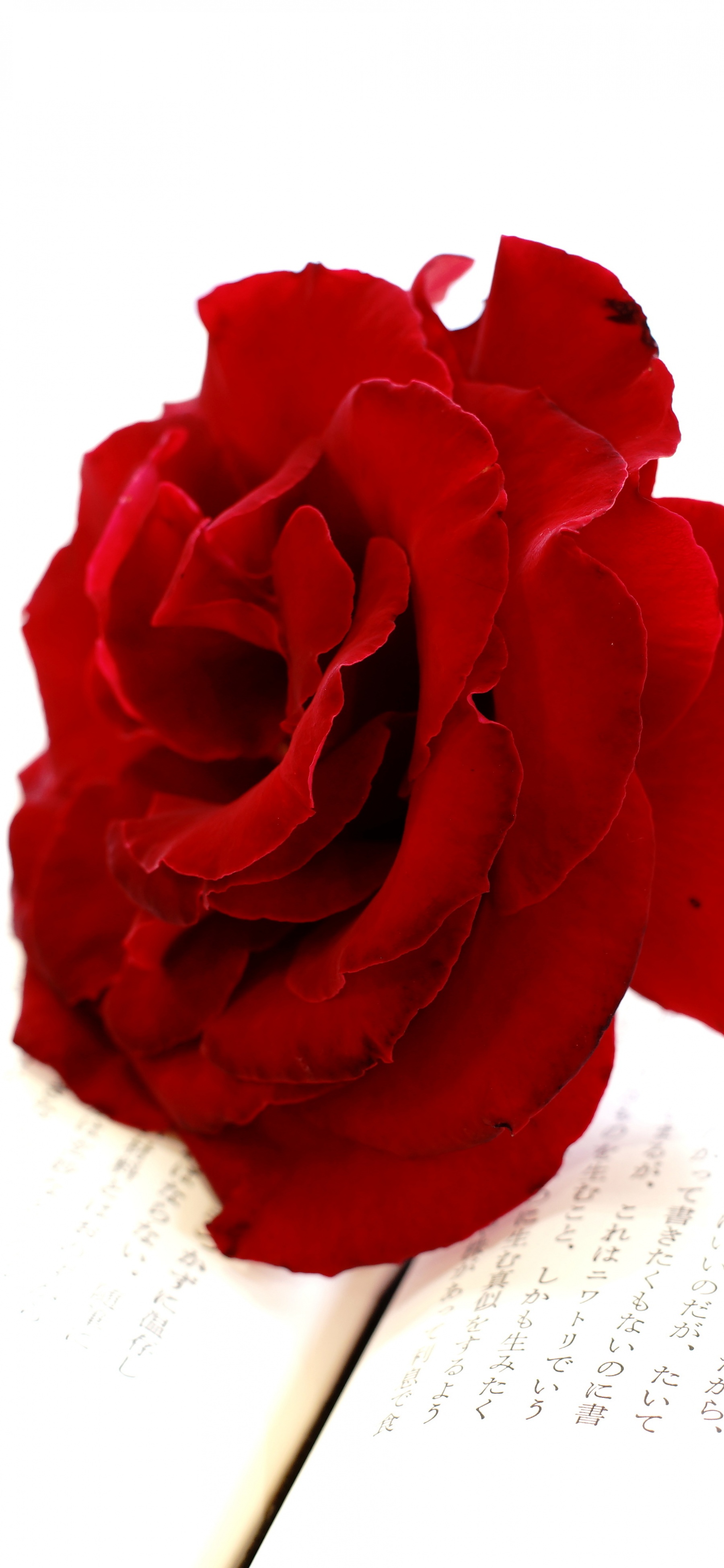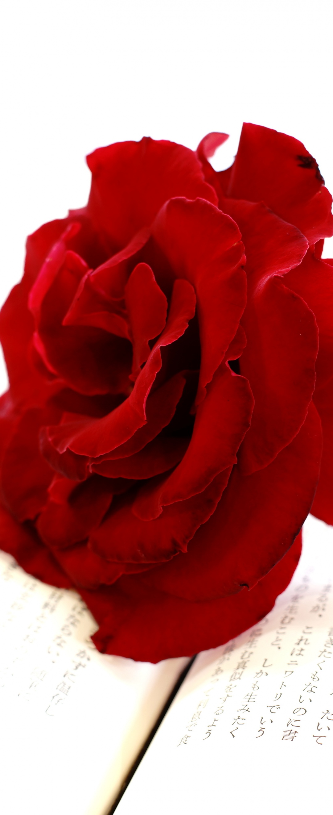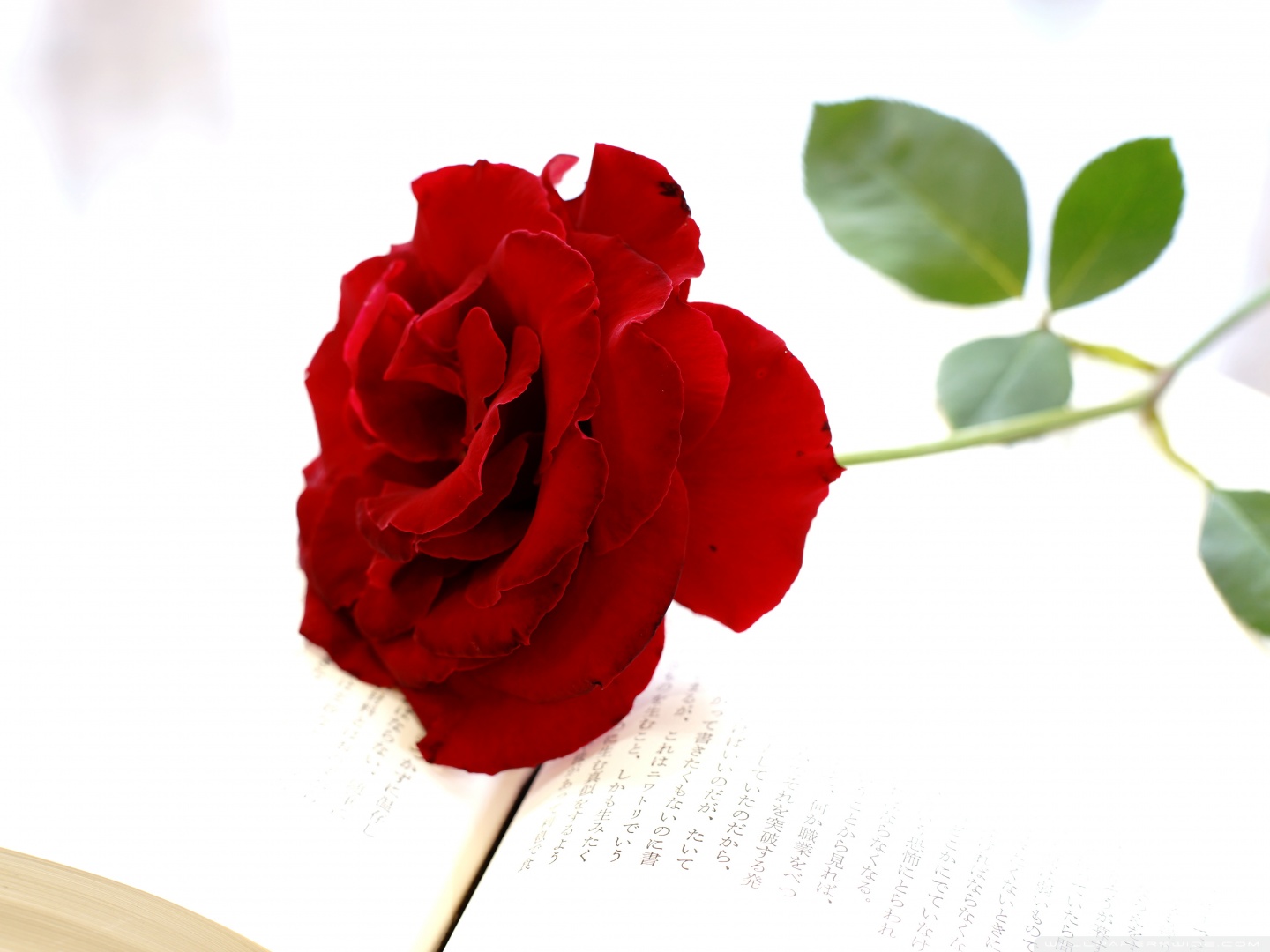 Download Red Rose Placed on Open Book 4K UHD Wallpaper