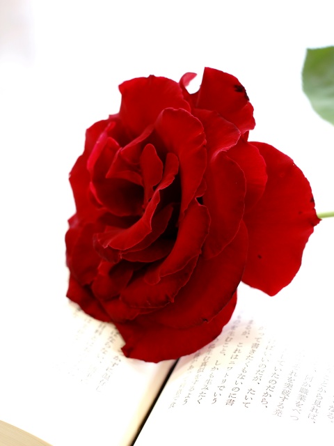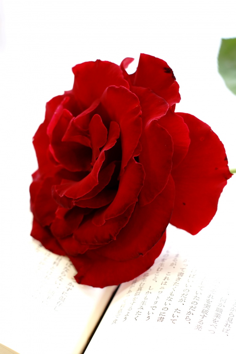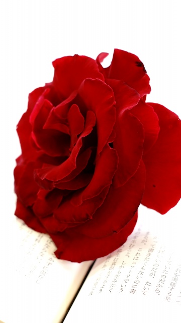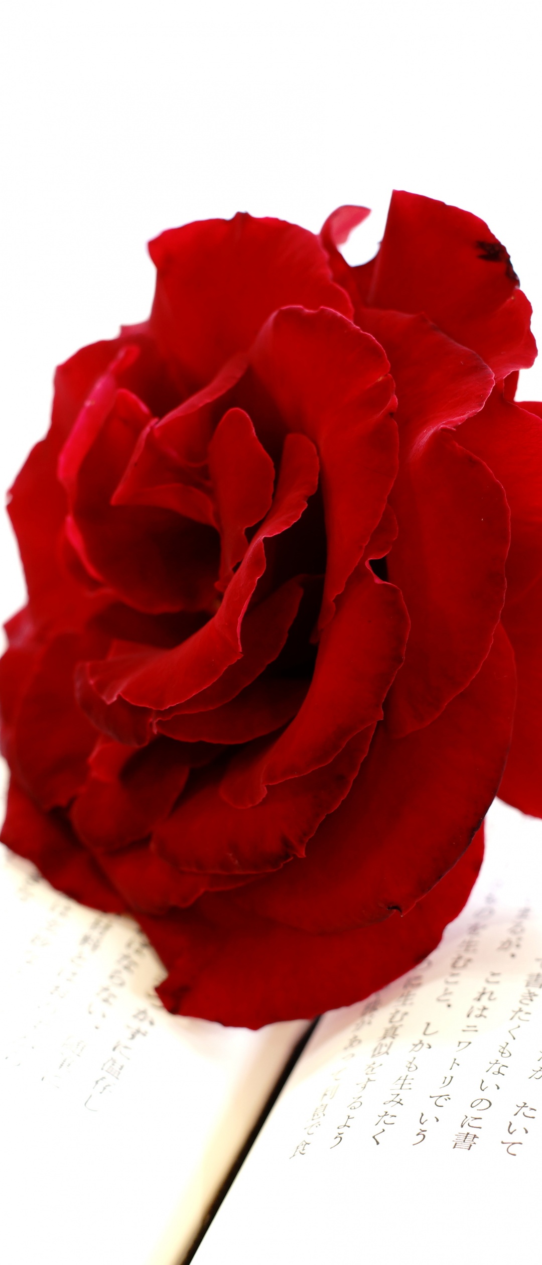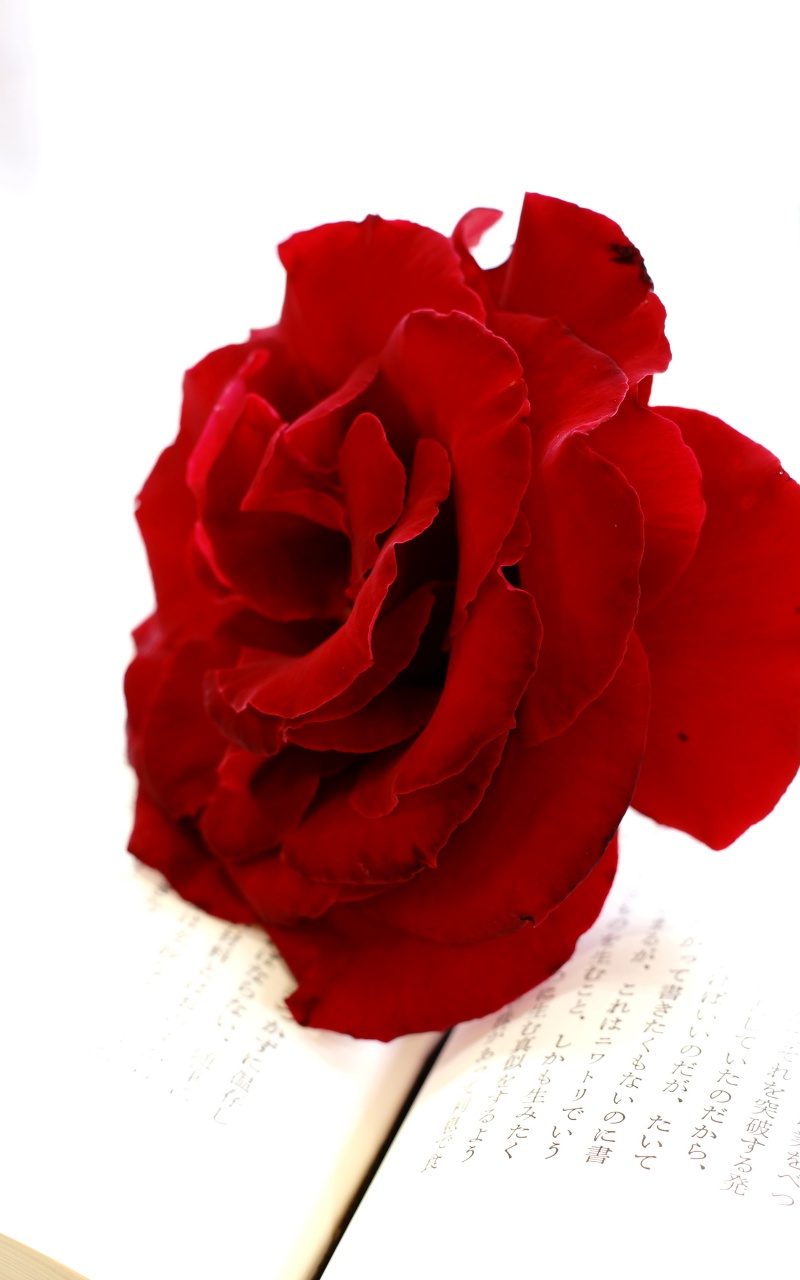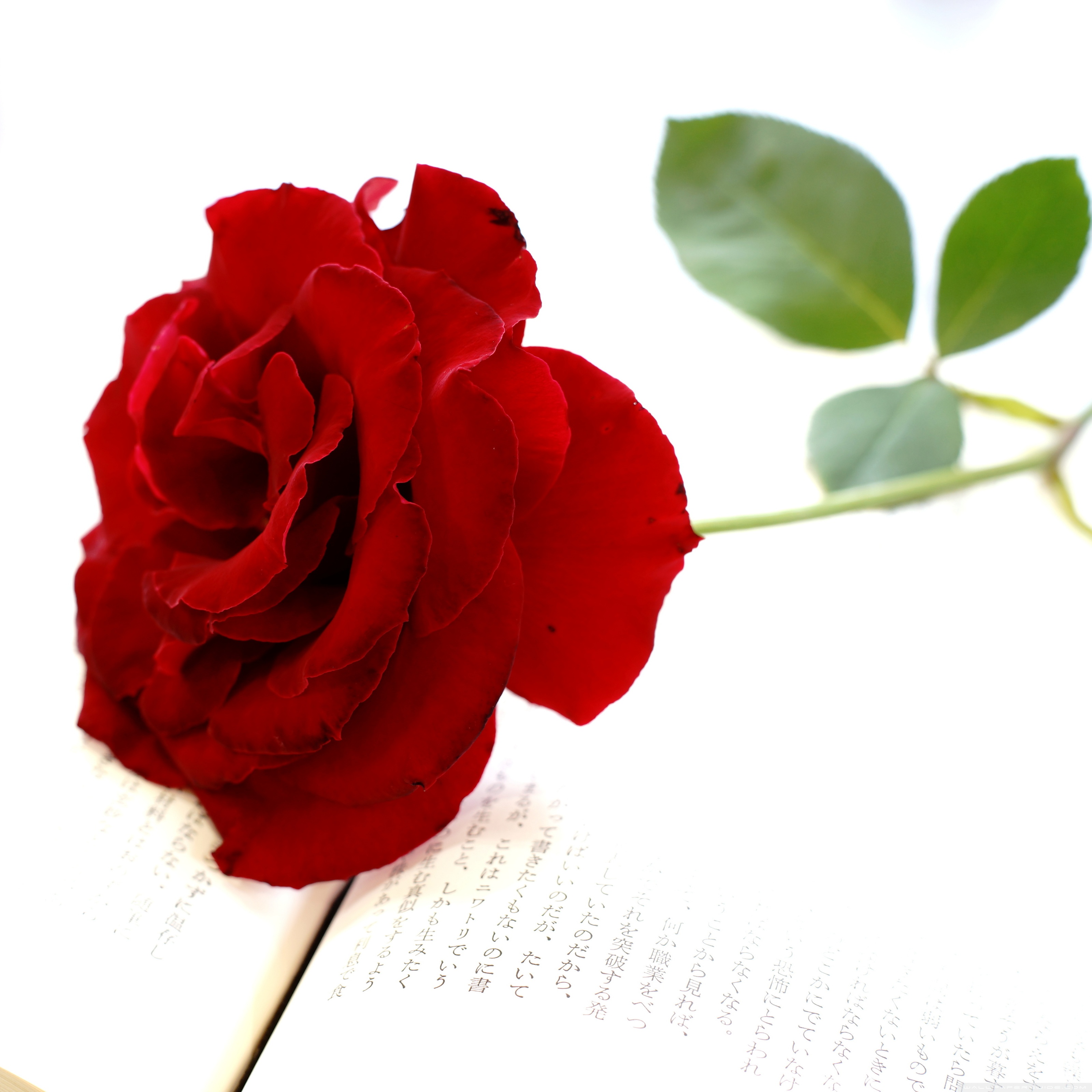 Download Red Rose Placed on Open Book 4K UHD Wallpaper