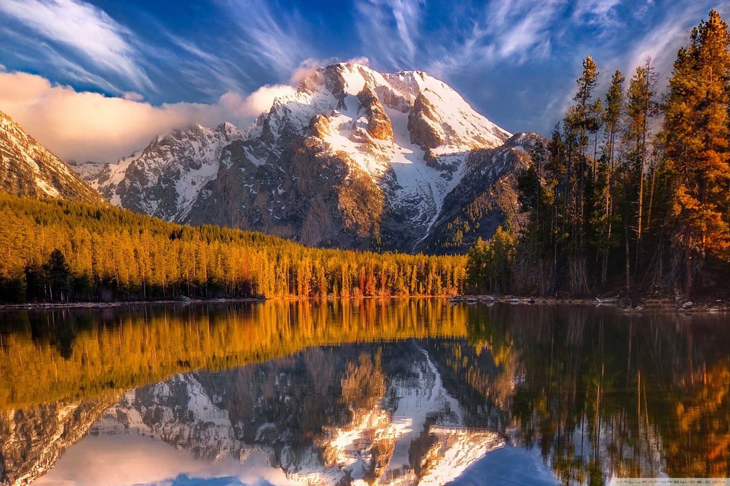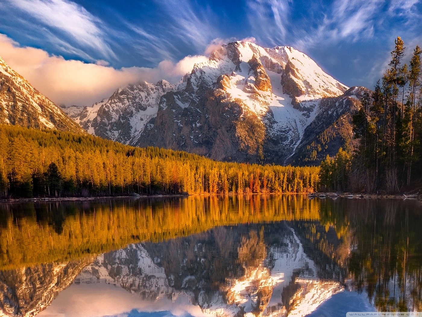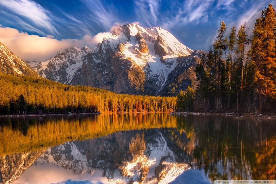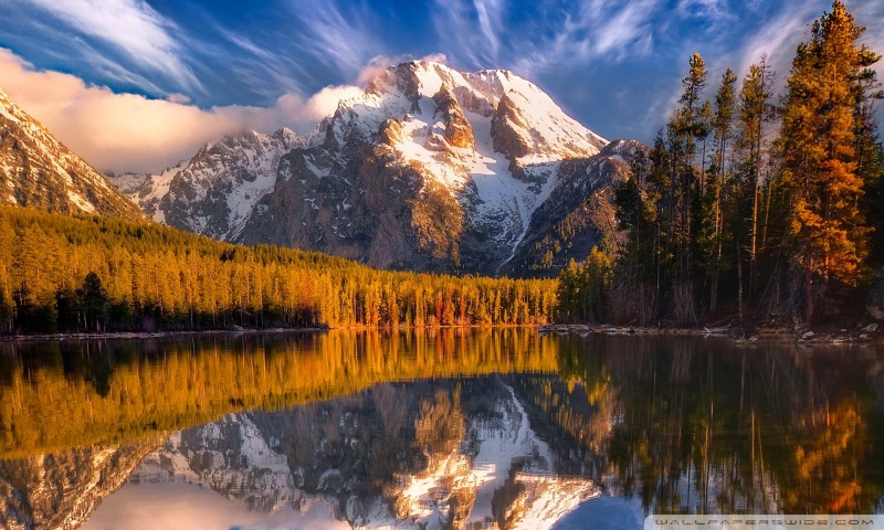 Download Reflection Of Snow Mountains In The Lake 4K UHD Wallpaper