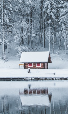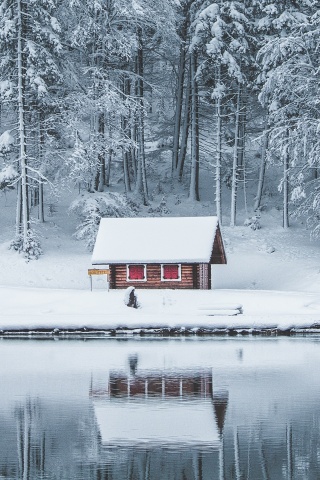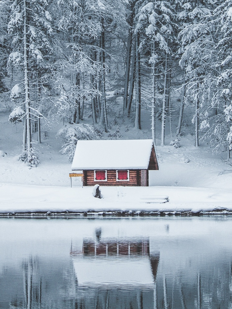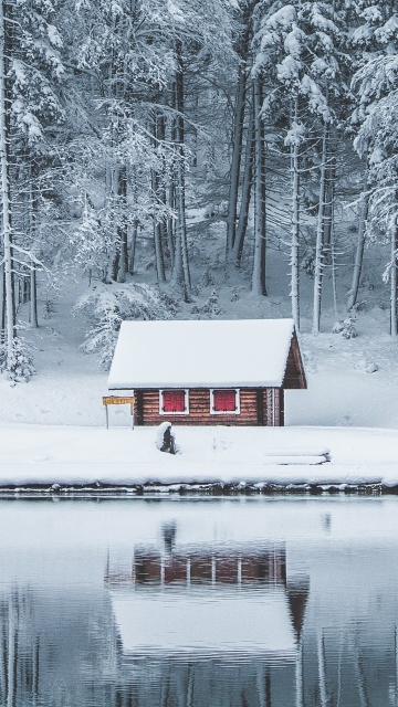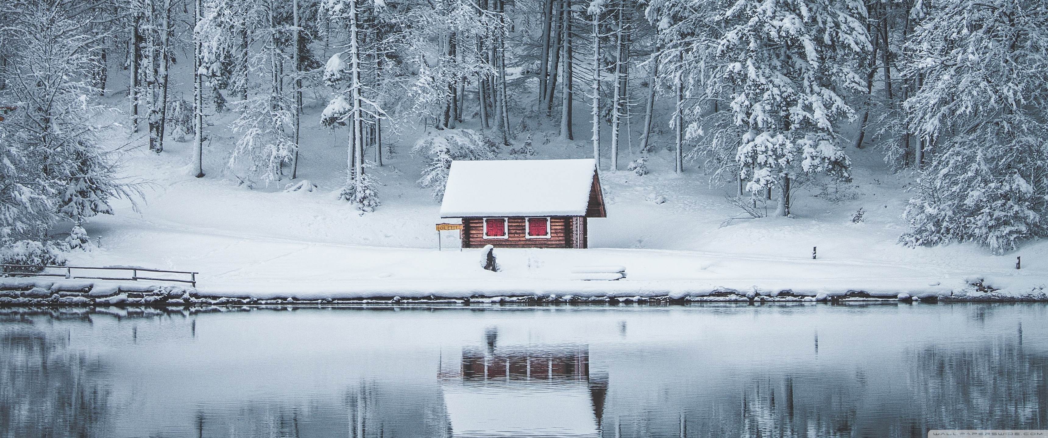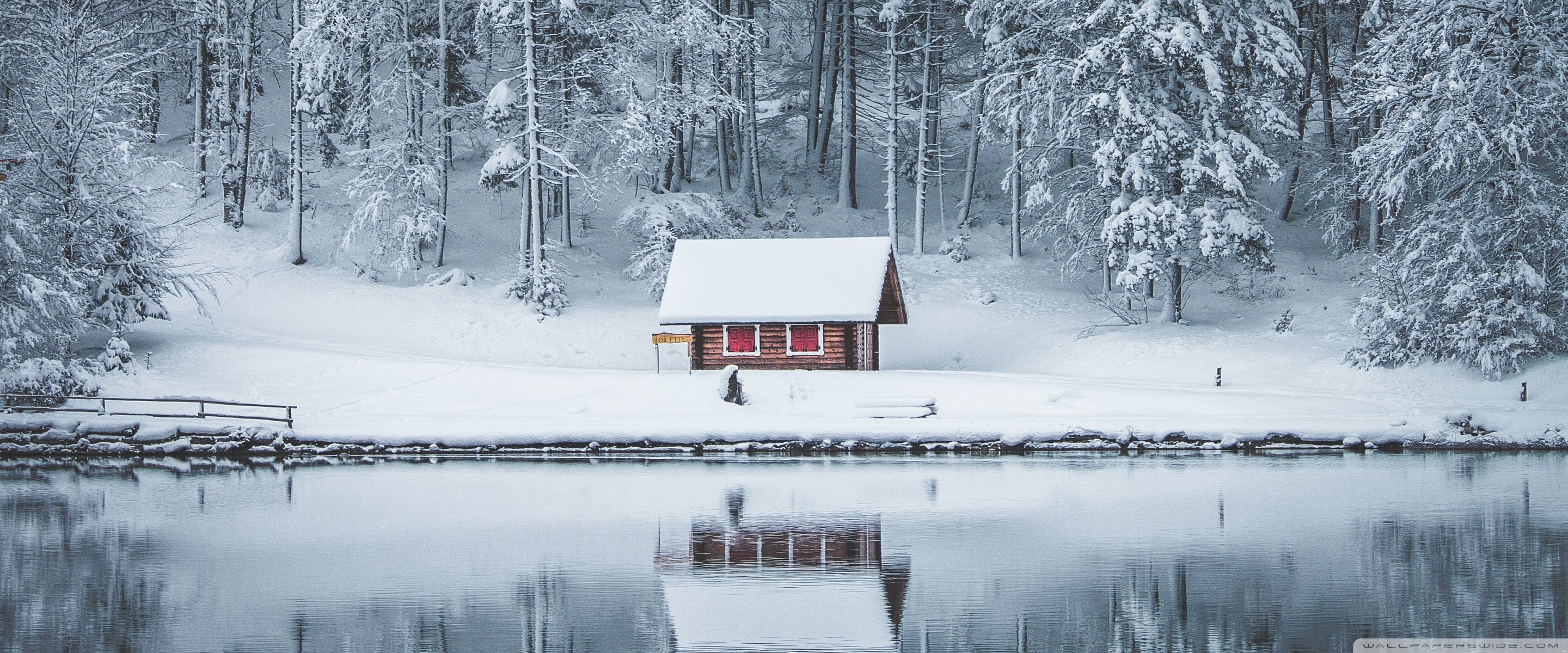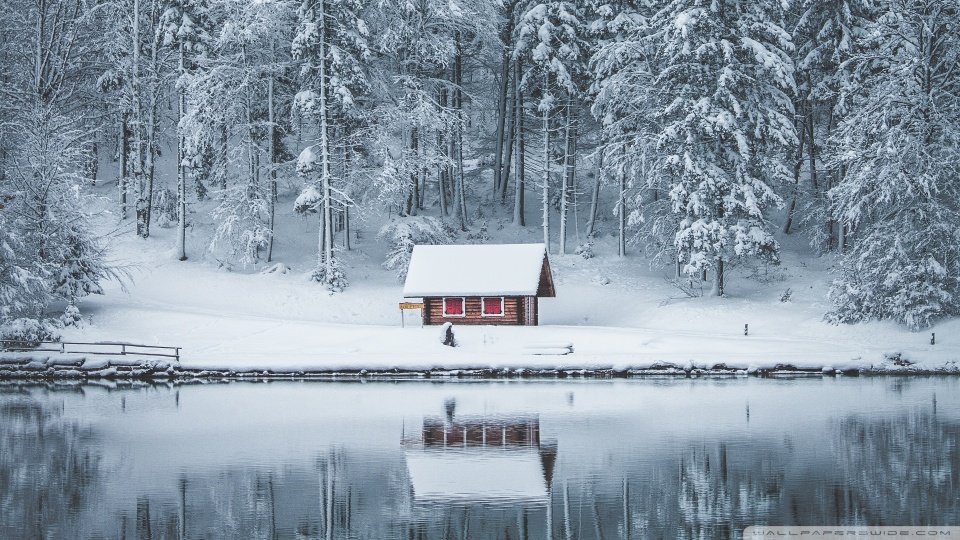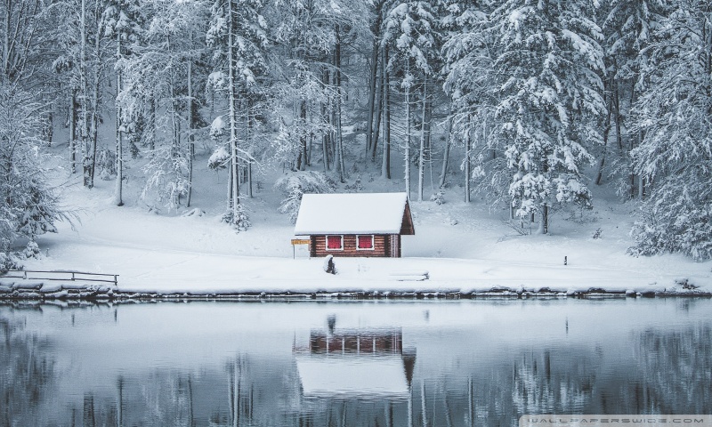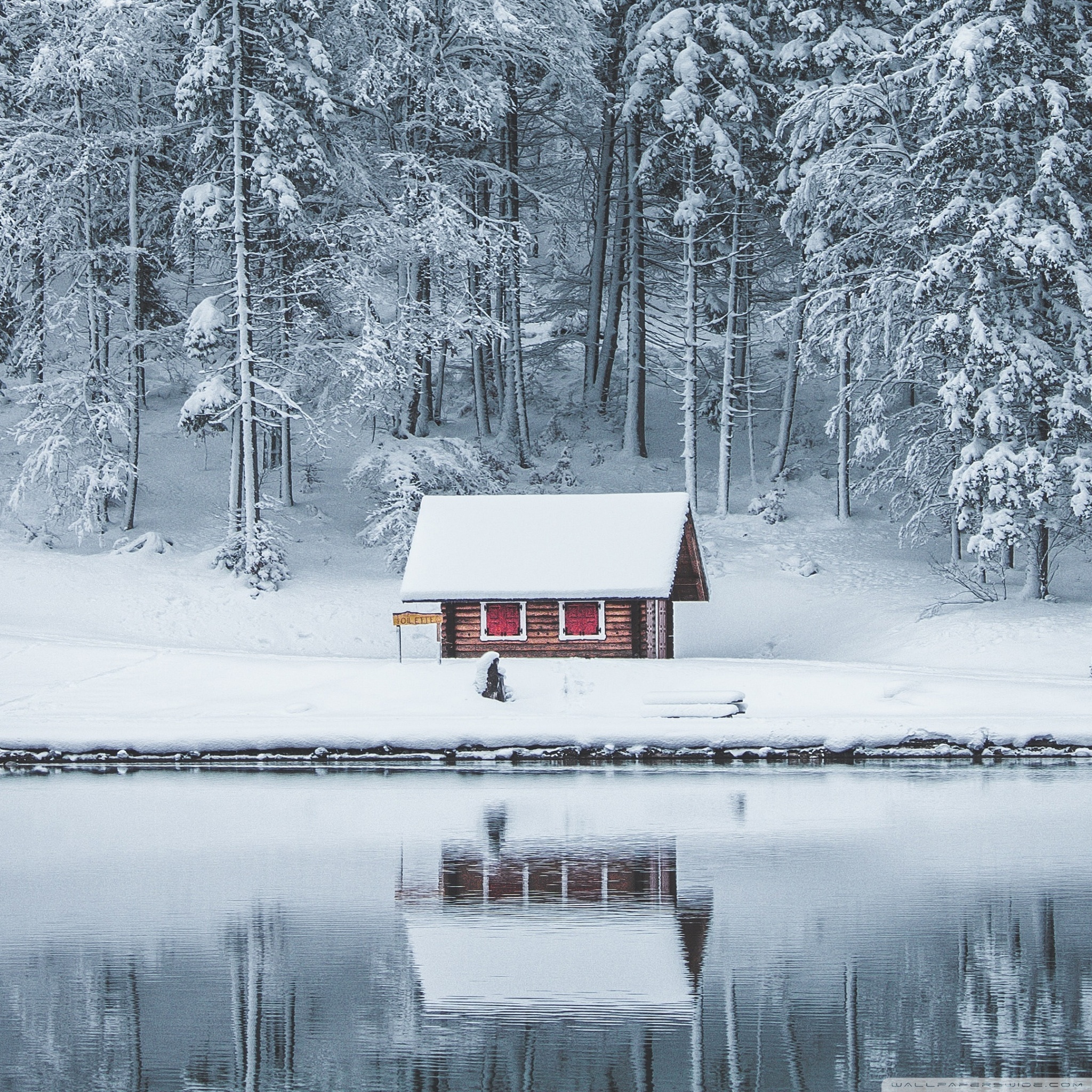 Download Reflection Of Snowy Forest Cabin 4K UHD Wallpaper