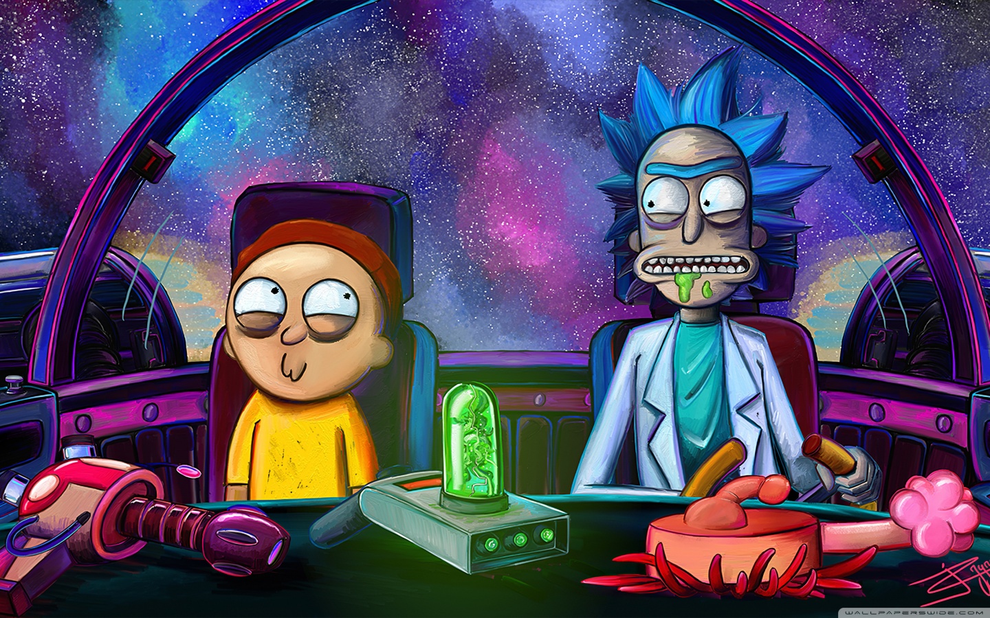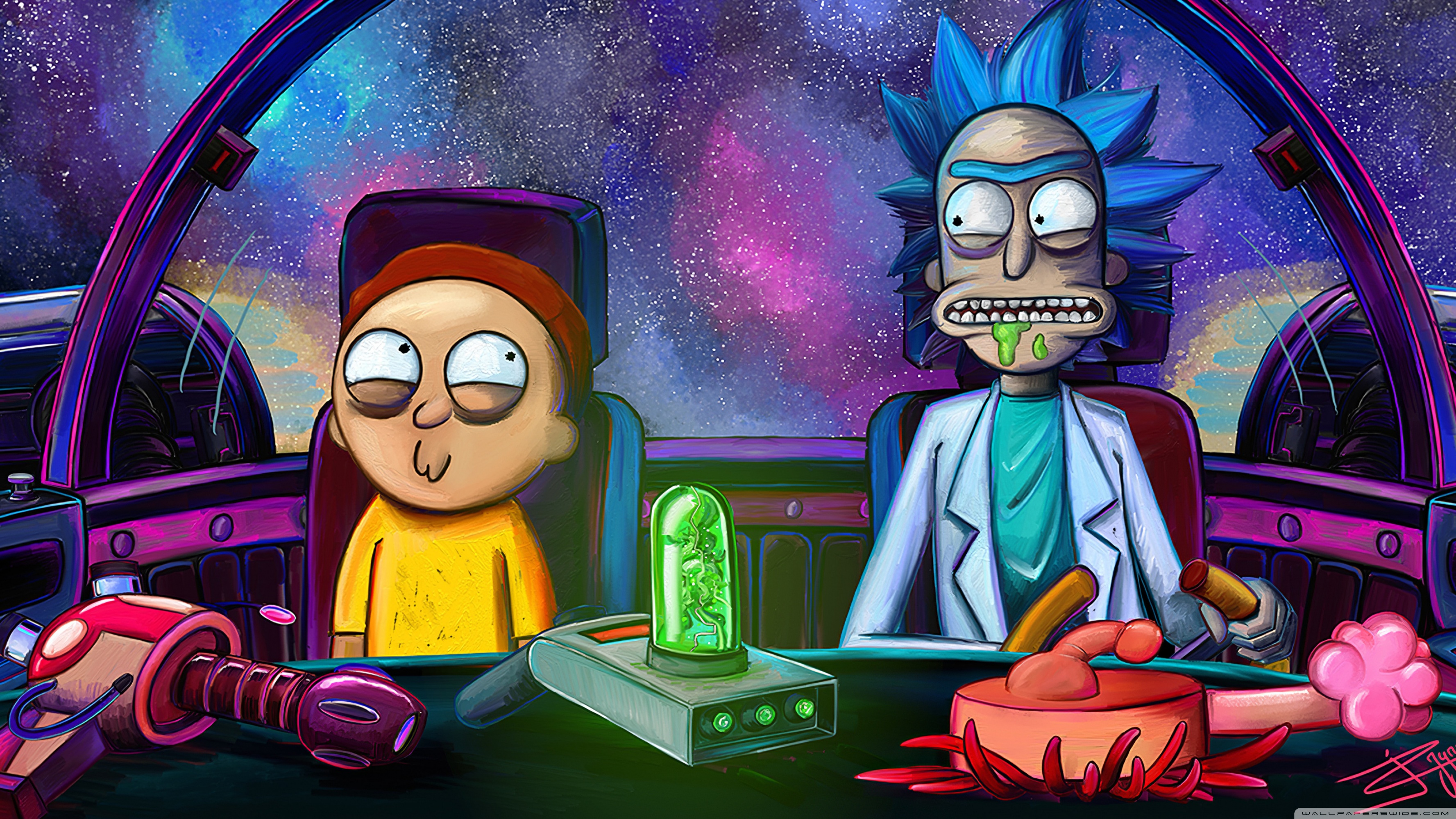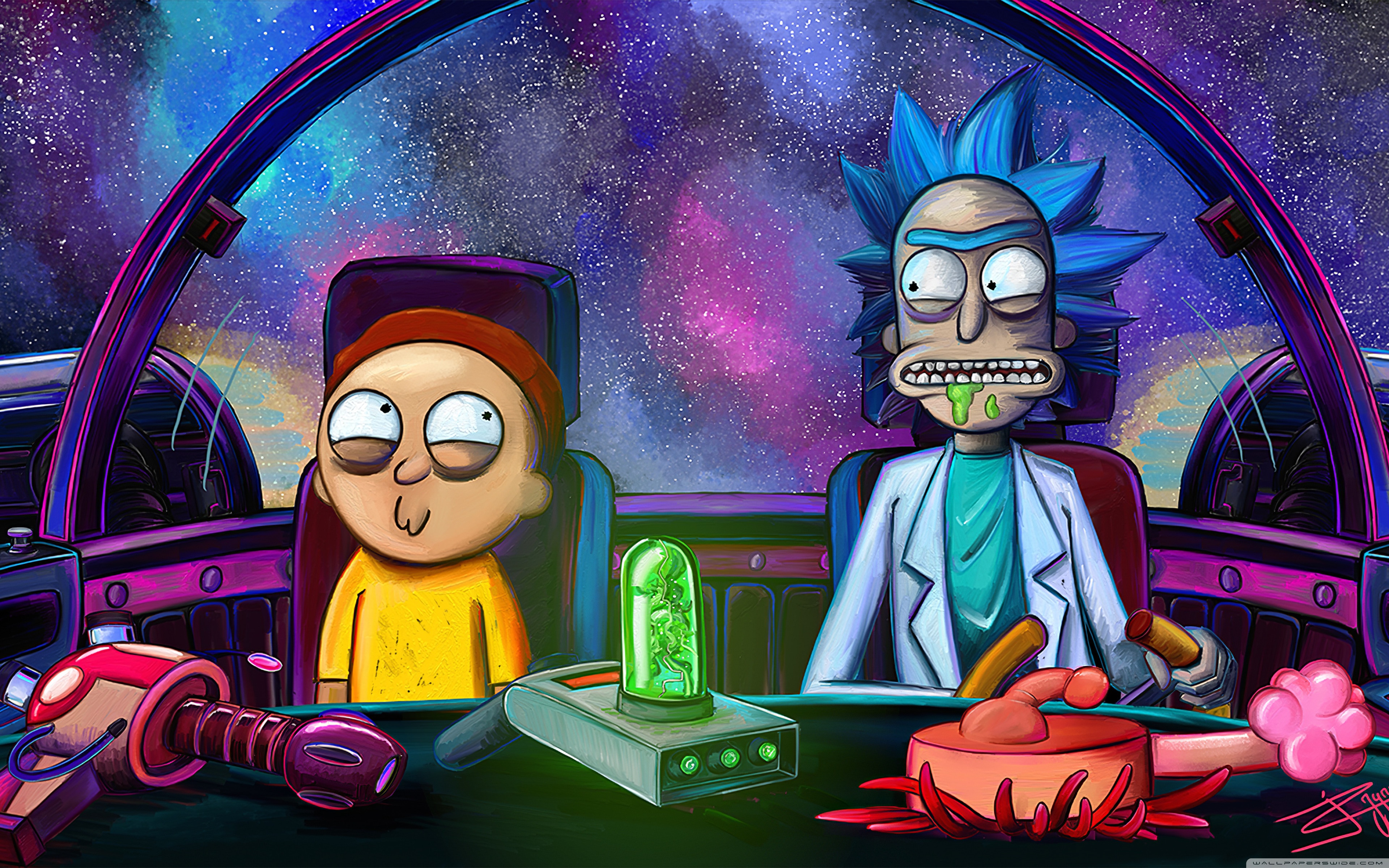 Download Rick and Morty in their Spaceship Cruising... 4K UHD Wallpaper
