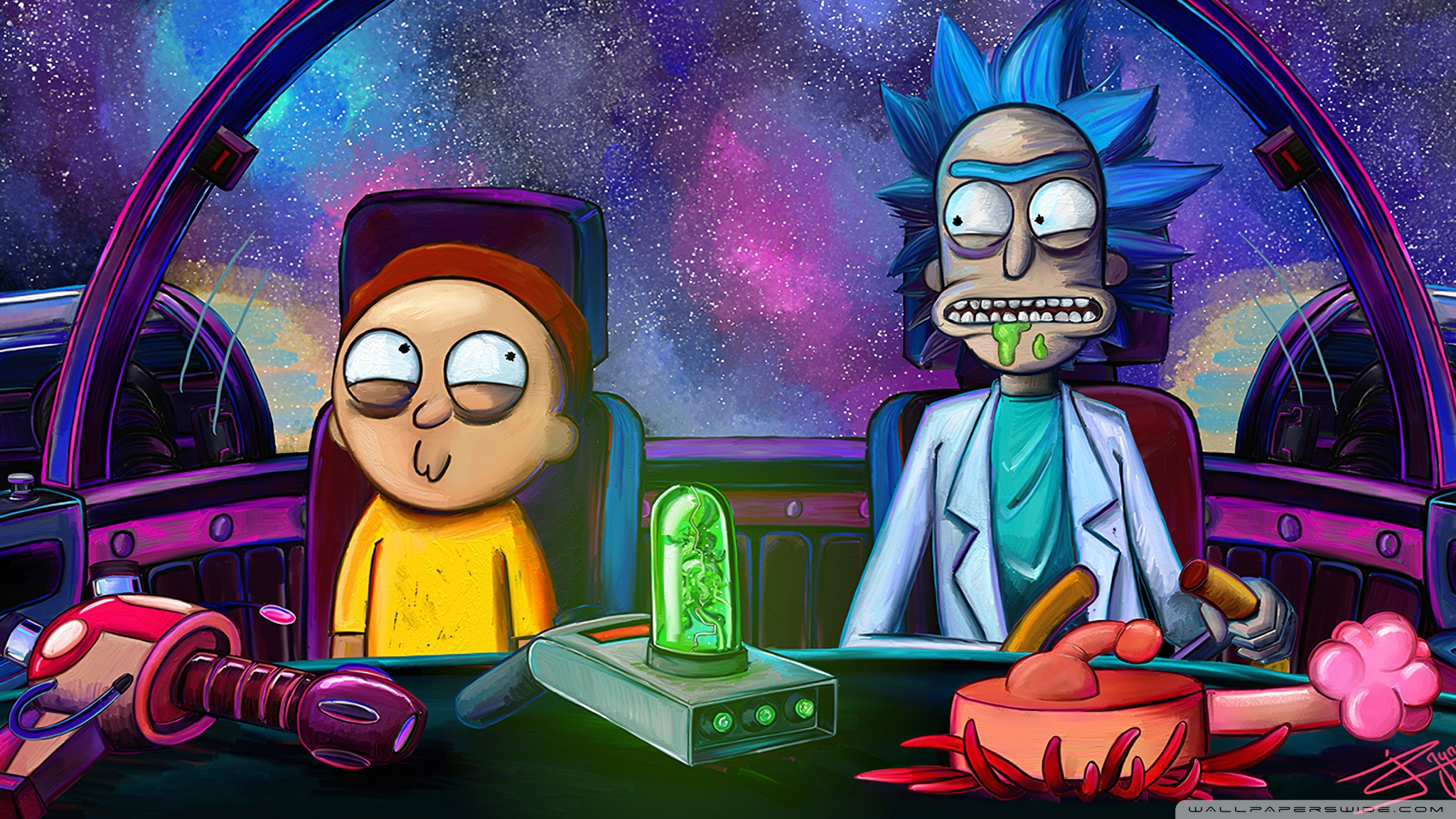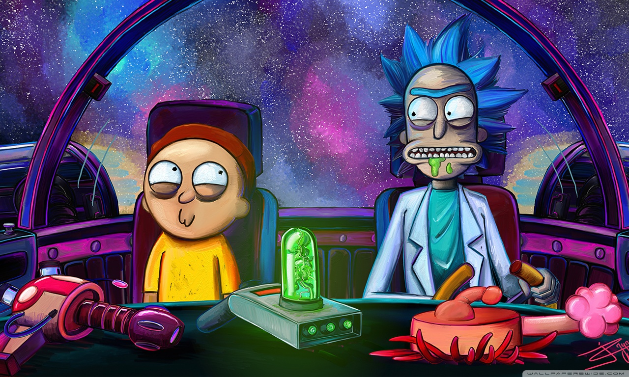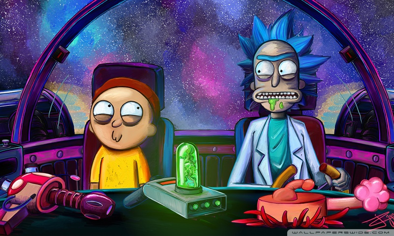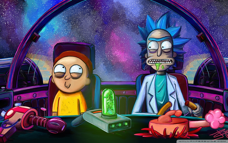 Download Rick and Morty in their Spaceship Cruising... 4K UHD Wallpaper