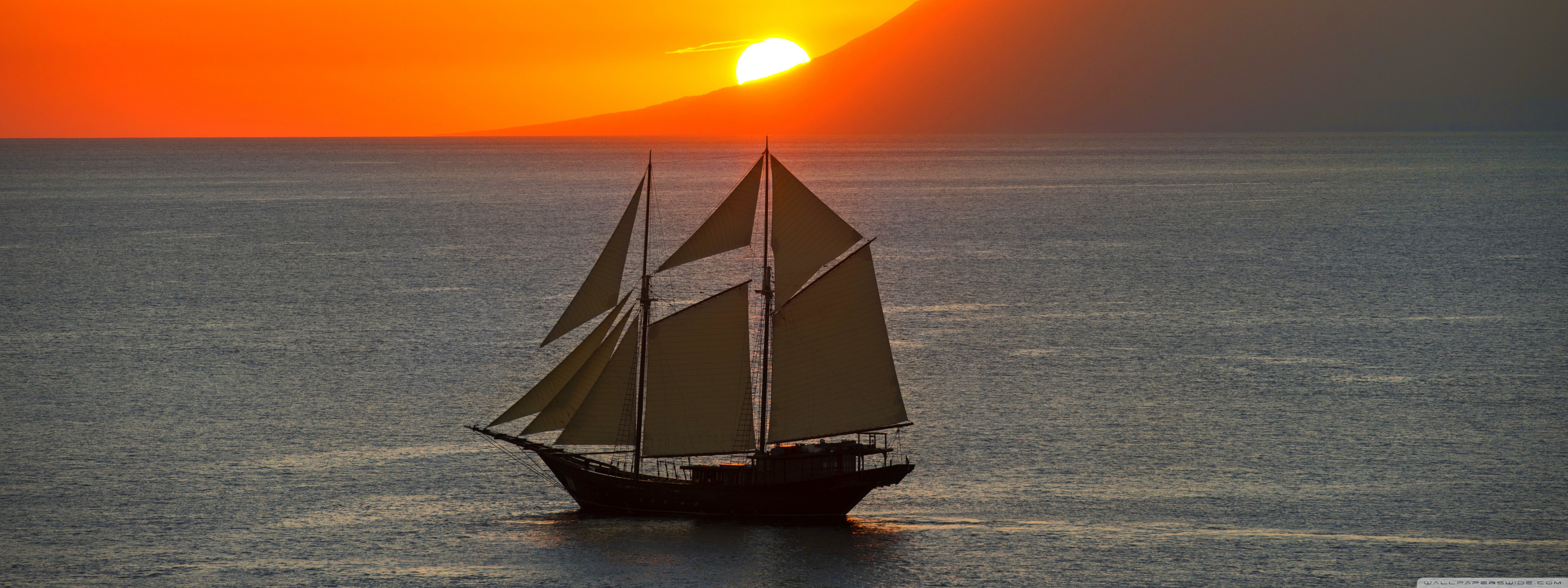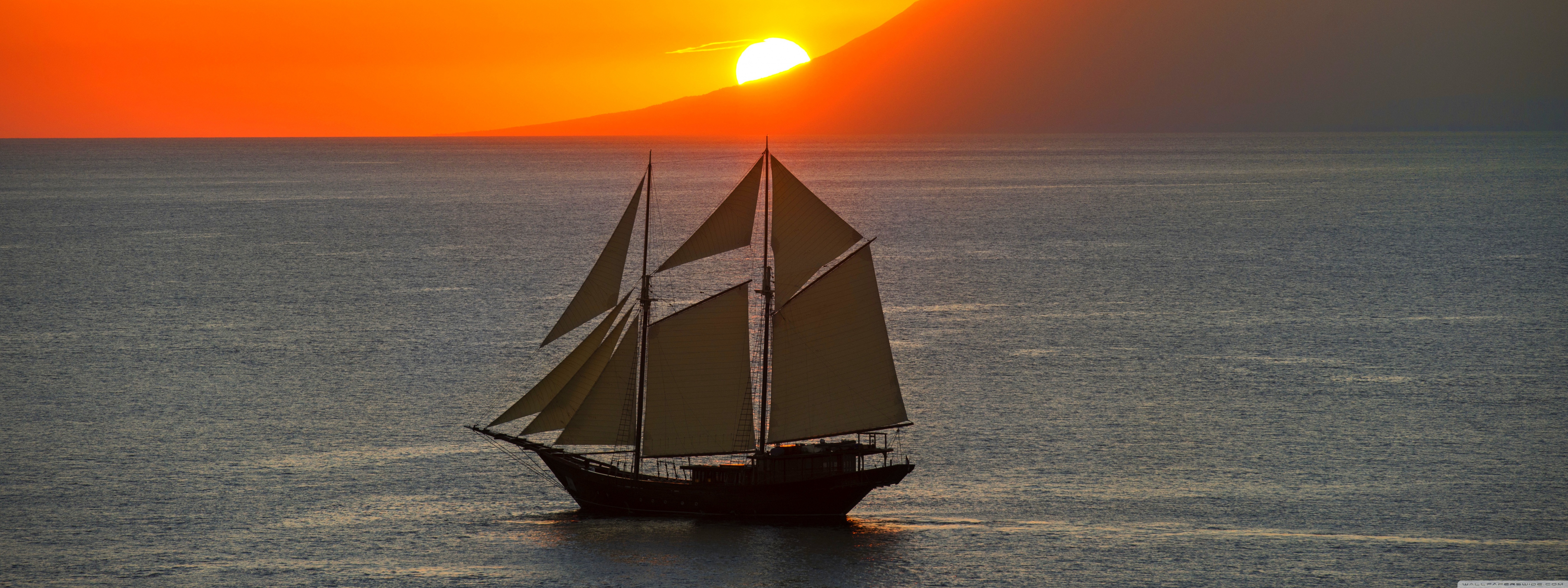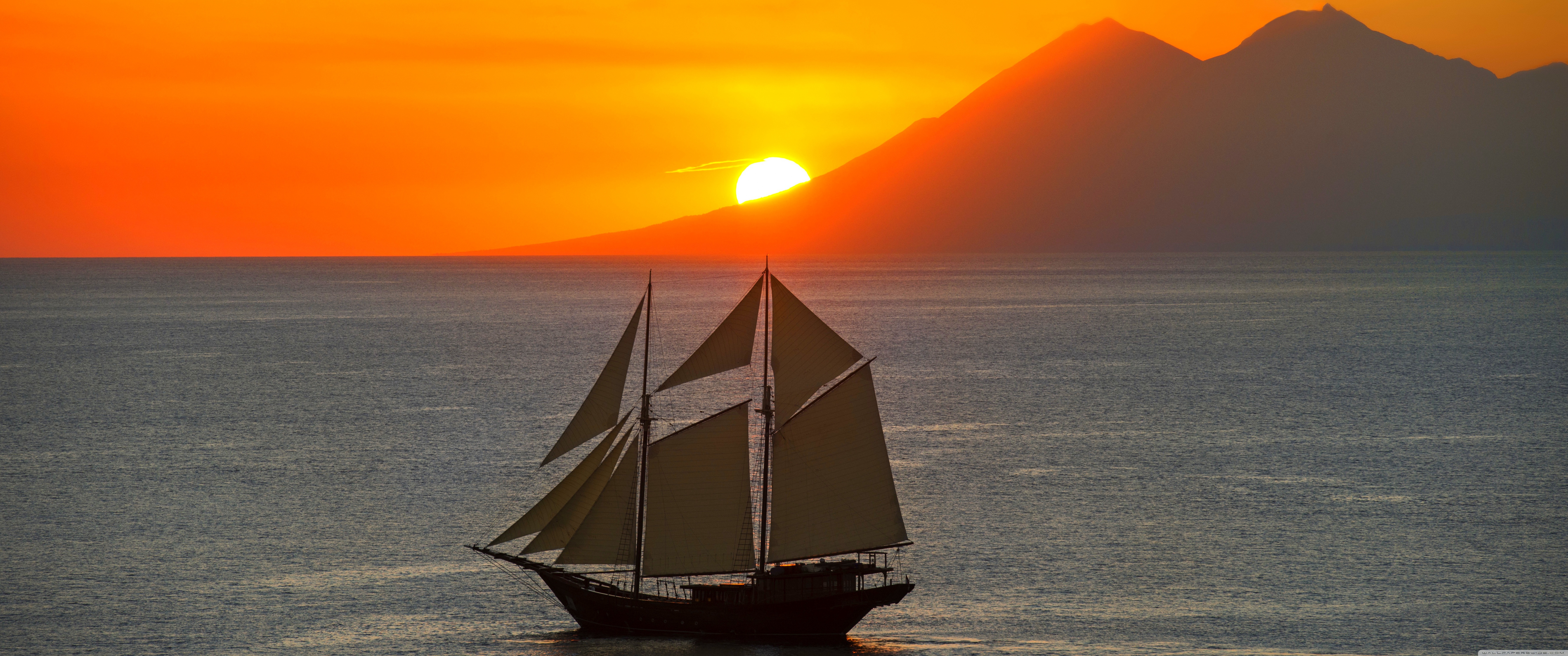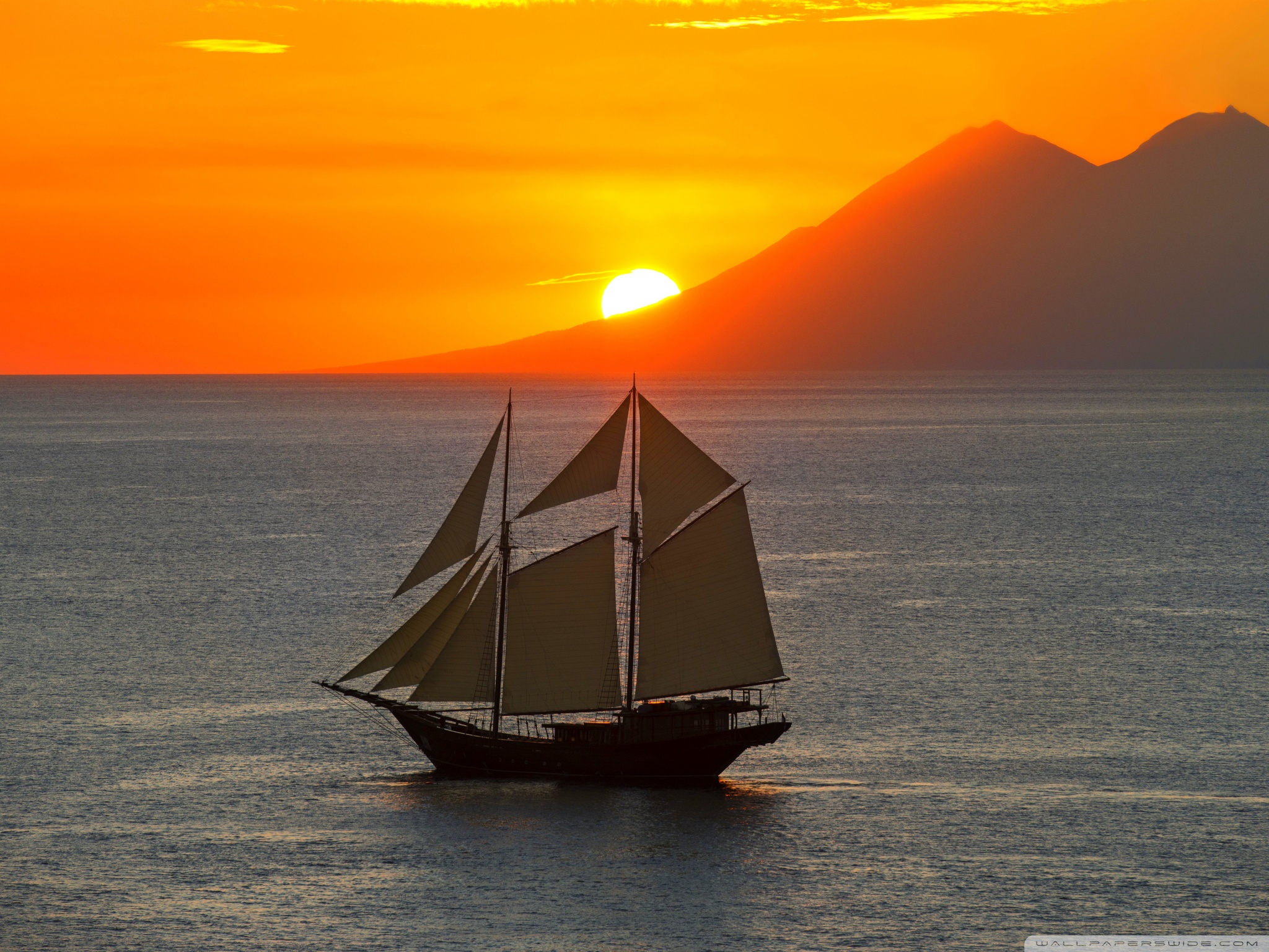 Download Sailing Ship at Sunset Over Calm Waters 4K UHD Wallpaper