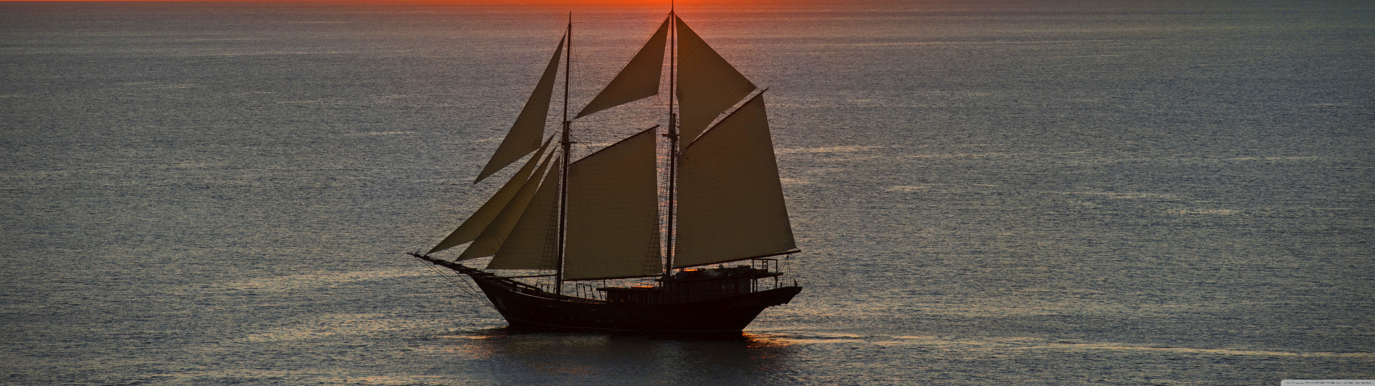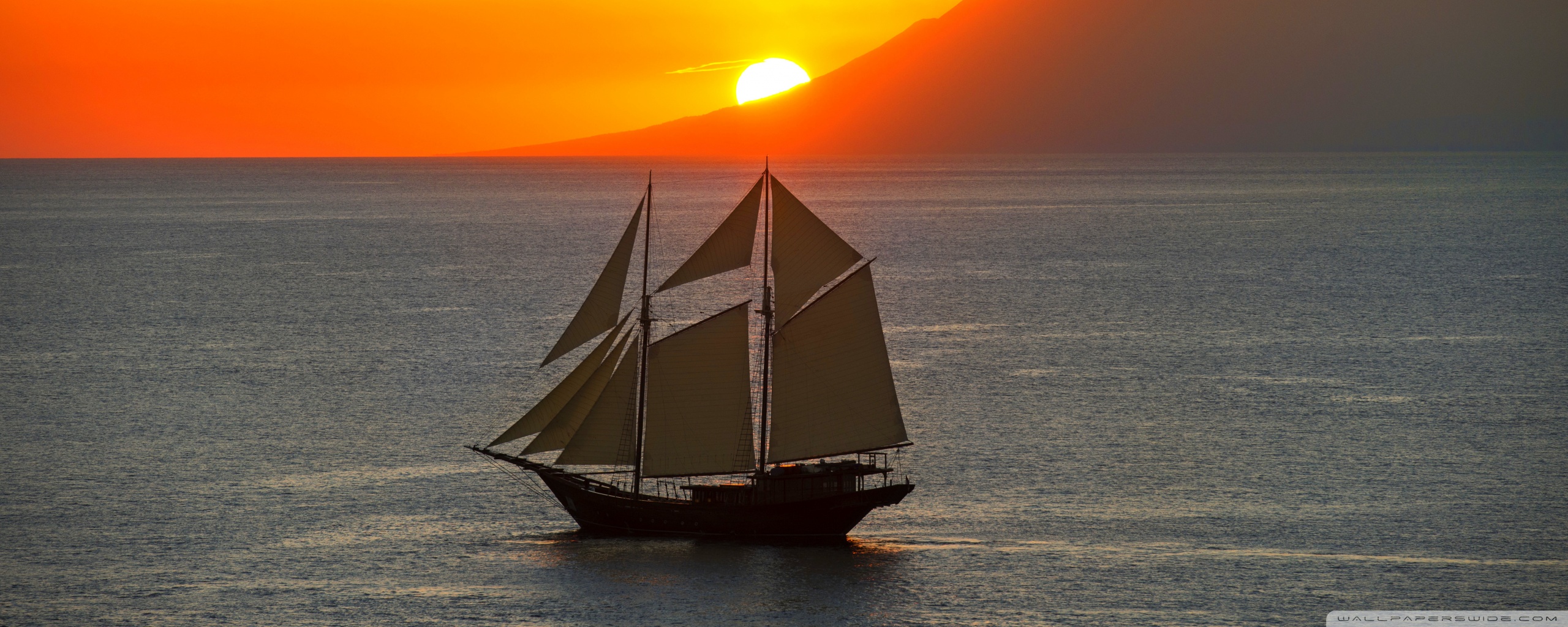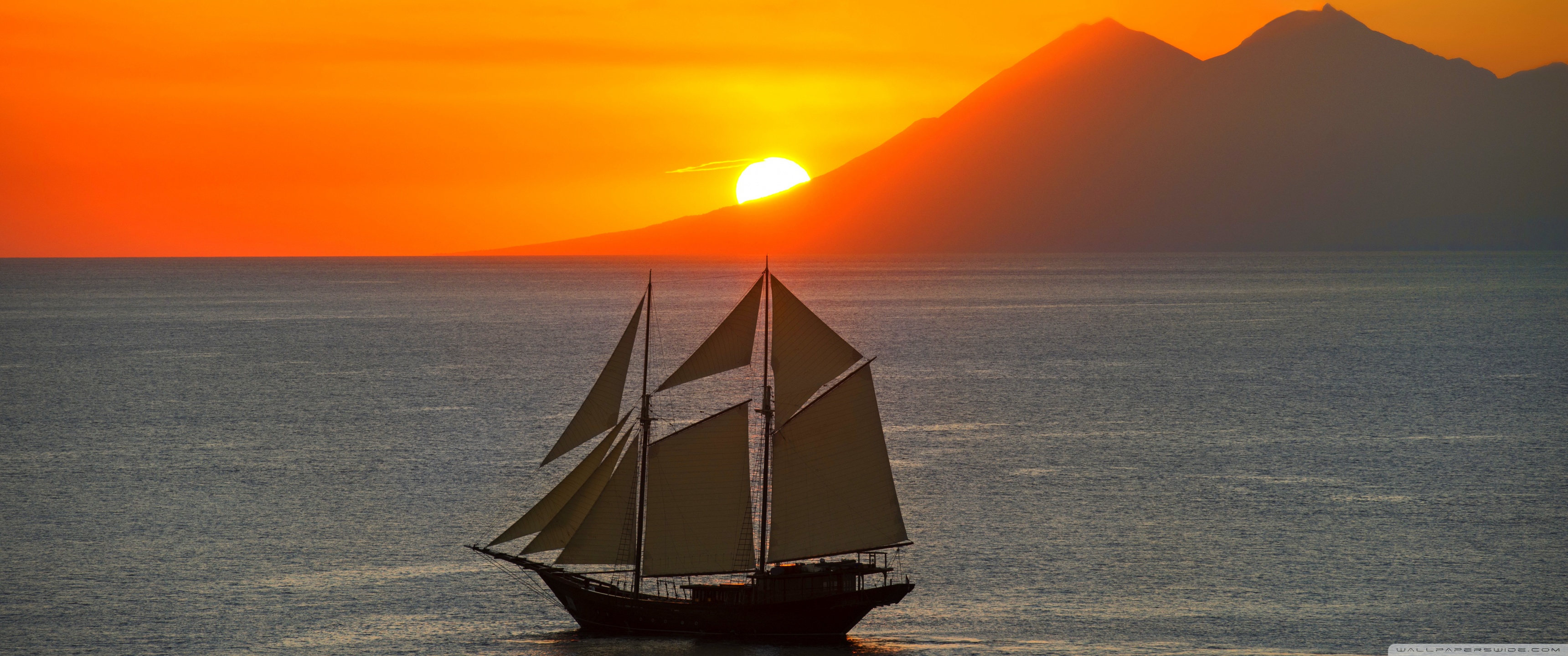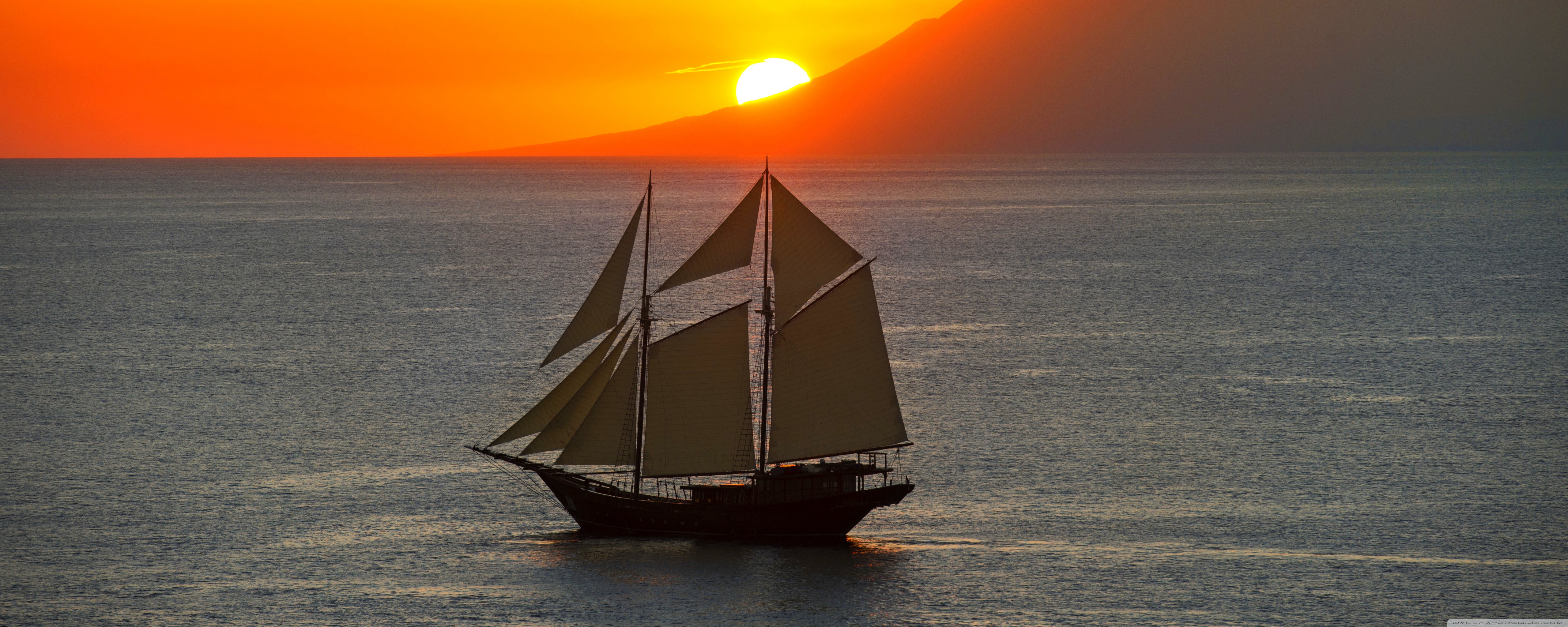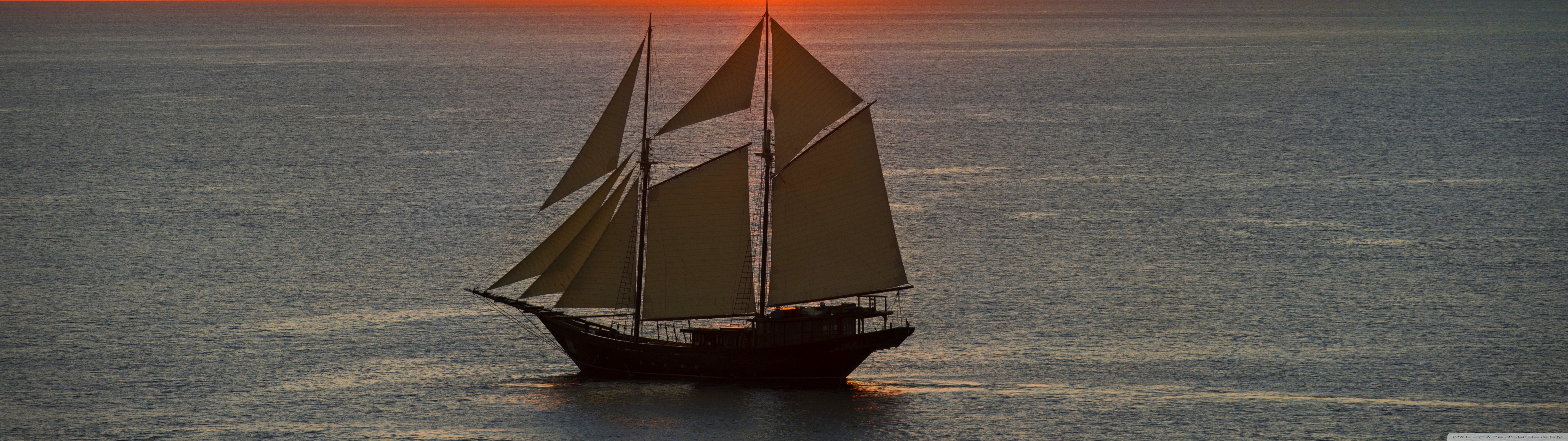Download Sailing Ship at Sunset Over Calm Waters 4K UHD Wallpaper