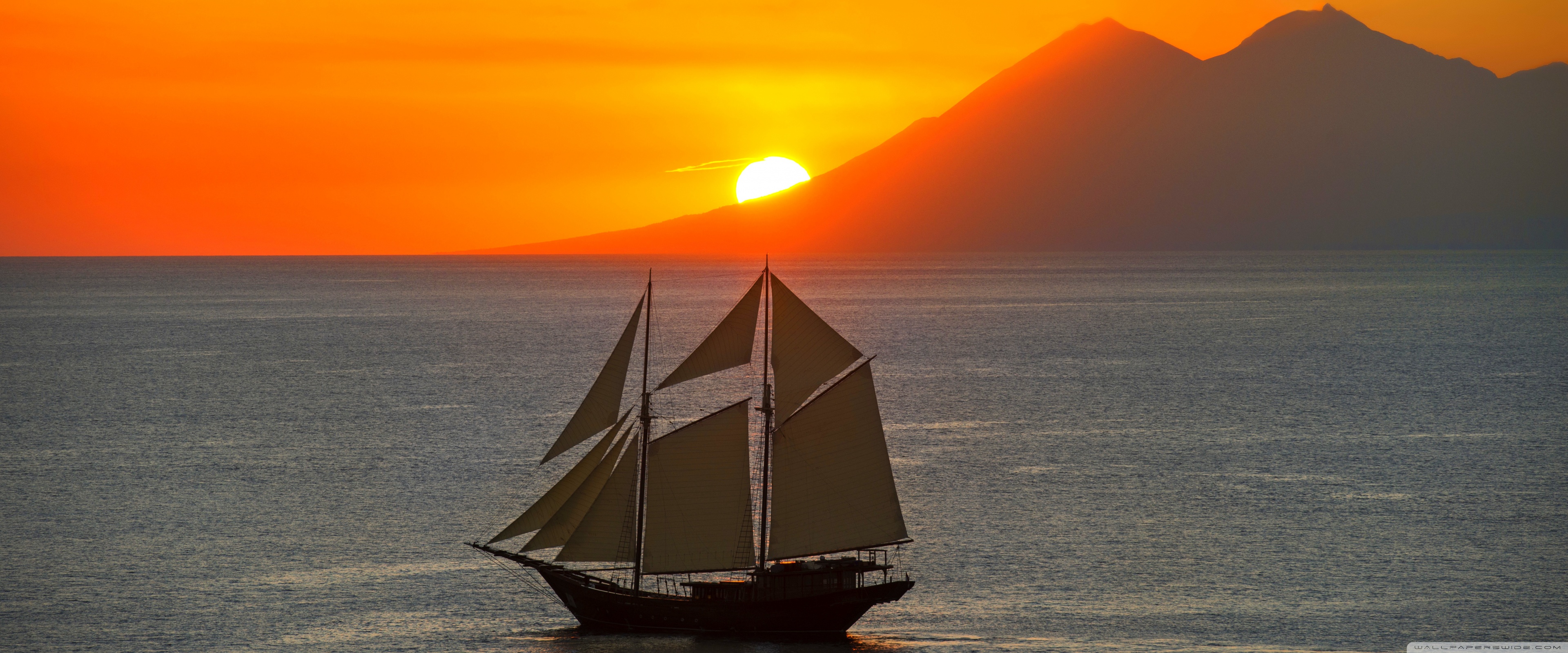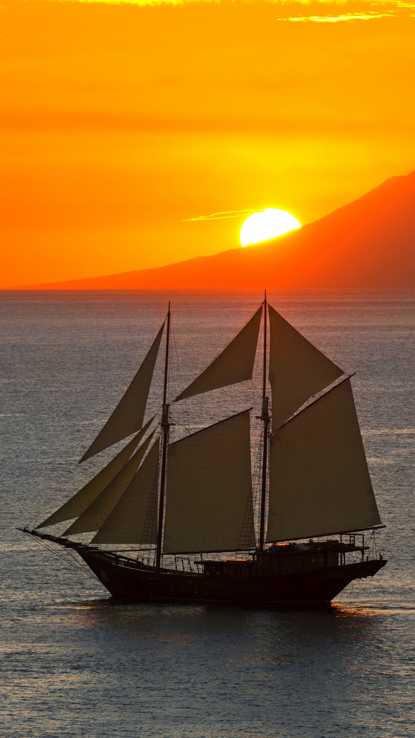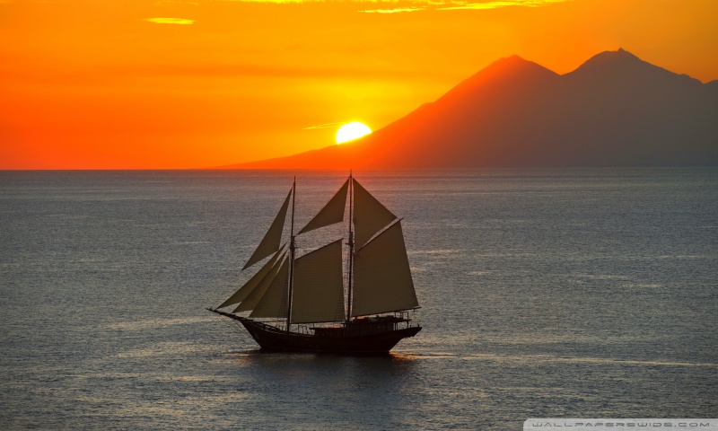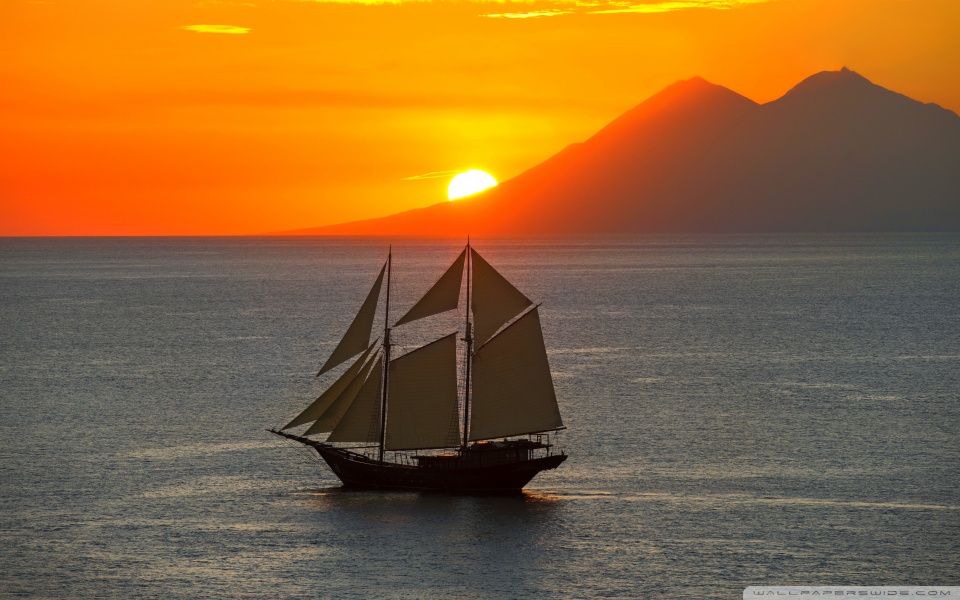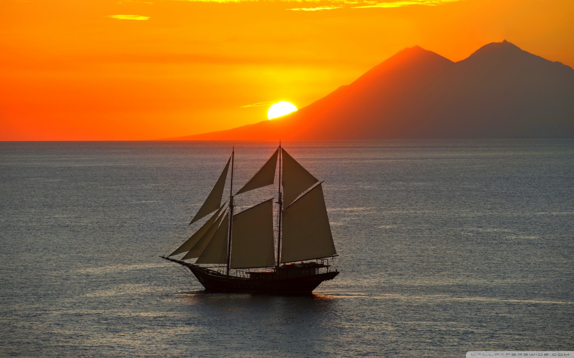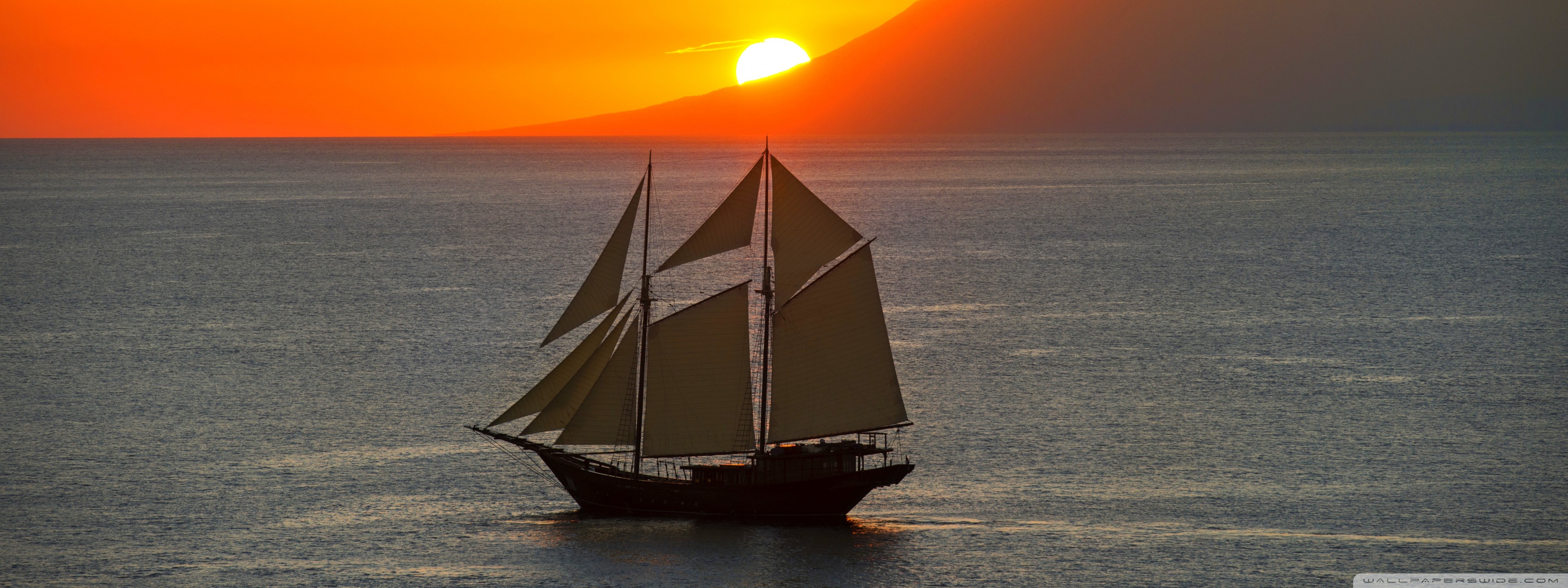 Download Sailing Ship at Sunset Over Calm Waters 4K UHD Wallpaper