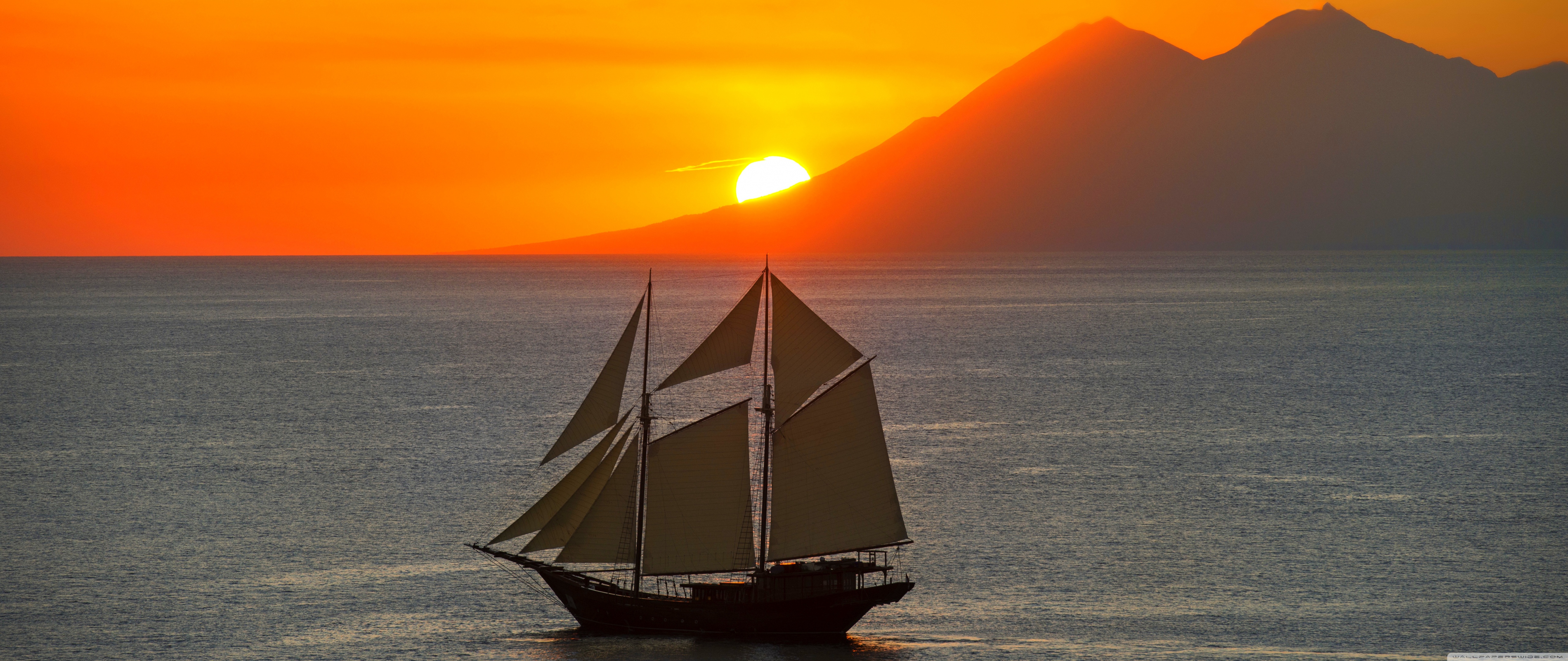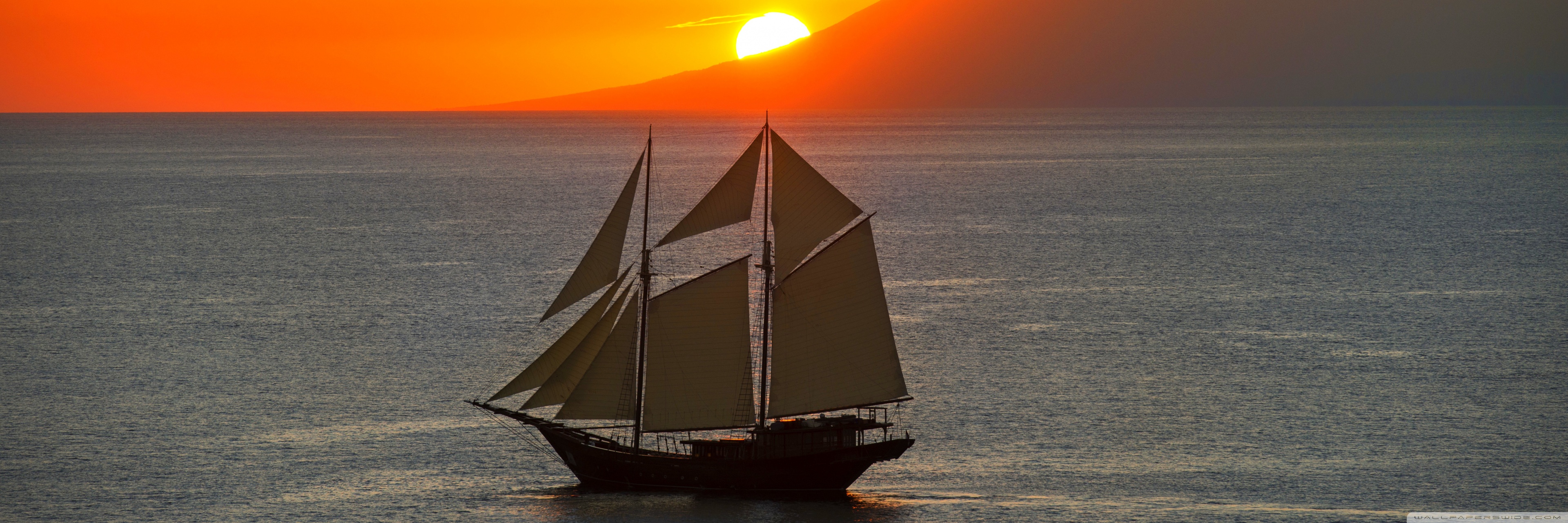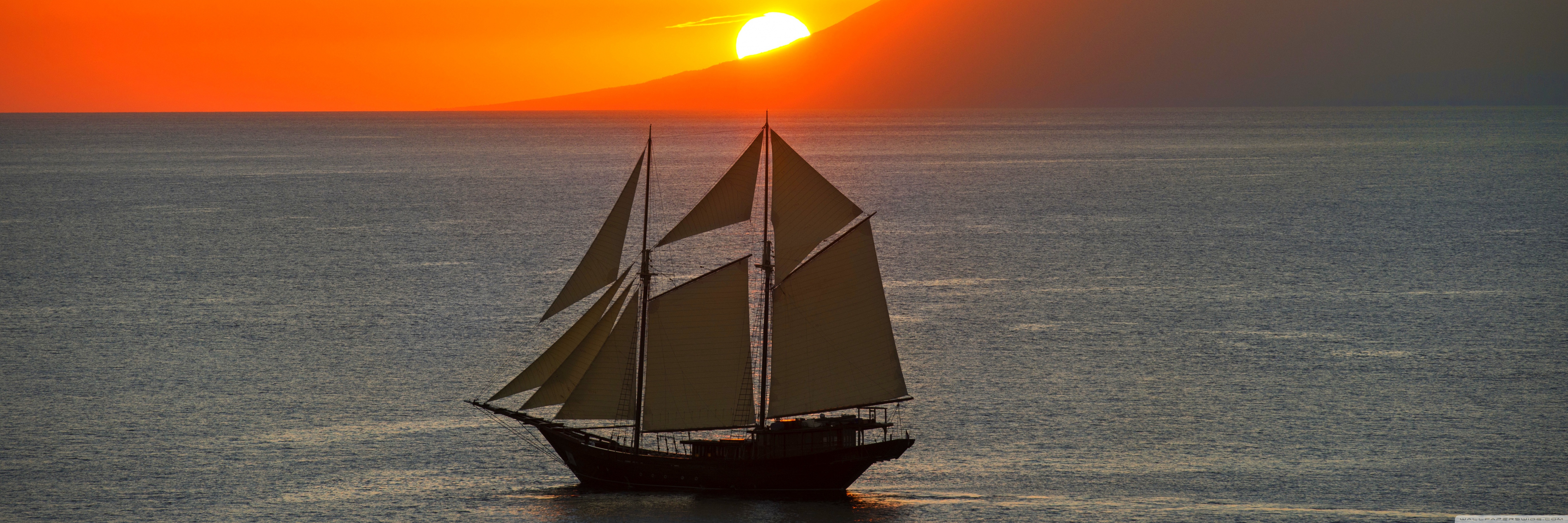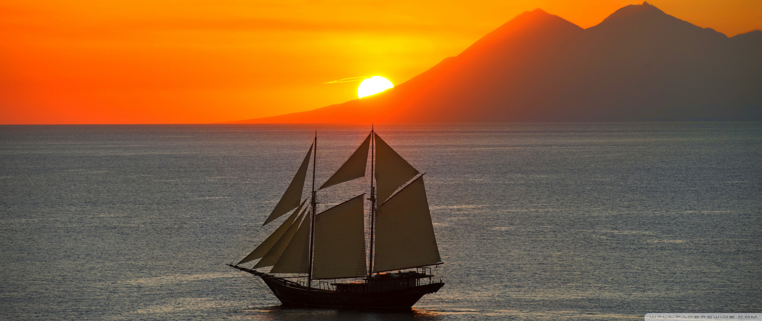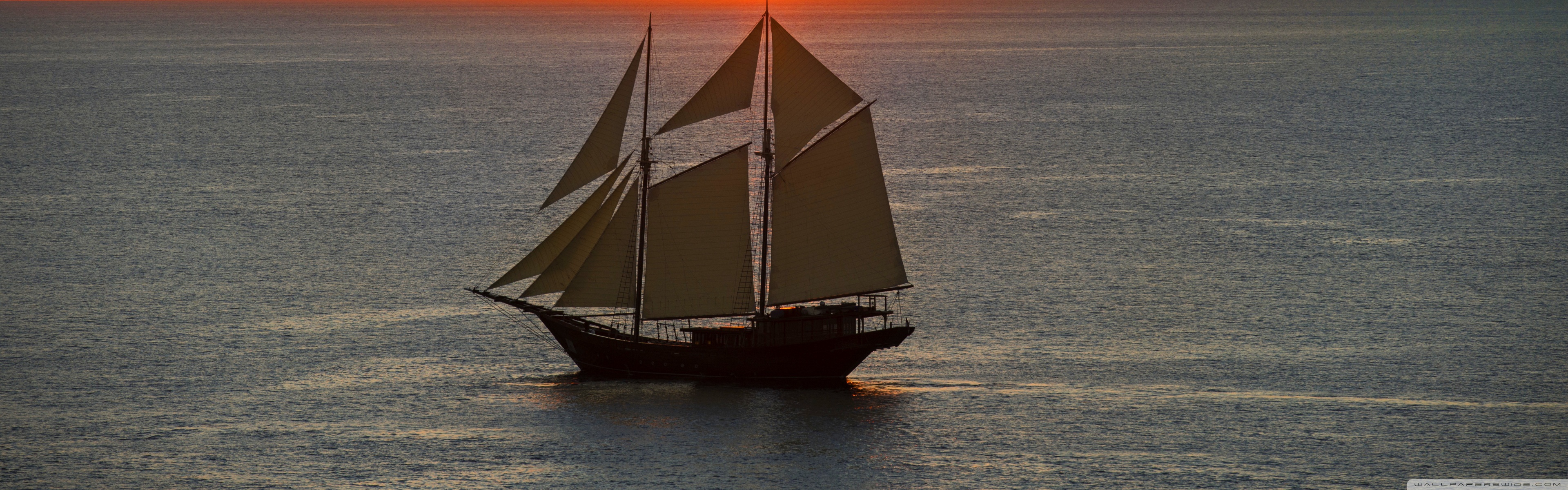 Download Sailing Ship at Sunset Over Calm Waters 4K UHD Wallpaper