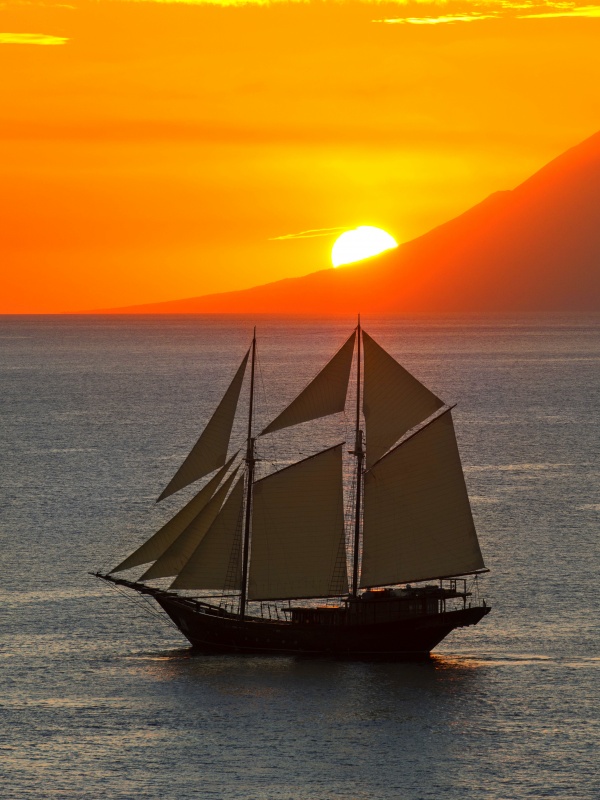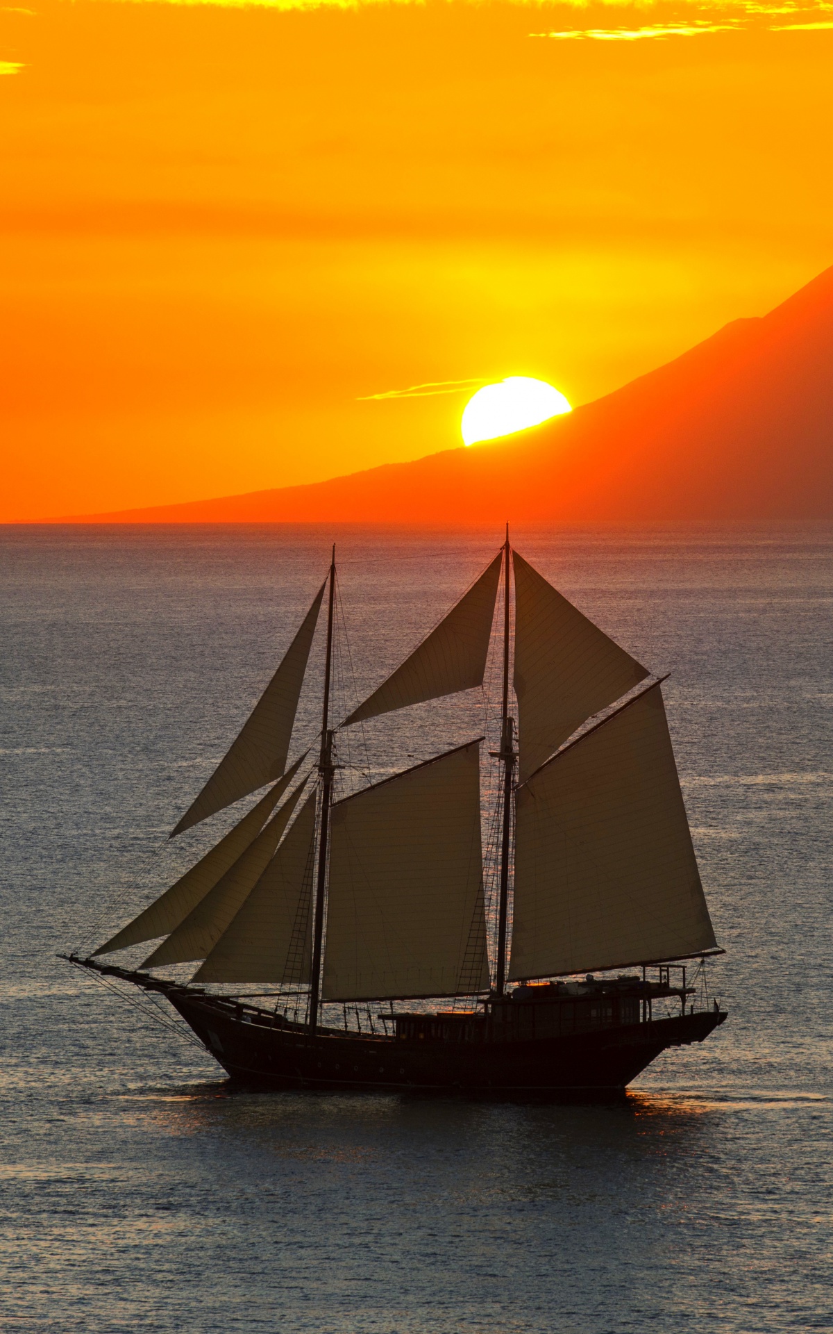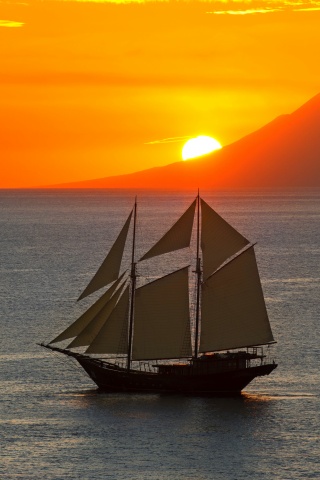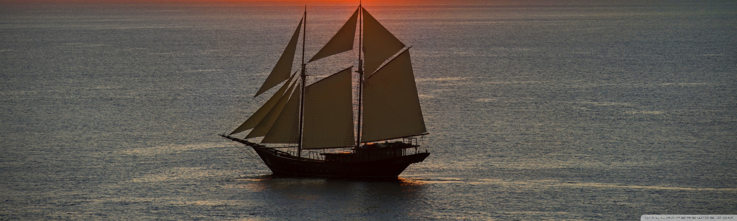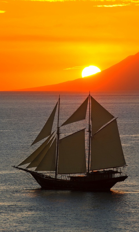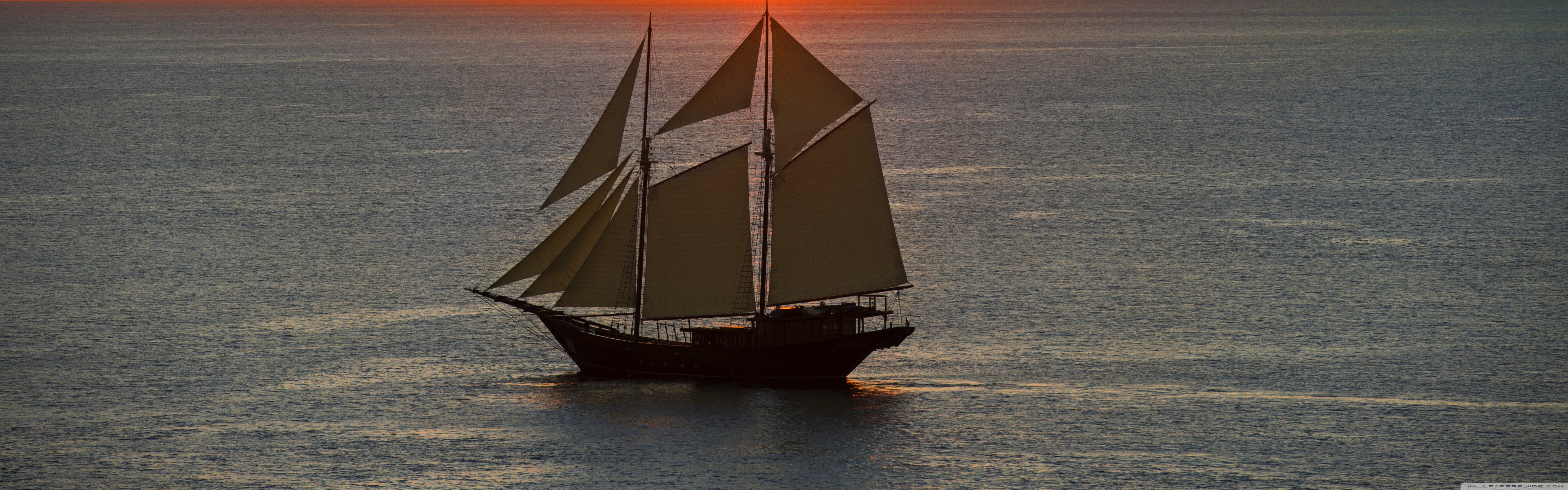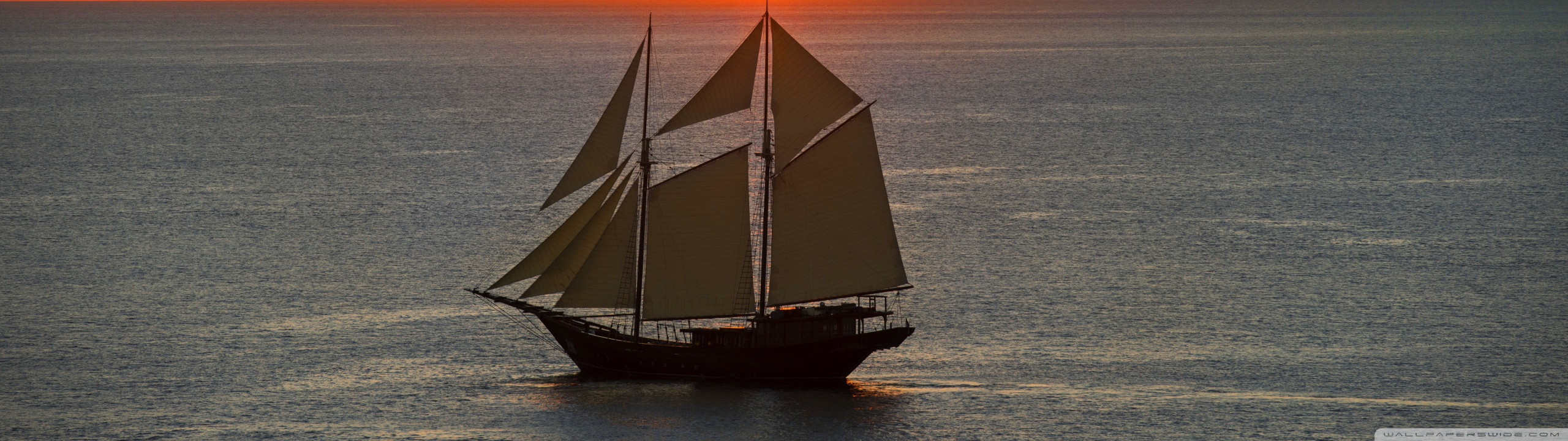 Download Sailing Ship at Sunset Over Calm Waters 4K UHD Wallpaper