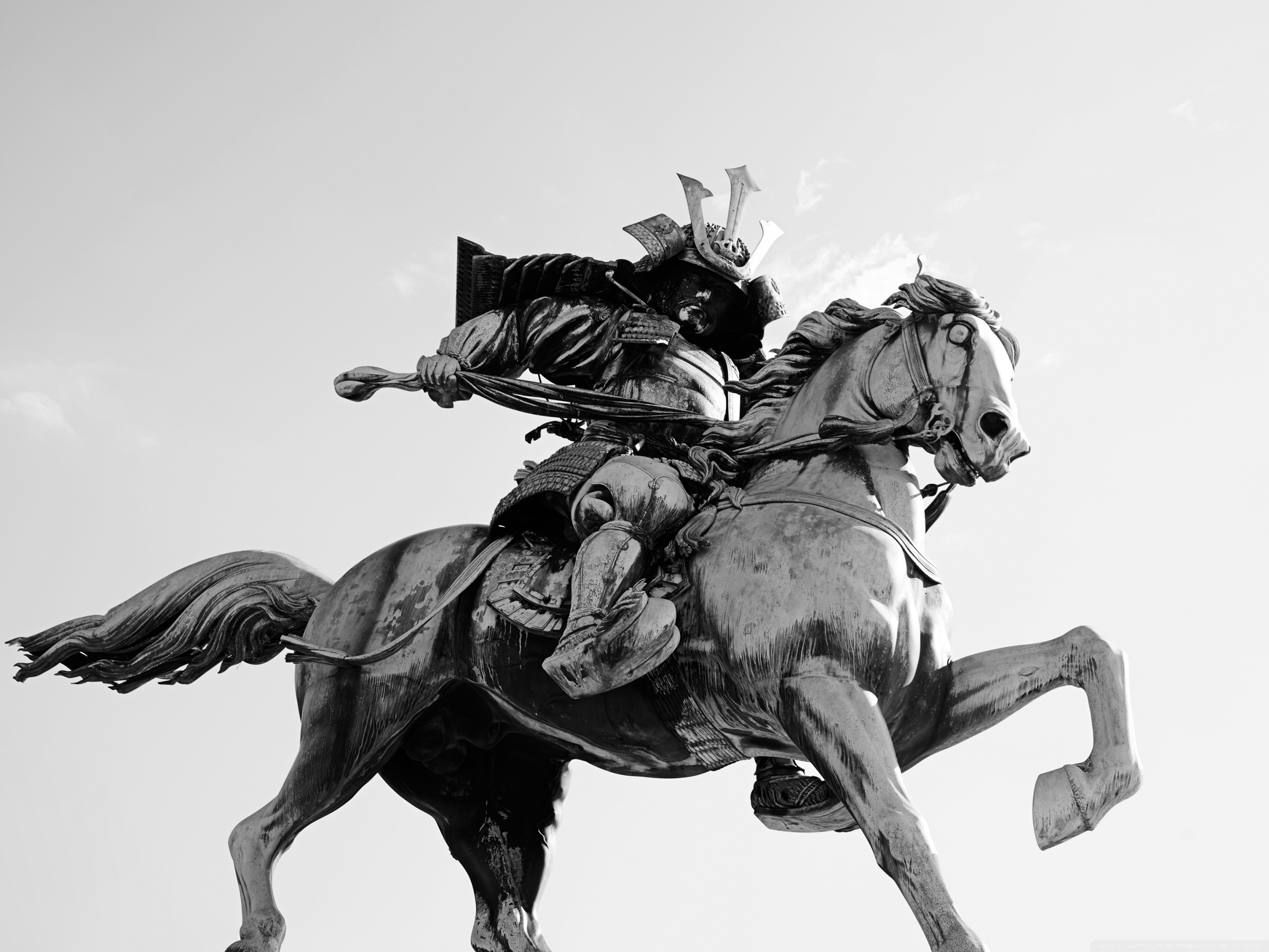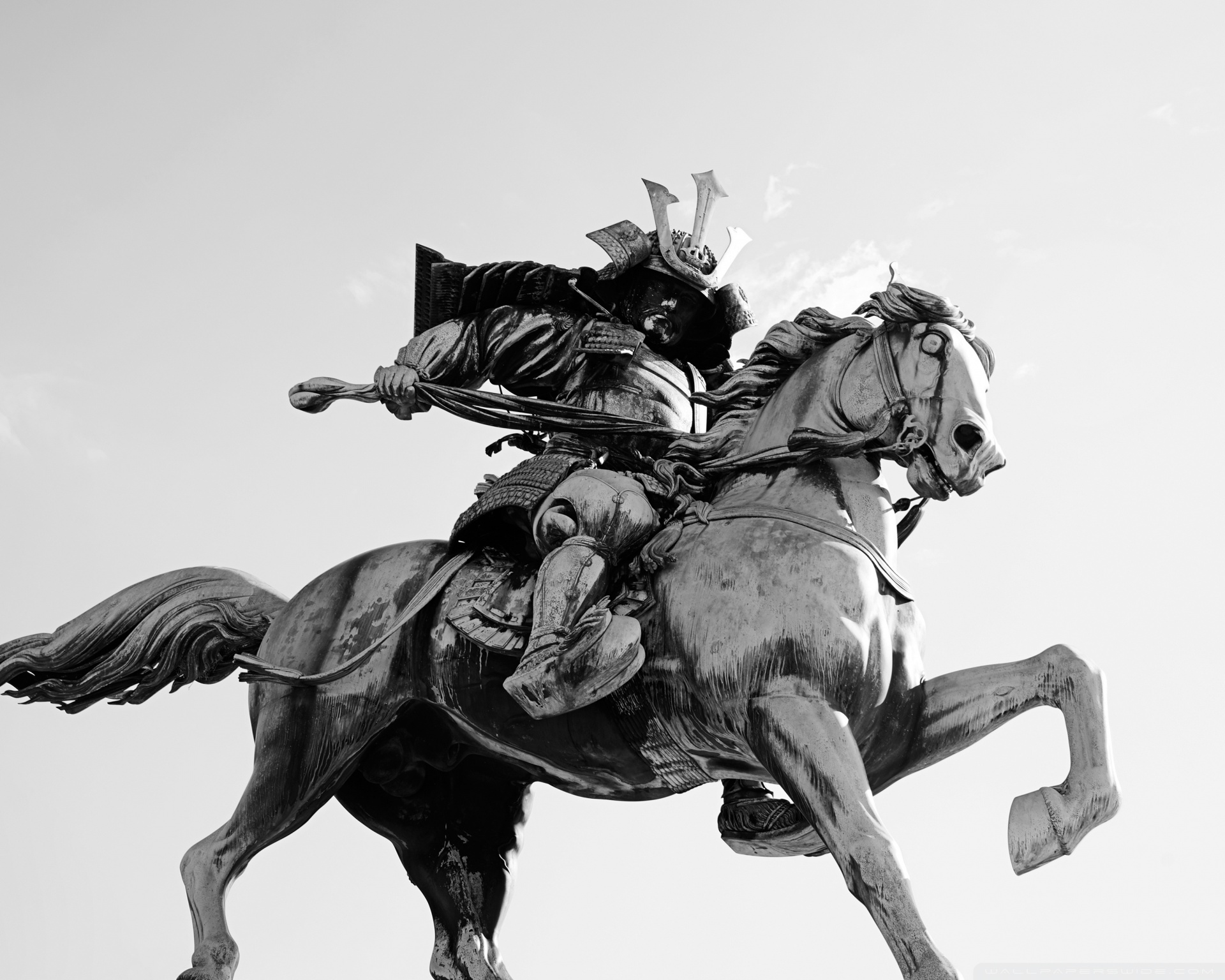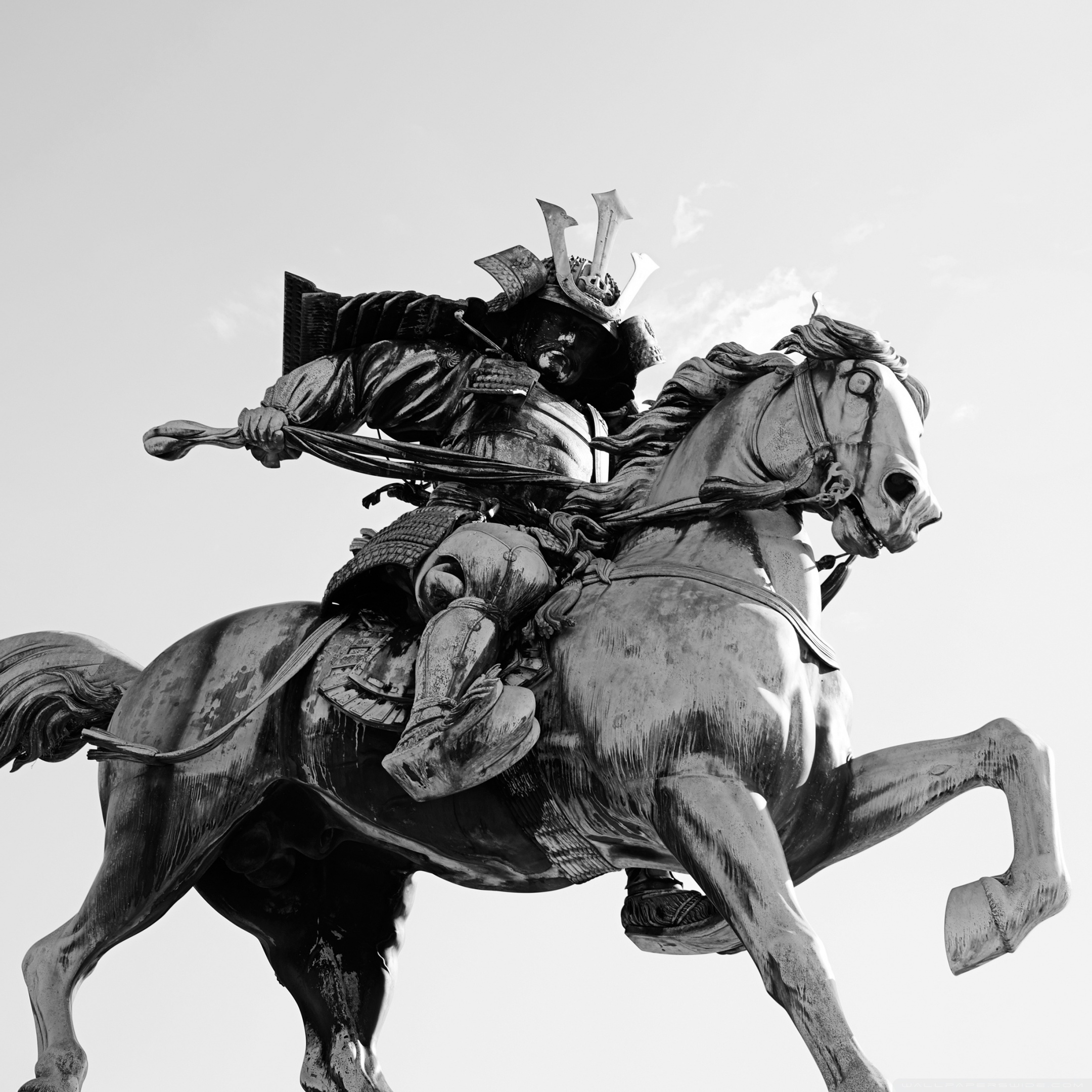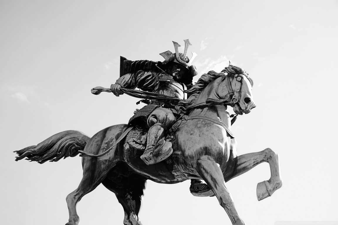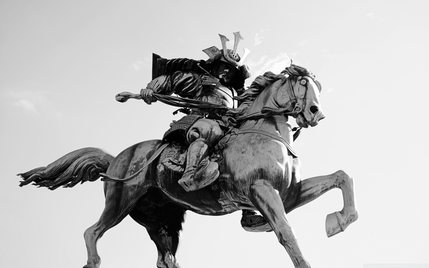 Download Samurai Statue, Black and White 4K UHD Wallpaper