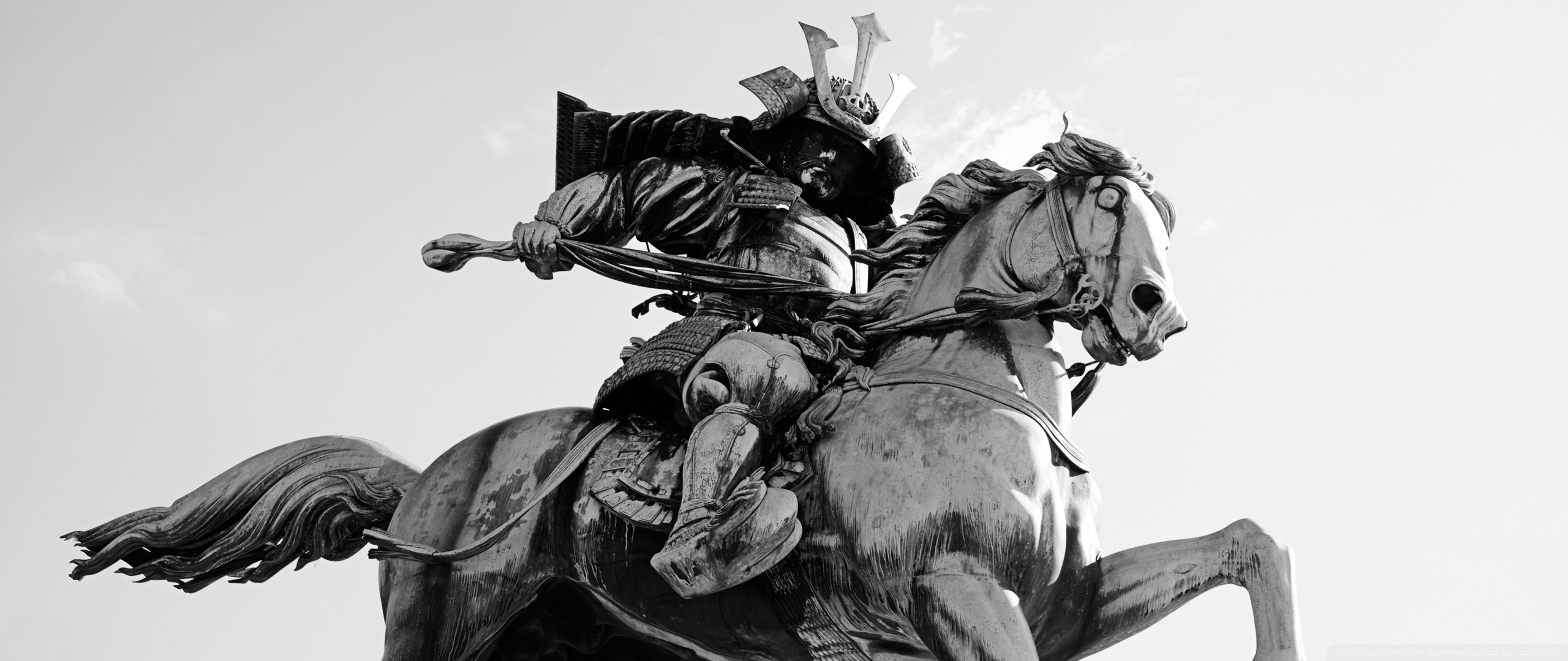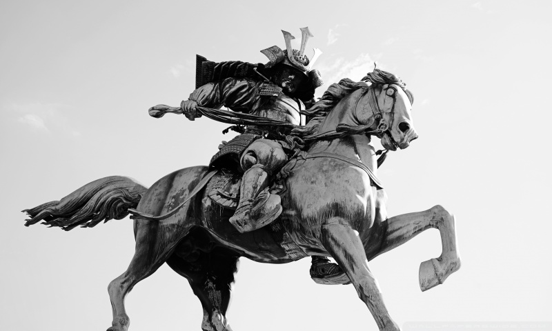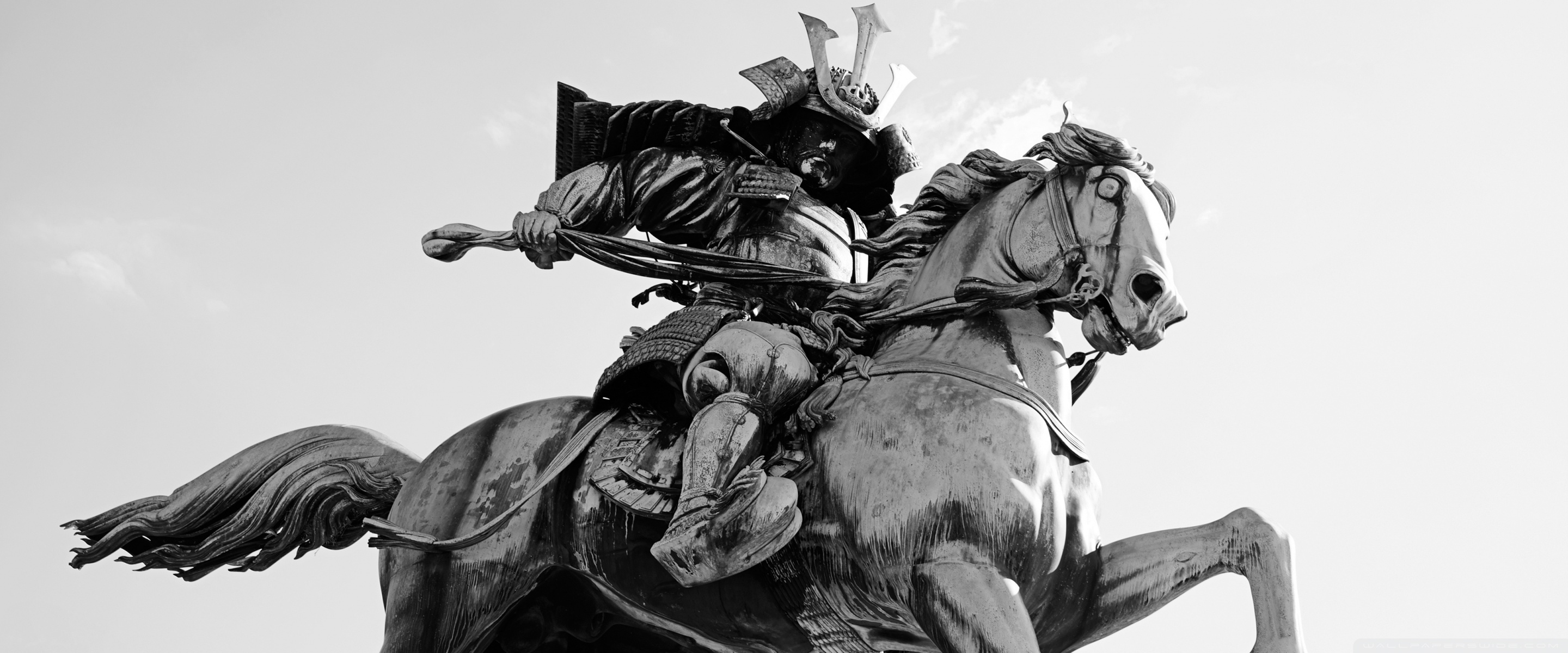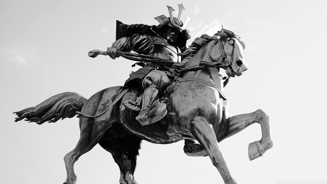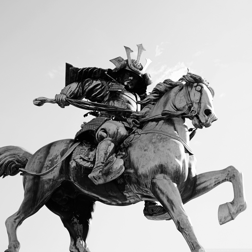 Download Samurai Statue, Black and White 4K UHD Wallpaper