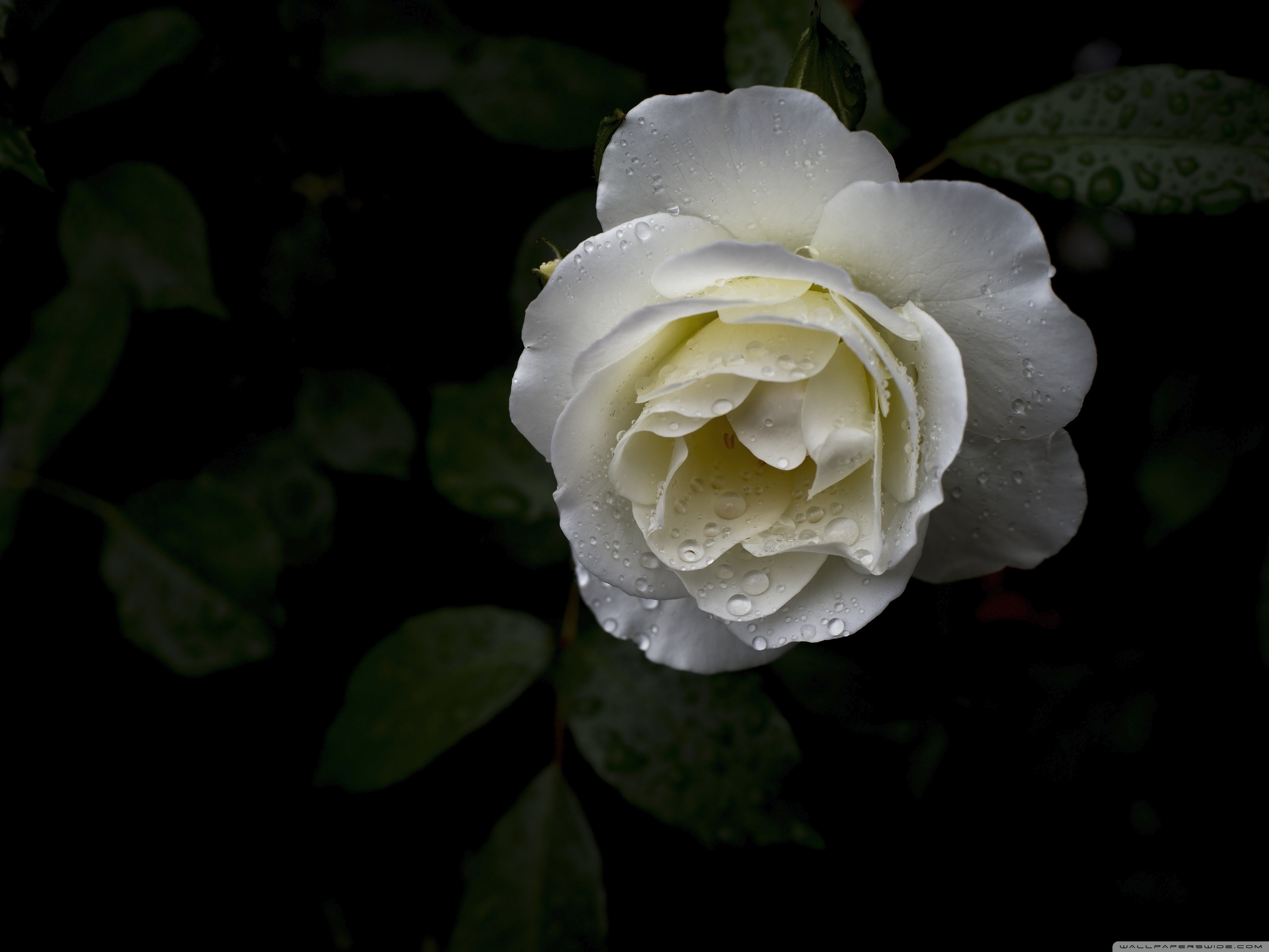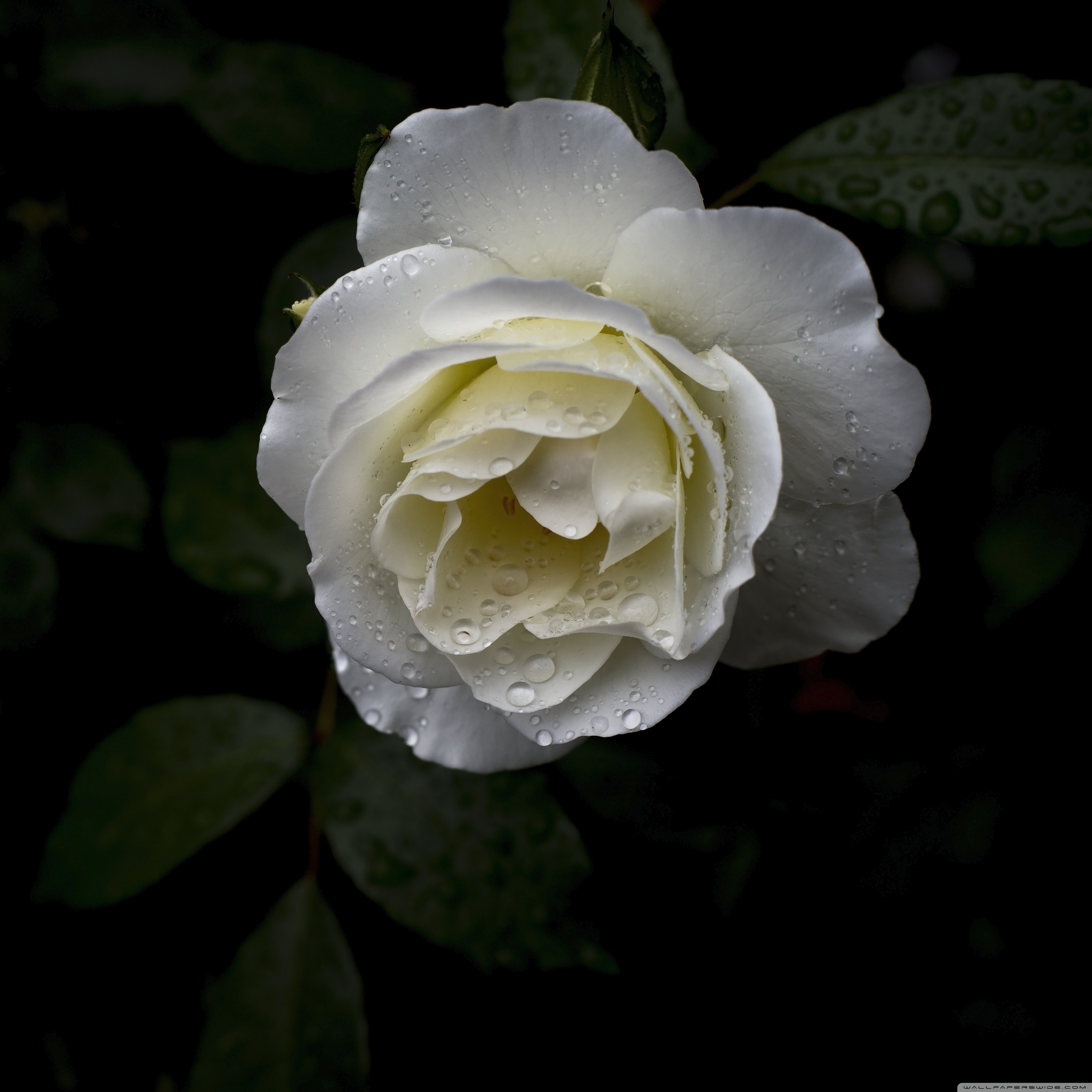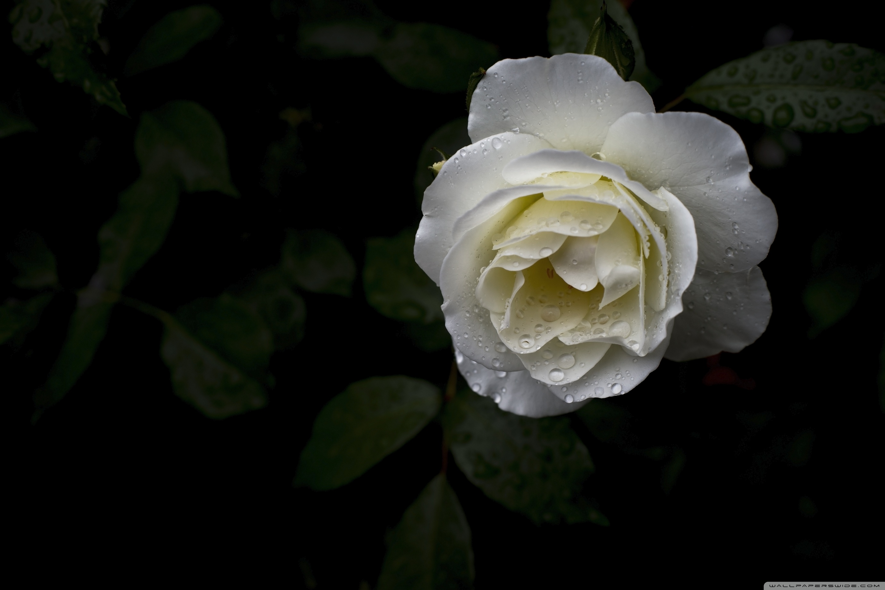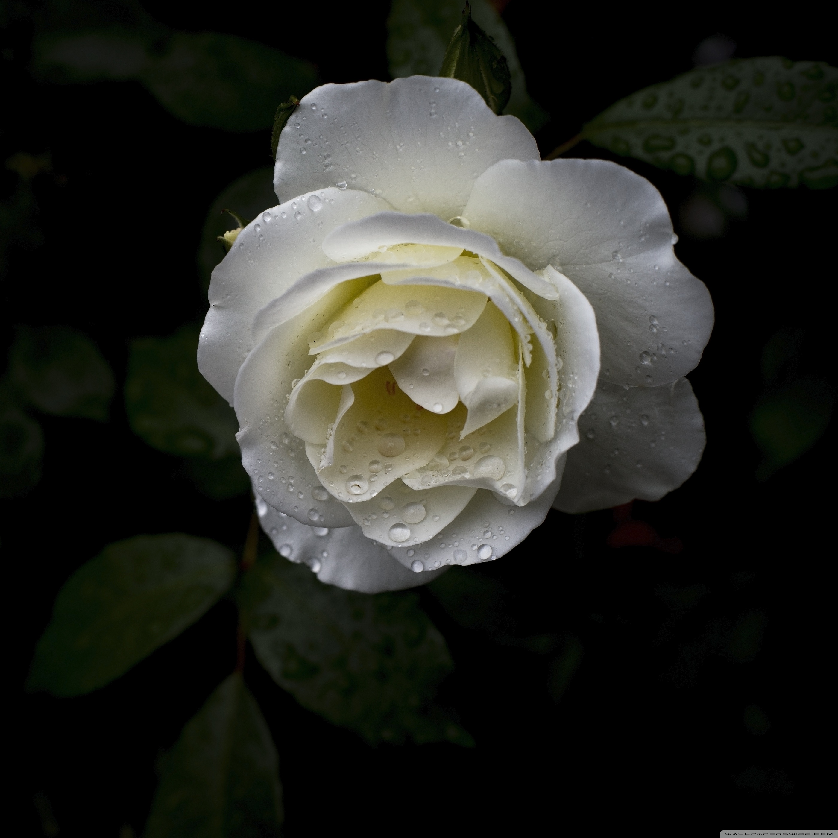 Download Schneewittchen Rose Bloom Covered in Rain Drops 4K UHD Wallpaper